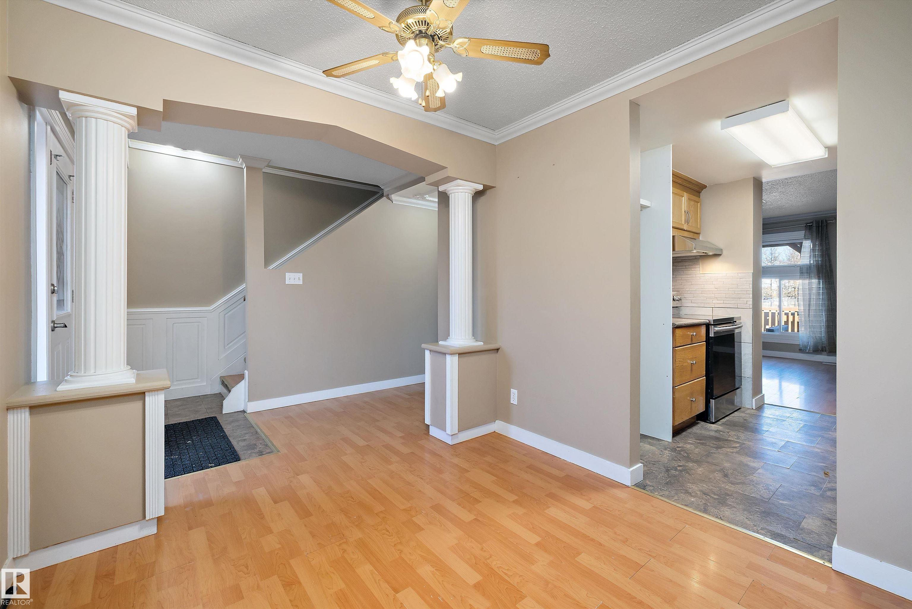 Welcome investors and first-time home buyers! This fully finished 3 bedroom, 1.5 bath townhouse nestled in the well-maintained complex of Terrace Gardens offers comfortable living in a quiet neighborhood with the convenience of a parking stall right out-front. This home greets you with a cozy side den leading through the kitchen into the family/dining area with a backyard deck facing east overlooking the Rundle Park Golf Course. Upstairs you'll be greeted by the large primary bedroom with a 4pc bathroom separating the other 2 bedrooms. Great investment property for a high demand rental location! Close to all types of amenities, schools, Rec Center and parks with endless walking trails. Easy access to Henday, Yellowhead, W. Gretzky Drive and Victoria trail. Low condo fees.