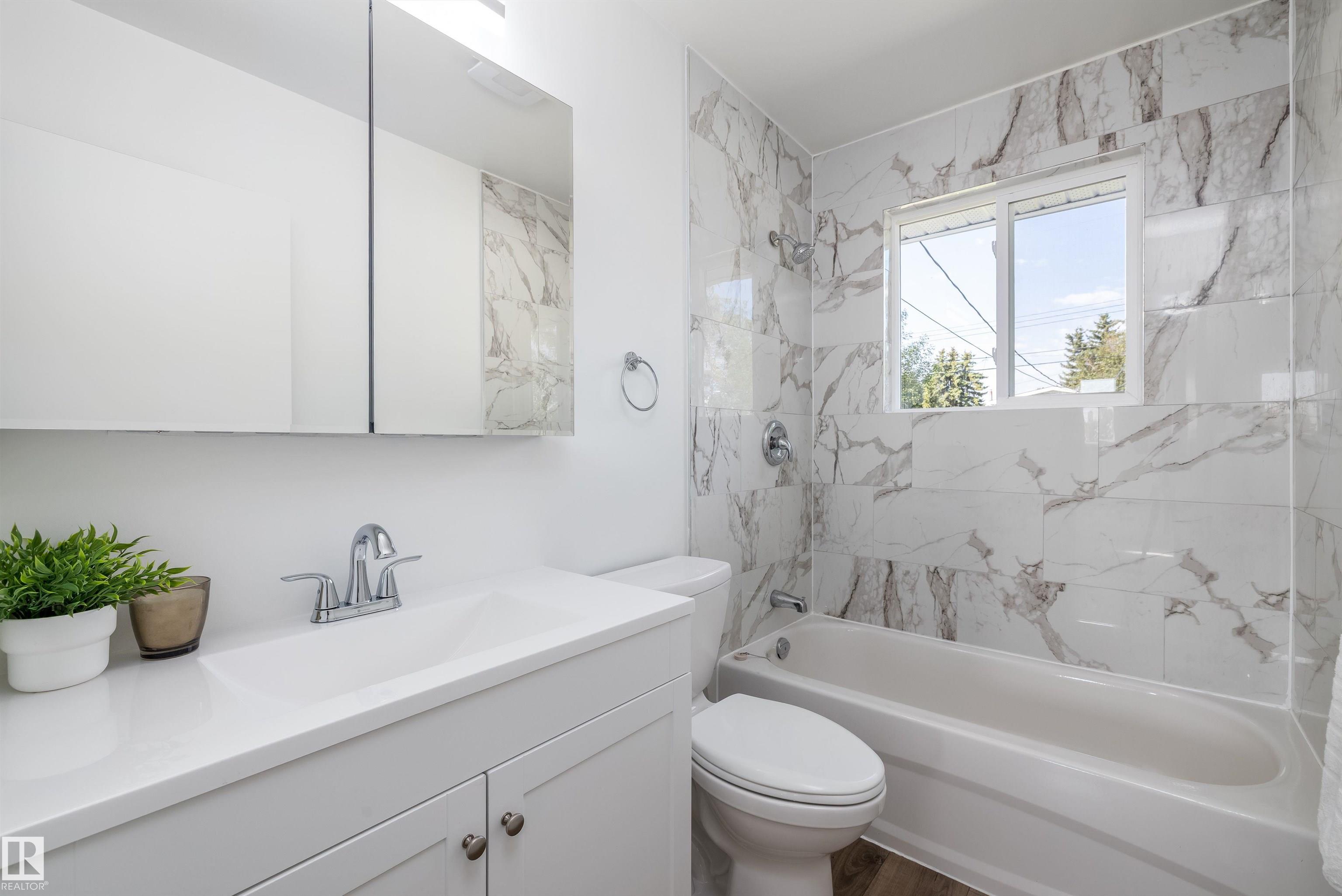Welcome to this beautifully renovated 5 bedroom, 2 bathroom bungalow offers 1,040 sq/ft of functional living space, A MASSIVE YARD & perfect for families or investors. This ideal layout features 3 bedrooms upstairs and 2 down, each level with its own full bathroom. Enjoy a bright updated kitchen, newer roof, updated windows throughout, BRAND NEW appliances and plenty of room to gather. The spacious backyard and park right across the street make this home a true family gem. A double garage provides secure parking and extra storage - Tons of space for a future shop or large shed. Located in a mature neighborhood, you'll appreciate easy access to the Yellowhead, schools, and amenities. Move-in ready and waiting for its next owners. Don't miss this one!