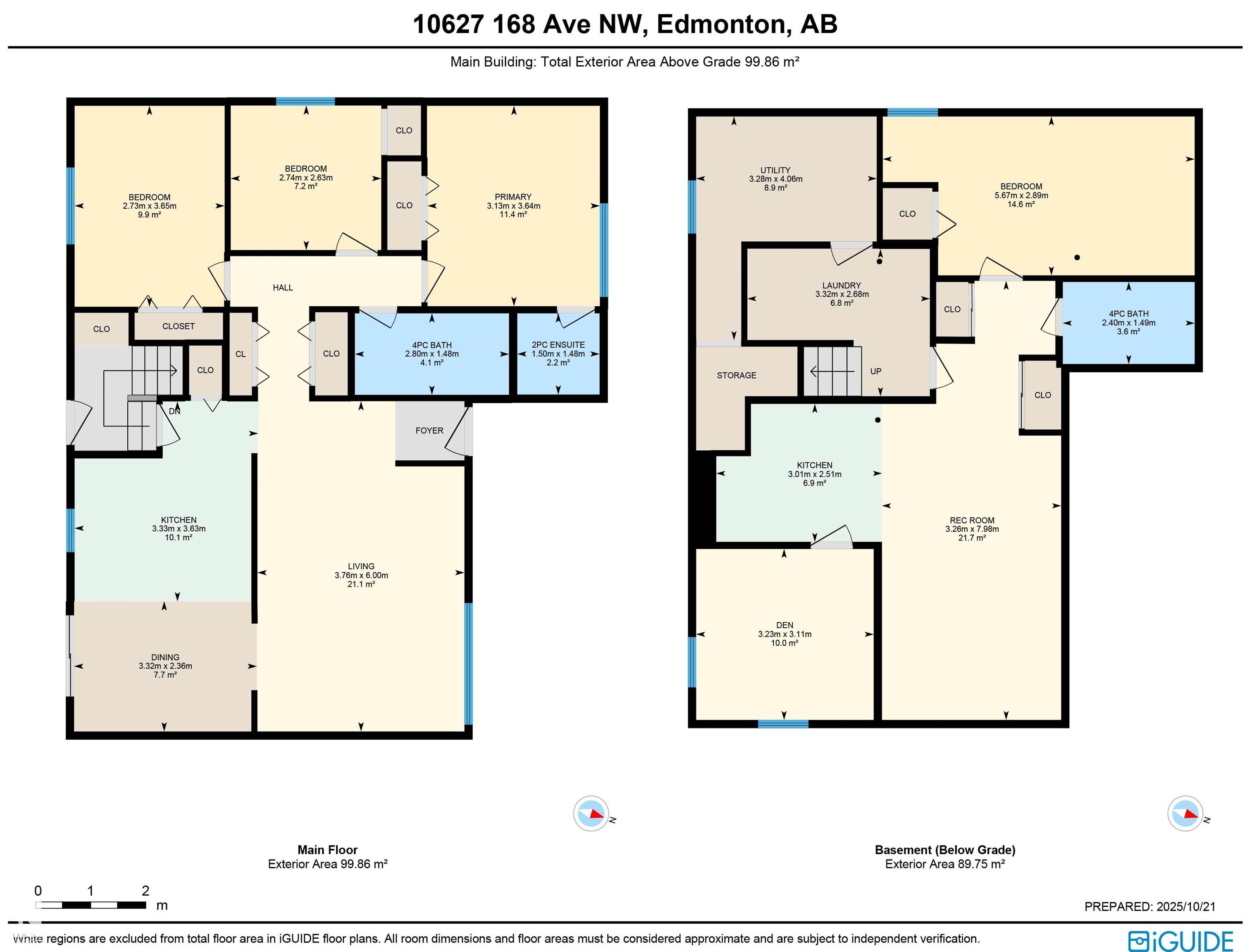 INCREDIBLE INVESTMENT or MORTGAGE-HELPER OPPORTUNITY! Welcome to 10627 168 AVE NW -- a FULLY FINISHED, LEGALLY SUITED BUNGALOW offering over 1,900 SQ.FT. of total living space. The MAIN FLOOR features 3 BEDROOMS, 1.5 BATHS including a 2-PC ENSUITE, bright LIVING and DINING areas, and a large EAT-IN KITCHEN. Downstairs, the LEGAL SUITE impresses with its OWN ENTRY, modern KITCHEN, spacious LIVING ROOM, DEN/OFFICE, huge BEDROOM, 4-PC BATH, and SEPARATE LAUNDRY. Enjoy a PRIVATE YARD and ample PARKING. Located on a QUIET STREET in a family-friendly community close to SCHOOLS, SHOPPING, TRANSIT, and easy access to ANTHONY HENDAY and 97 ST -- perfect for COMMUTERS. Whether you're looking to INVEST, DOWNSIZE with INCOME, or share space with family, this TURN-KEY property delivers FLEXIBILITY and VALUE!