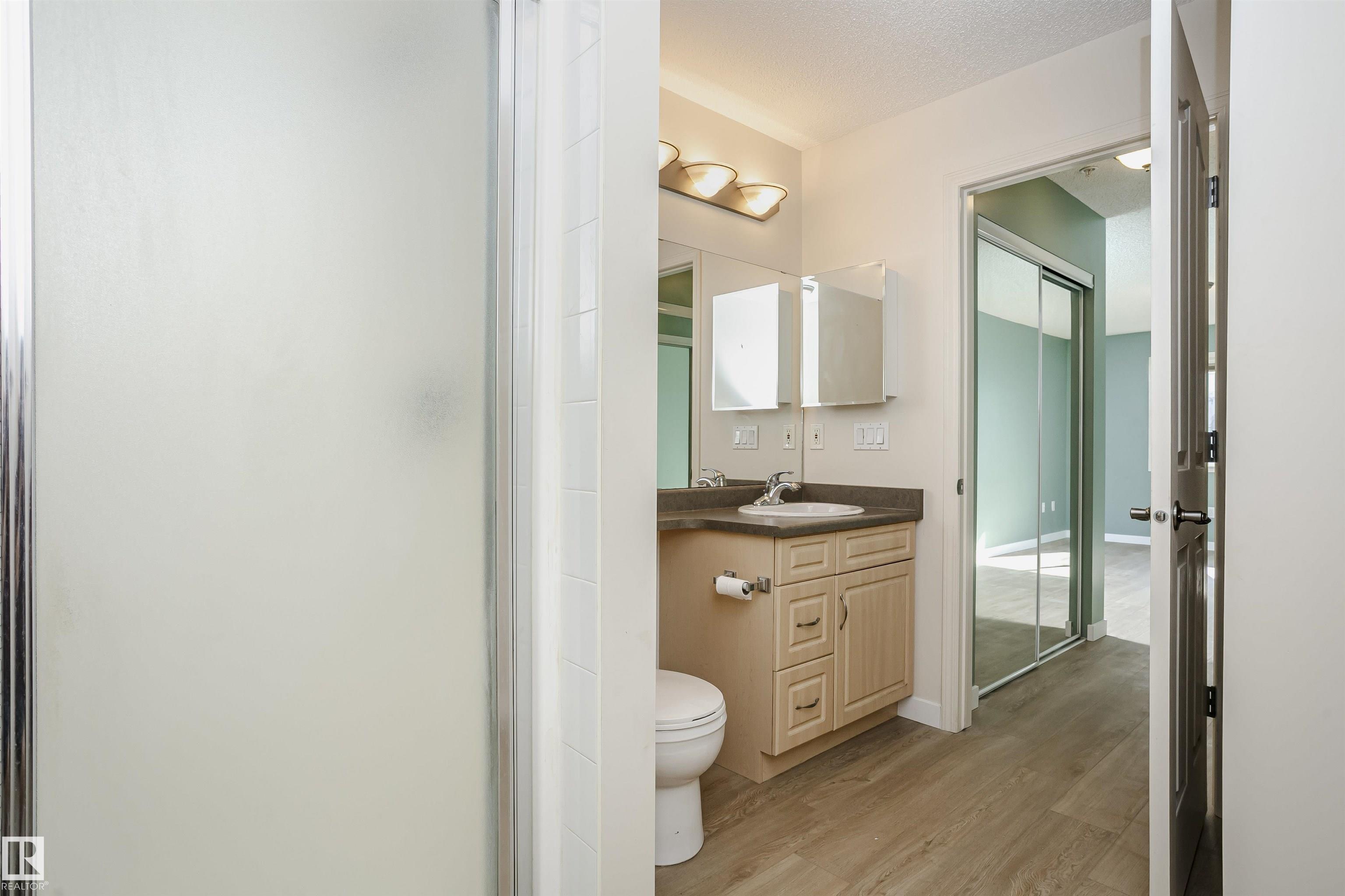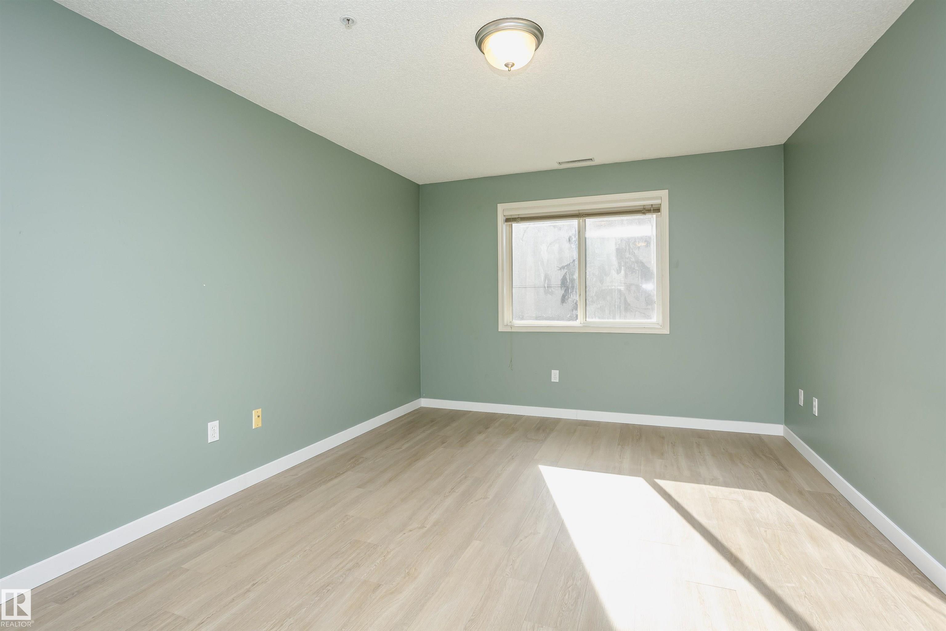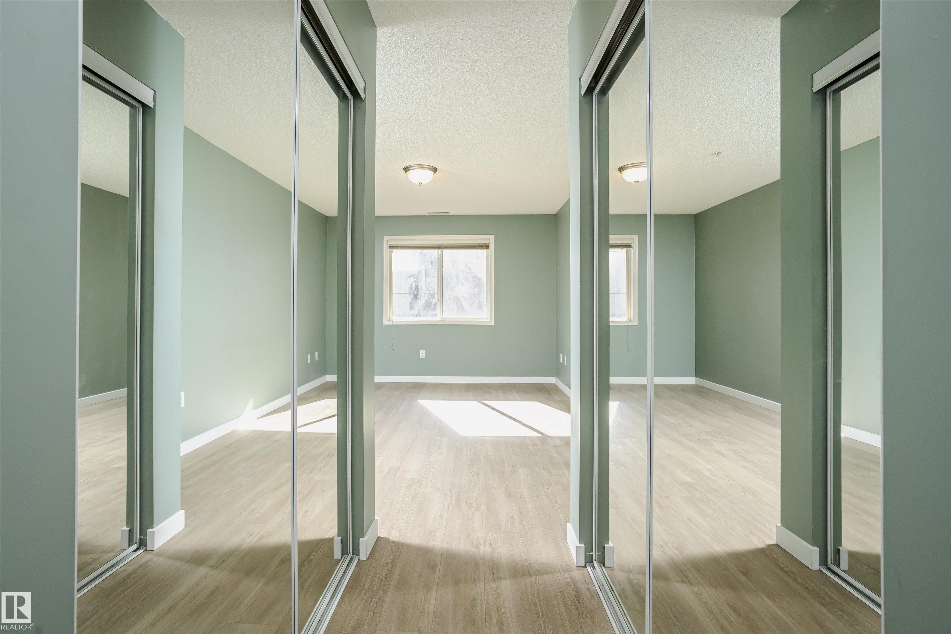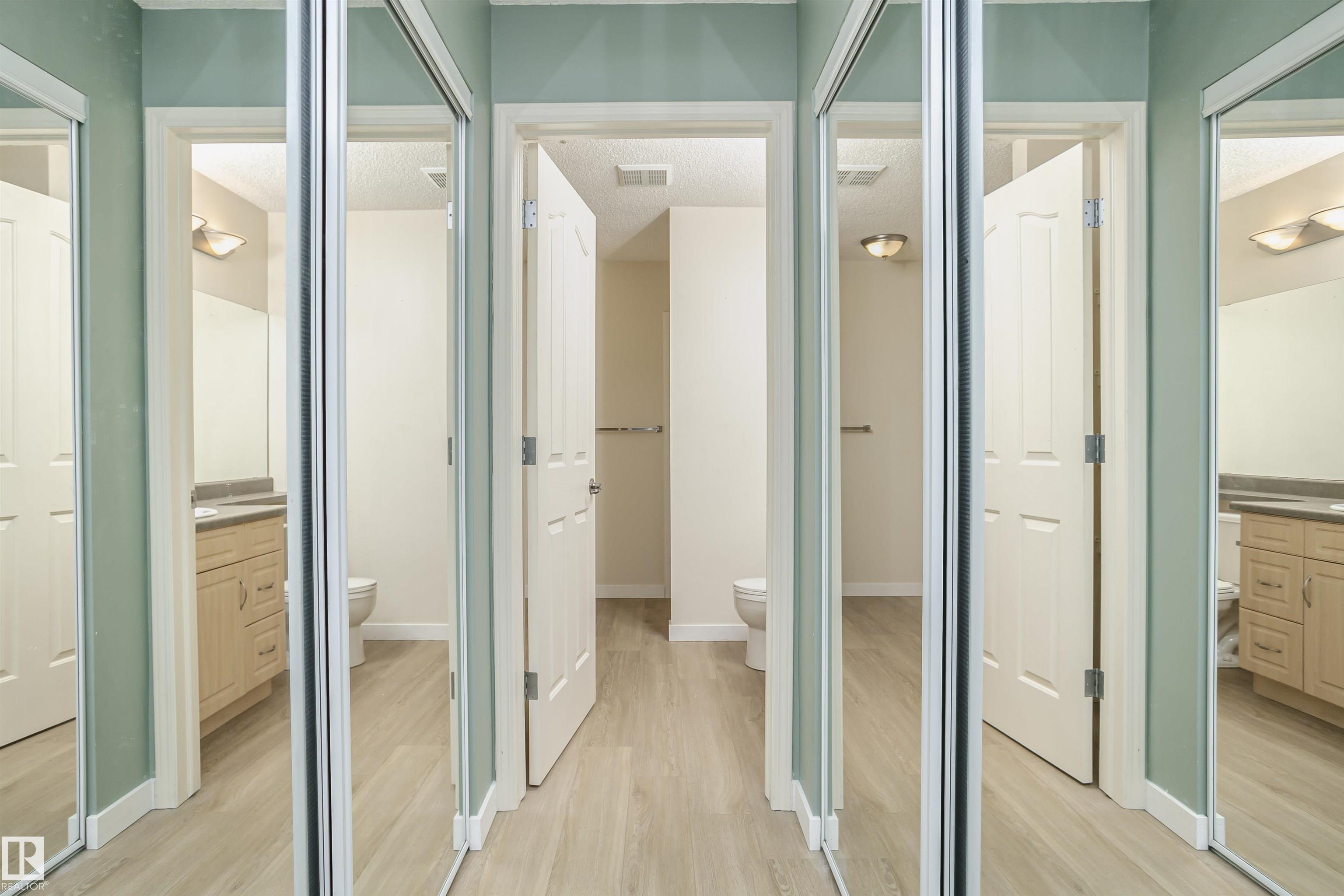 This exceptional 1,087 sq. ft. unit offers 2 bedrooms, 2 bathrooms, in-suite laundry, and a titled heated underground parking stall (#223). The kitchen features abundant cabinetry, generous counter space, and a convenient breakfast bar. The bright, open-concept living room opens onto an east-facing balcony through sliding glass doors. The primary bedroom boasts a walk-through closet and a private 3-piece ensuite, while the second bedroom is conveniently located next to a 4-piece bathroom--perfect for guests or family. Ideally situated just steps from the golf course, shopping, and public transit (future LRT expansion), with easy access to Whitemud Drive and Anthony Henday.