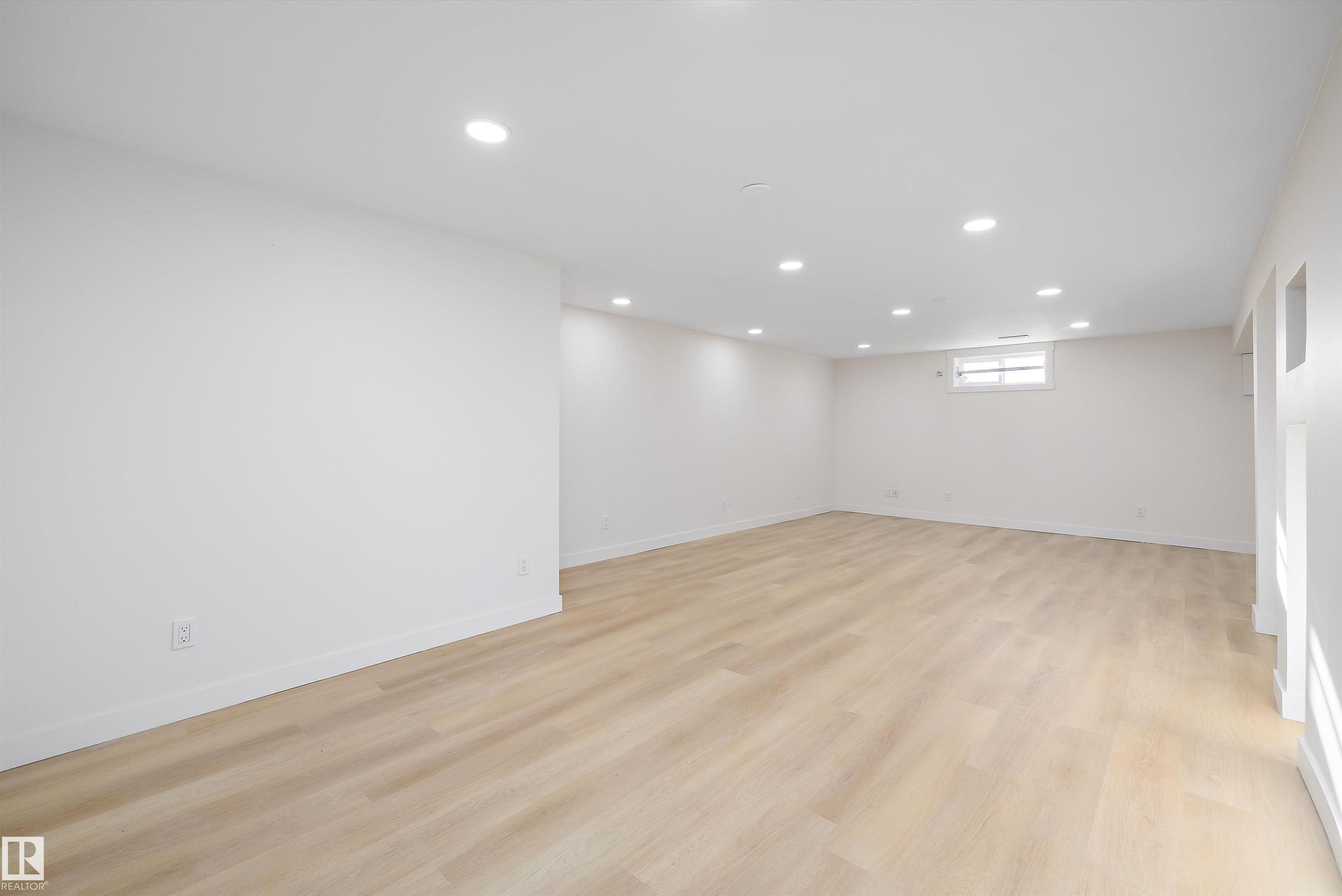 Welcome Home! This fully renovated bungalow sits on a MASSIVE large corner lot, offering ample space and privacy. Inside, the main floor has 3 well-appointed bedrooms, with the primary featuring a 2-piece ensuite. The open floor plan seamlessly connects the kitchen and living room, creating a bright, welcoming space ideal for everyday living & entertaining. Stainless steel appliances, upgraded lighting, and modern touches throughout elevate the design, while luxury vinyl plank flooring & fresh paint in every room provide a clean, contemporary feel. Downstairs, is an additional bedroom with a 3-pc bathroom, large rec room, and laundry/utility room add flexibility for guests, hobbies, or storage. Step outside to a double detached heated garage and an extra-large driveway with plenty of room to park an RV. Located just steps from the Anthony Henday, with parks, schools, and shopping all close by, this home combines comfort, style, and convenience in a quiet family friendly neighbourhood.