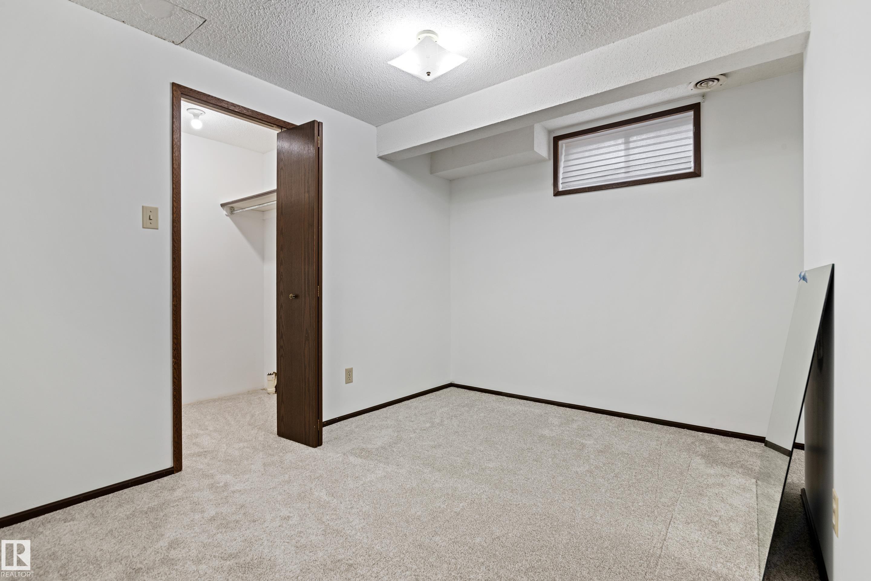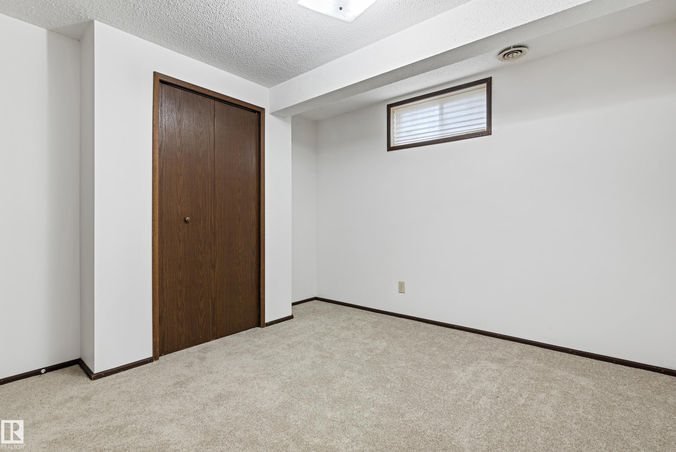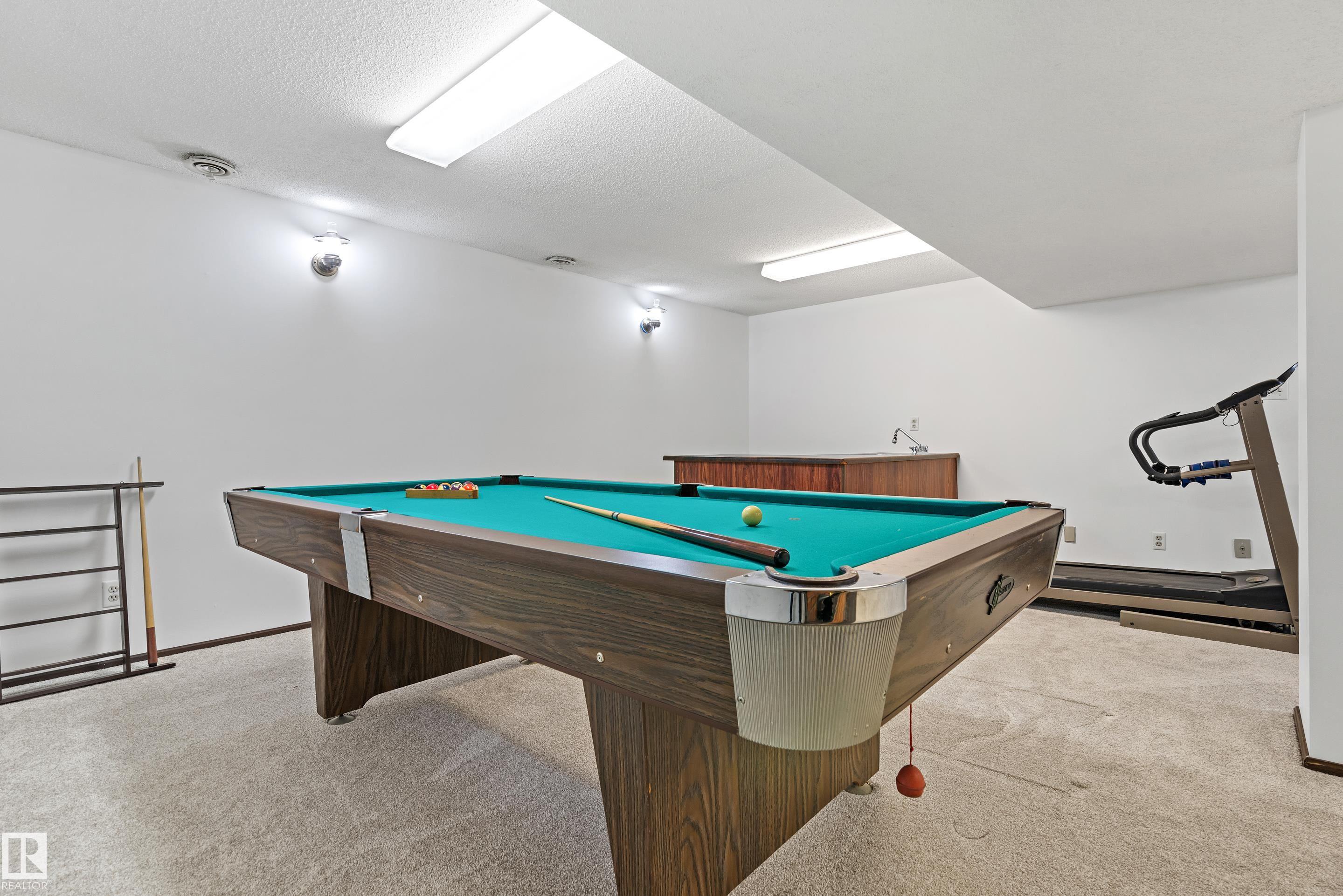 SEVEN bedrooms (4 up & 3 down) and 3 full bathrooms!! This 1539 sqft bungalow is very spacious, can accommodate 2 families and has loads of storage. Located on a large pie lot in a quiet crescent, this home also backs onto a park, has an underground sprinkler system, and has a double attached garage with long driveway that can park many vehicles.. The kitchen has corian counters, the hot water tank was replaced in 2019, and the shingles in 2014. The basement has newer carpet and is fully developed with the aforementioned 3 bedrooms, full bathroom, large storage rooms, and a large family room with pellet insert fireplace and pool table (is included). Close to MANY schools from K-12, walk to the bus, and near to Londonderry Mall, Manning Town Center and the LRT.