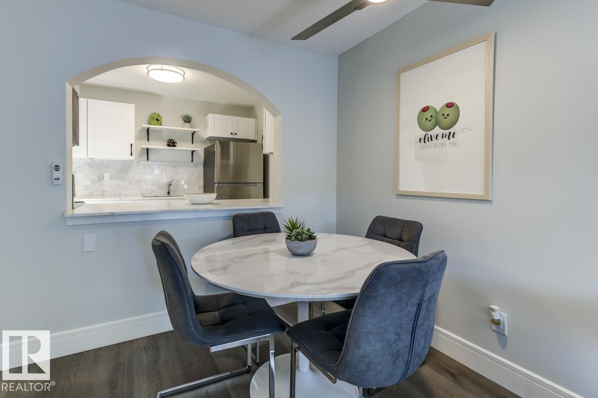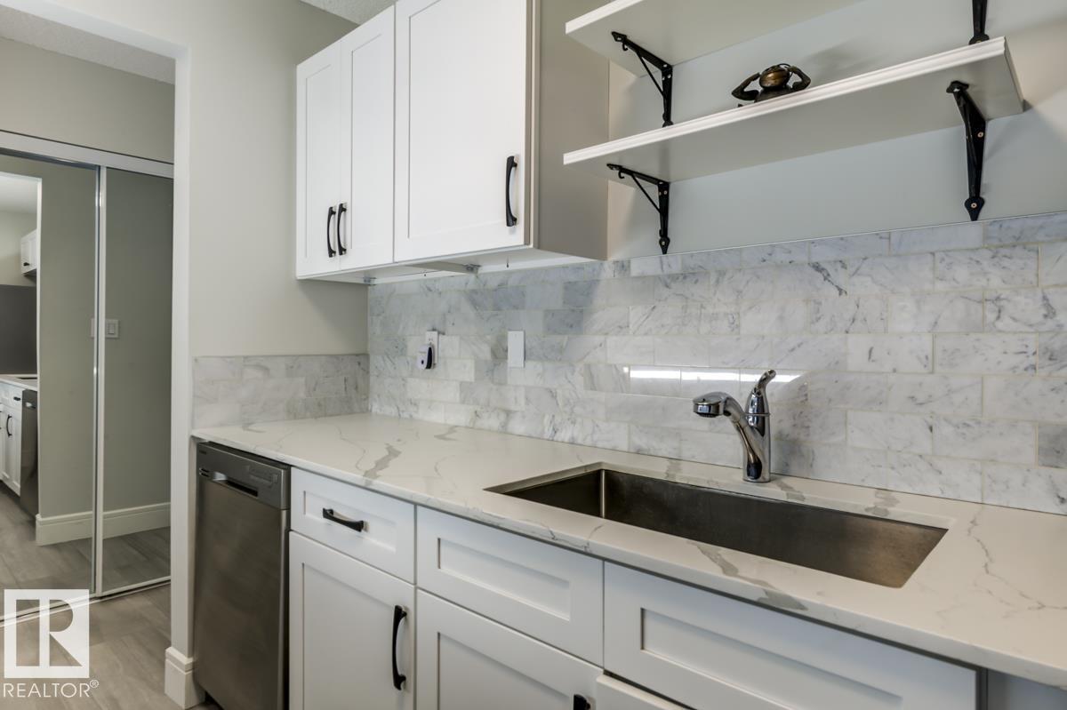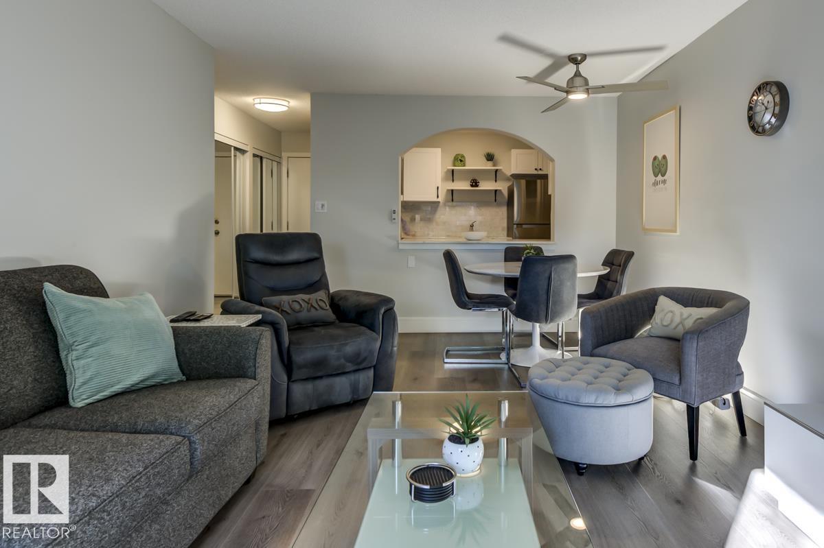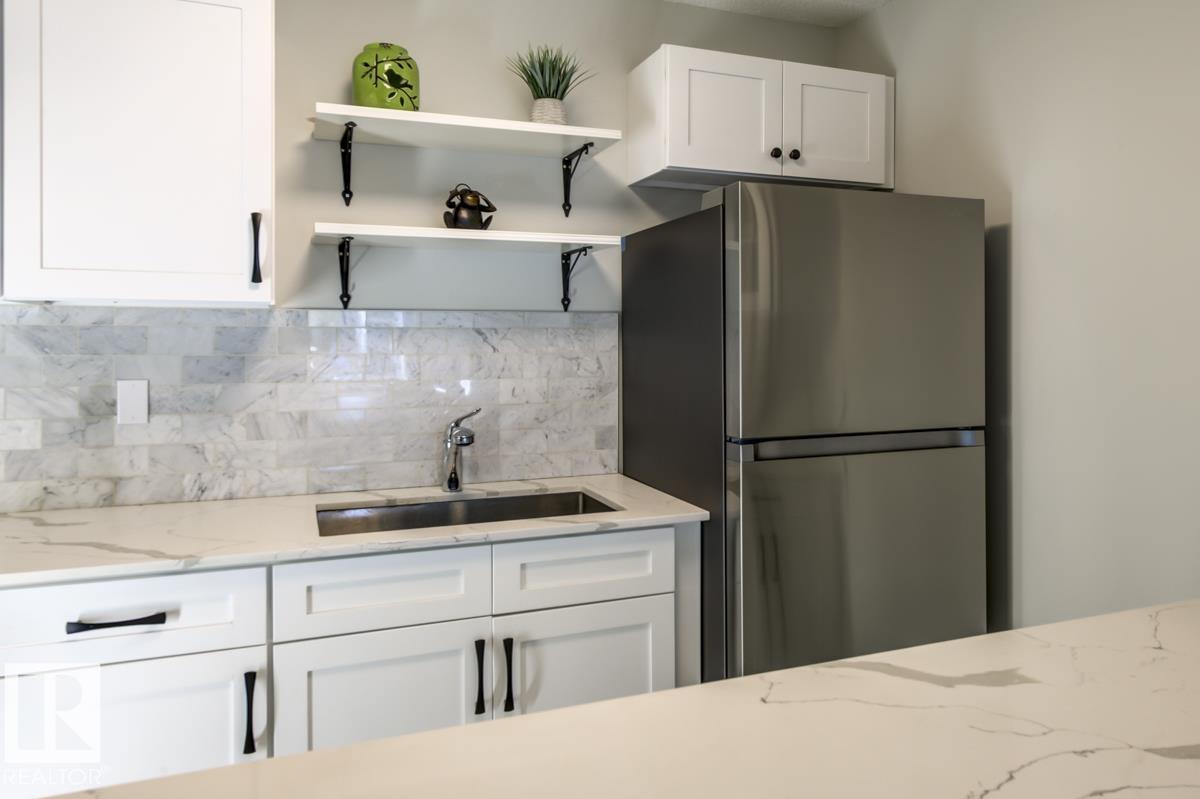 Attn Edmonton, First time buyers, Investors, Students and Sports Fans. Step into this beautifully renovated 2nd floor 1 bedroom, 1 bath condo! This unit is just steps from Rogers Place arena, MacEwan University, the LRT, and all the excitement of the Ice District. Inside, you'll love the bright, open layout featuring Vinyl Plank flooring throughout, crisp white cabinets, sleek stone countertops, and stainless steel appliances. A generously sized bedroom and updated bathroom provide comfort and convenience, while ample in-suite storage space keeps everything organized. The private balcony is ideal for morning coffee or unwinding after the big game. Whether you're catching an Oilers game, a concert, heading to class, or enjoying Edmonton's vibrant dining and nightlife scene, you'll be perfectly situated to take advantage of it all.