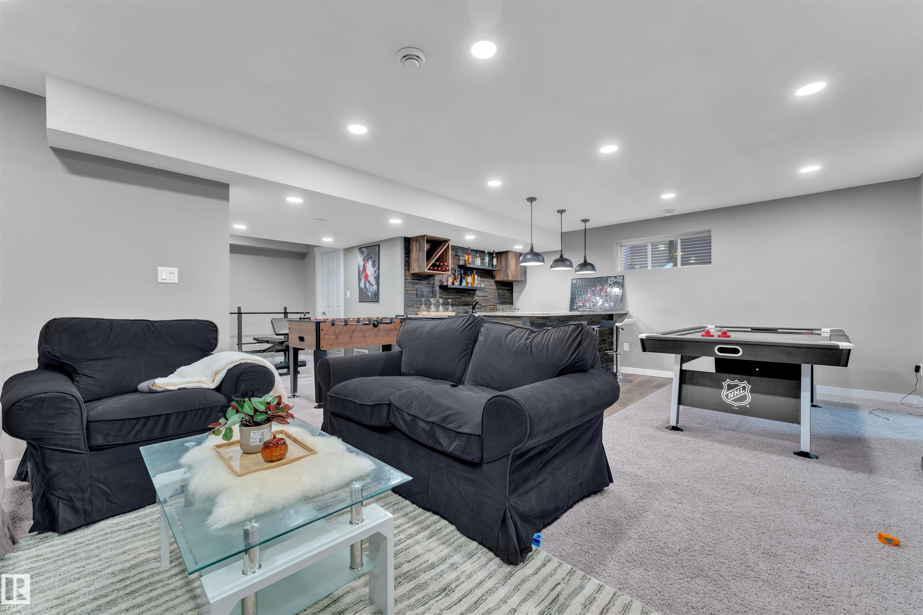 Discover this beautifully maintained 2609 SQ.FT (including Basement) home offering comfort, style, and modern living. Built in 2013 and equipped with Central A/C, the home is freshly painted, carpets steam cleaned, and the garage pressure washed. The bright open-concept main floor features a gourmet kitchen with granite countertops, pantry, breakfast nook, and spacious living/dining areas leading to a large deck. A 2-pc bath and laundry with sink complete the level. Upstairs offers 3 large bedrooms, 2 full baths, and a bonus room. The fully finished basement includes a stylish wine bar, rec room, and half bath. Located on a quiet cul-de-sac, just a 5-min walk to Superstore and amenities, and close to a pond and trails. Brand-new furniture may be negotiated with the seller depending on the offer. A double attached garage adds convenience.