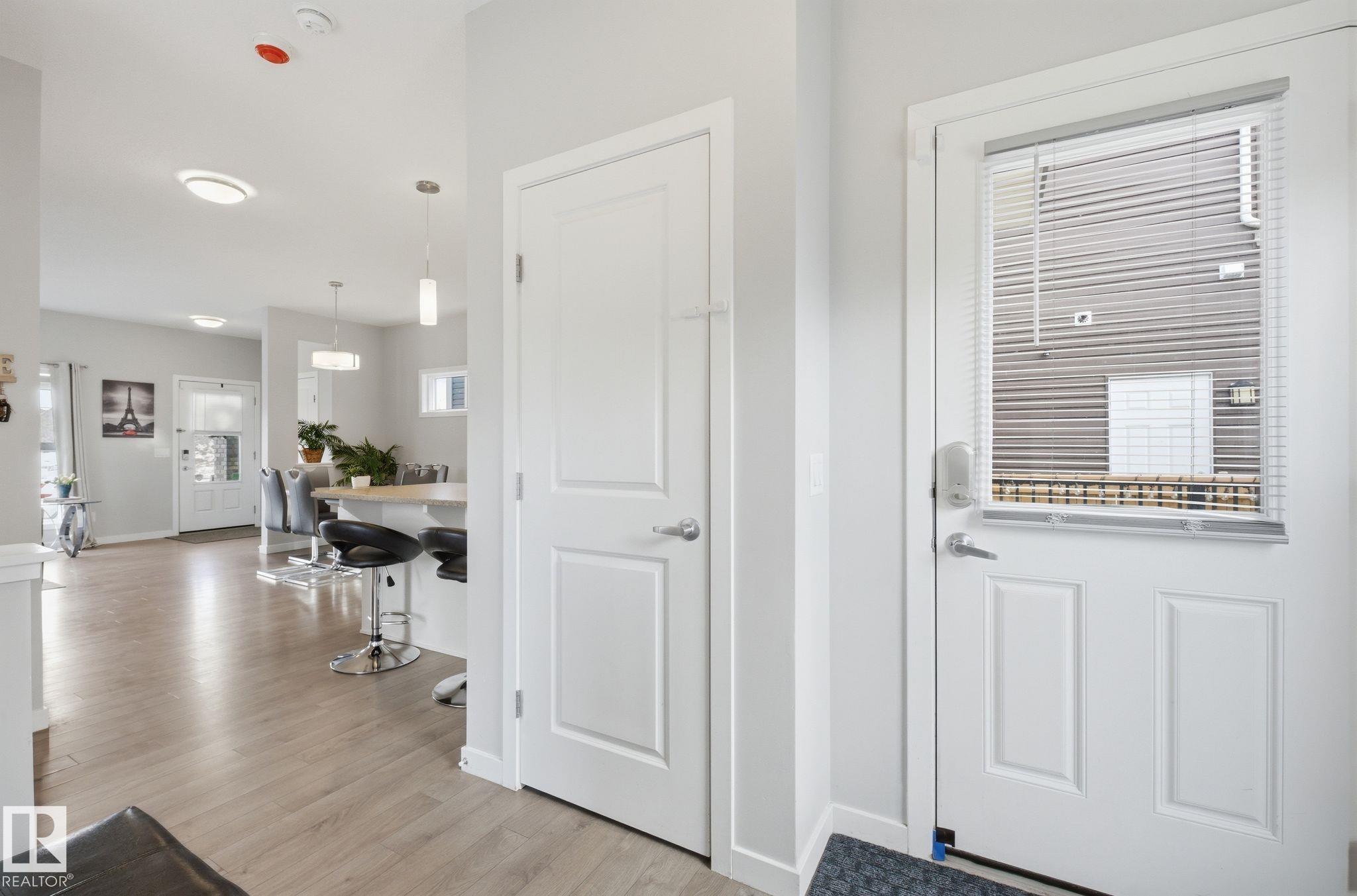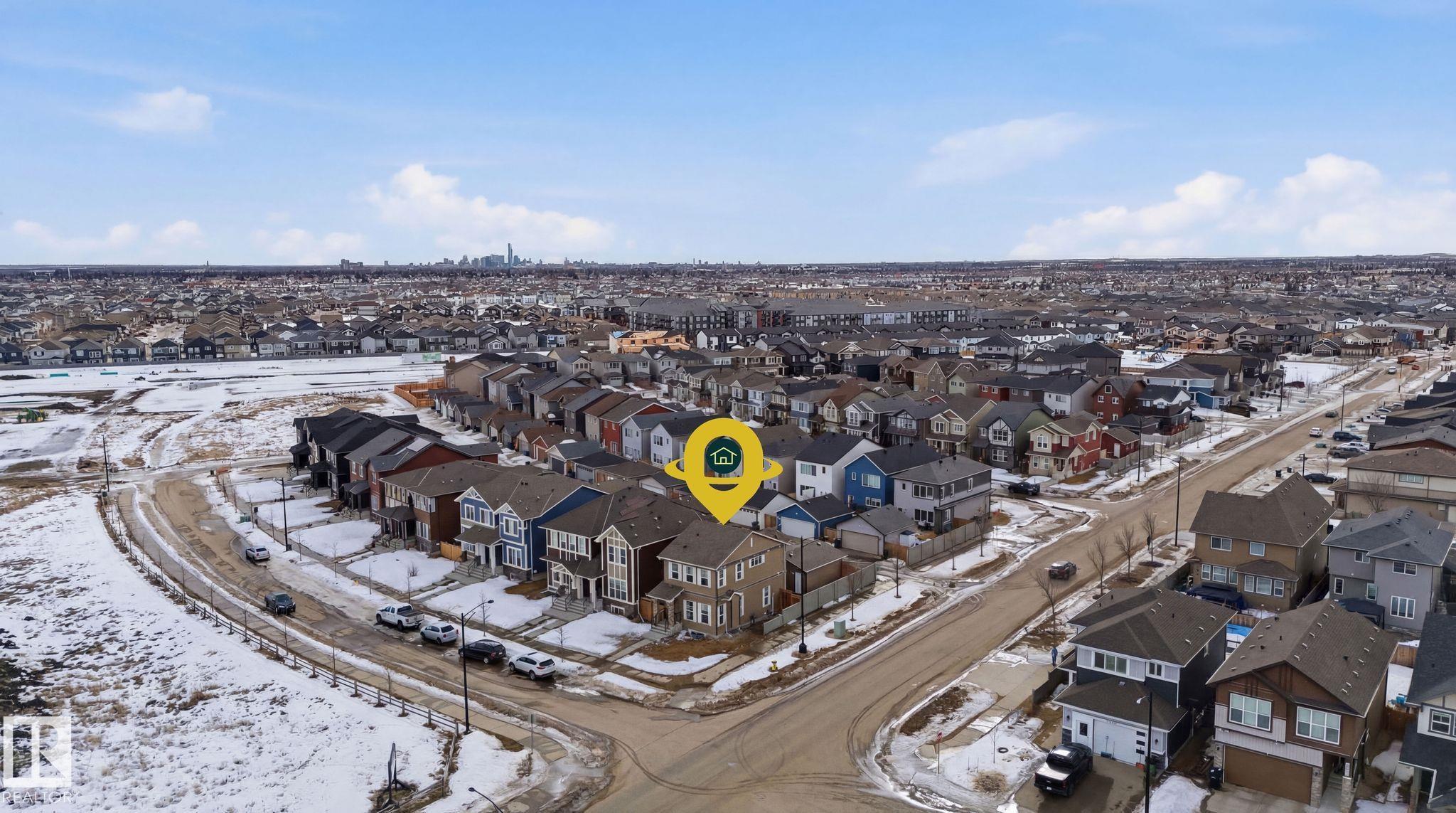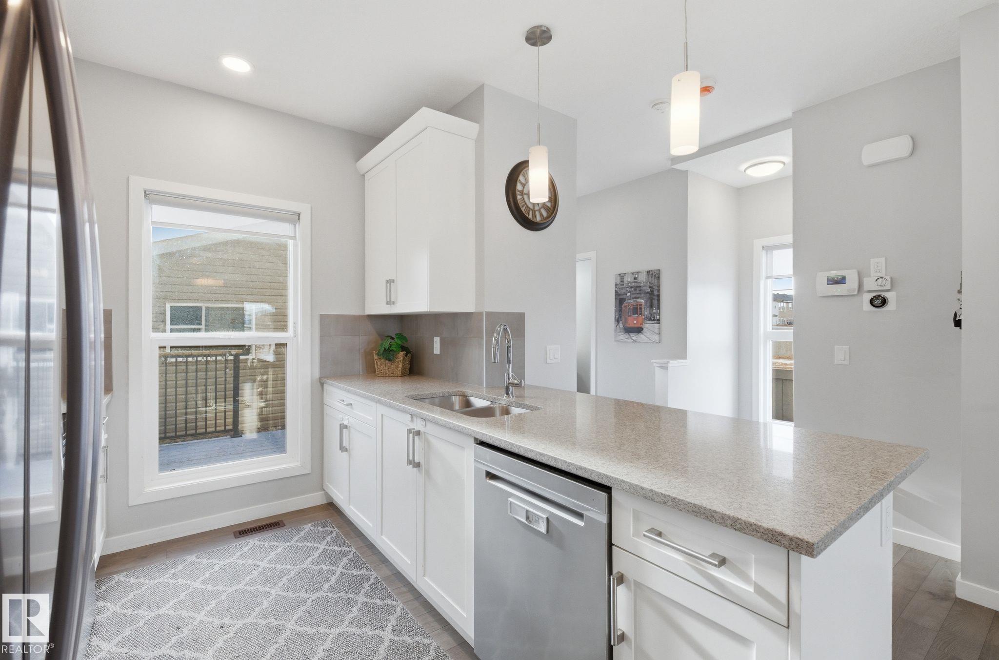 Welcome to Crystallina, a growing North Edmonton community. Situated on a rare non-zero lot line corner lot and the only single detached home on the lane, this property offers added space, privacy, and standout curb appeal. This 3-bedroom, 2.5-bathroom home features bright open-concept main floor with large windows that fill the home with natural light, creating a warm and inviting atmosphere. The kitchen is both functional and stylish, complete with granite countertops, ample cabinetry, and generous prep space. Upstairs offers three well-sized bedrooms, along with two full bathrooms, while a convenient main-floor half bath adds everyday functionality. Stay comfortable year-round with central air conditioning. Enjoy the benefits of a corner lot with extra yard space, plus a unique setting as the only detached home on the lane, offering added privacy compared to surrounding properties. Ideally located with easy access to transit, and just minutes from schools, parks, shopping, and amenities.