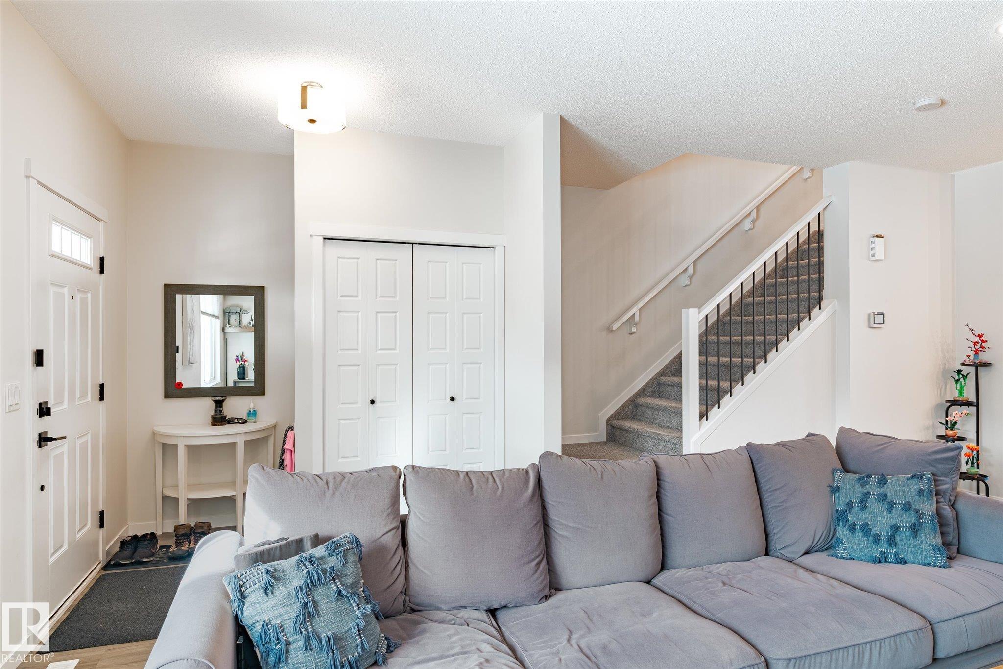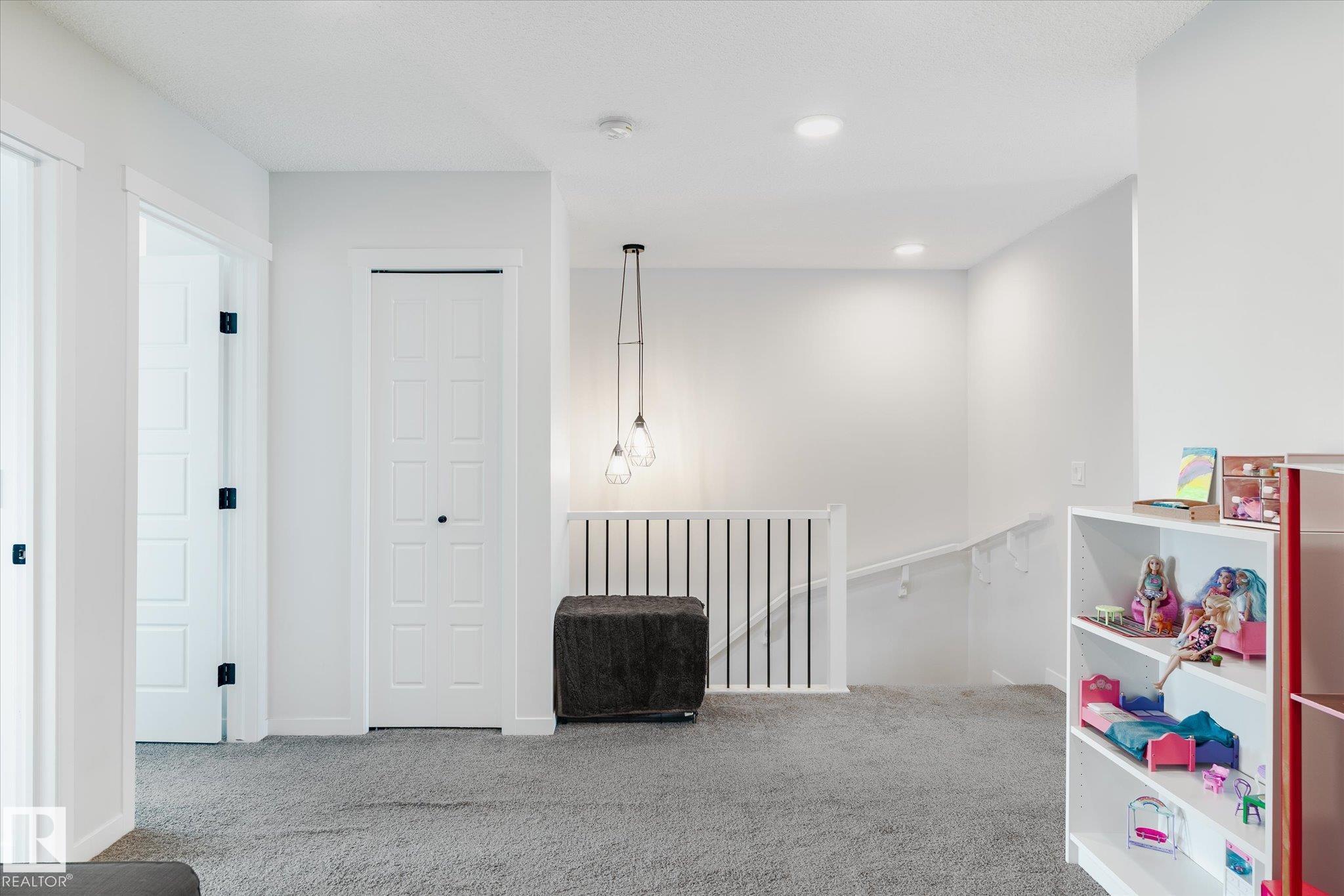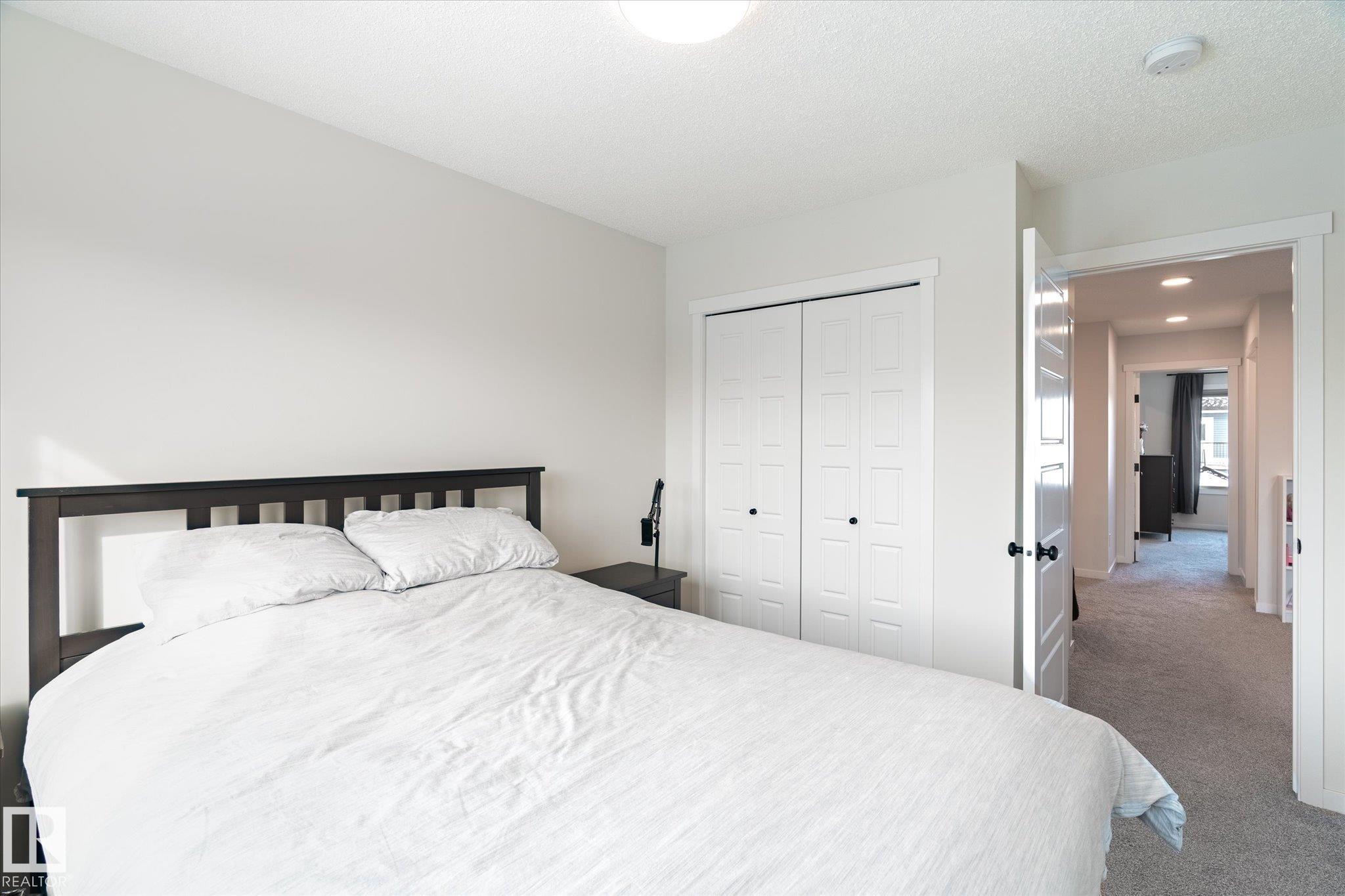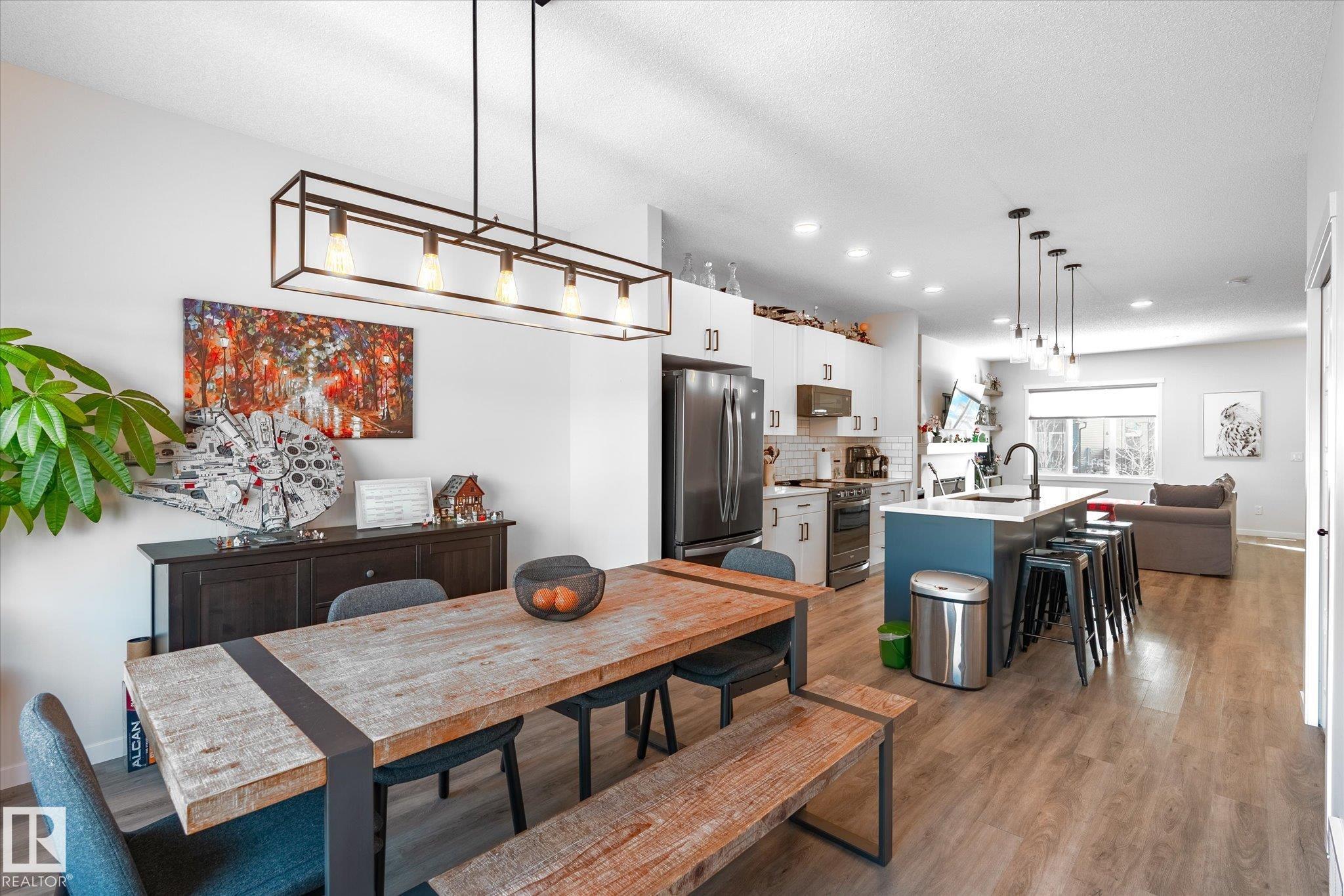 Welcome to this beautifully upgraded home in Crystallina Nera West! With 1693 sqft of modern living space, this home features an open-concept main floor with stylish vinyl plank flooring & A/C! As you enter, you're greeted by a nicely sized living room with custom shelving and an electric fireplace, creating a cozy and inviting atmosphere. The spacious kitchen boasts a large quartz island and quartz countertops throughout, complemented by an upgraded farm sink. The main floor also offers a chic 2-piece bathroom and a convenient laundry area. Upstairs, you'll find a large family room and three bedrooms, including a master suite with a generous walk-in closet and a 4-piece ensuite. All closets are California Closets, maximizing storage. A 4-piece bathroom completes the top floor, also featuring tile. The extended double detached garage (22x20) with a sub panel provides ample space. The fully landscaped backyard includes a deck perfect for relaxation. Located close to shopping & future school minutes away.