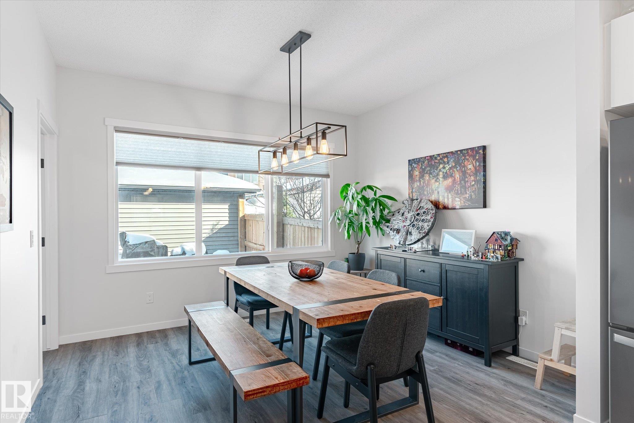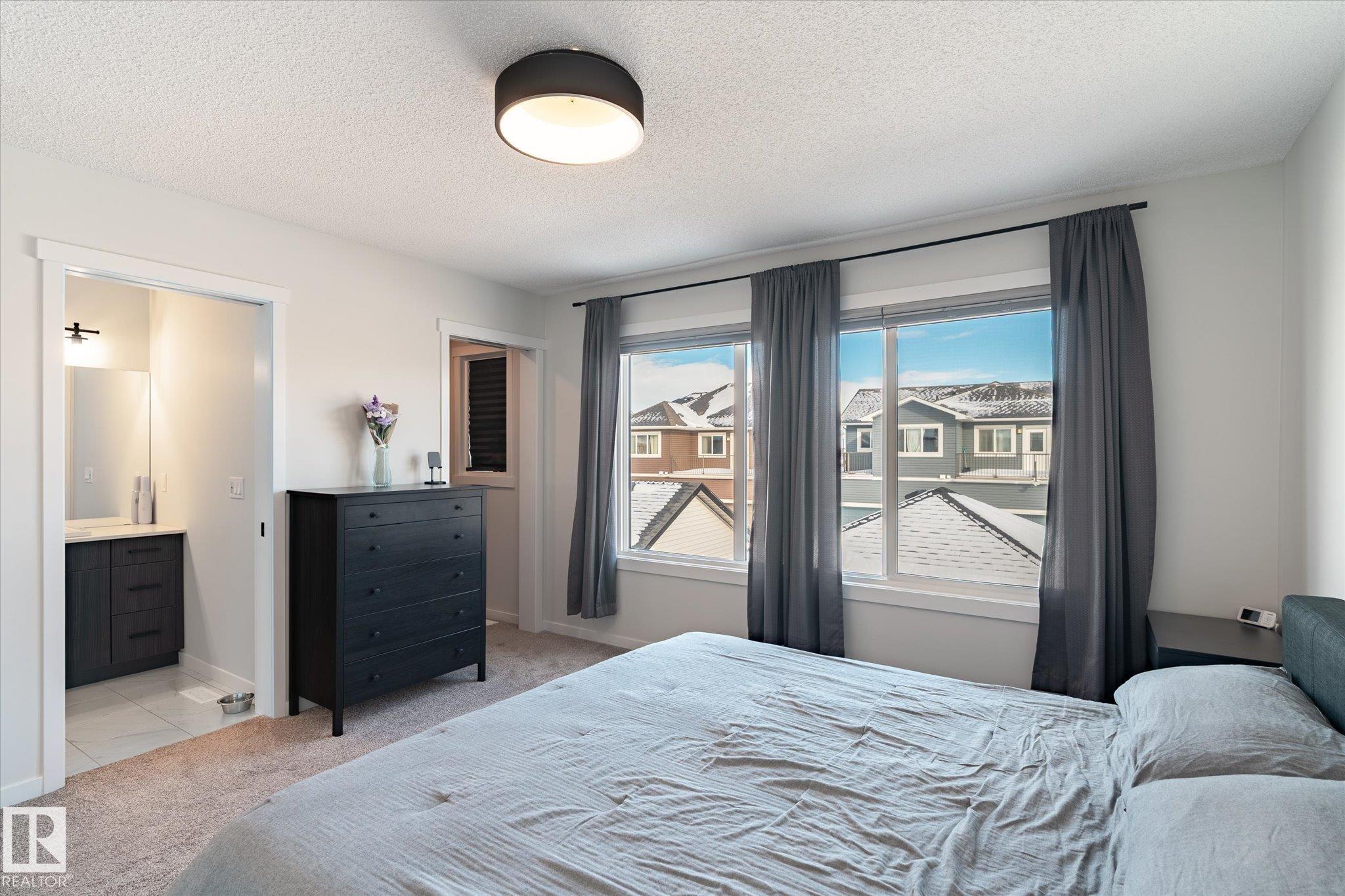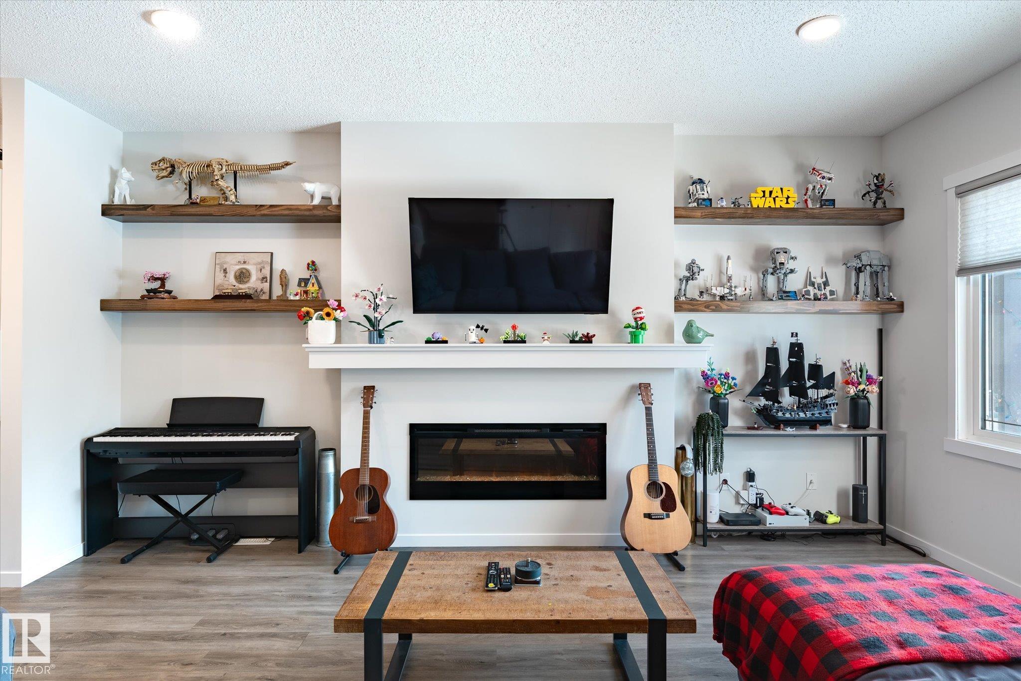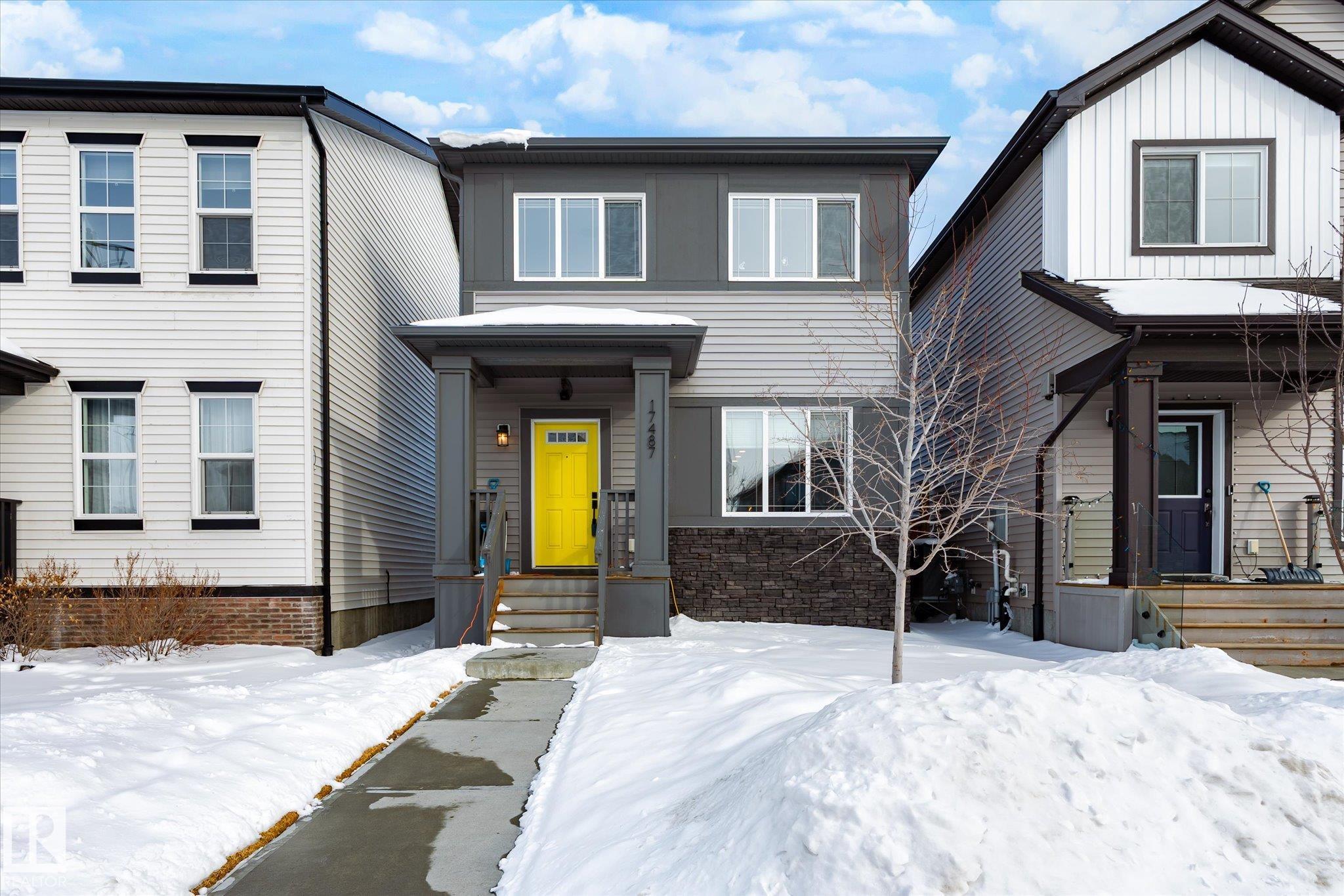 Welcome to this beautifully upgraded home in Crystallina Nera West! With 1693 sqft of modern living space, this home features an open-concept main floor with stylish vinyl plank flooring & A/C! As you enter, you're greeted by a nicely sized living room with custom shelving and an electric fireplace, creating a cozy and inviting atmosphere. The spacious kitchen boasts a large quartz island and quartz countertops throughout, complemented by an upgraded farm sink. The main floor also offers a chic 2-piece bathroom and a convenient laundry area. Upstairs, you'll find a large family room and three bedrooms, including a master suite with a generous walk-in closet and a 4-piece ensuite. All closets are California Closets, maximizing storage. A 4-piece bathroom completes the top floor, also featuring tile. The extended double detached garage (22x20) with a sub panel provides ample space. The fully landscaped backyard includes a deck perfect for relaxation. Located close to shopping & future school minutes away.