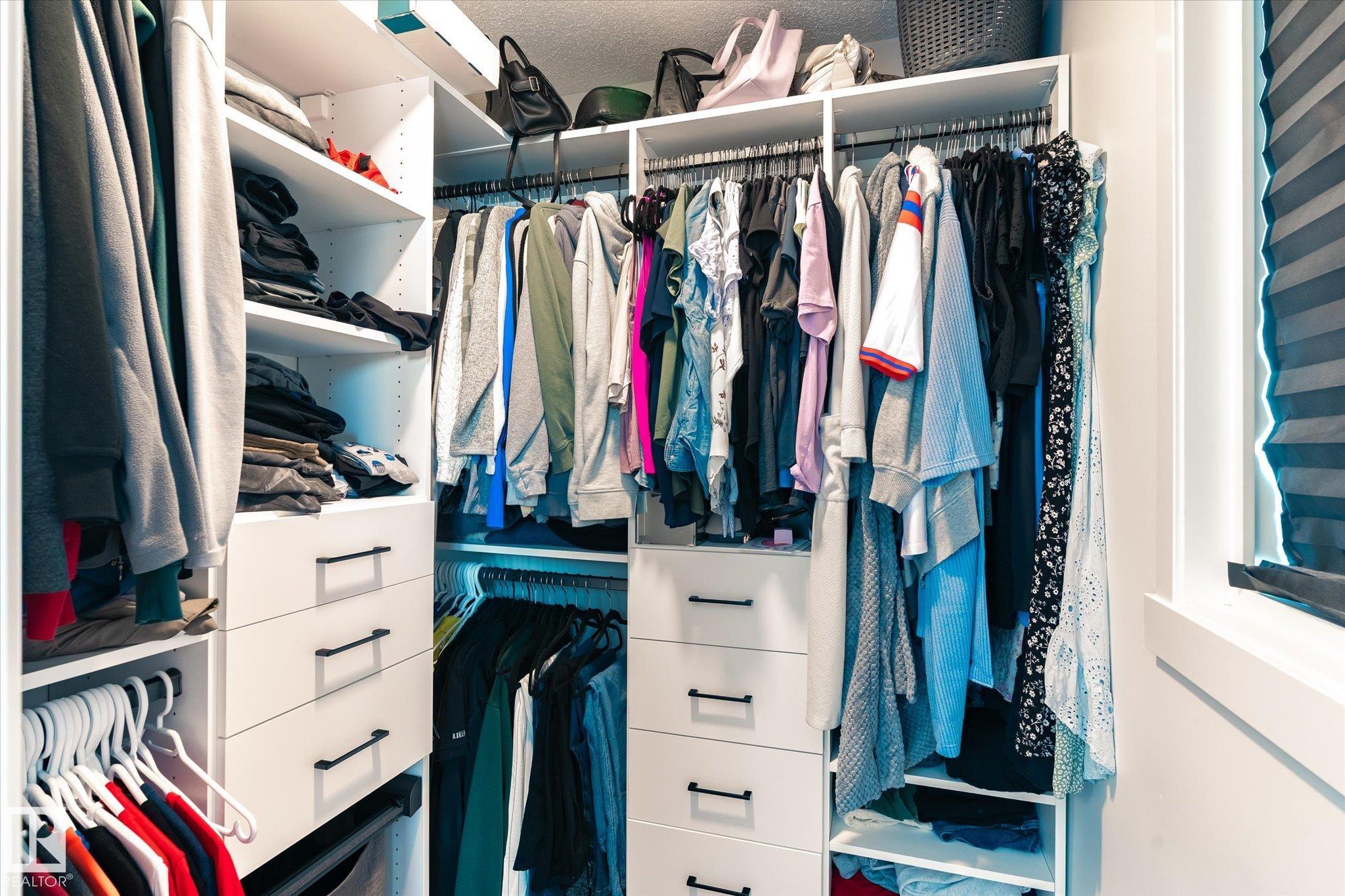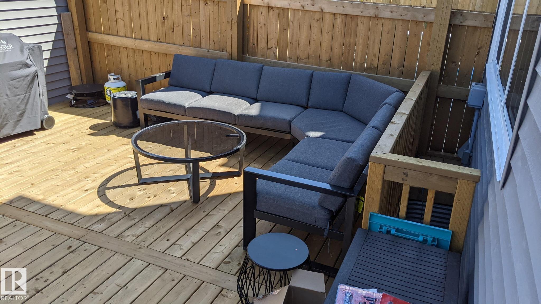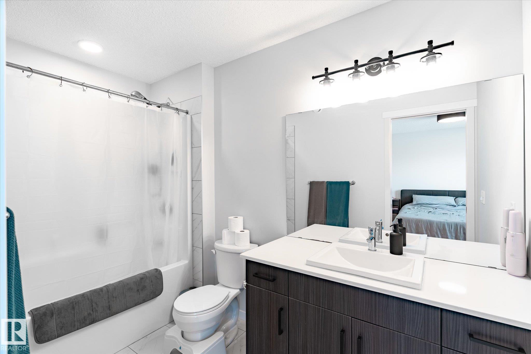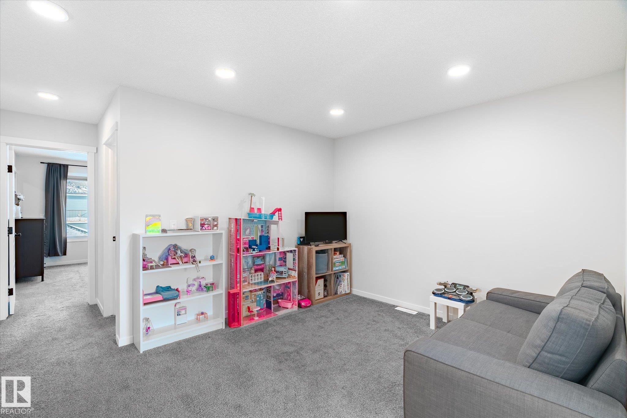 Welcome to this beautifully upgraded home in Crystallina Nera West! With 1693 sqft of modern living space, this home features an open-concept main floor with stylish vinyl plank flooring & A/C! As you enter, you're greeted by a nicely sized living room with custom shelving and an electric fireplace, creating a cozy and inviting atmosphere. The spacious kitchen boasts a large quartz island and quartz countertops throughout, complemented by an upgraded farm sink. The main floor also offers a chic 2-piece bathroom and a convenient laundry area. Upstairs, you'll find a large family room and three bedrooms, including a master suite with a generous walk-in closet and a 4-piece ensuite. All closets are California Closets, maximizing storage. A 4-piece bathroom completes the top floor, also featuring tile. The extended double detached garage (22x20) with a sub panel provides ample space. The fully landscaped backyard includes a deck perfect for relaxation. Located close to shopping & future school minutes away.