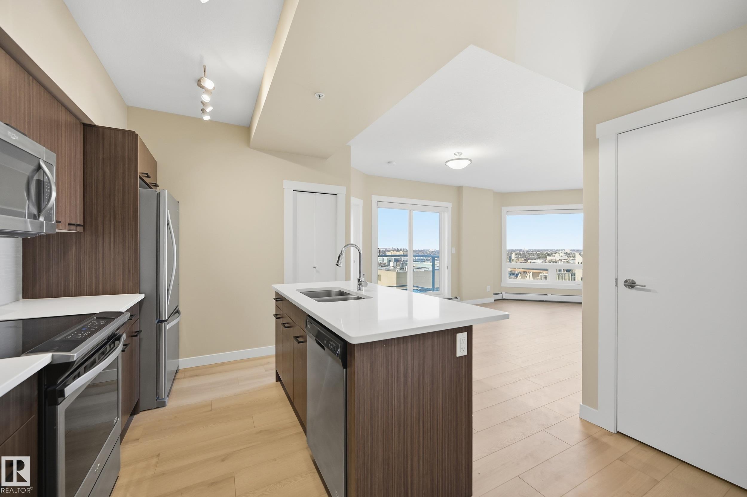 URBAN ENERGY MEETS MODERN COMFORT IN FOX TWO! This 2 bedroom condo brings the best of downtown living right to your doorstep, placing you steps from the city's top entertainment, dining, and cultural destinations. From the excitement of the Ice District to the charm of the Brewery District, it offers a stylish retreat for those who thrive in the city. Inside, the modern kitchen boasts stainless steel appliances and contemporary finishes that will inspire any level of cook. Both bedrooms provide bright, comfortable spaces with great closets, while the bathrooms feature sleek, refined fixtures. Added comforts include air conditioning, in-suite laundry, and an underground parking stall. Experience effortless city living at Fox Two! SOME PHOTOS ARE VIRTUALLY STAGED.
