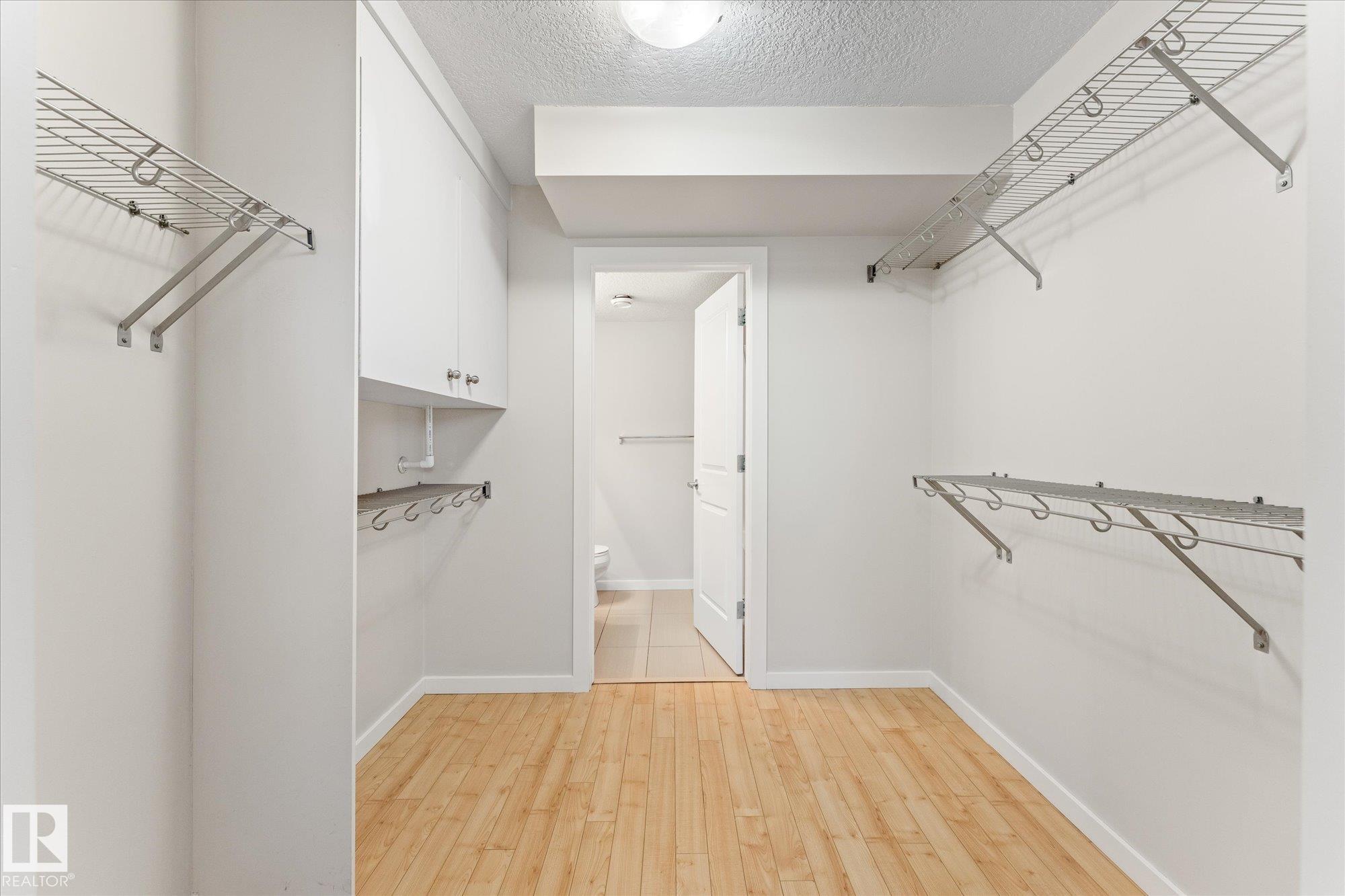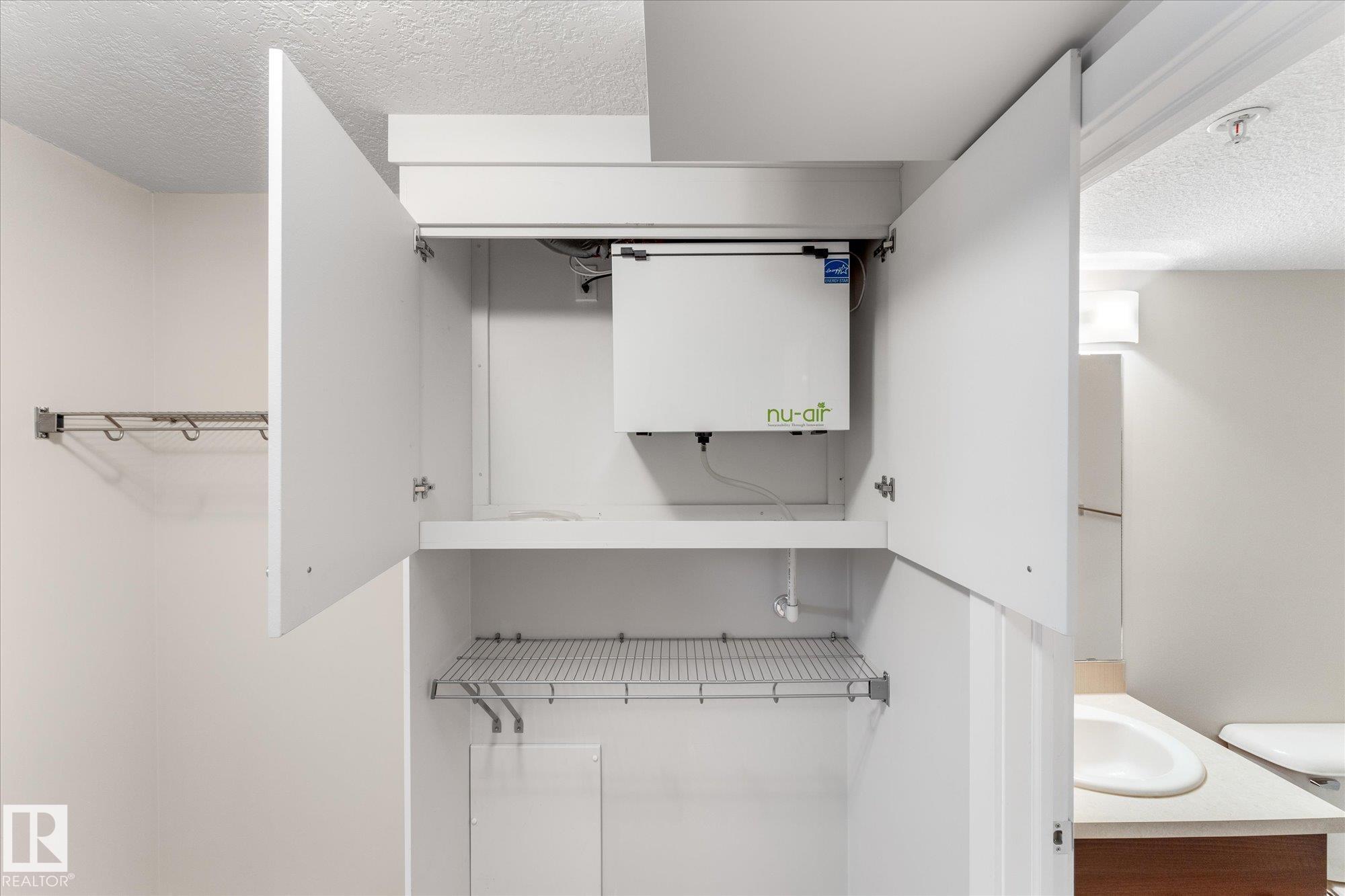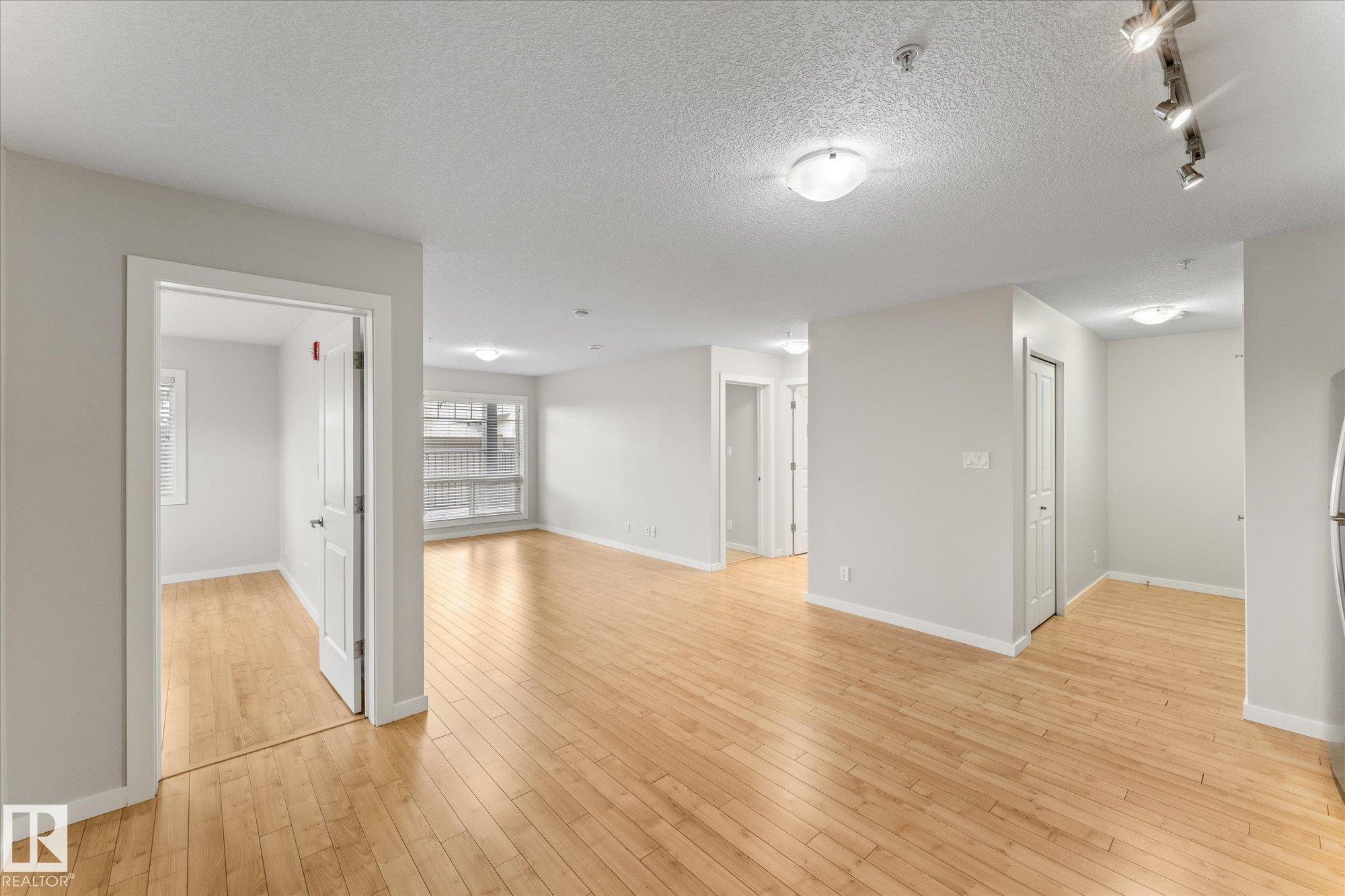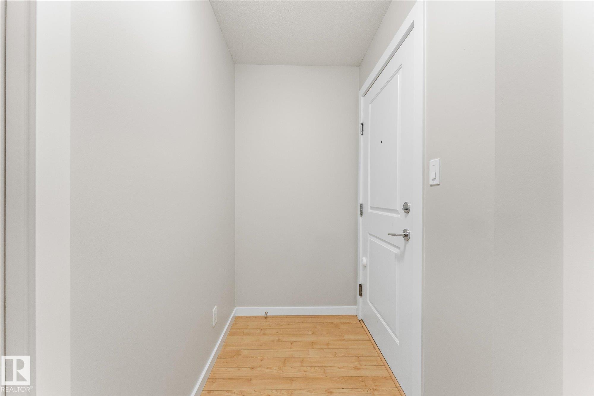 Welcome to Radiance in North Edmonton's desirable Eaux Claires community! This 2-bed, 2-bath END UNIT features modern cabinetry, quartz countertops, stainless steel appliances, fresh paint, and laminate flooring throughout with tile in the bathrooms. Enjoy TITLED HEATED UNDERGROUND PARKING (stall #87 near entry) and a private patio with natural gas BBQ hookup. The building offers elevator access and secure key-fob entry. Pets allowed (two max, dogs up to 17" shoulder). Steps from Save-On-Foods, Shoppers, restaurants, and Eaux Claires Transit Centre, with quick access to 97 St, Anthony Henday, Yellowhead, and Downtown. Perfect for owners or investors seeking location, lifestyle, and value!