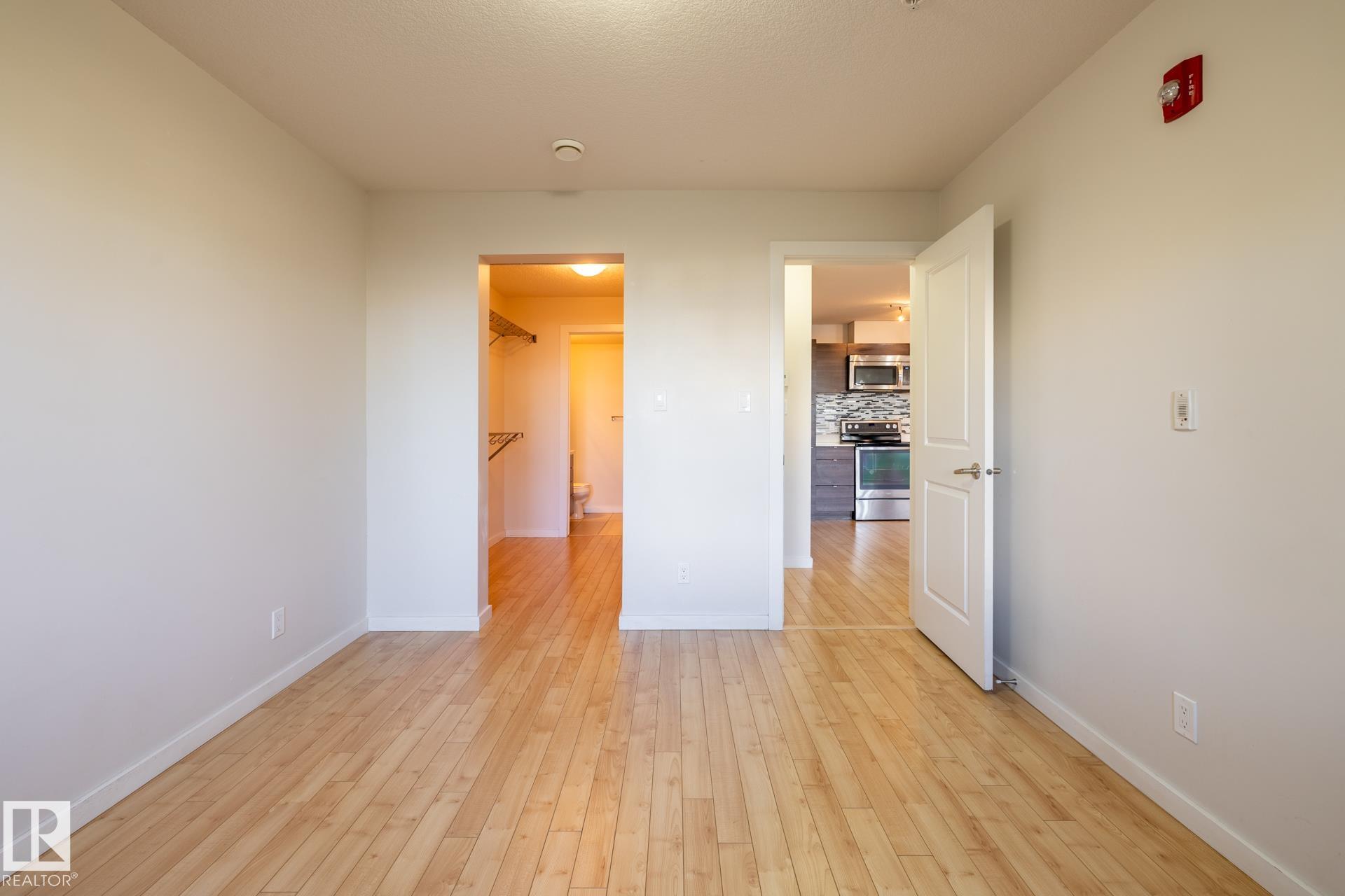 Perfectly situated just steps from grocery stores, coffee shops, restaurants, schools, and public transit--with quick access to the Henday--this main floor unit offers the ultimate in everyday convenience. Inside, you'll love the open concept layout that fills with natural light from large windows, creating a bright and inviting atmosphere. The kitchen features sleek quartz countertops, rich espresso cabinetry, upgraded backsplash and stainless steel appliances, flowing seamlessly into a spacious dining and living area--perfect for entertaining or relaxing. The primary bedroom boasts a generous walk-through closet leading to a stylish 4-piece ensuite with a tub and shower combo. A second bedroom sits privately across from the ensuite, ideal for guests or an office. Completing this beautiful home are in-suite laundry, an additional 4-piece bath, 1 titled underground parking stall, and a private balcony with a gas line--perfect for BBQs and enjoying fresh air right at ground level. Don't miss out!