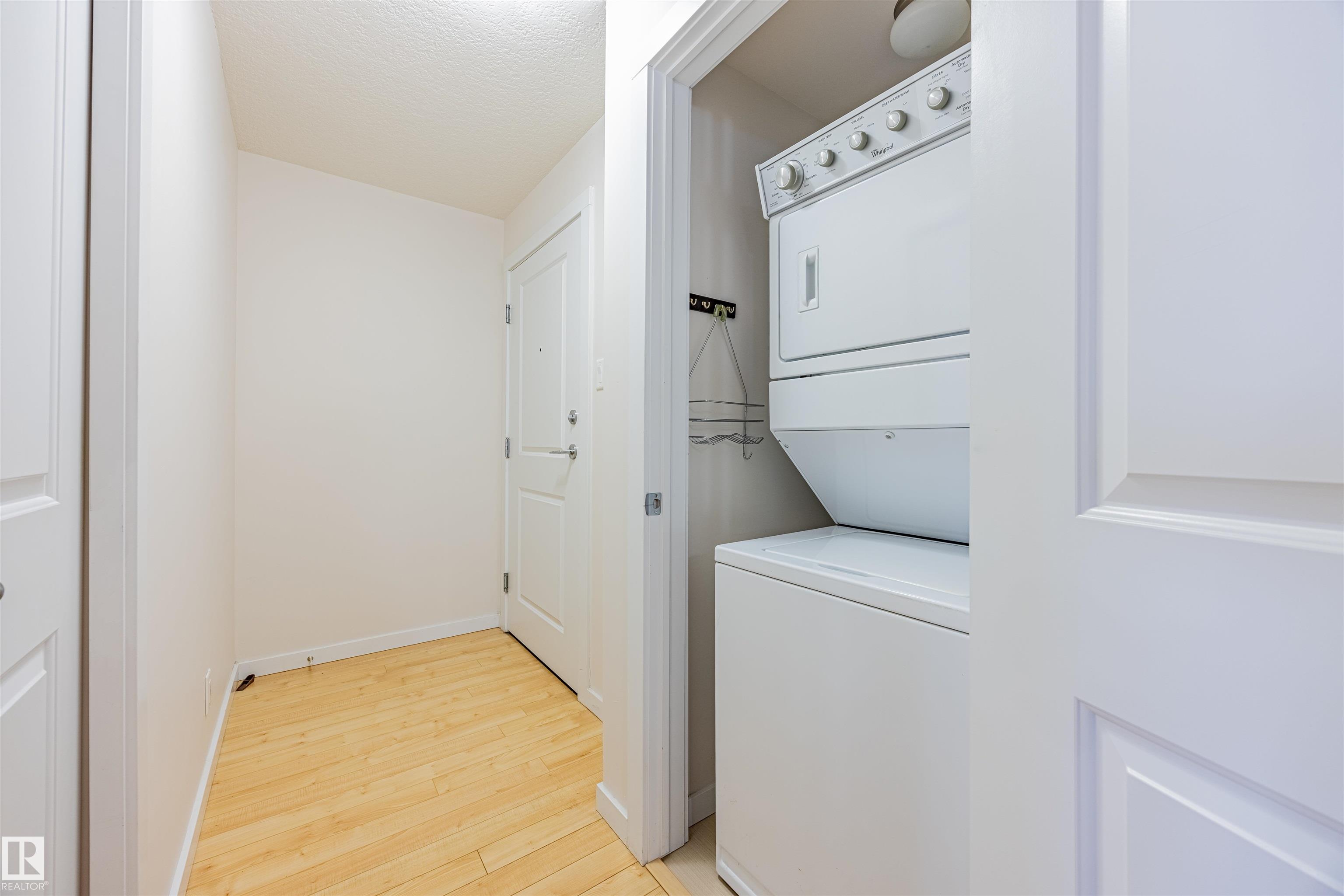 Are you looking for a well-maintained home in a solid condo complex? Here you go! This 2 bedroom 2 bath home features upgraded laminate flooring, a gorgeous quartz island w/ eating bar & TOP FLOOR views! This modern & freshly painted home features an open concept layout where you'll see the well laid out kitchen with lots of storage space, quartz countertops, stainless appliances & the large island w/ space for 4 stools. Opening onto the great room, you'll see this condo is made for sun lovers w/ SOUTH EXPOSURE windows galore! There is plenty of space to dine, entertain, enjoy & relax. The primary bedroom is very spacious with it's own dual sided walk in closet & ensuite. The 2nd bedroom & main bath are on the opposite side which is great for privacy. There is also insuite laundry & a large patio - the most amazing space for your garden & flowers to grow. Also included is a secure, underground parking stall. Steps to transit, shopping & Henday. Welcome HOME! Visit the REALTOR©'s website for more details.