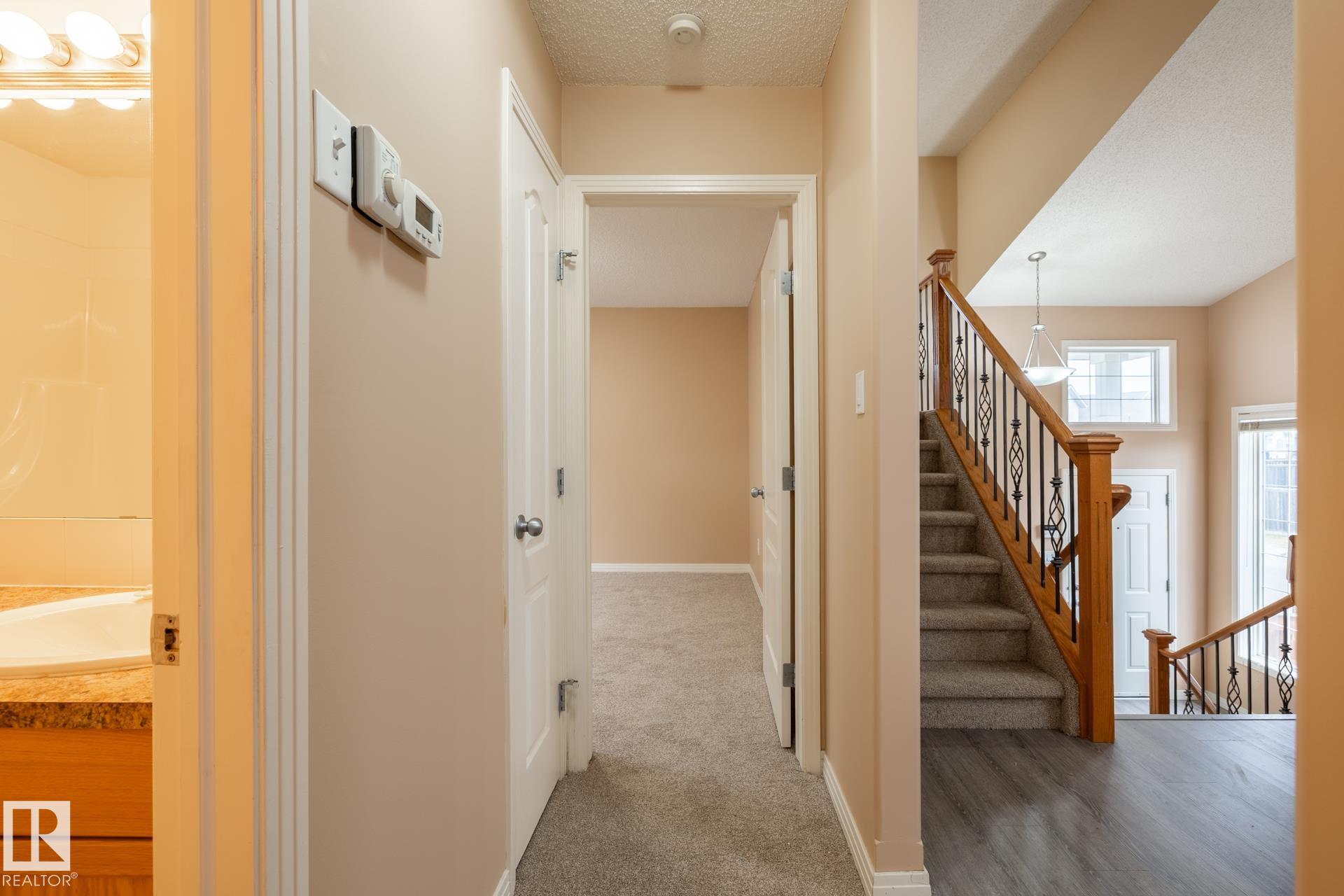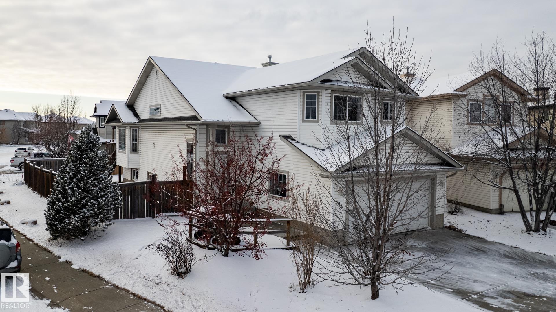 Bright and open plan. BRAND NEW Shingles Nov 25). Spacious kitchen open to the dining room with access to raised deck and back yard. "Brandon IV" Model by Bedrock Homes. BRAND NEW (Oct 25) Vinal plank floors throughout the main floor kitchen, dinning, living room, 2 bathrooms and foyer. BRAND NEW (Oct 25) Carpet in all 4 bedrooms and Lower level Family Room. Large bay window and good sized walk in closet in primary bedroom also includes a good sized ensuite with a double soaker tub and separate Shower all on your own private floor. 2nd and 3rd Bedrooms on main floor. Fully Finished bright Basement with 4th Bedroom huge Family Room, full Bathroom and dedicated laundry room. Central Vacuum System, Gas line in fully insulated and drywalled Double Attached Garage Ready to be heated. Fully fenced yard with large Deck with views onto the Park. All this just a hop skip and a jump to parks, Shops, and more. Great home for a growing family. Move in before Christmas.