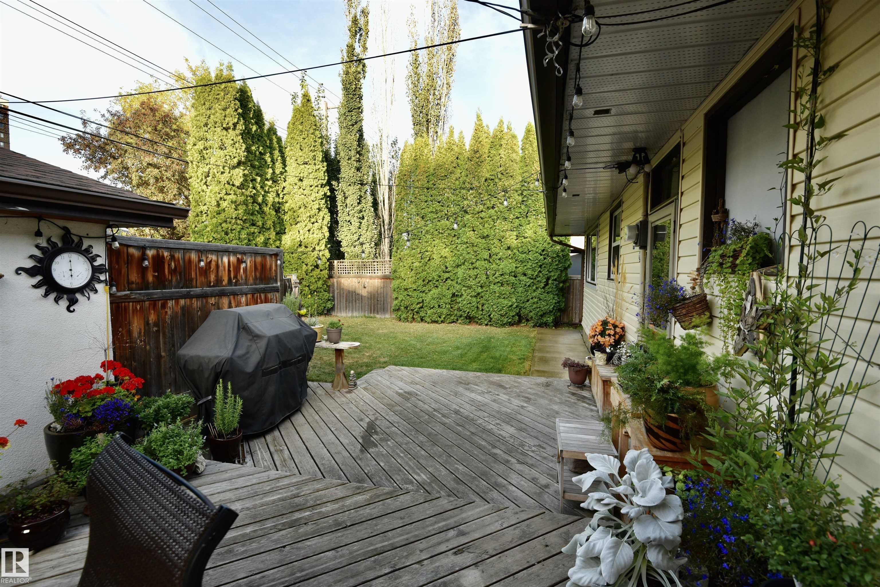 Quietly nestled amongst mature trees in family friendly Old Glenora. Located close to river valley and nature's trail system. Upgraded 1435 sqft bungalow. Bright natural light through large windows and an airy floor plan. Hardwood floors, gas fireplace, newer windows, new HWT, new eaves troughing, Kitchen with gas stove, oak cabinets and vinyl plank flooring. Oversized primary bedroom. Main floor bathroom with upgraded walk-in shower. Large recreation room on sub-floor in basement. Outdoor entertaining on the tiered backyard deck in private setting. Rear access double garage off paved alley. A short walk to highly respected Glenora Elementary School. Near future LRT station. Just minutes to downtown.