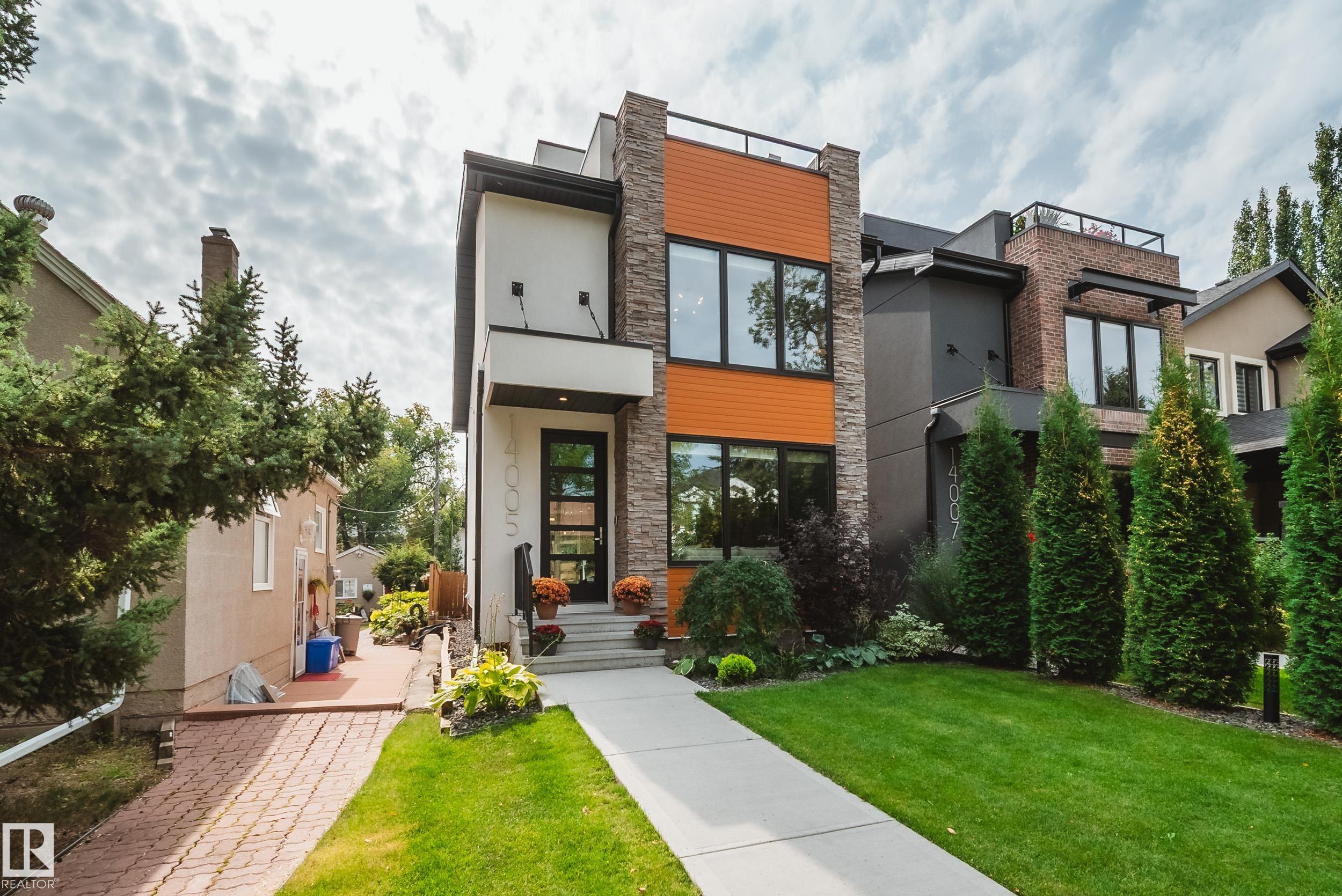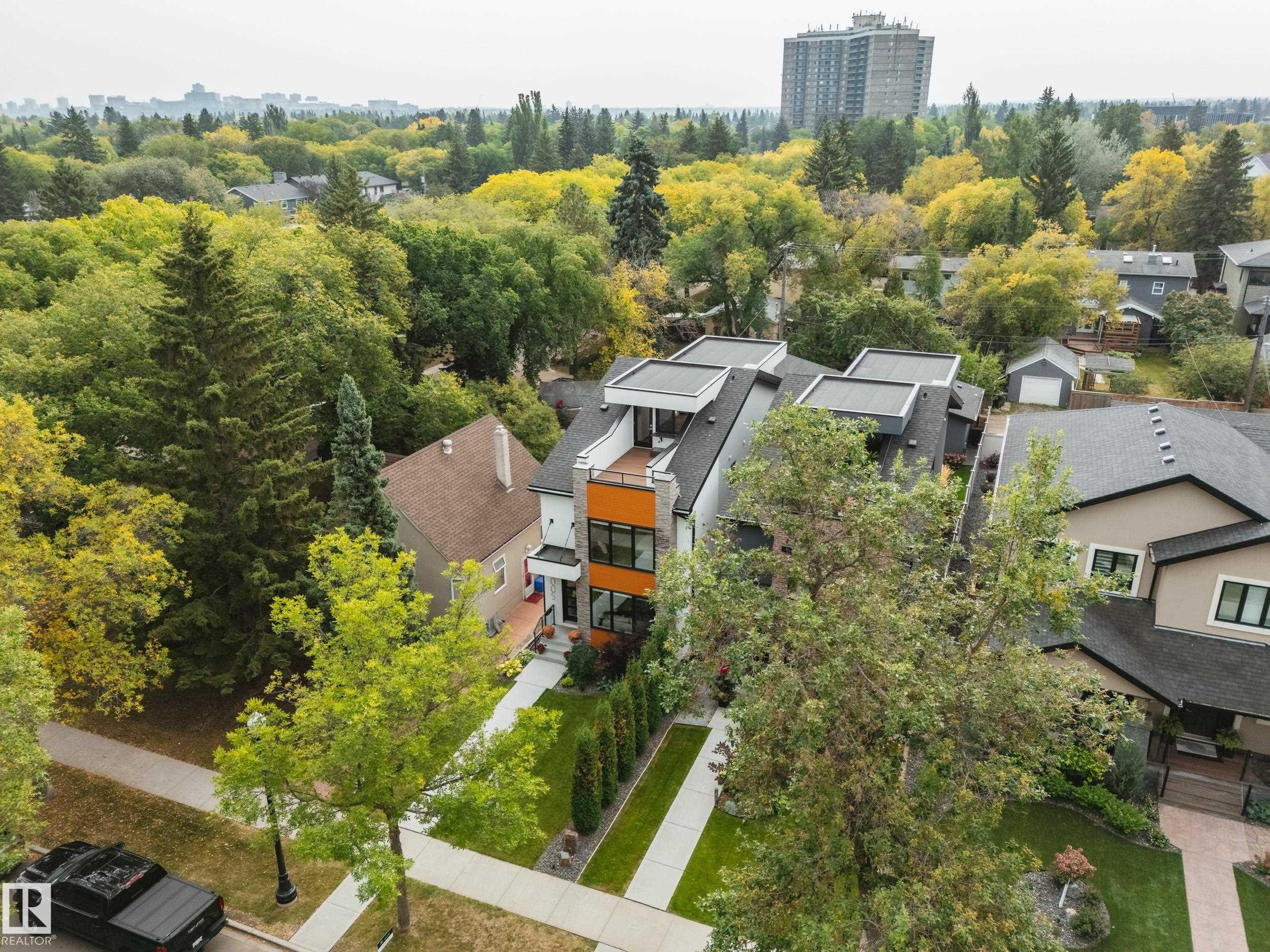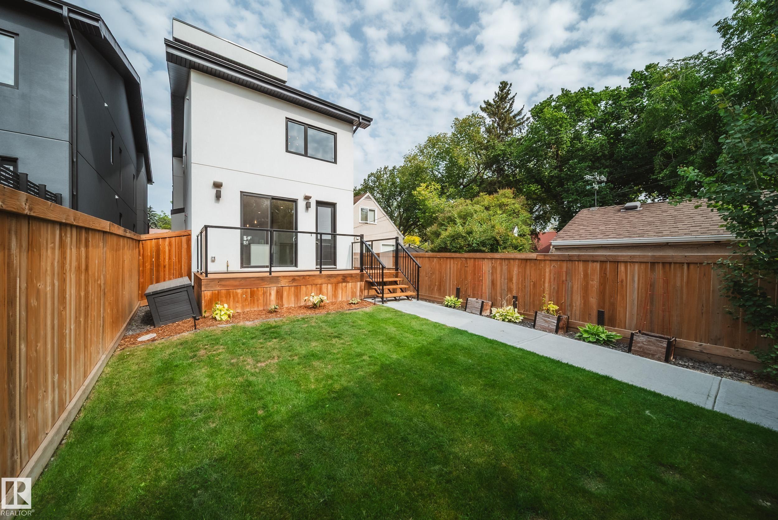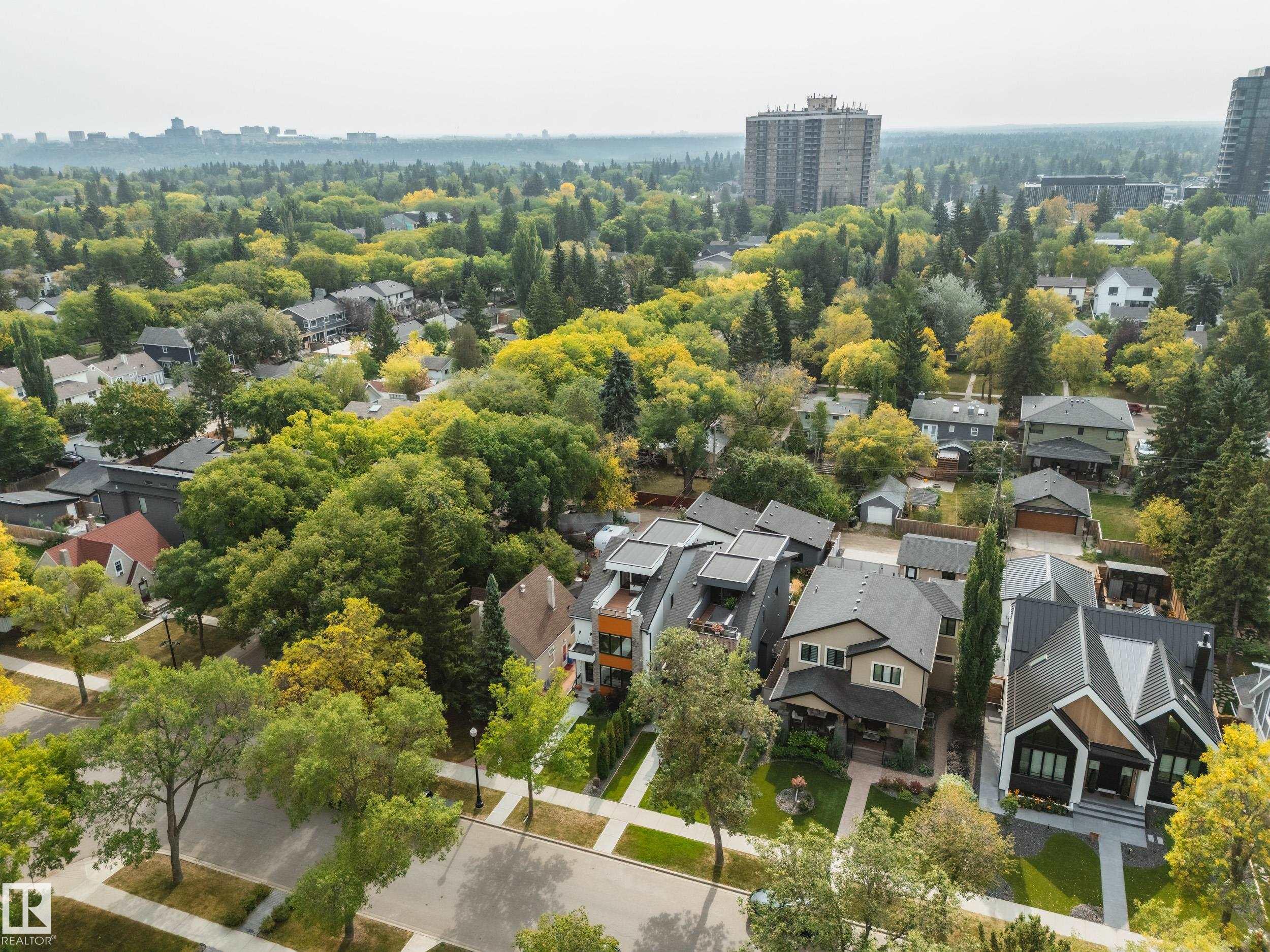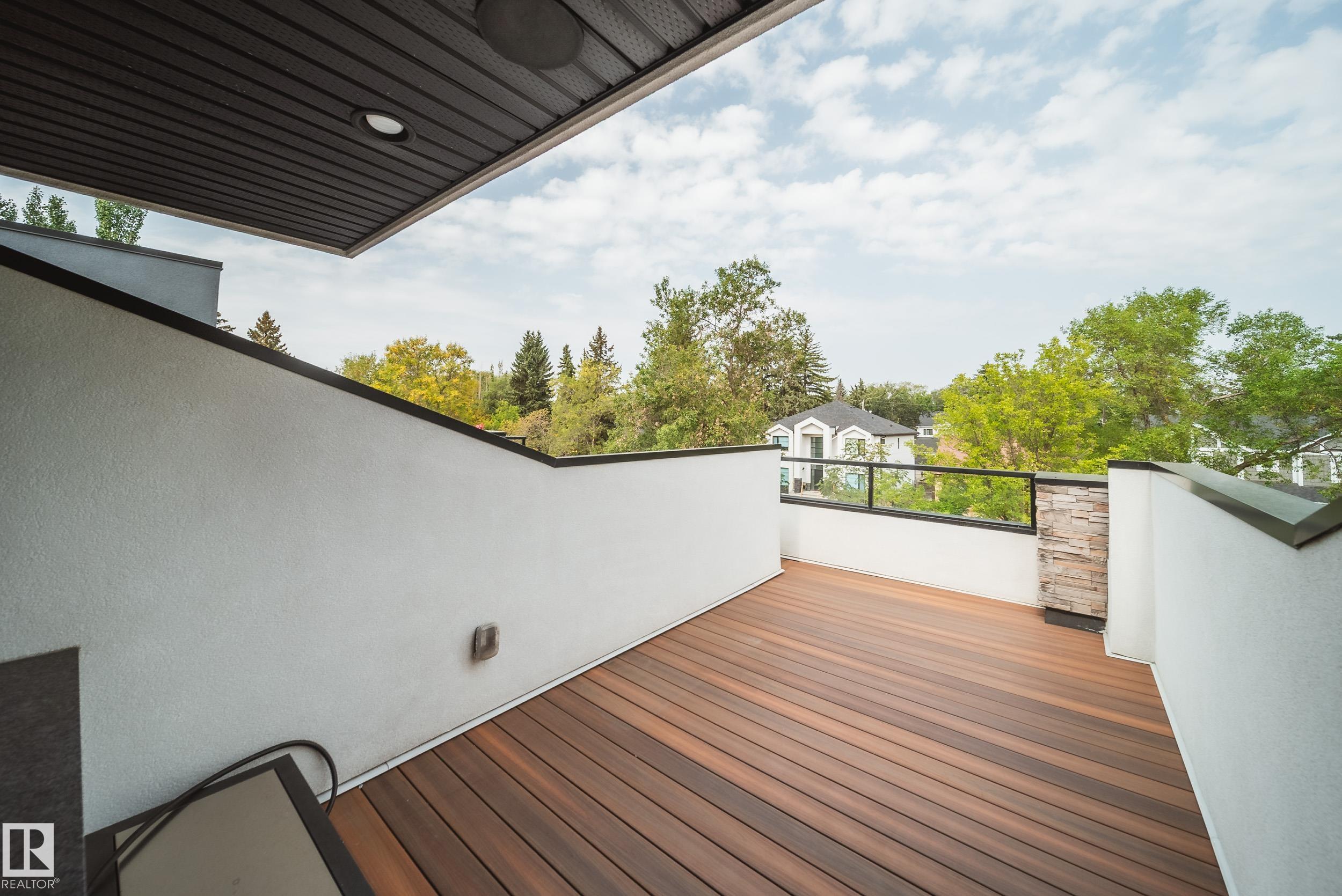 This 2,305 sq. ft. 2.5-storey stunner sits in Edmonton's most coveted neighbourhood--GLENORA & features a total of 4 beds, 4 full baths & 2 half baths. Designed for modern living, it blends minimalism, comfort, & elegance with striking glass details throughout. The main floor showcases an open layout anchored by a 13-ft quartz island, complemented by a premium stainless steel appliance package. A floor-to-ceiling glass wine wall highlights the dining area, while an open-riser staircase encased in glass adds architectural flair. Upstairs, the primary retreat impresses with sliding glass barn doors leading to a spa-inspired ensuite with freestanding tub & custom shower. Two additional bedrooms, each with ensuites, plus handy same-level laundry complete this floor. The third level offers an urban lounge with seamless access to an indoor/outdoor rooftop patio boasting skyline views. Fully finished basement has rec area & 4th bed/bath. Built in sound + minutes from the River Valley, Ice District, and downtown.