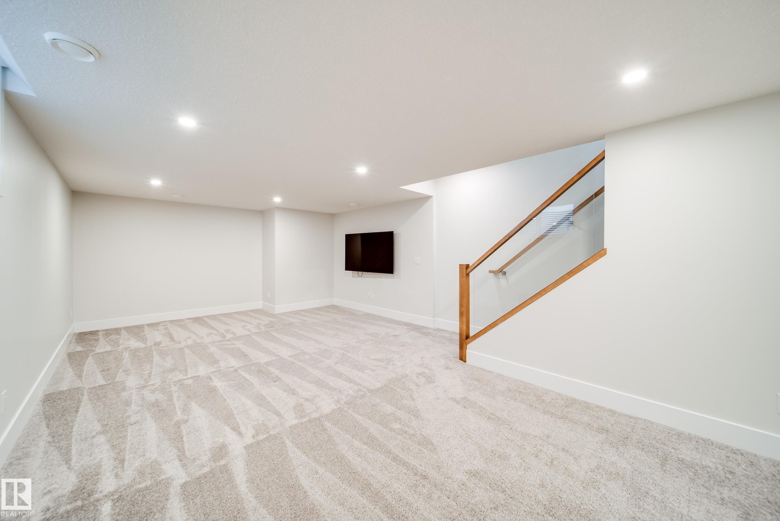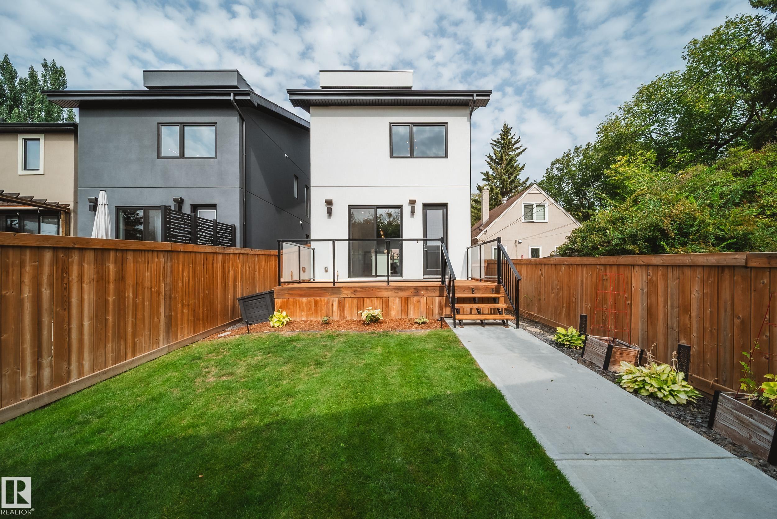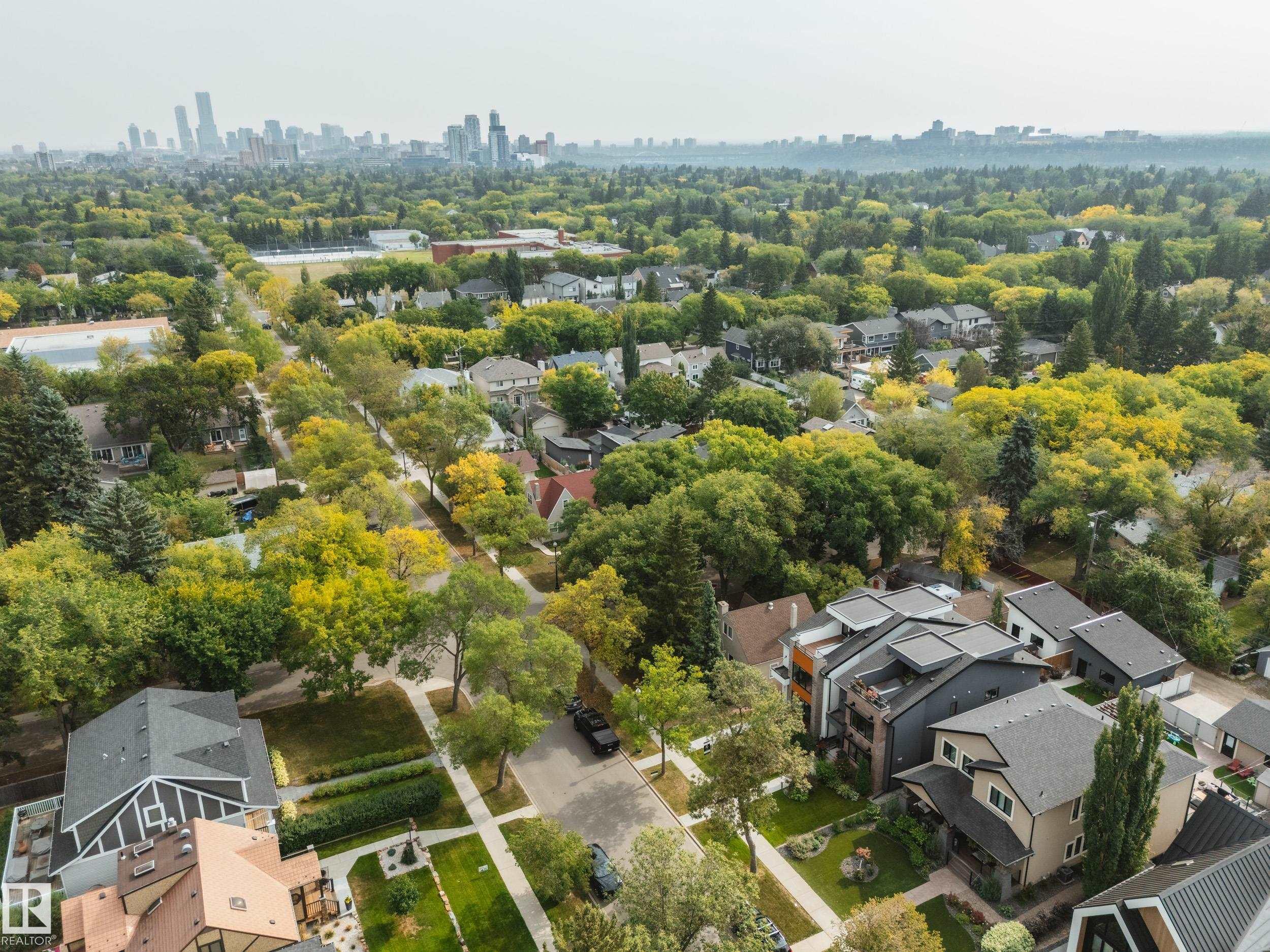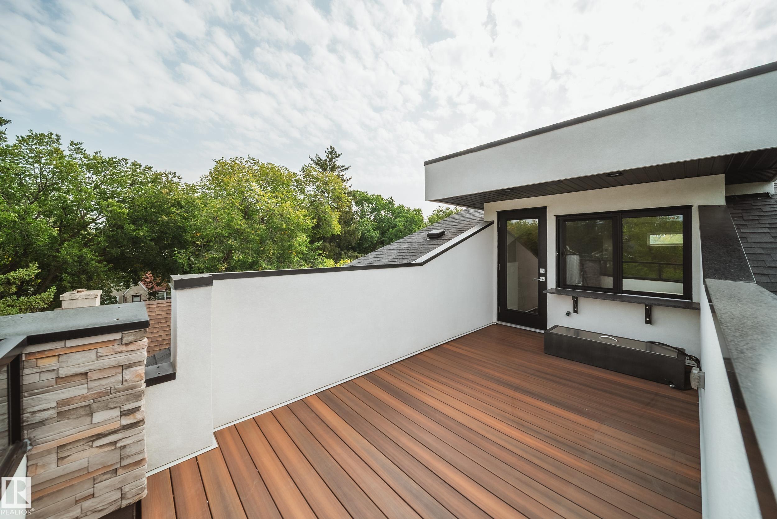 This 2,305 sq. ft. 2.5-storey stunner sits in Edmonton's most coveted neighbourhood--GLENORA & features a total of 4 beds, 4 full baths & 2 half baths. Designed for modern living, it blends minimalism, comfort, & elegance with striking glass details throughout. The main floor showcases an open layout anchored by a 13-ft quartz island, complemented by a premium stainless steel appliance package. A floor-to-ceiling glass wine wall highlights the dining area, while an open-riser staircase encased in glass adds architectural flair. Upstairs, the primary retreat impresses with sliding glass barn doors leading to a spa-inspired ensuite with freestanding tub & custom shower. Two additional bedrooms, each with ensuites, plus handy same-level laundry complete this floor. The third level offers an urban lounge with seamless access to an indoor/outdoor rooftop patio boasting skyline views. Fully finished basement has rec area & 4th bed/bath. Built in sound + minutes from the River Valley, Ice District, and downtown.