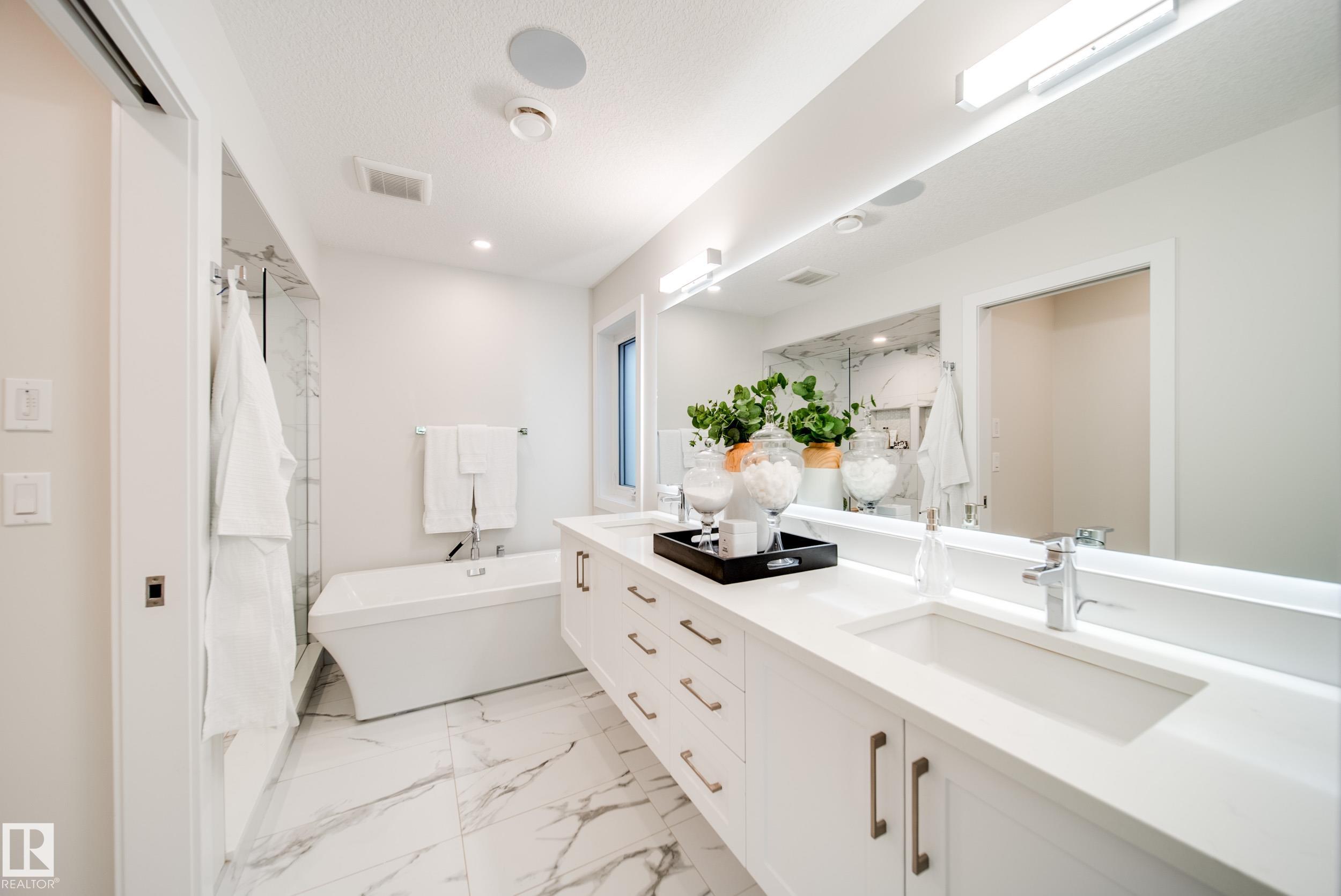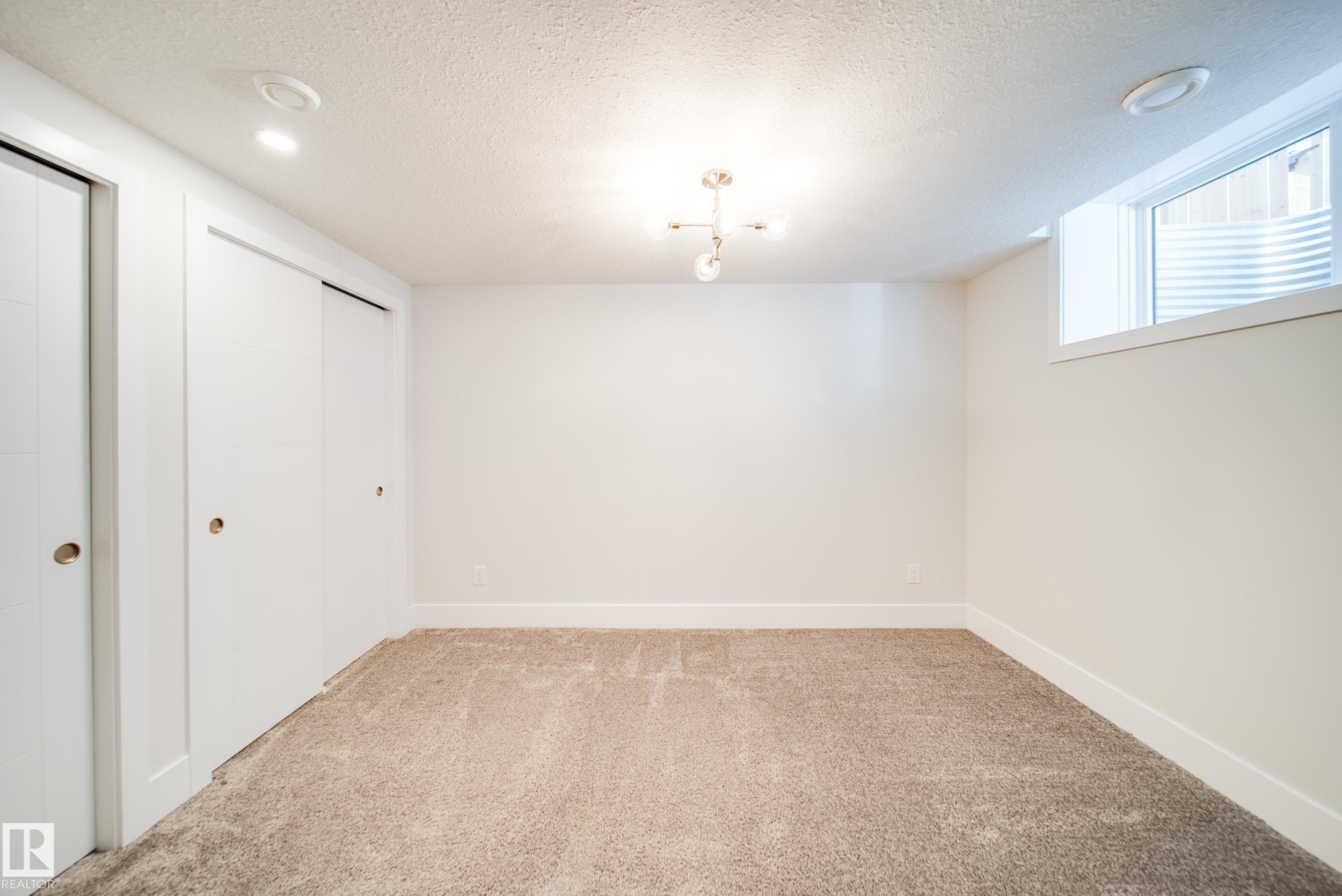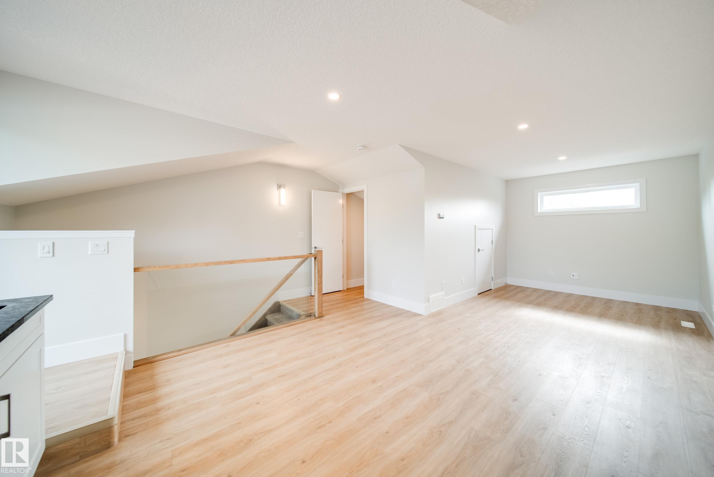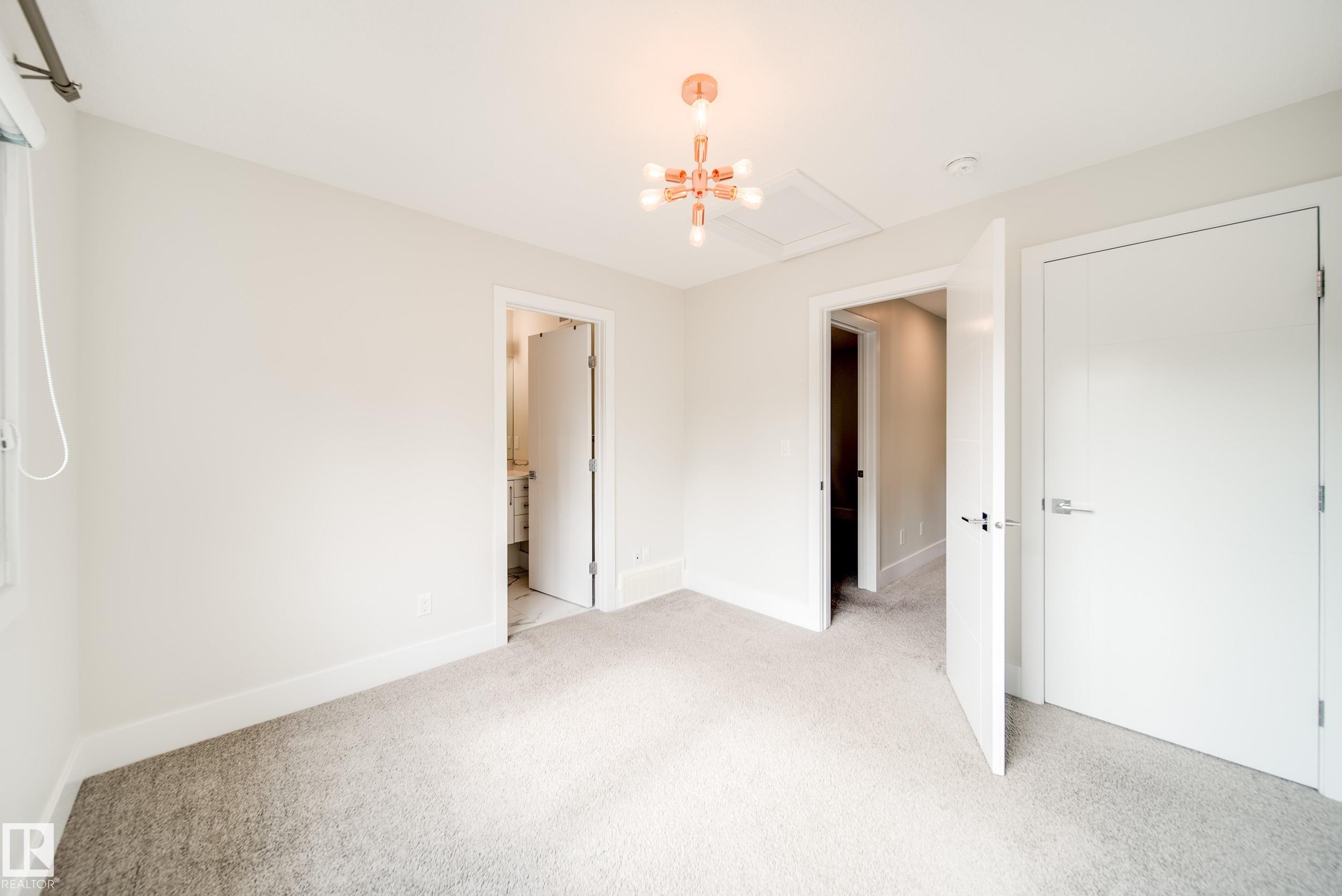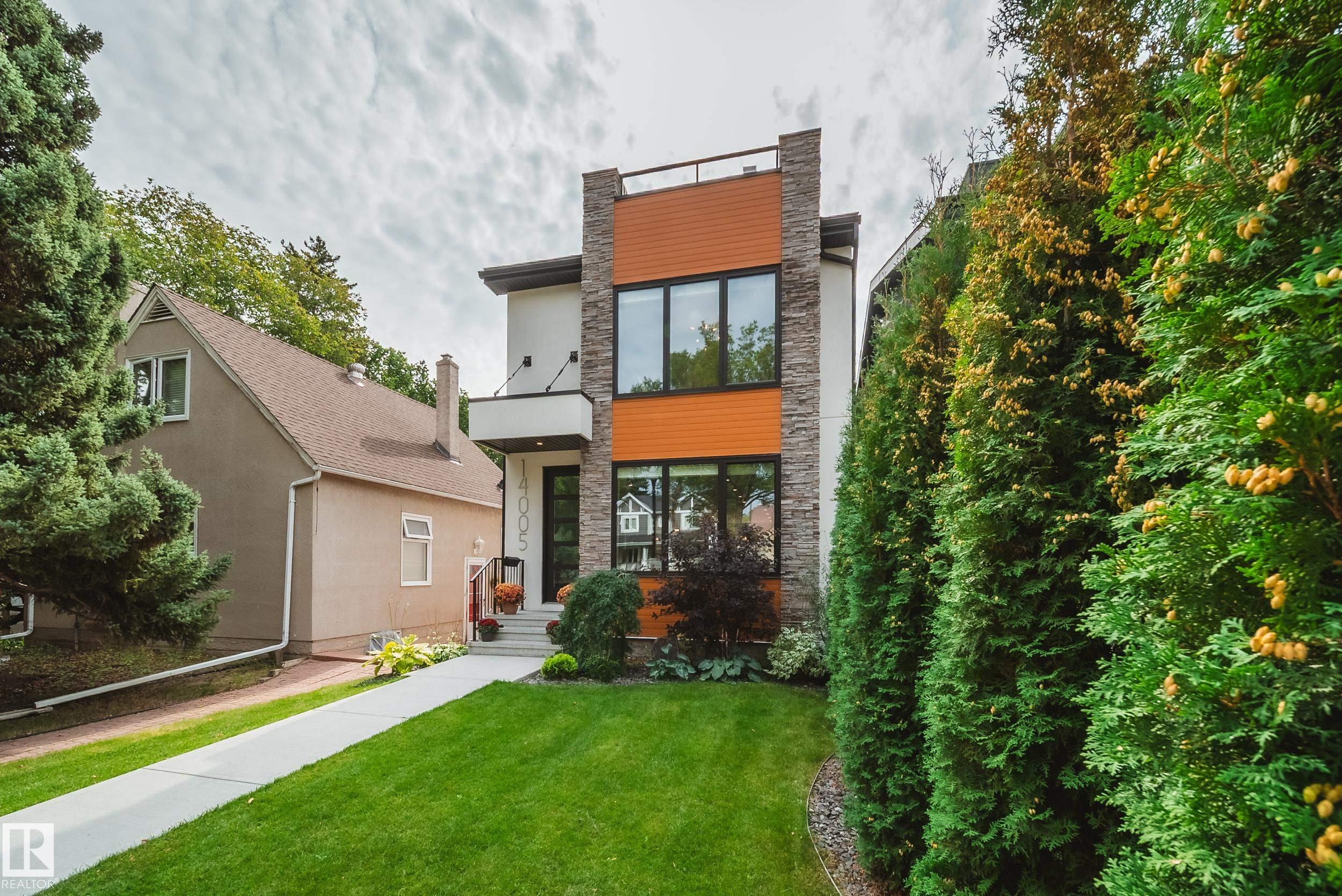 This 2,305 sq. ft. 2.5-storey stunner sits in Edmonton's most coveted neighbourhood--GLENORA & features a total of 4 beds, 4 full baths & 2 half baths. Designed for modern living, it blends minimalism, comfort, & elegance with striking glass details throughout. The main floor showcases an open layout anchored by a 13-ft quartz island, complemented by a premium stainless steel appliance package. A floor-to-ceiling glass wine wall highlights the dining area, while an open-riser staircase encased in glass adds architectural flair. Upstairs, the primary retreat impresses with sliding glass barn doors leading to a spa-inspired ensuite with freestanding tub & custom shower. Two additional bedrooms, each with ensuites, plus handy same-level laundry complete this floor. The third level offers an urban lounge with seamless access to an indoor/outdoor rooftop patio boasting skyline views. Fully finished basement has rec area & 4th bed/bath. Built in sound + minutes from the River Valley, Ice District, and downtown.
