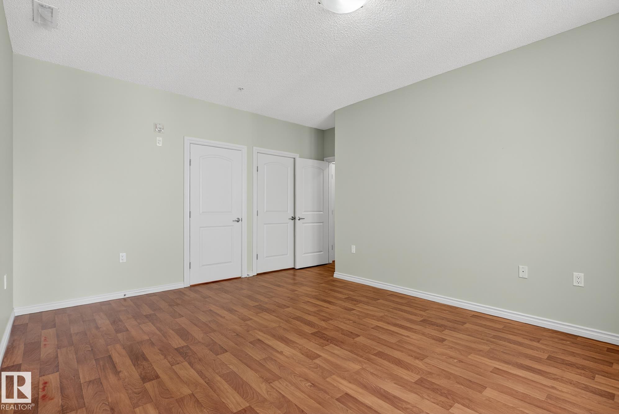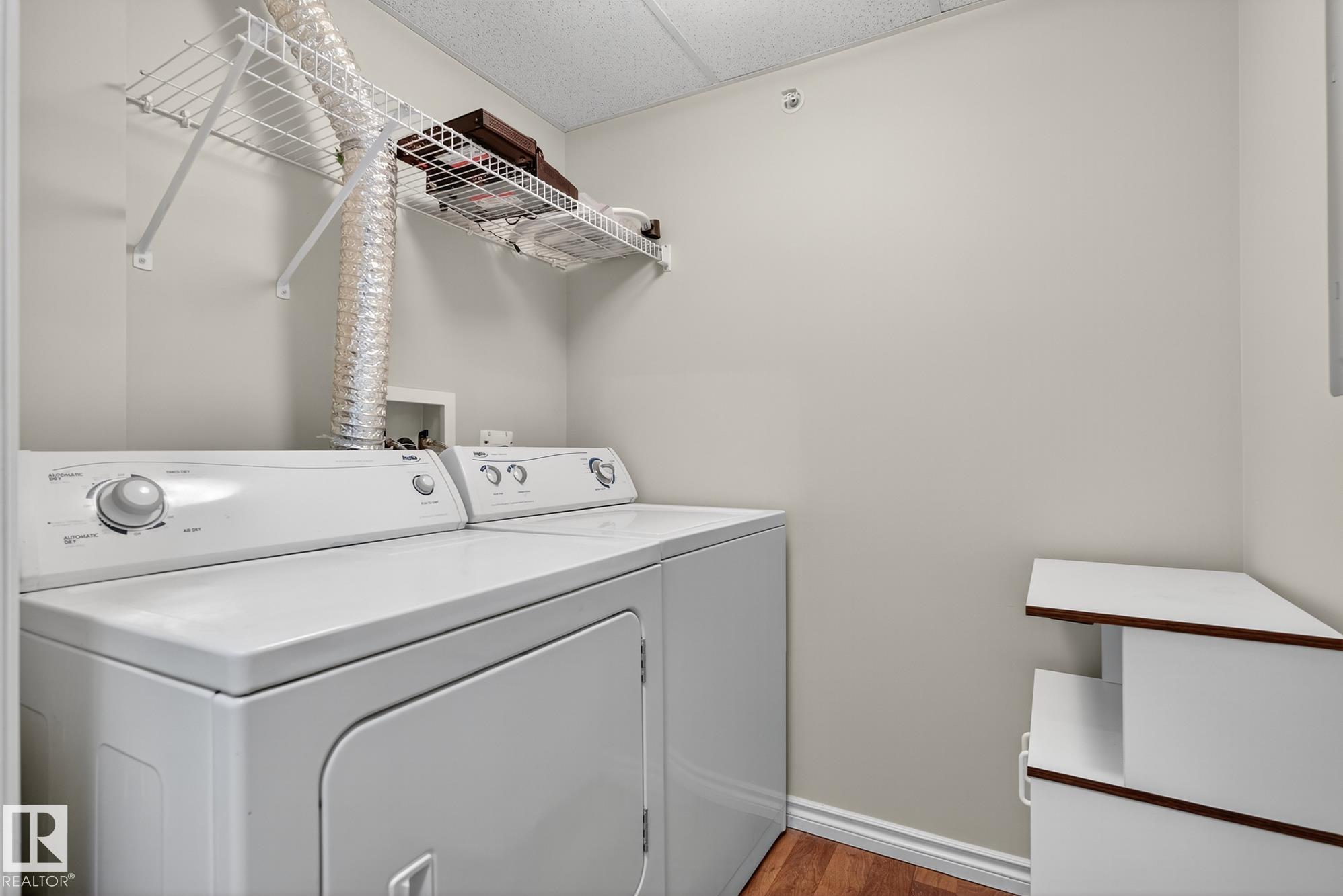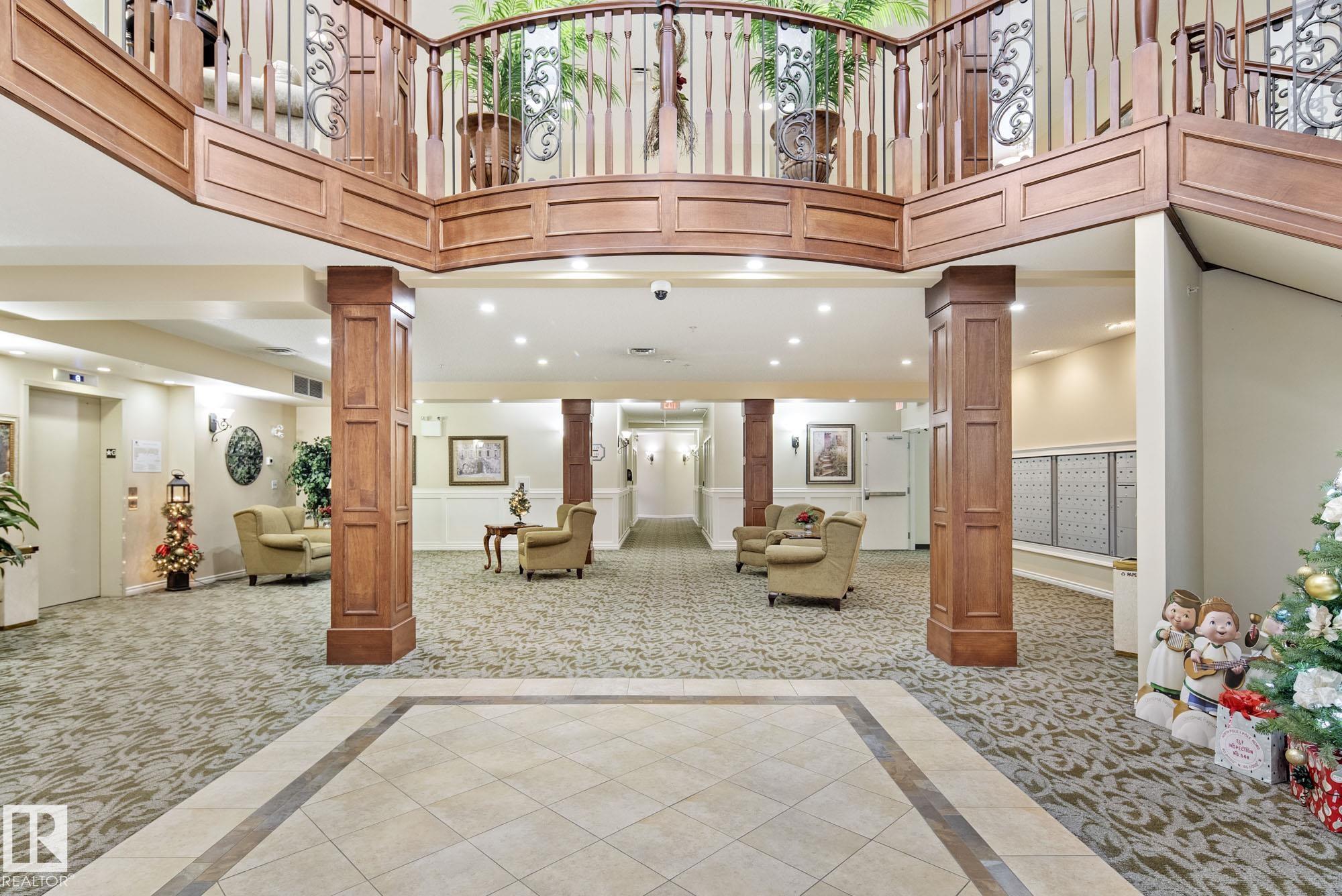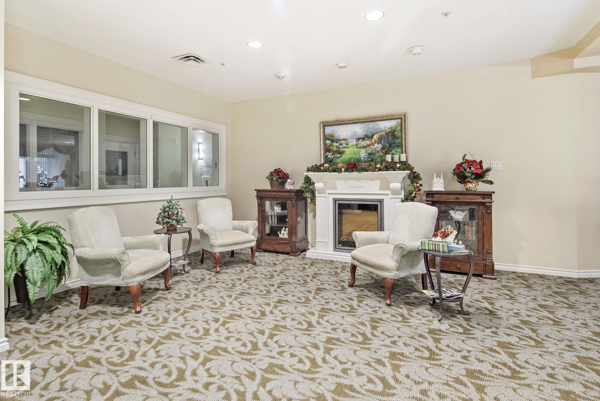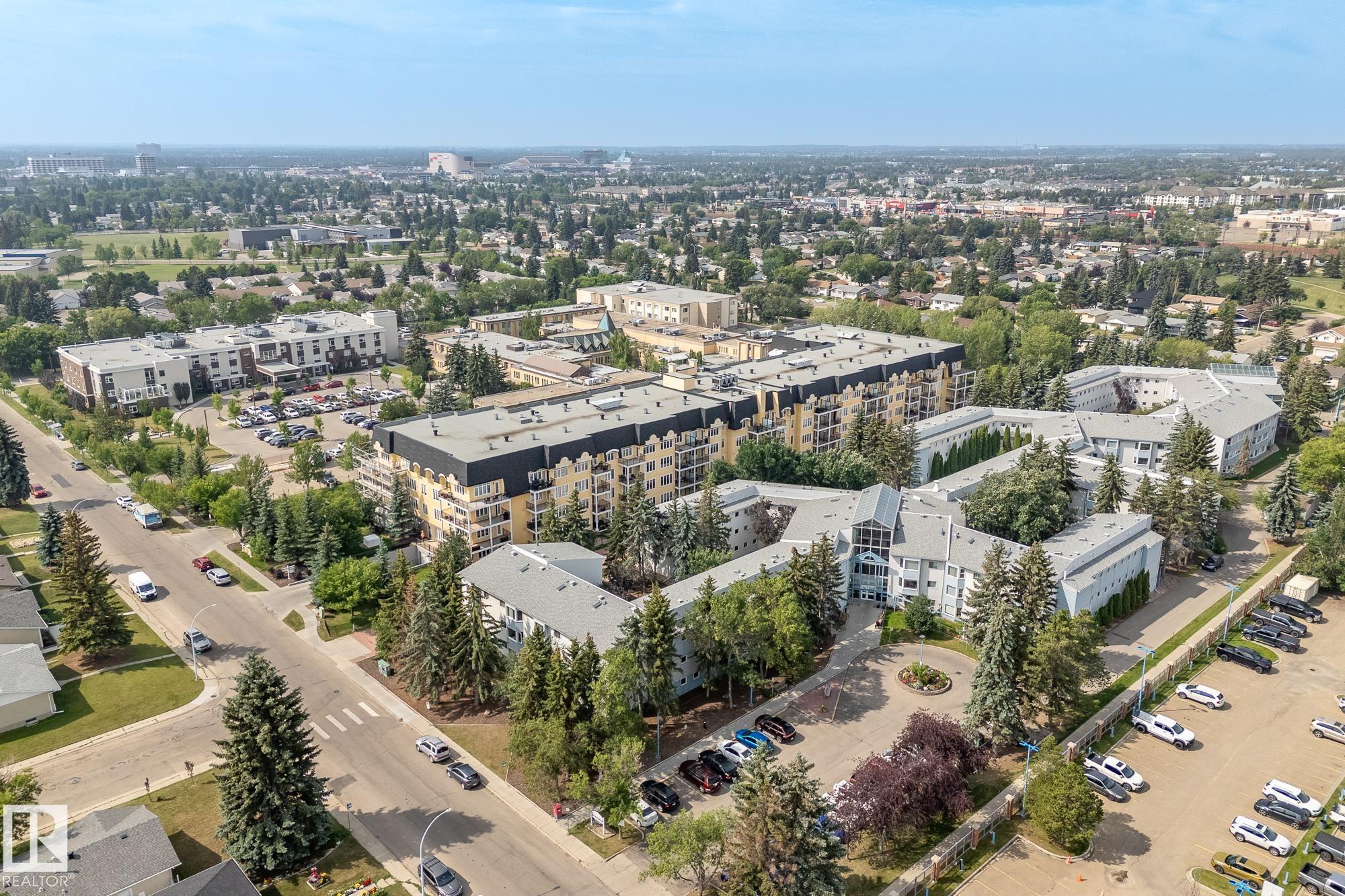 Welcome to Unit 312 at The Vanier, an exceptional 2-bedroom + Den, 2-bathroom condo in one of Edmonton's premier adult living communities. Ideally located just 2.5 km from the Misericordia Community Hospital, and close to public transit and shopping. This south-facing unit offers a bright, sunny balcony that overlooks the beautifully landscaped courtyard. Thoughtfully designed for accessibility, the building includes features suitable for wheelchairs, walkers, or scooters. Residents enjoy a strong sense of community, with shared spaces including a social room, library, puzzle room, fitness centre, and a warm, welcoming lobby perfect for visiting with neighbours. Inside the unit, you'll find a spacious, wheelchair-friendly kitchen with well-maintained appliances and high-end, non-slip cushioned lino flooring that's gentle on the joints. The building is also pet-friendly with board approval, and the unit offers 2 titled parking stalls, one being outside.