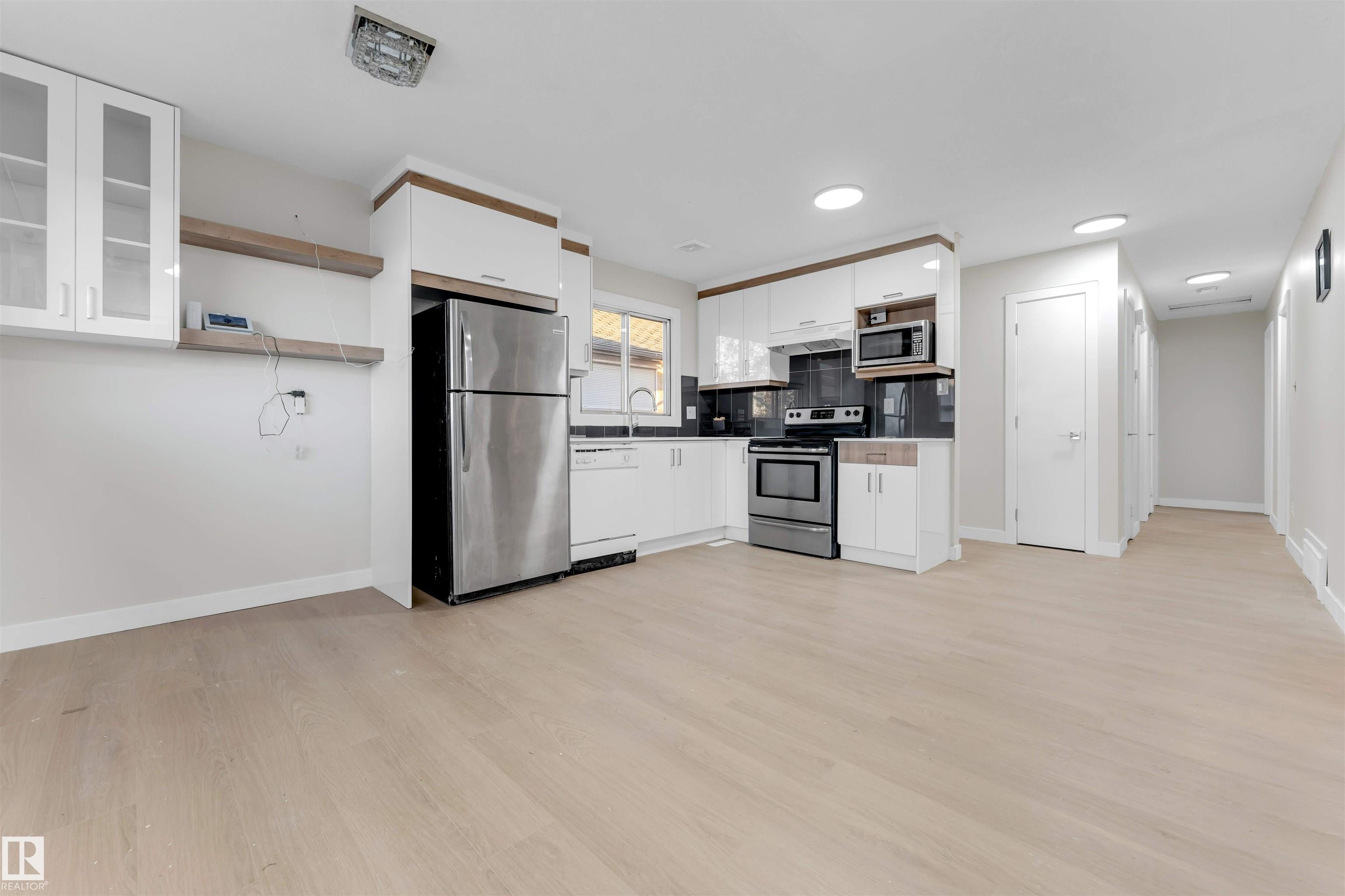 This fully renovated 4-bedroom, 2-bath bungalow sits on a generous 5,441+ sq ft lot in the highly desirable Glenwood community. Offering 1,063 sq ft of bright, modern living, the home features completely updated bedrooms, beautifully redesigned bathrooms, brand-new kitchen cabinets, quartz countertops, new stainless steel appliances, and upgraded lighting that enhances every room. The open layout creates a warm, inviting flow perfect for families and entertaining. Outside, the spacious detached garage provides excellent parking, storage, or hobby space. Ideally positioned near transit, schools, parks, shopping, and everyday amenities, this move-in-ready home delivers a perfect blend of style, comfort, and convenience in west Edmonton.