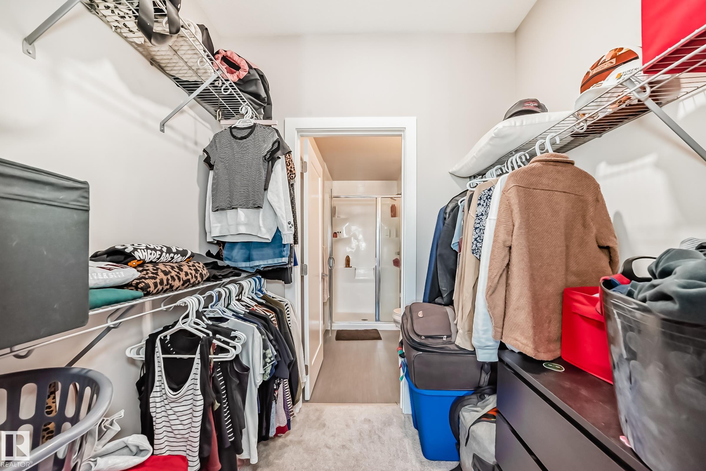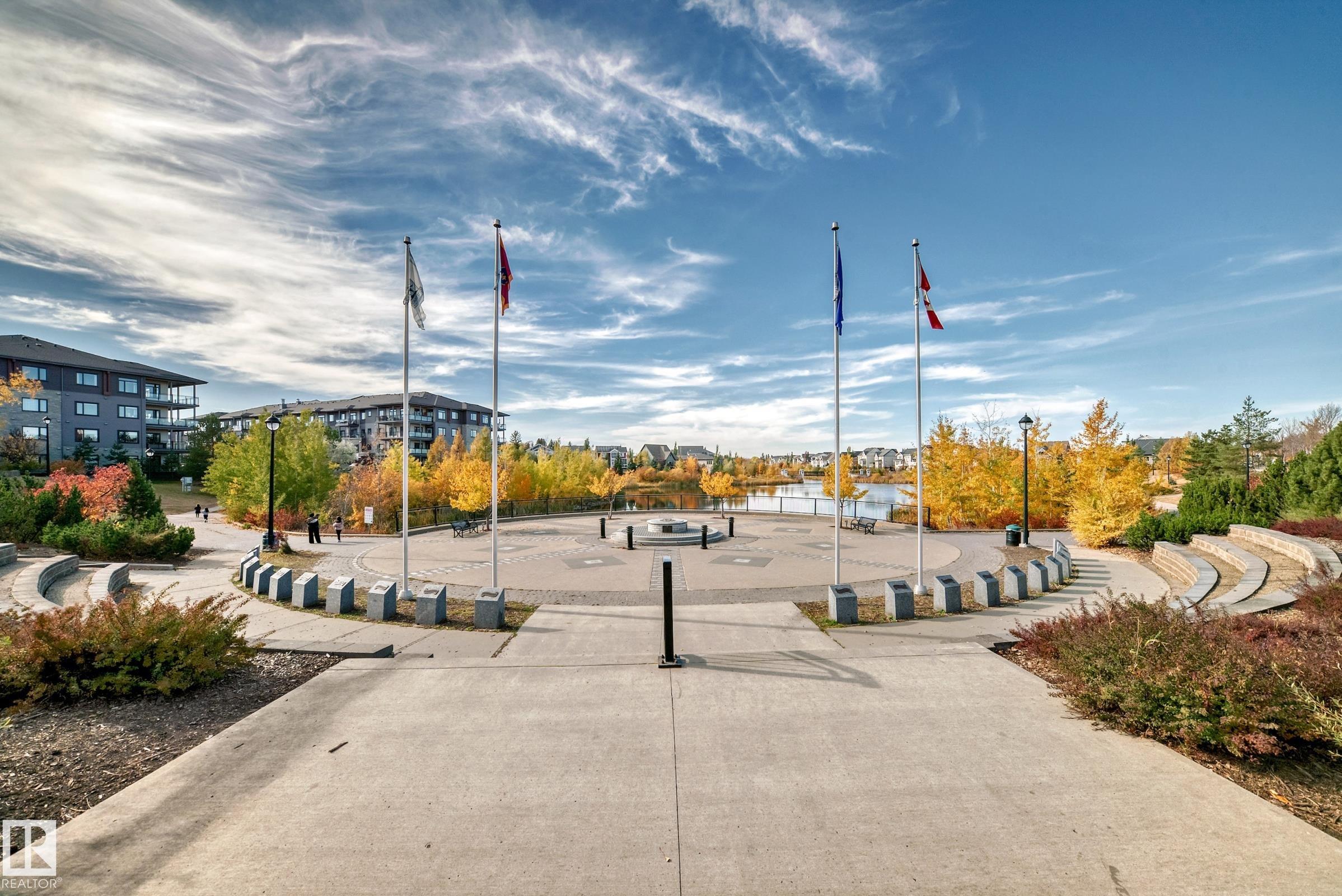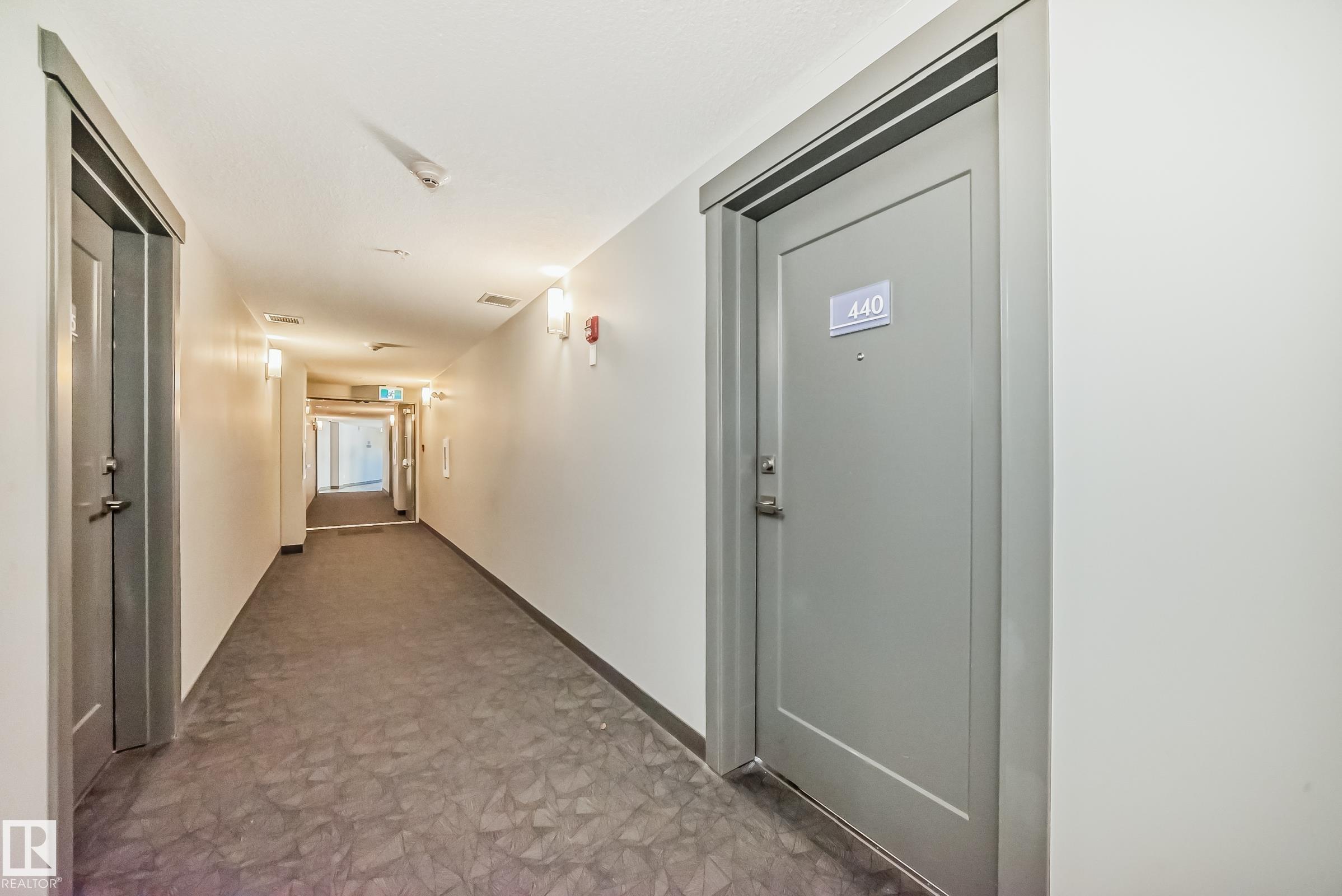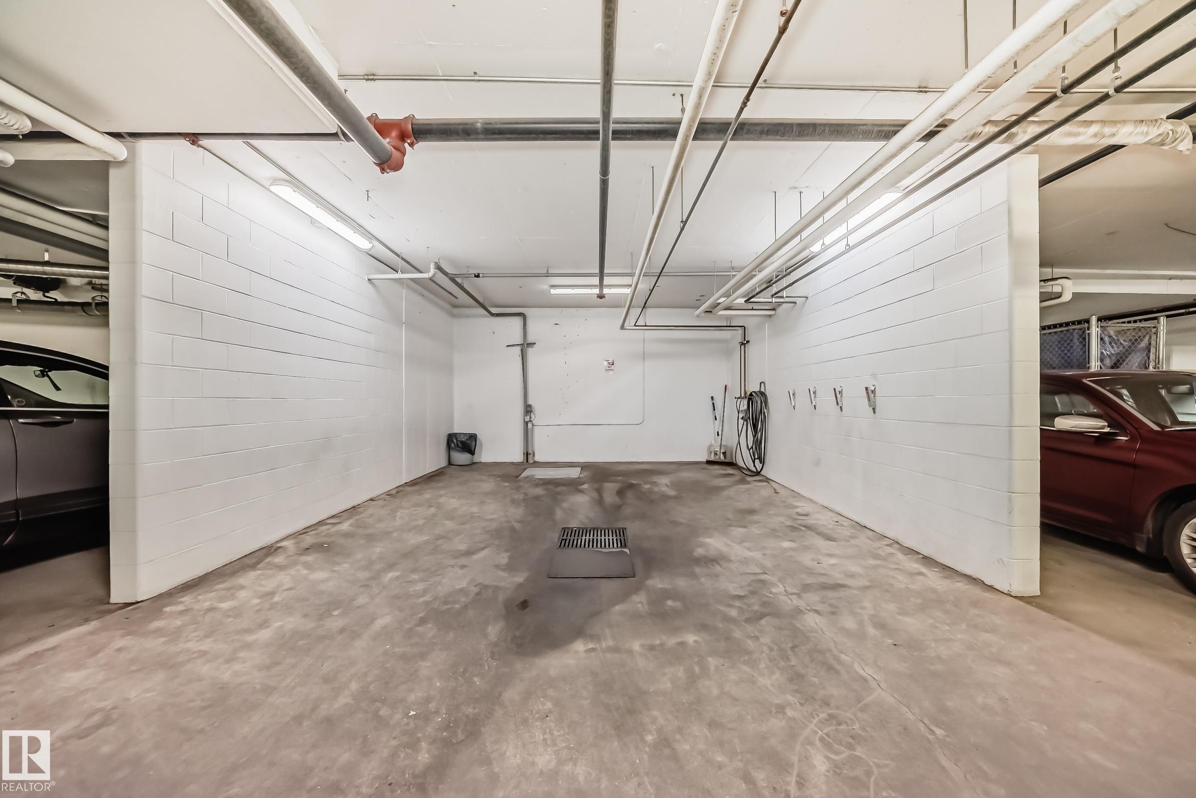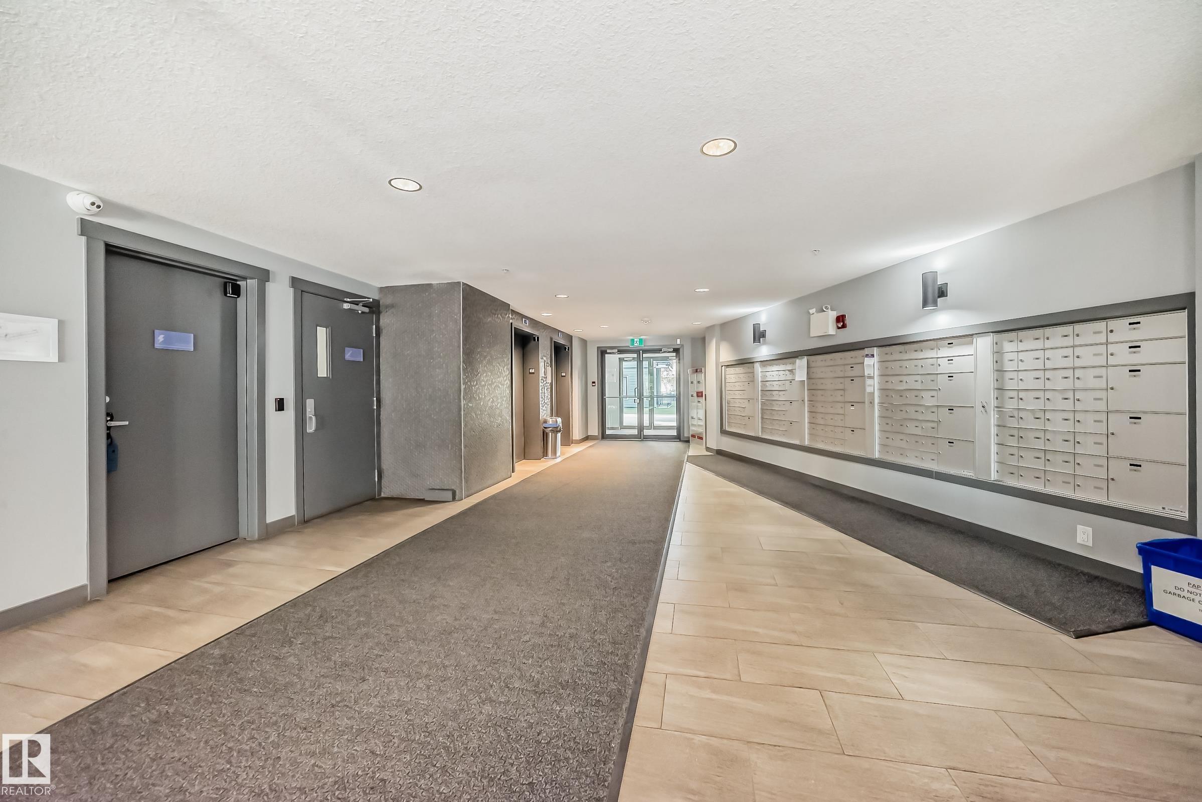 The Connaught at Griesbach - Welcome home to this stunning top-floor, north-facing 2 bedroom, 2 bathroom suite featuring a bright open-concept design and modern finishes throughout. With a builder's size of 1,000 sq. ft., this suite offers quartz countertops, soft-close cabinetry, and low-maintenance vinyl plank flooring in the main living areas, complemented by plush carpet in the bedrooms. The impressive two-storey living room is filled with natural light from expansive windows, with a bedroom conveniently located on each side for added privacy. Step out onto the spacious deck, complete with a natural gas hookup for barbecuing. Enjoy the many building amenities, including a fitness centre, social/amenity room, library, car wash bay, and secure key fob access. Additional features include Hunter Douglas window coverings, stainless steel appliances, in-suite laundry with stacking washer and dryer, and one underground parking stall. Building was treated with fire retardant spray during construction.