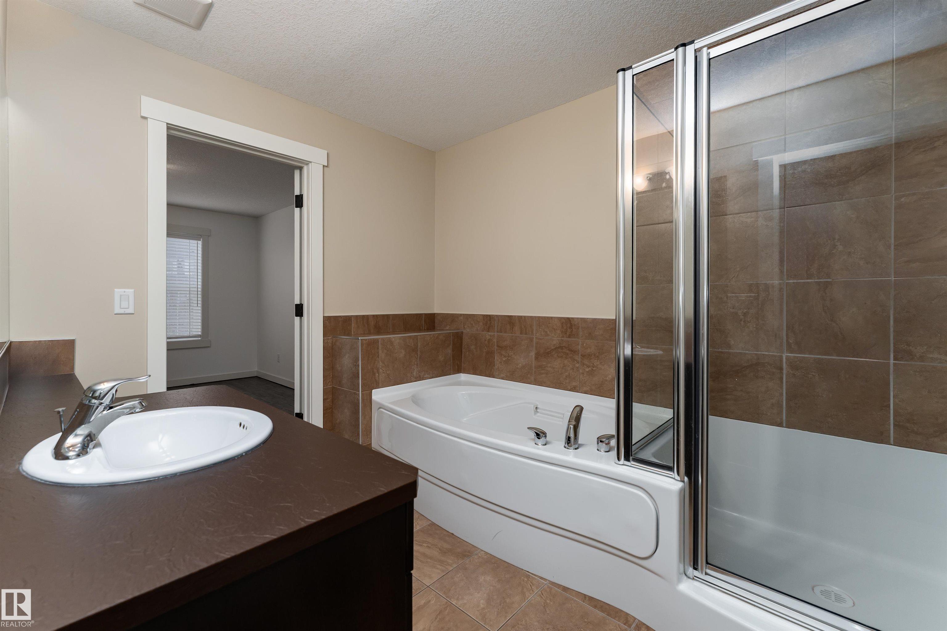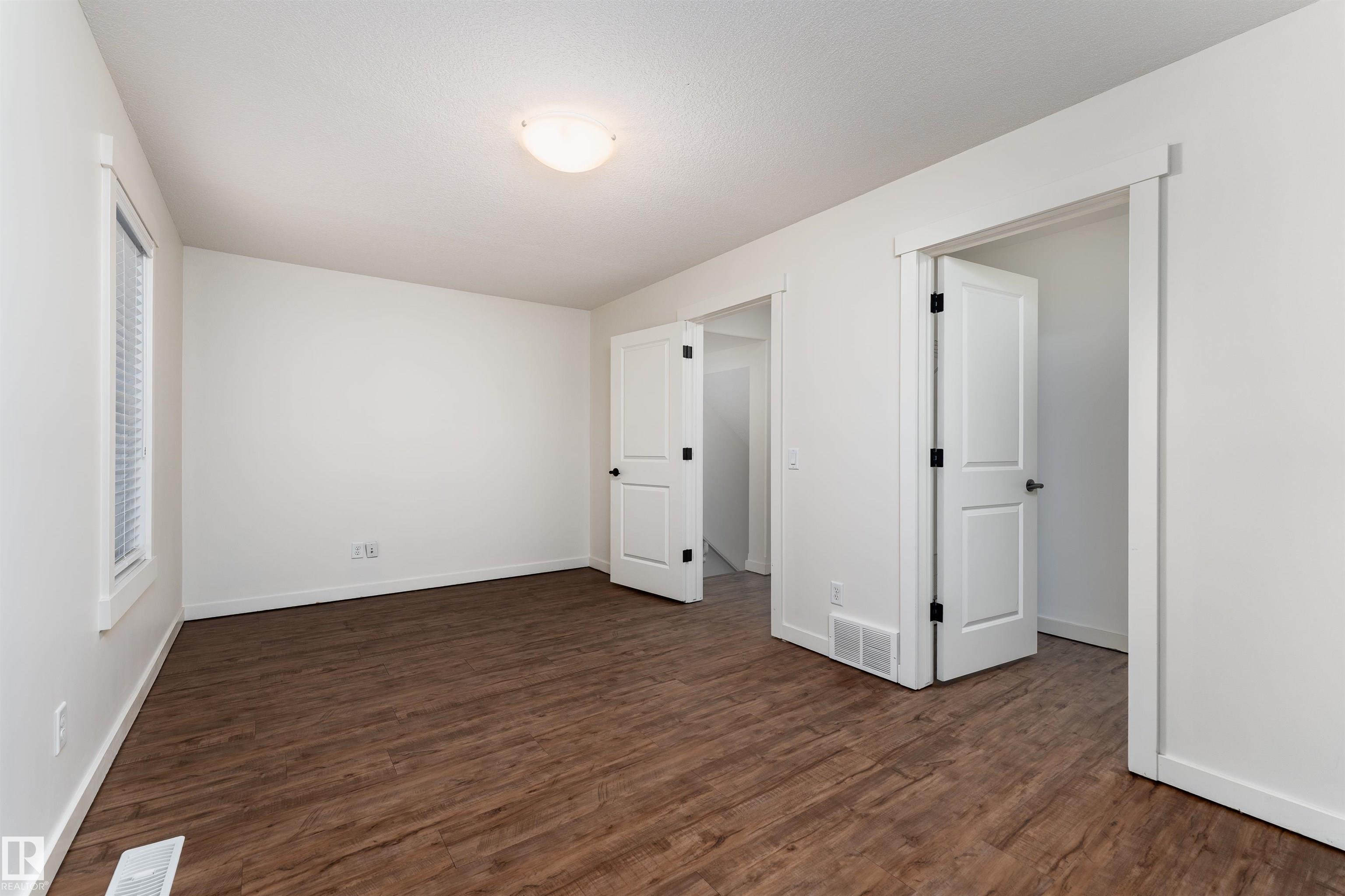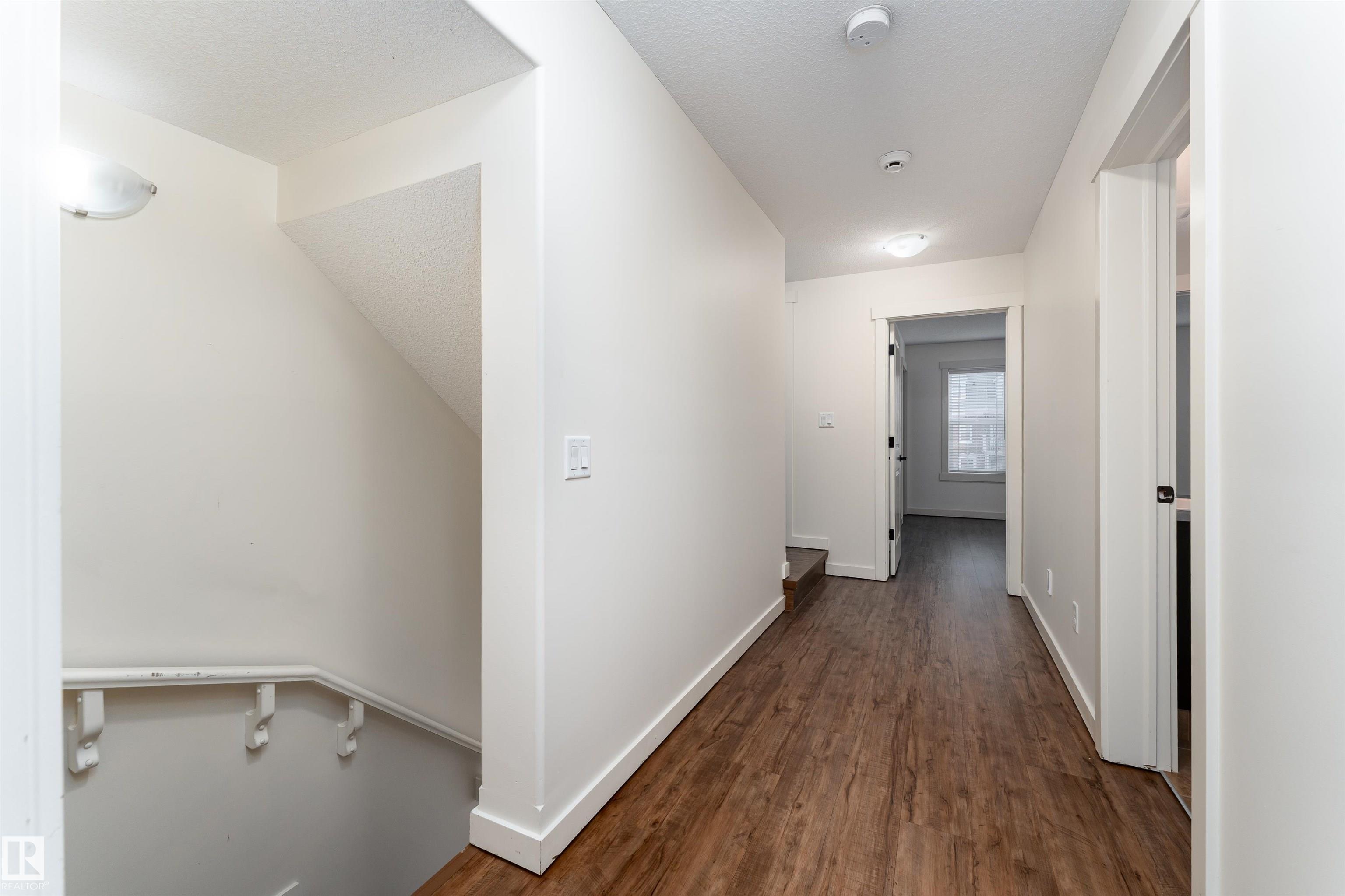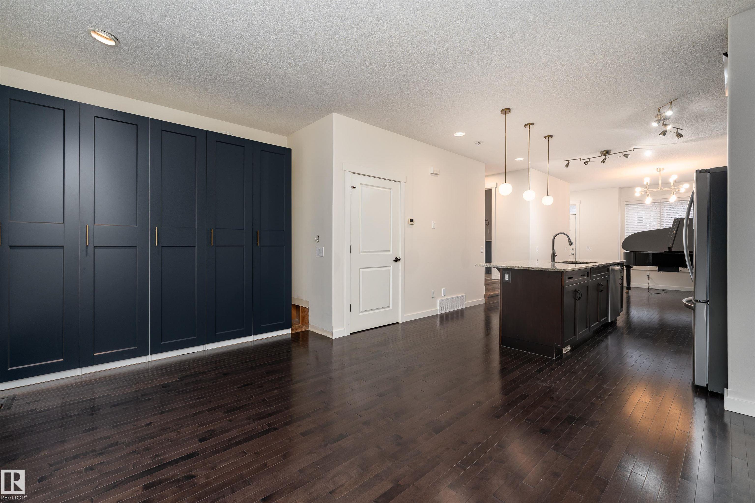Welcome to this stylish 3-storey townhome in the charming and convenient community of Griesbach! The open-concept main floor offers flexible living and dining spaces, with a central kitchen featuring ceiling-height cabinetry, granite counter tops with a large island, newer appliances, fresh paint, no carpet and chevron style floors in the primary suite. The second floor offers two spacious bedrooms with large closets, a 4-piece bath complete with soaker tub and separate shower, plus convenient upstairs laundry. The top floor is your private primary retreat, featuring vaulted ceilings, a charming Juliet balcony, and a spa-like 5-piece ensuite with dual vanities, a soaker tub, separate shower, and a massive walk-in closet you'll love. Photos may include virtual staging for visualization purposes. To round it off, enjoy a landscaped yard, central AC and detached garage. Located just steps from walking trails, lakes, shops, and more -- this is Griesbach living at its finest!