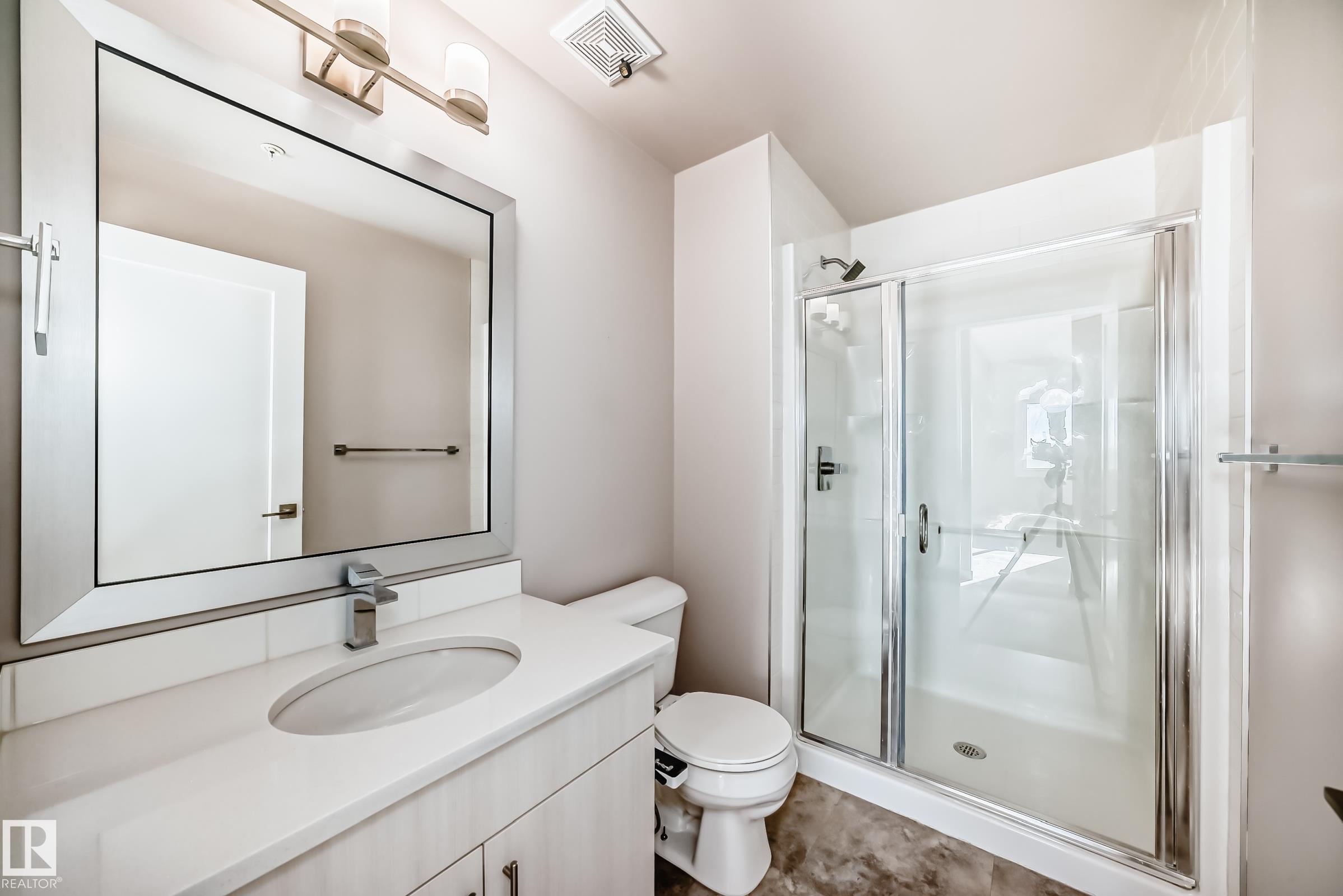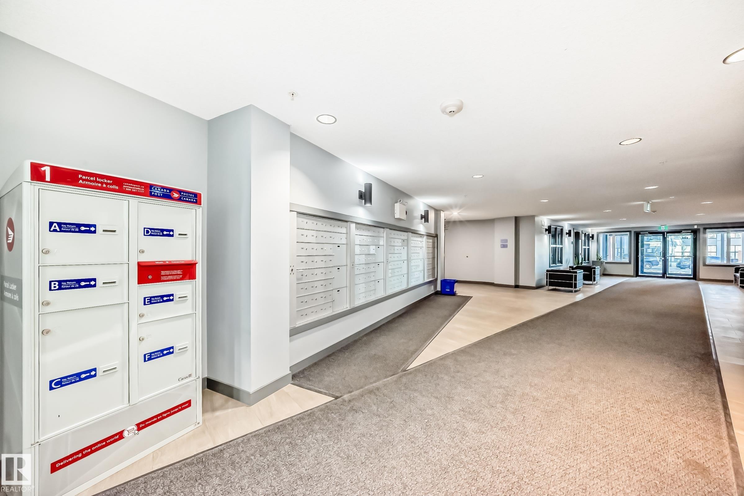 Welcome home to this bright and well-appointed third-floor, south-facing 2 bed, 2 bath suite offering excellent natural light and everyday convenience. With a builder's size of 1000 SQ FT, the open-concept layout features quartz countertops, soft-close cabinetry, and durable vinyl plank flooring in the main living areas, with plush carpet in the bedrooms. The thoughtfully designed floor plan provides great bedroom separation for privacy, while the desirable south exposure keeps the space warm and inviting. Located just steps from the elevator, this unit offers easy access without long walks down the hallway. Enjoy the spacious balcony with a natural gas BBQ hookup. Building amenities include a fitness centre, social and amenity room, library, car wash bay, and secure key fob entry. Additional features include stainless steel appliances, window coverings, in-suite laundry, and one underground stall with storage. Award winning Griesbach is filled with amenities, minutes away from downtown & the Henday.