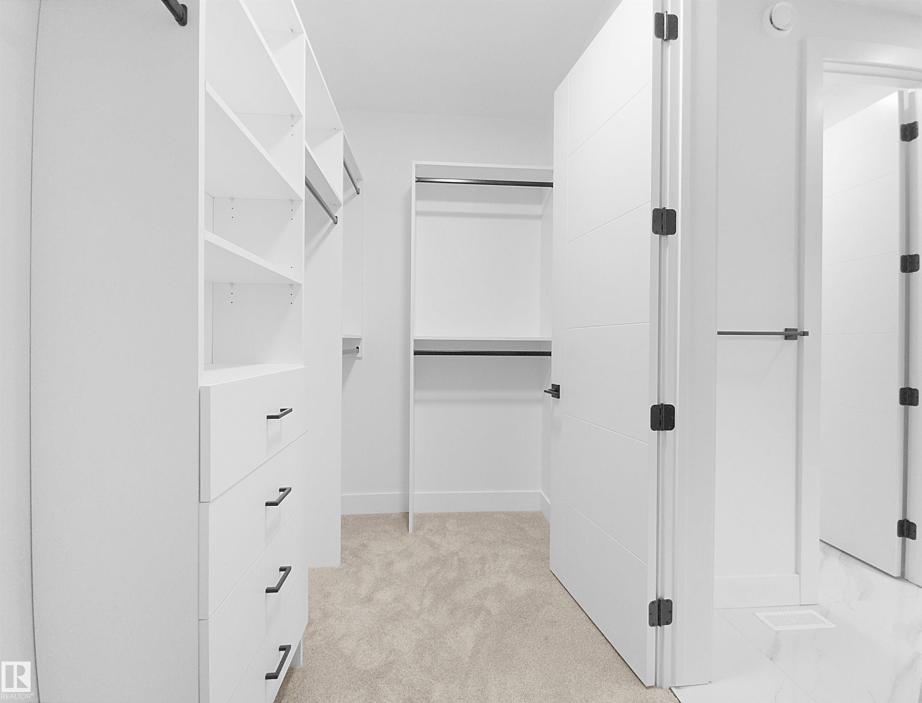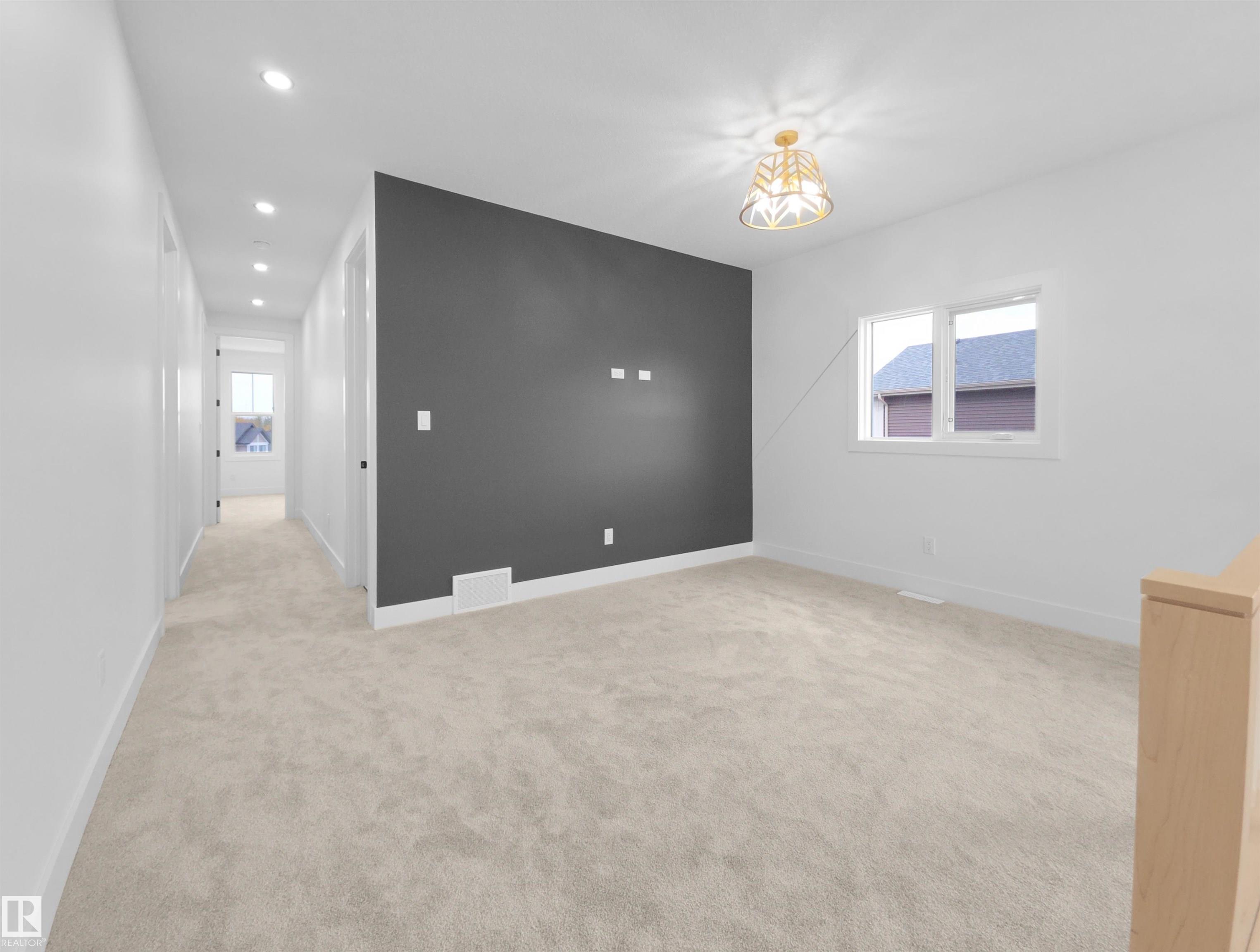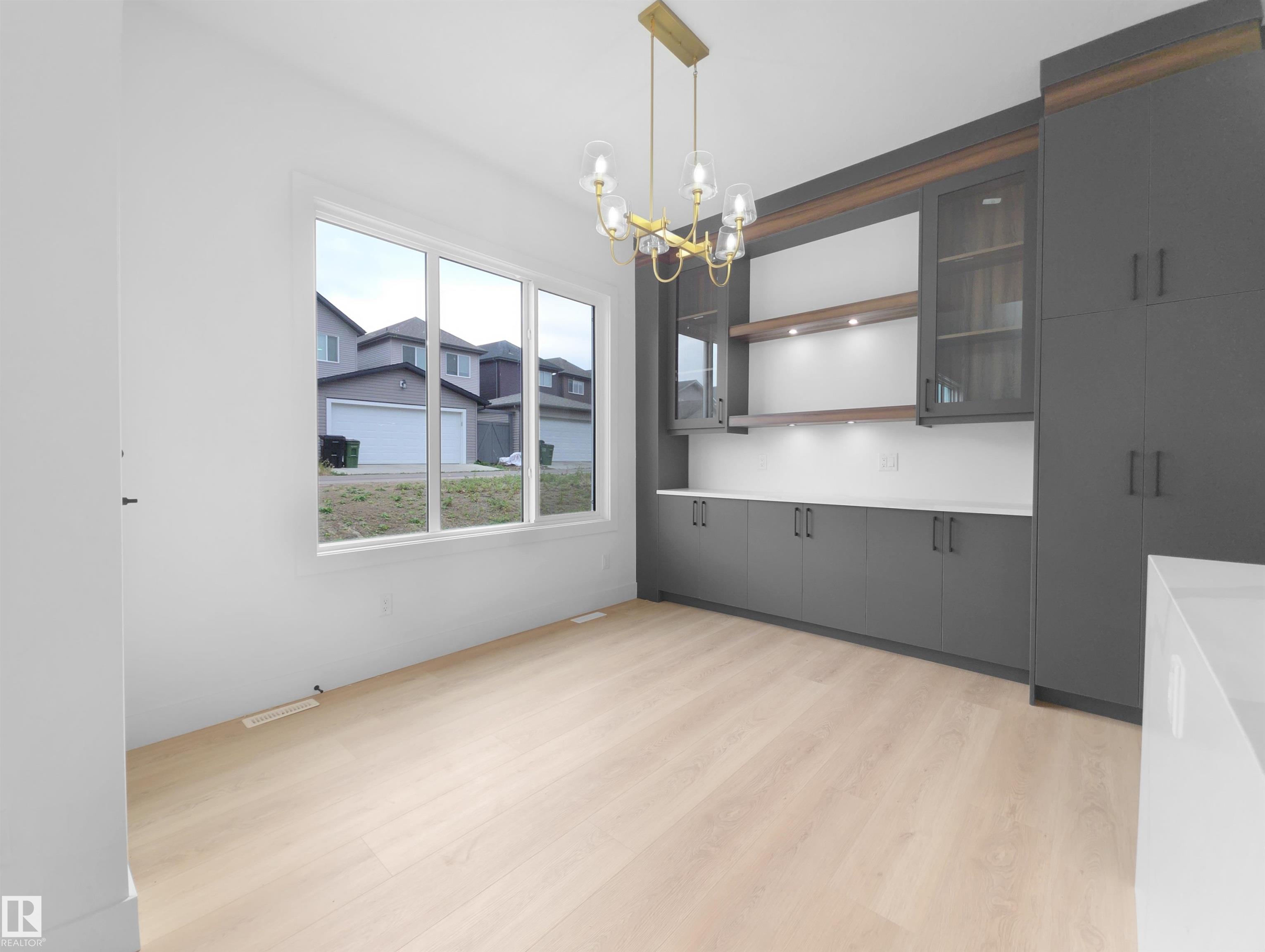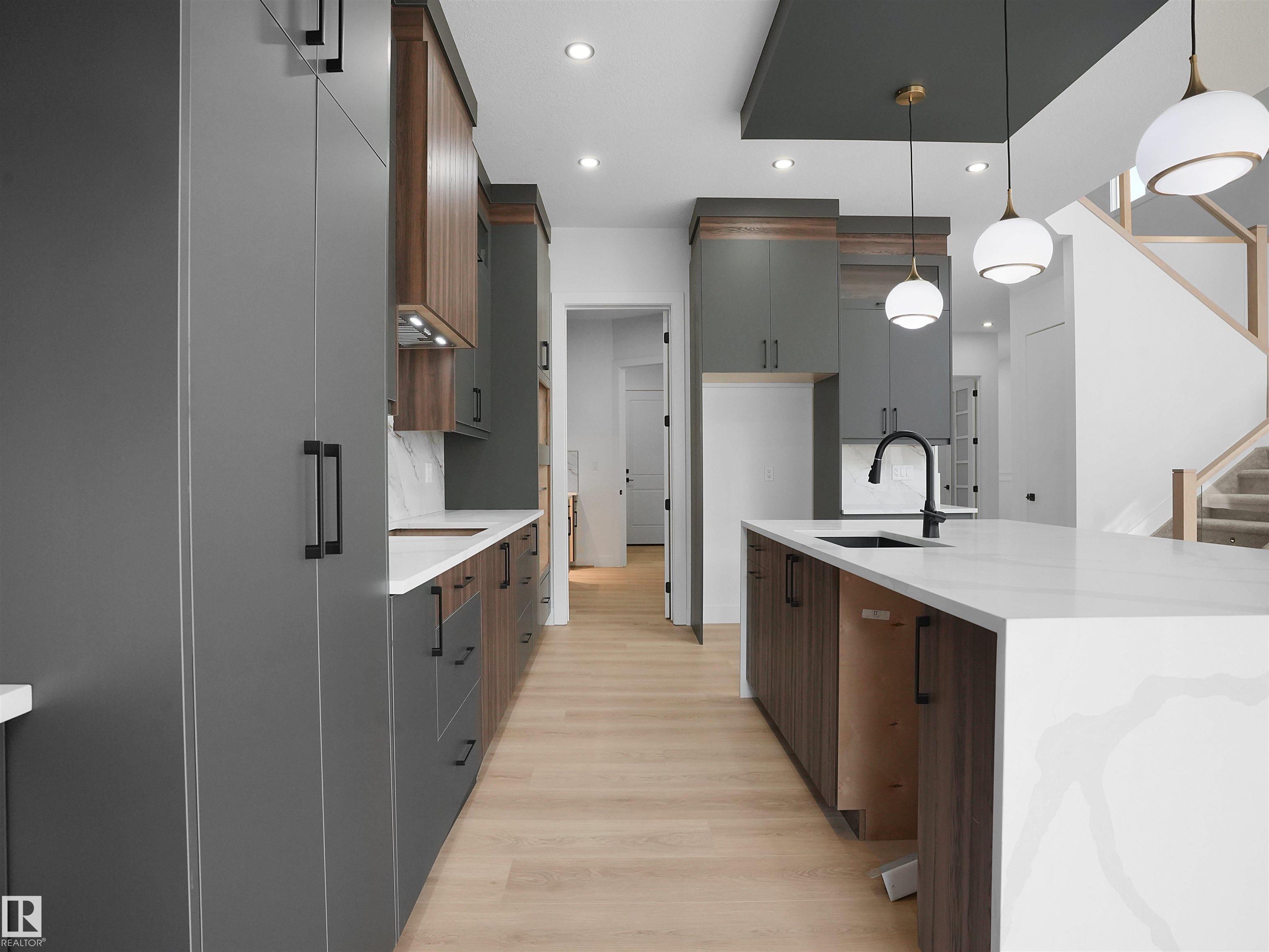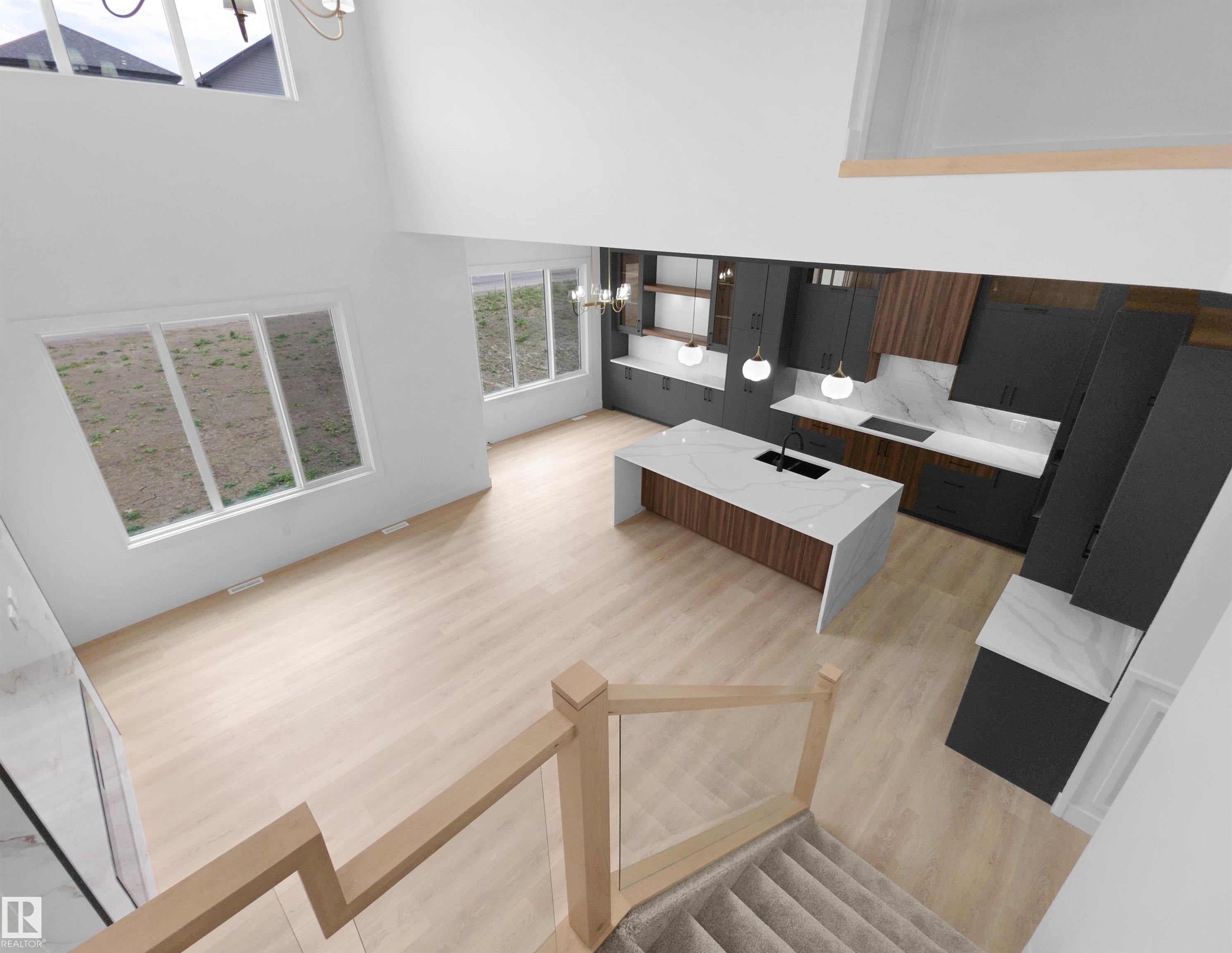 Welcome to this elegant 2680 Sq ft. 5 rooms, 4-bath custom home, in Hawks Ridge, a community surrounded by scenic walking trails, ponds & preserved natural beauty and its nestled beside Big Lake & Lois Hole Provincial Park. The main level features a DEN with full 3-pc bath, a dramatic open-to-above living room, a spice kitchen, a chef-inspired extended kitchen with spacious dining area, 10' ceilings throughout and a mudroom with access to the double attached garage. Upstairs offers 4 bedrooms, 3 full bathrooms, a bonus room, and laundry room with Quartz Counter and cabinetry. Thoughtfully upgraded with BUILT-IN APPLIANCES, BLINDS, MDF SHELVING, 8' DOORS, upgraded light fixtures including chandelier, feature walls, black hardware, QUARTZ COUNTERTOPS WITH WATERFALL KITCHEN ISLAND and more. A side entrance to the basement provides excellent future suite potential.