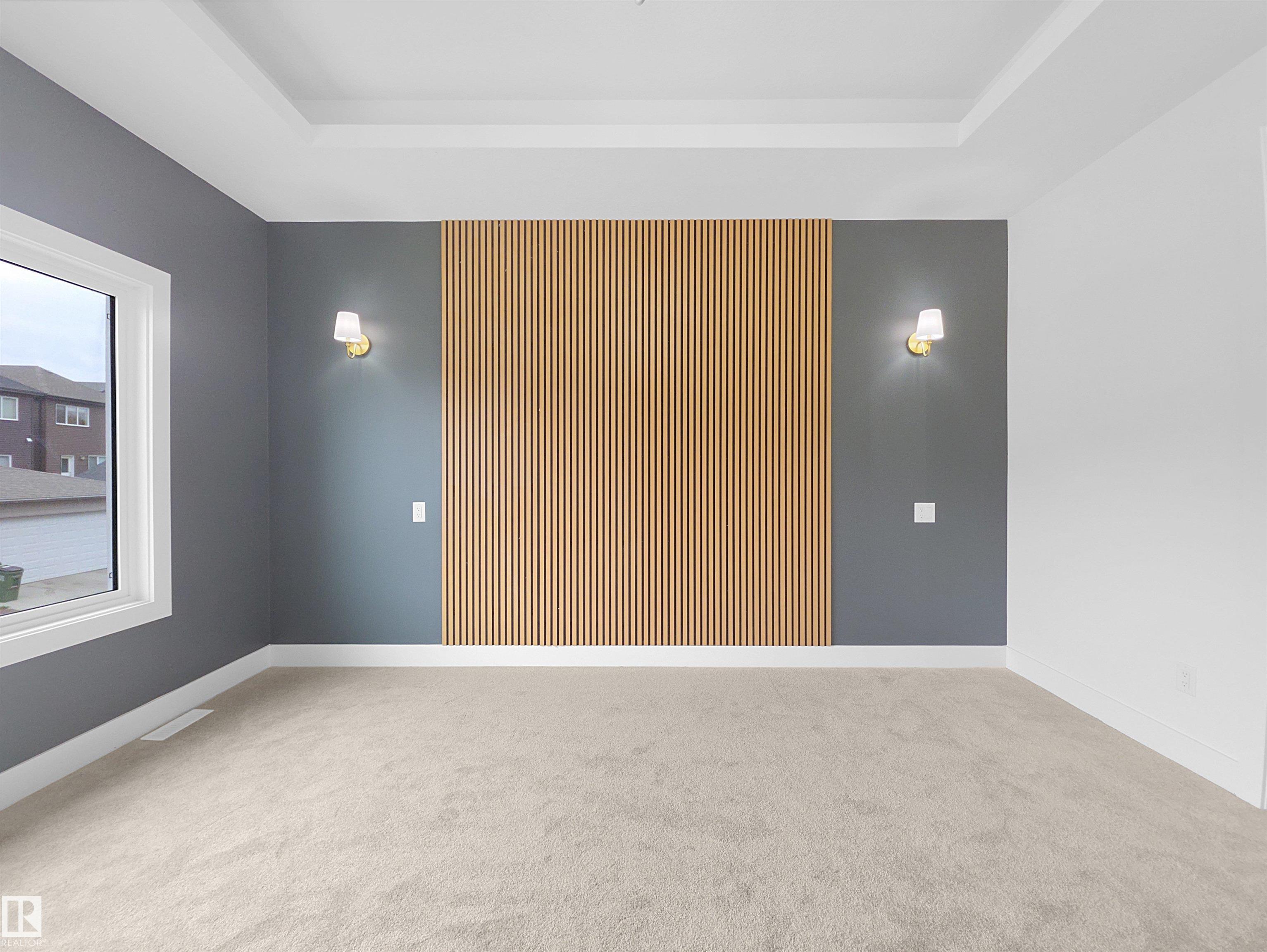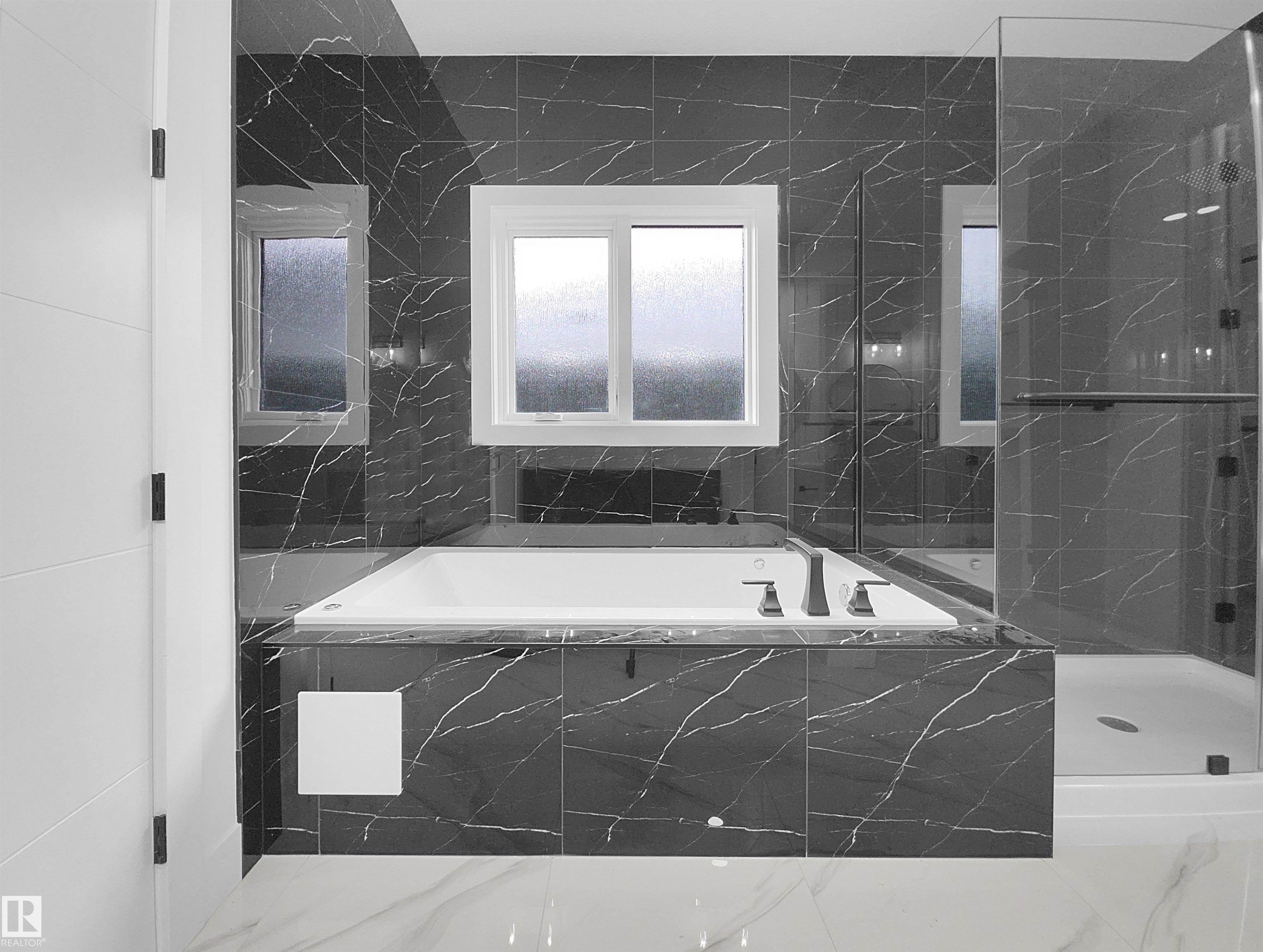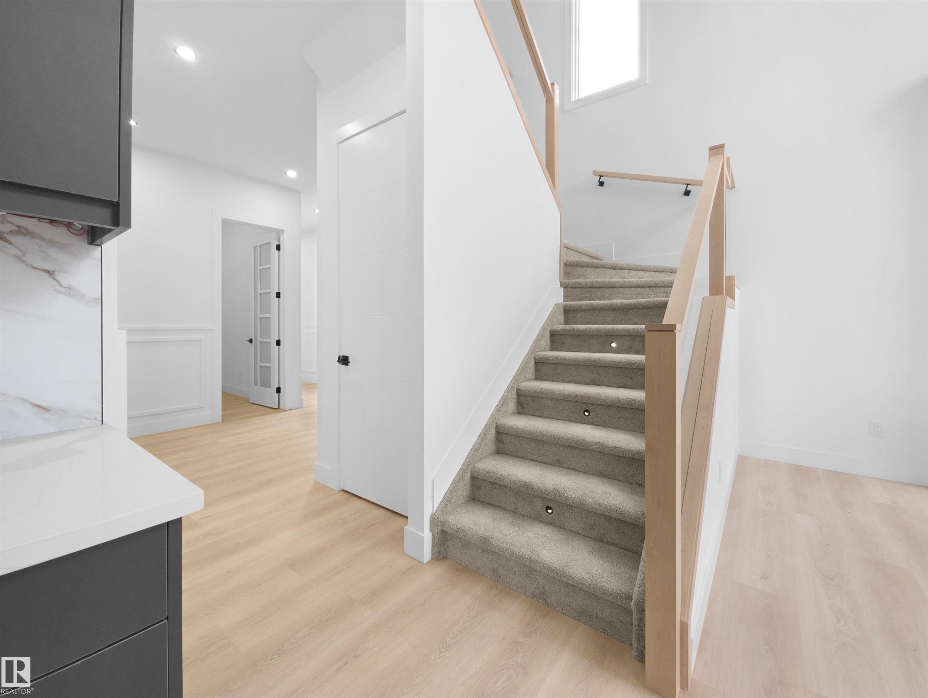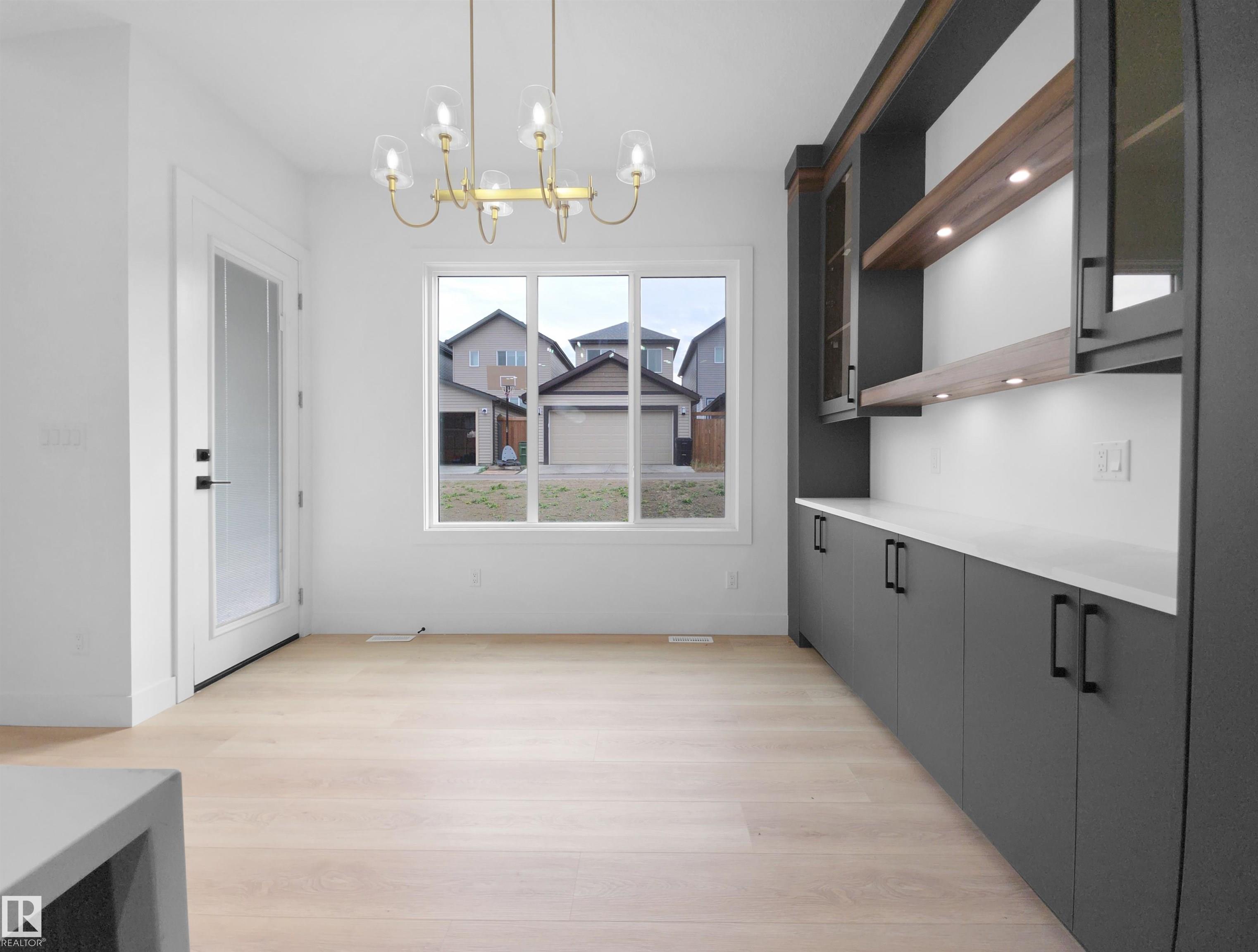 Welcome to this elegant 2680 Sq ft. 5 rooms, 4-bath custom home, in Hawks Ridge, a community surrounded by scenic walking trails, ponds & preserved natural beauty and its nestled beside Big Lake & Lois Hole Provincial Park. The main level features a DEN with full 3-pc bath, a dramatic open-to-above living room, a spice kitchen, a chef-inspired extended kitchen with spacious dining area, 10' ceilings throughout and a mudroom with access to the double attached garage. Upstairs offers 4 bedrooms, 3 full bathrooms, a bonus room, and laundry room with Quartz Counter and cabinetry. Thoughtfully upgraded with BUILT-IN APPLIANCES, BLINDS, MDF SHELVING, 8' DOORS, upgraded light fixtures including chandelier, feature walls, black hardware, QUARTZ COUNTERTOPS WITH WATERFALL KITCHEN ISLAND and more. A side entrance to the basement provides excellent future suite potential.