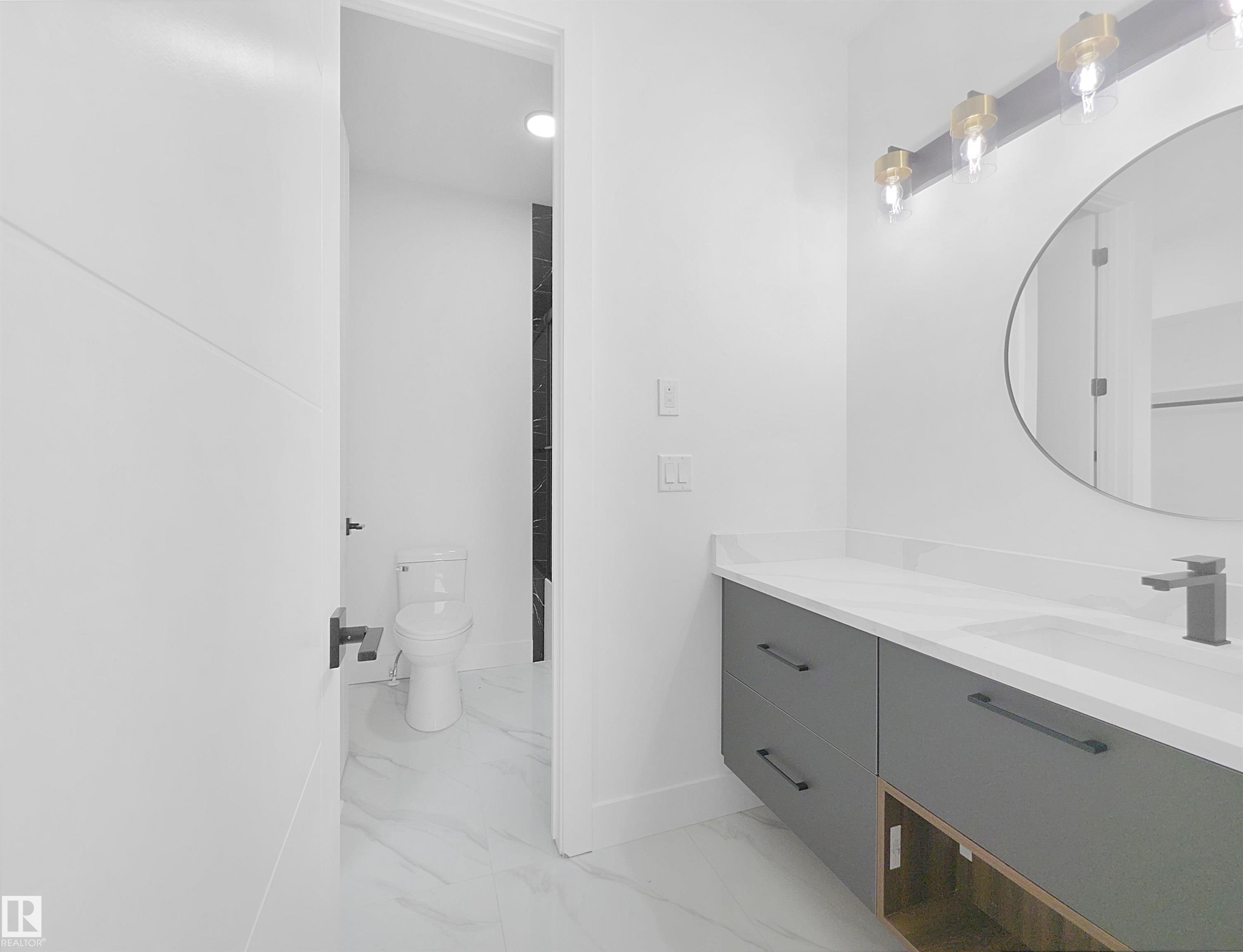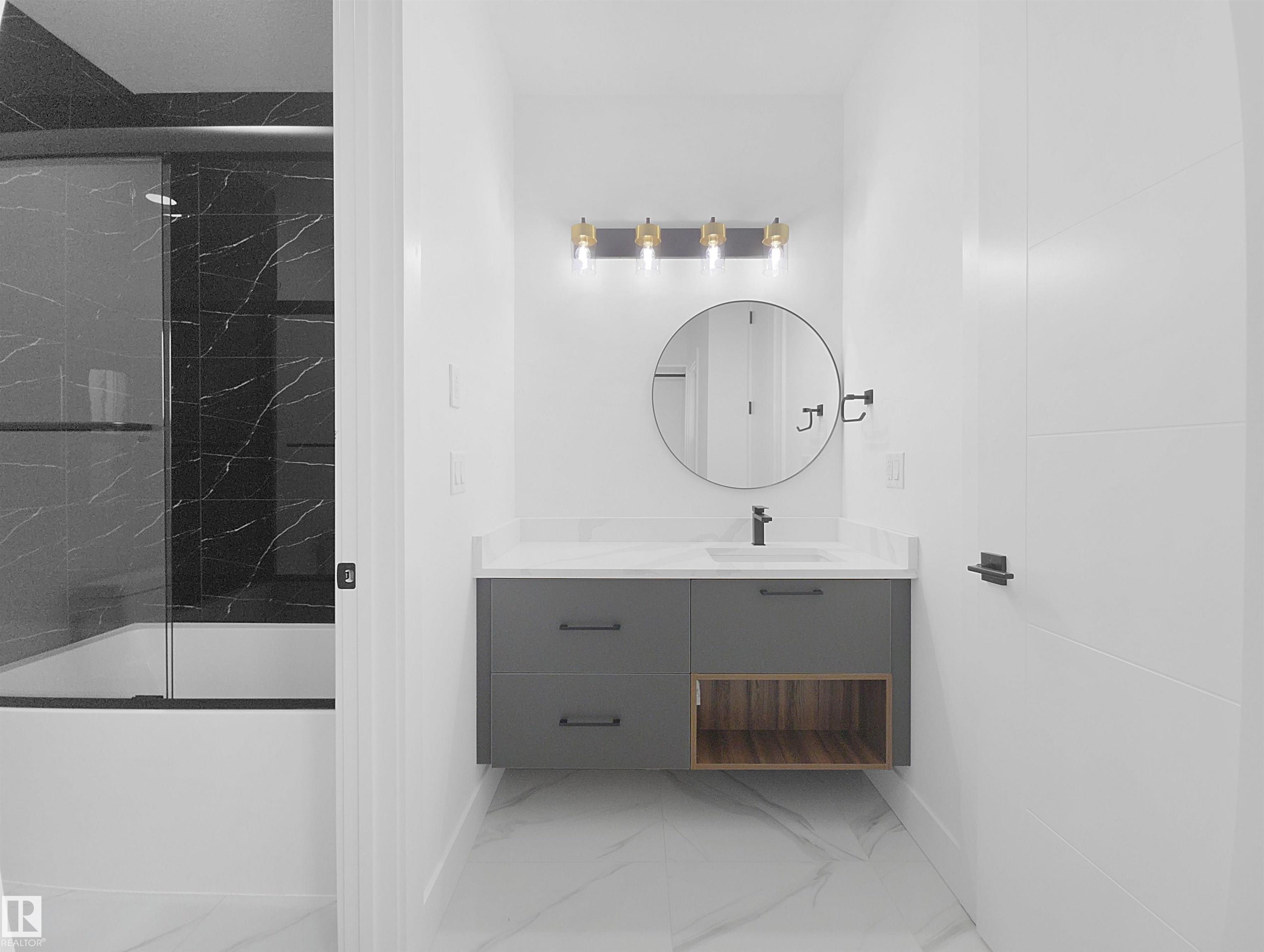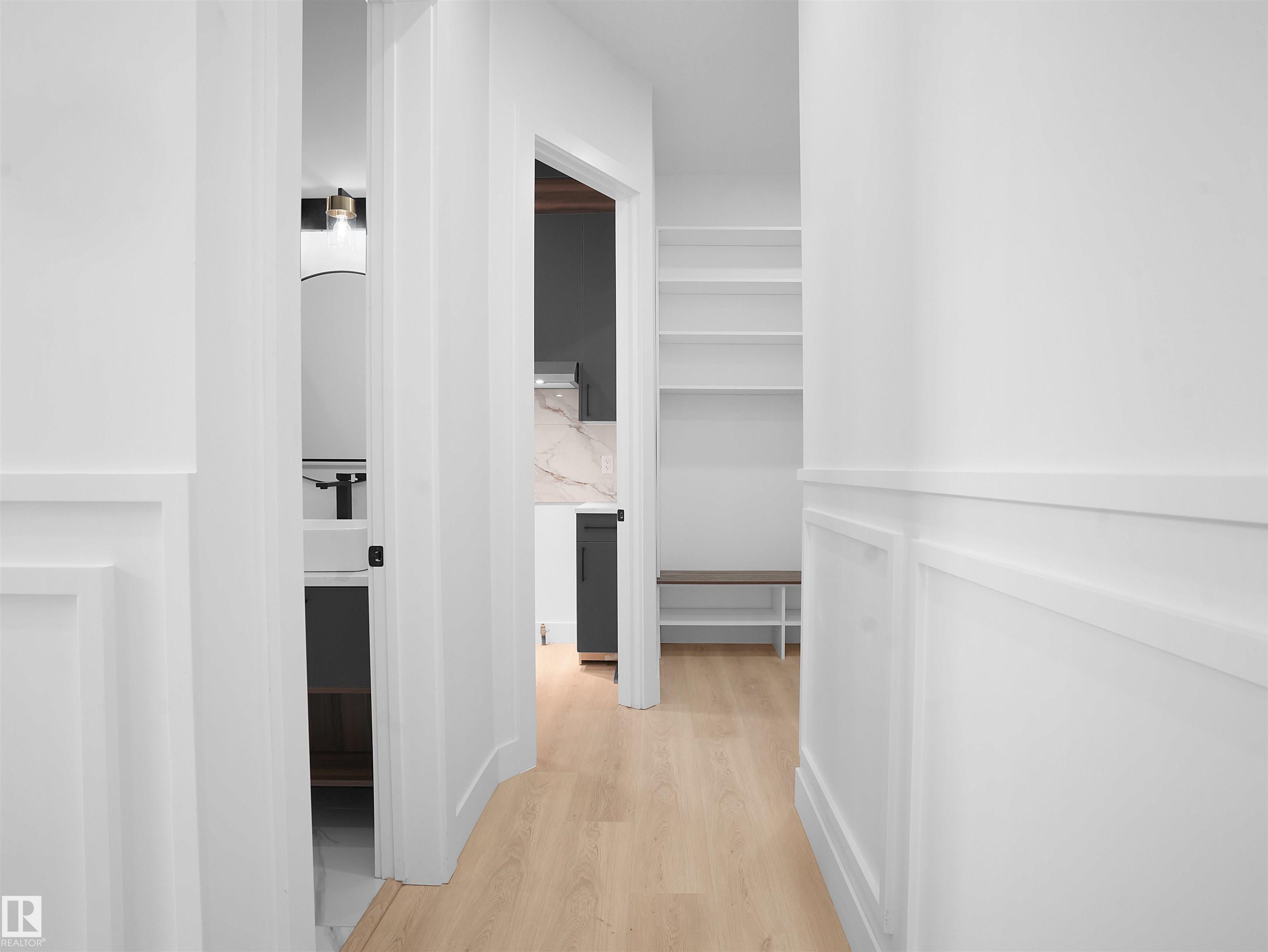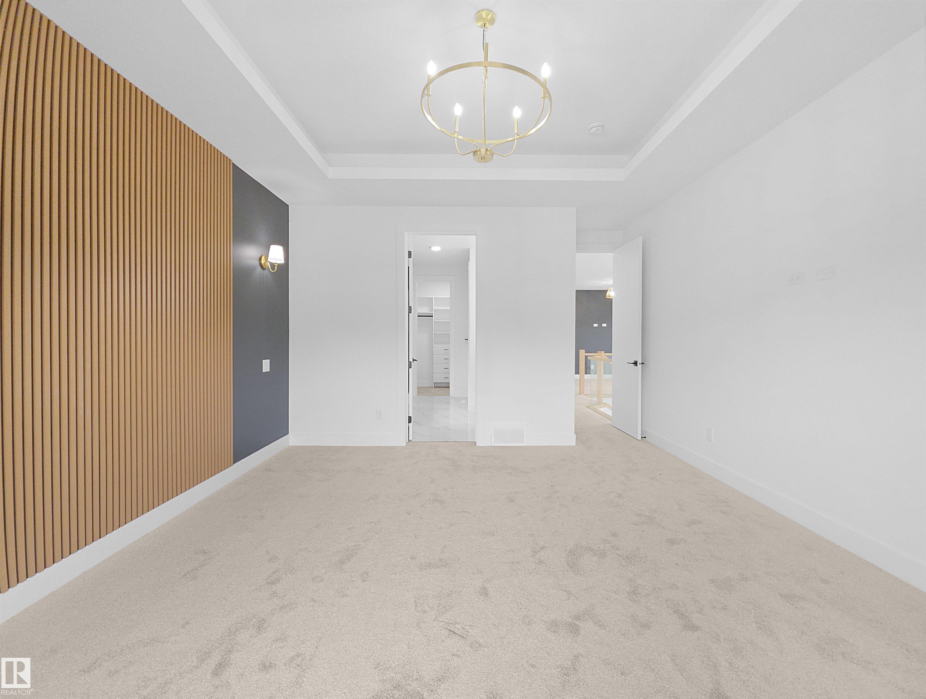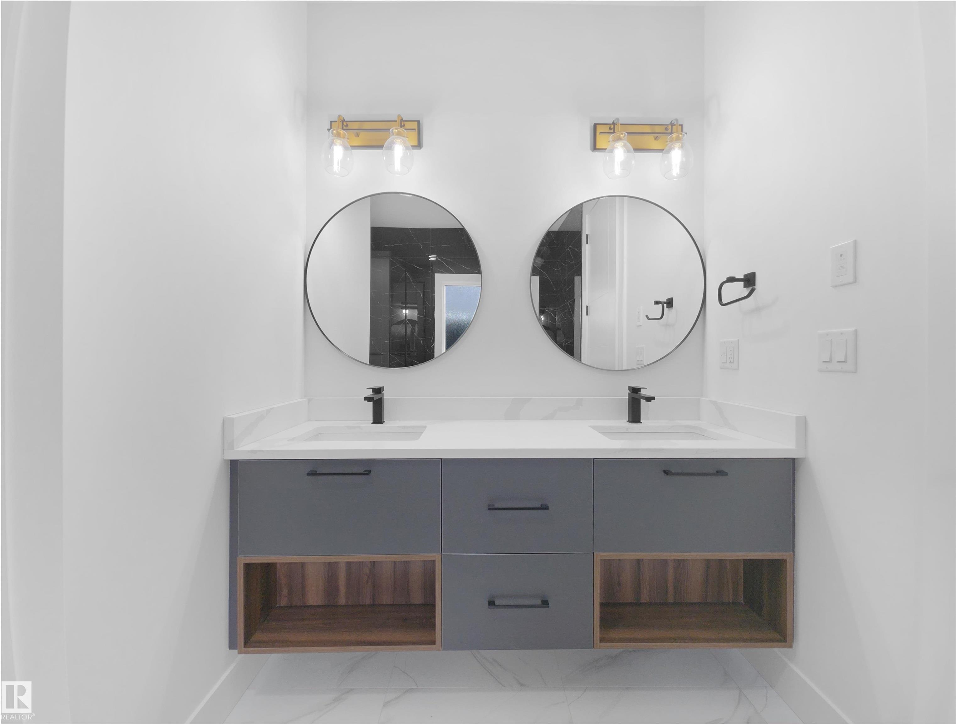Welcome to this elegant 2680 Sq ft. 5 rooms, 4-bath custom home, in Hawks Ridge, a community surrounded by scenic walking trails, ponds & preserved natural beauty and its nestled beside Big Lake & Lois Hole Provincial Park. The main level features a DEN with full 3-pc bath, a dramatic open-to-above living room, a spice kitchen, a chef-inspired extended kitchen with spacious dining area, 10' ceilings throughout and a mudroom with access to the double attached garage. Upstairs offers 4 bedrooms, 3 full bathrooms, a bonus room, and laundry room with Quartz Counter and cabinetry. Thoughtfully upgraded with BUILT-IN APPLIANCES, BLINDS, MDF SHELVING, 8' DOORS, upgraded light fixtures including chandelier, feature walls, black hardware, QUARTZ COUNTERTOPS WITH WATERFALL KITCHEN ISLAND and more. A side entrance to the basement provides excellent future suite potential.