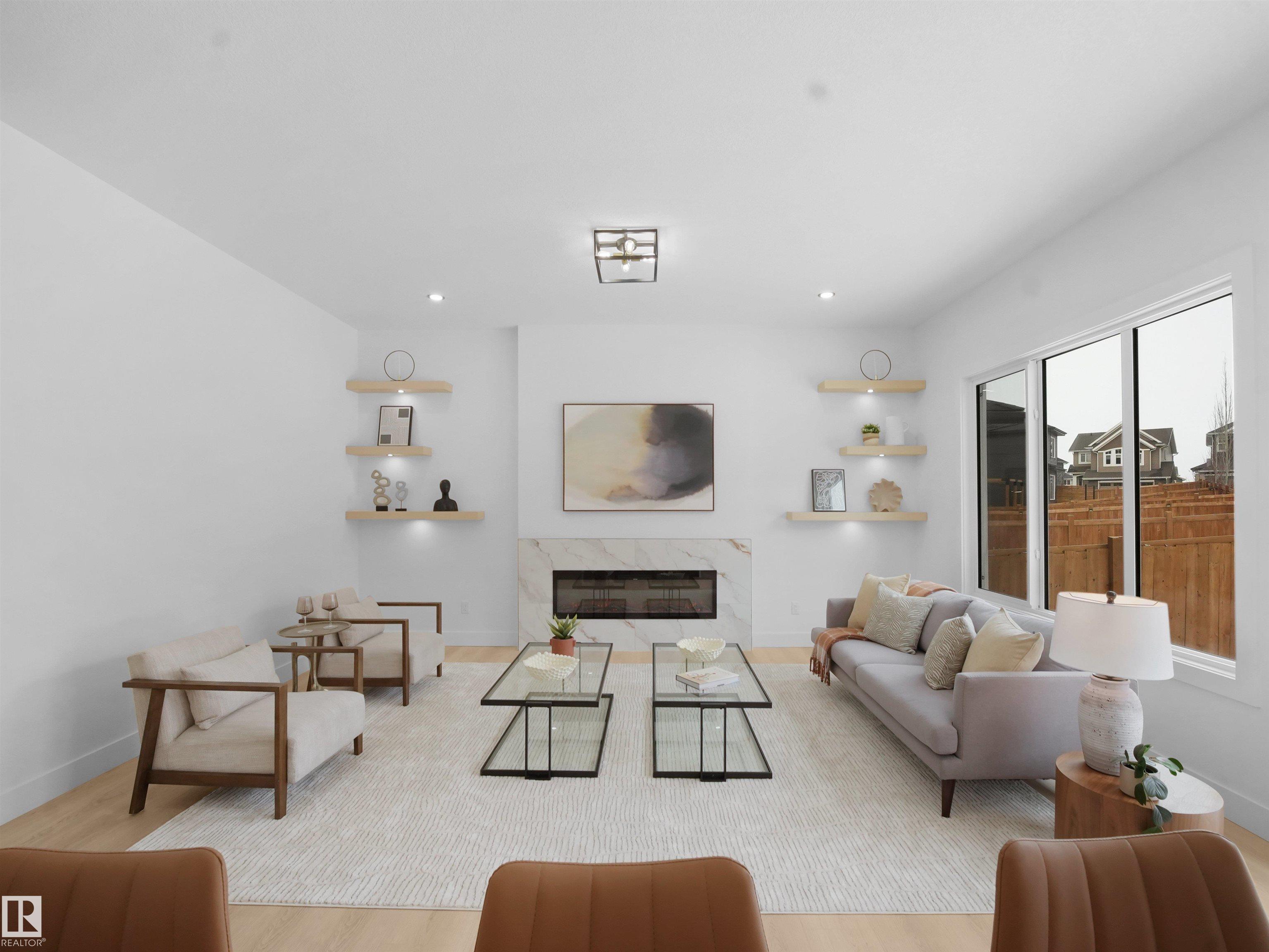 5 BEDROOMS + 2 LIVING ROOMS + OPEN TO BELOW CEILING + HUGE FENCED BACKYARD in west Edmonton. Welcome to this fully upgraded home in Hawks Ridge. Featuring 5 bedrooms and 4 full bathrooms. The main floor includes a full bathroom and bedroom, a spacious great room with an electric fireplace, a dedicated dining area and second living space, and a well-appointed kitchen with INCLUDED appliances and pantry. Upstairs, you'll find a convenient laundry room, 1 bedroom with ensuite, 2 bedrooms with jack/jill style bathroom and a large primary suite. The primary comes with his-and-hers walk-in closets and an ensuite featuring double sinks and a separate tub and shower. Additional highlights include, HUGE fenced yard, double attached garage, a separate side entrance, and an unfinished basement suite with excellent future potential. This home offers exceptional value in a growing community. Quick possession!