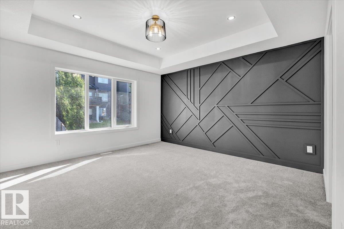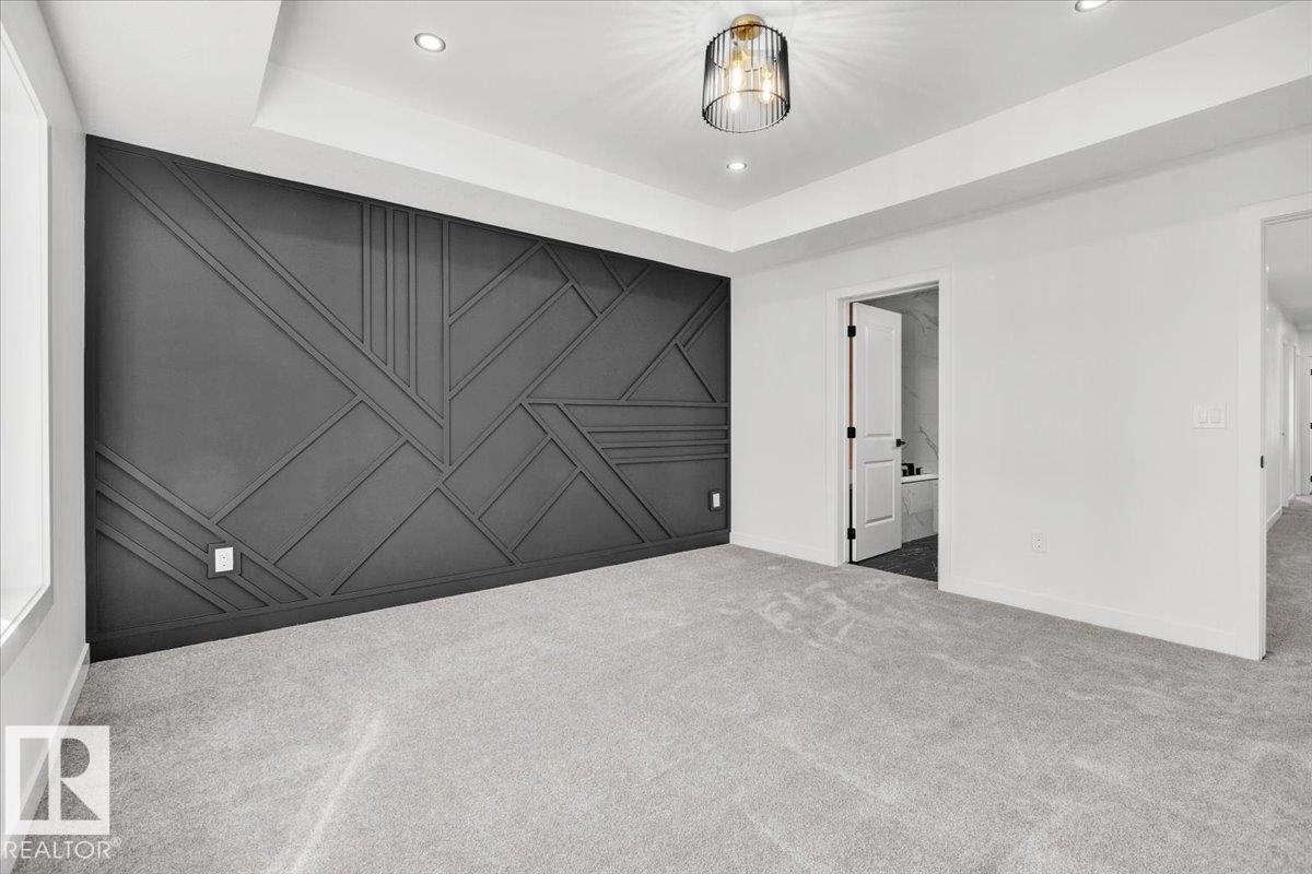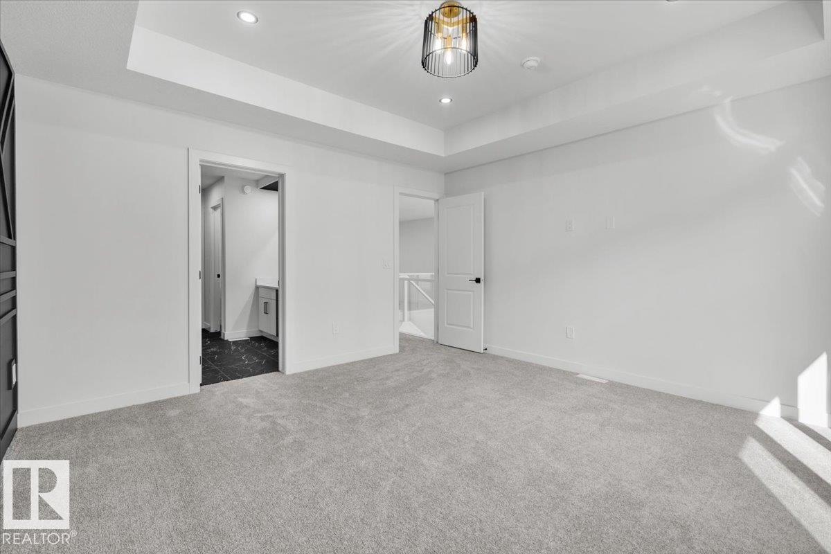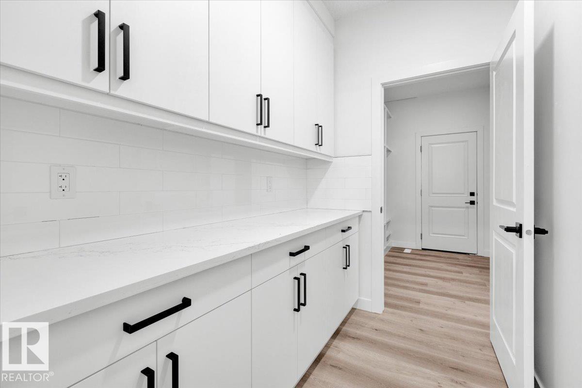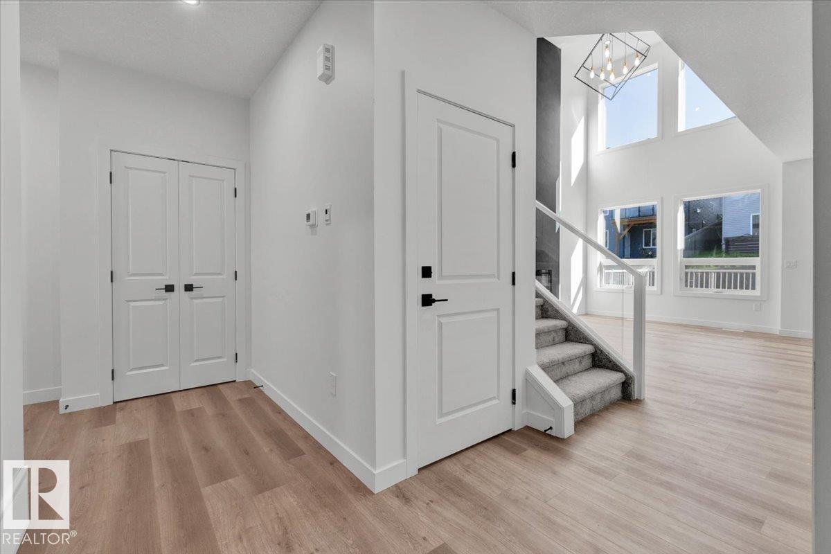Move-In Ready! Experience refined living in this stunning 2188 sqft quality-built home, offering elegant design and premium upgrades throughout. The main floor features a bright open-concept layout with soaring 20-ft ceilings, a striking feature wall with electric fireplace, and massive sun-filled windows. The chef-inspired kitchen showcases custom cabinetry, under-cabinet lighting, a built-in wine fridge, and a convenient butler's pantry. A private den and stylish half bath complete the main level. Upstairs offers a spacious bonus room, laundry, and 3 generous bedrooms including a luxurious primary suite with walk-in closet and spa-like 5-piece ensuite. Additional highlights include built-in appliances, an oversized attached garage with hot/cold water taps and man door, and side entrance with suite potential Furniture and d‚cor shown are virtually staged. Ideally located just steps from scenic ravines and walking trails of Big Lake in the highly desirable community of Hawks Ridge, NW Edmonton.