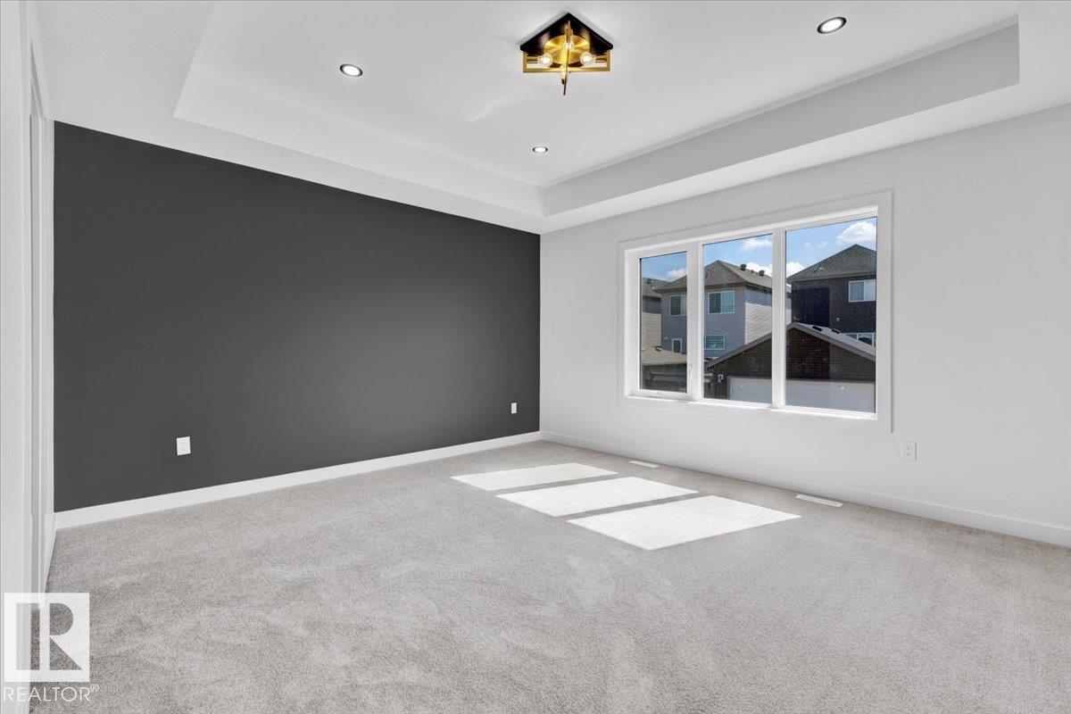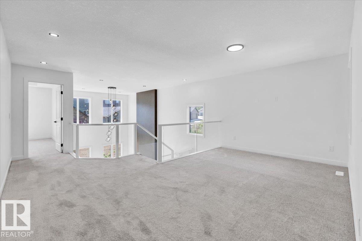 Fresh Start at Hawks ridge! Stunning quality-built 2,289 sq ft home featuring elegant design and premium upgrades throughout. Cul-de-sac location with no rear neighbours. Main floor offers a spacious den (or 4th bedroom) and living area with open-to-above 20-ft ceilings, feature wall with fireplace and unique Italian silicone-patterned paint, plus massive sun-filled windows for abundant natural light. Chef's kitchen with premium cabinetry, waterfall countertops, wine fridge, under-cabinet lighting, and a convenient butler's pantry for effortless entertaining. Main floor half bath completes the level. Upstairs features a bonus room, three bedrooms, two full baths, and a luxurious master suite with 5-piece ensuite and walk-in closet. Top-floor laundry adds practicality. Additional highlights: built-in appliances, glass railing, deck with natural gas line, mudroom with built-ins and shoe storage, side entrance with suite potential, oversized garage hot and cold water taps and man door.
