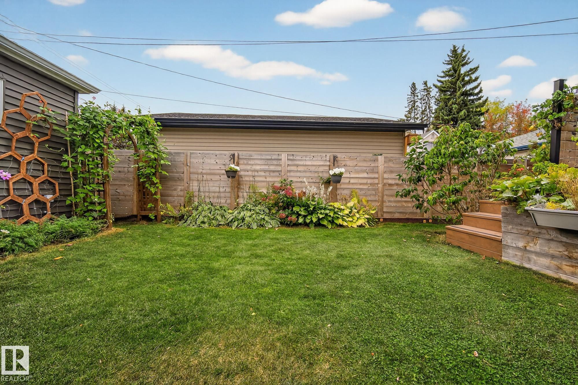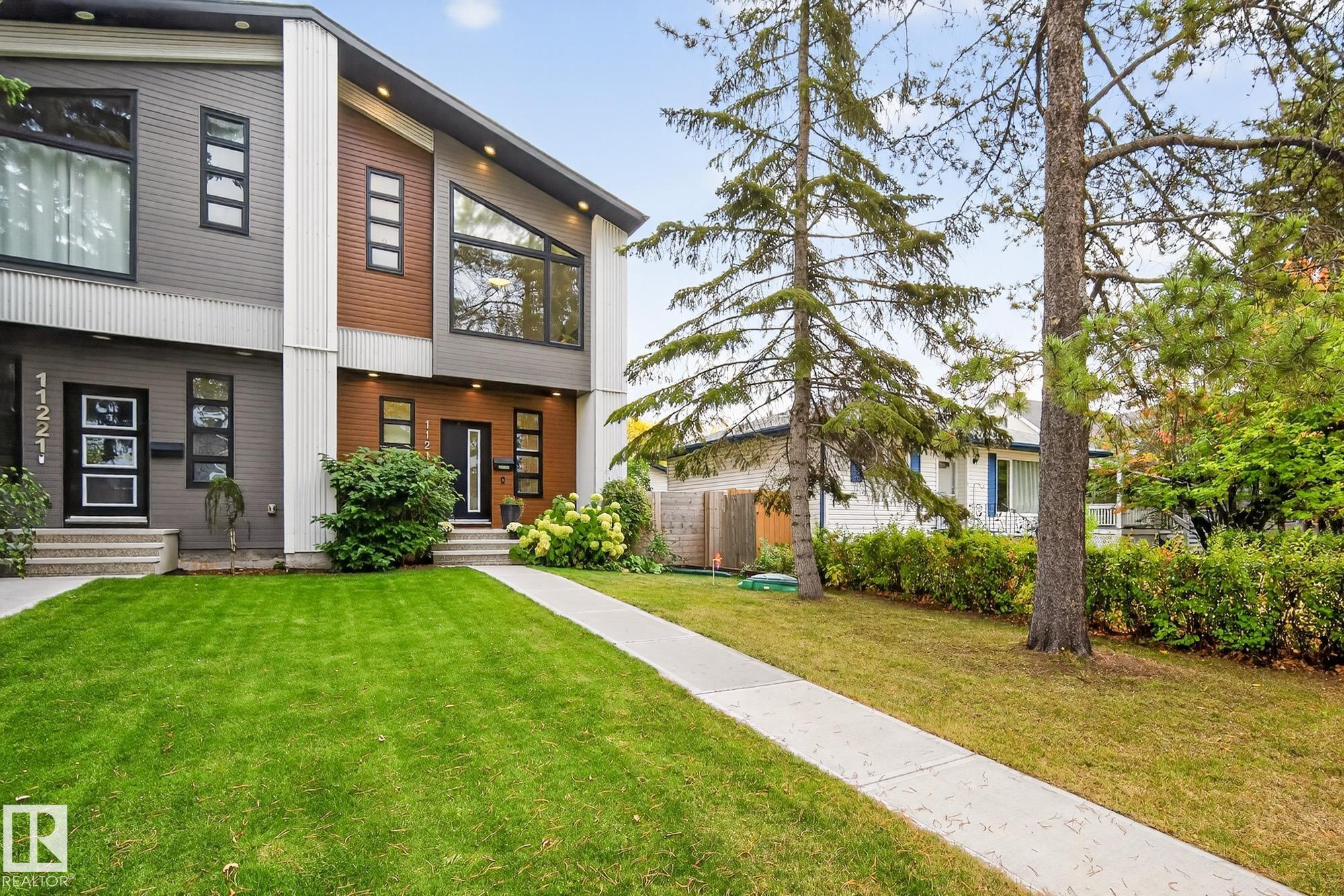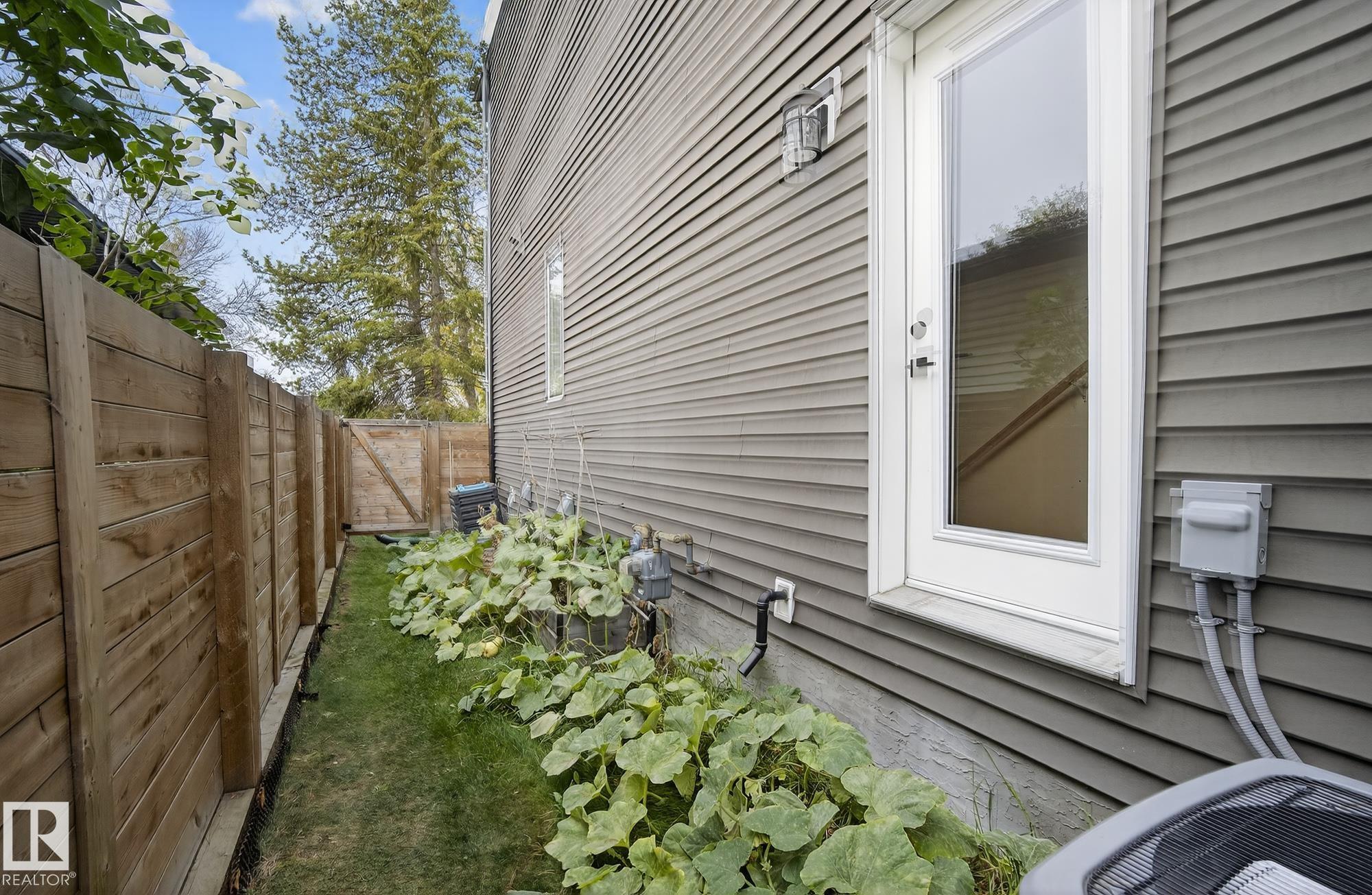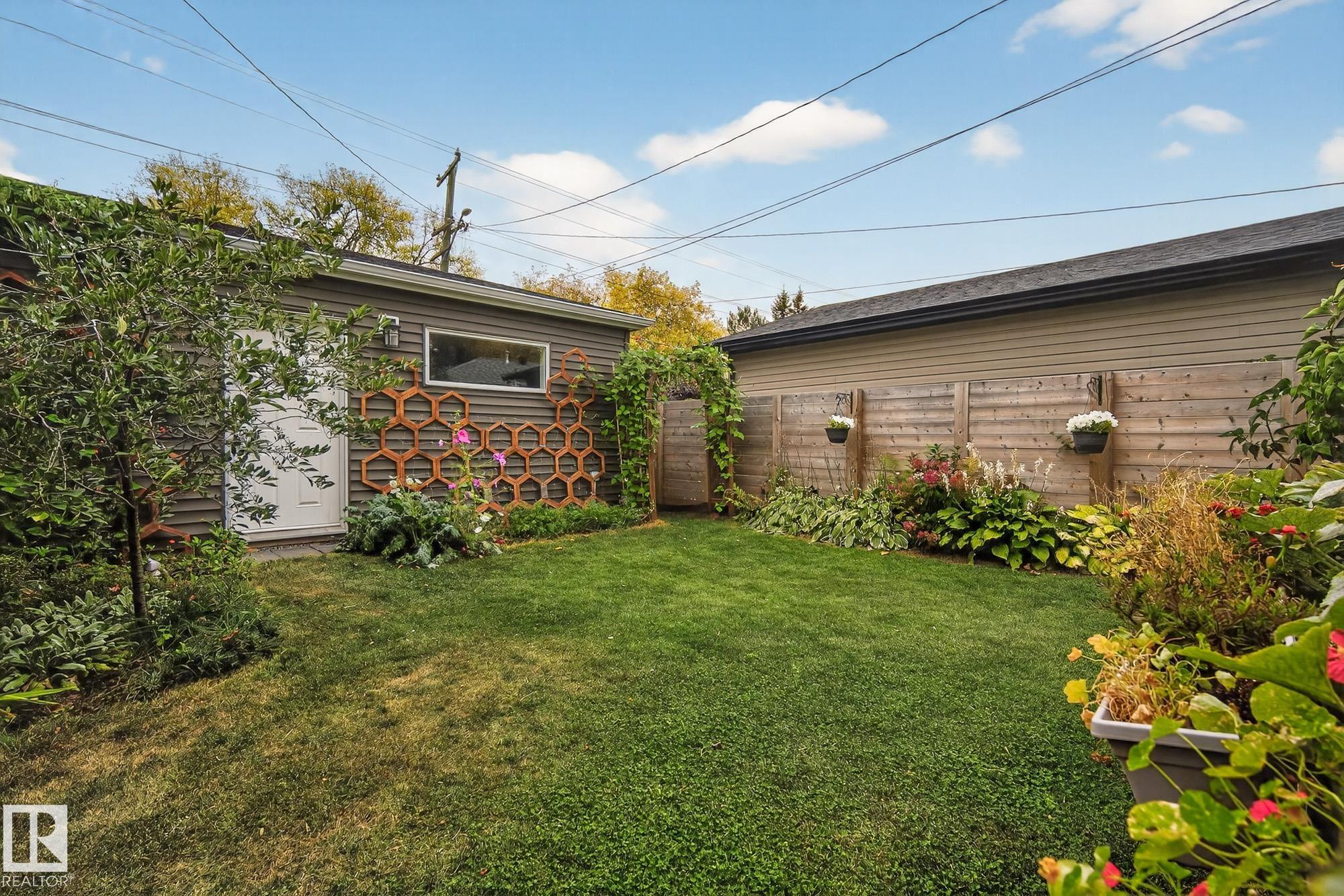 HELLO CHARMING! Welcome home to this OG Accent Infills half-duplex located in historic Inglewood located walking distance to Westmount Jr High, Westmount Shopping Centre + trendy 124 St. Shopping District. The stunning perennial cottage garden in the backyard will have you SWOONING! Inside, you're greeted by beautiful hickory hardwood floors, large open living space, and a spacious kitchen with patio doors leading to your deck + detached double garage. Upper level features 3 bedrooms, laundry room and convenient tech space. You'll be WOWED by the primary retreat with its huge vaulted ceilings, massive windows, and gorgeous spa-like ensuite. A/C added in 2023 to keep you cool with your massive windows! Basement left untouched for you to create the space you desire - complete with SIDE ENTRANCE for those looking to develop a basement suite.