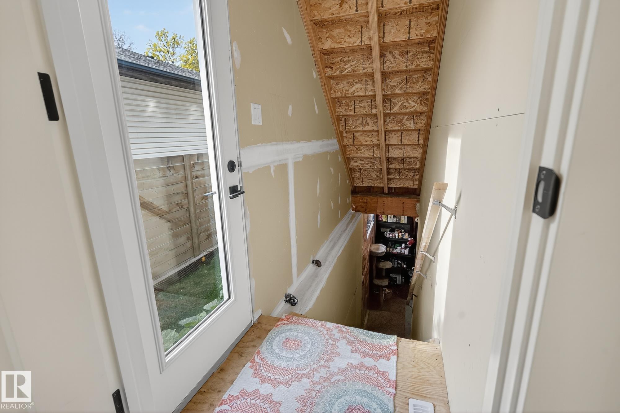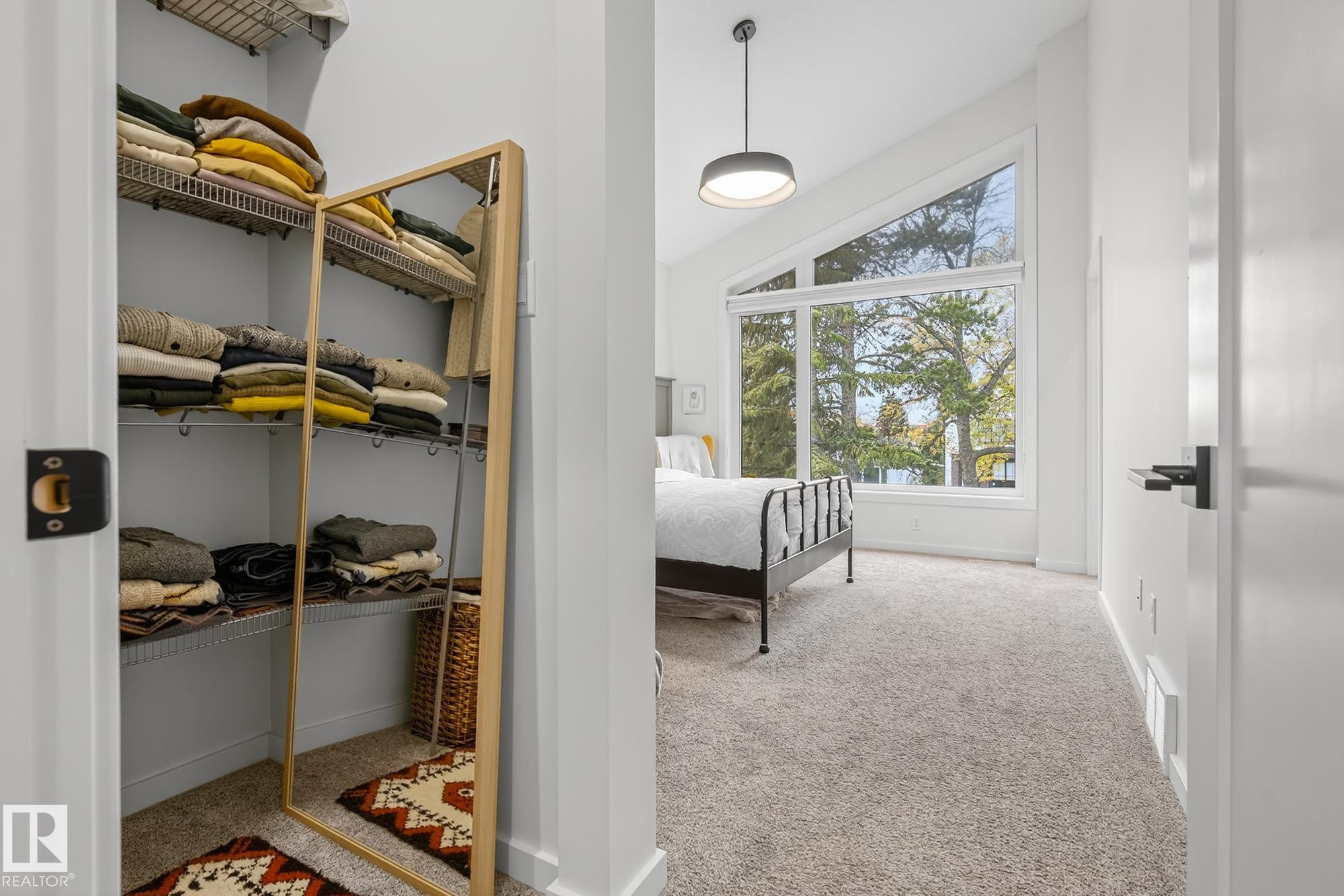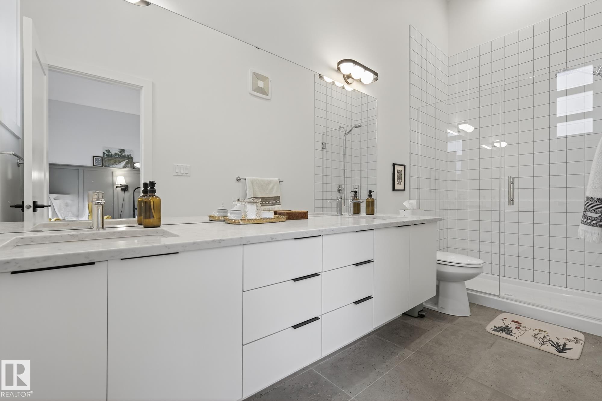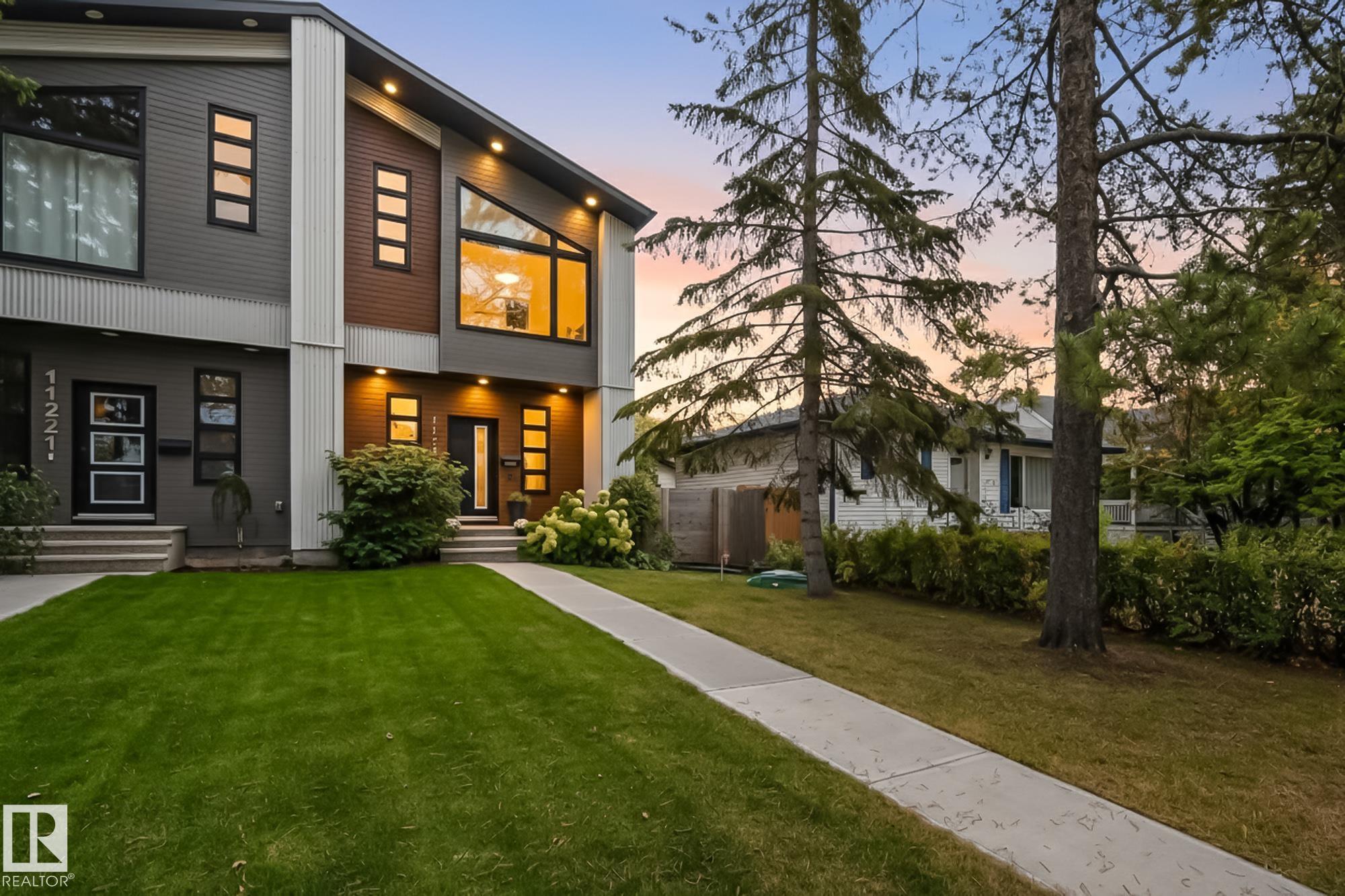 HELLO CHARMING! Welcome home to this OG Accent Infills half-duplex located in historic Inglewood located walking distance to Westmount Jr High, Westmount Shopping Centre + trendy 124 St. Shopping District. The stunning perennial cottage garden in the backyard will have you SWOONING! Inside, you're greeted by beautiful hickory hardwood floors, large open living space, and a spacious kitchen with patio doors leading to your deck + detached double garage. Upper level features 3 bedrooms, laundry room and convenient tech space. You'll be WOWED by the primary retreat with its huge vaulted ceilings, massive windows, and gorgeous spa-like ensuite. A/C added in 2023 to keep you cool with your massive windows! Basement left untouched for you to create the space you desire - complete with SIDE ENTRANCE for those looking to develop a basement suite.