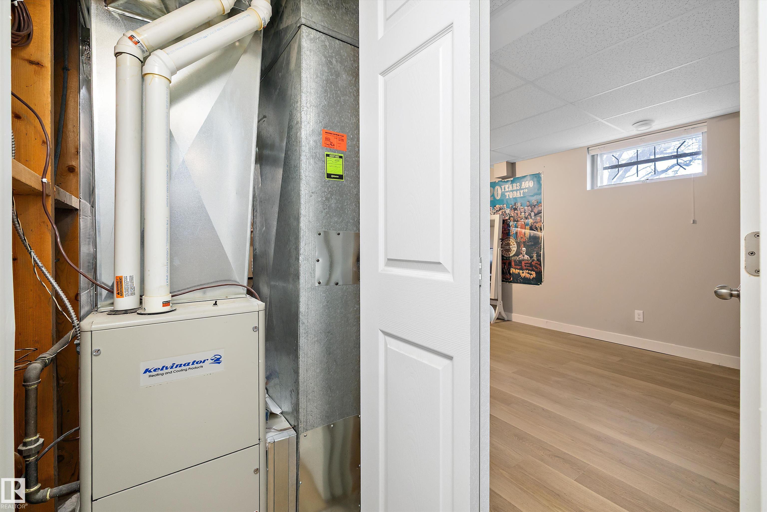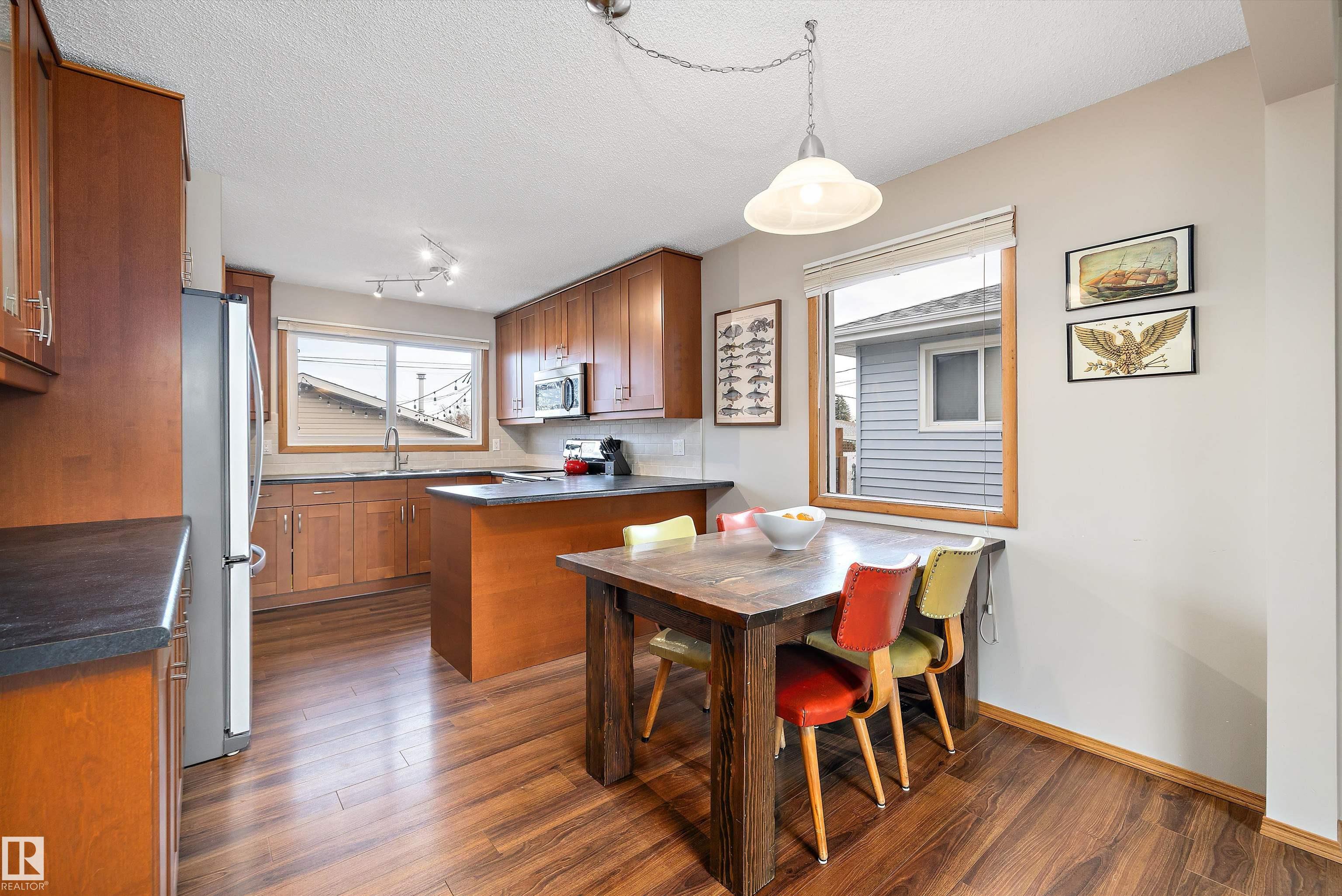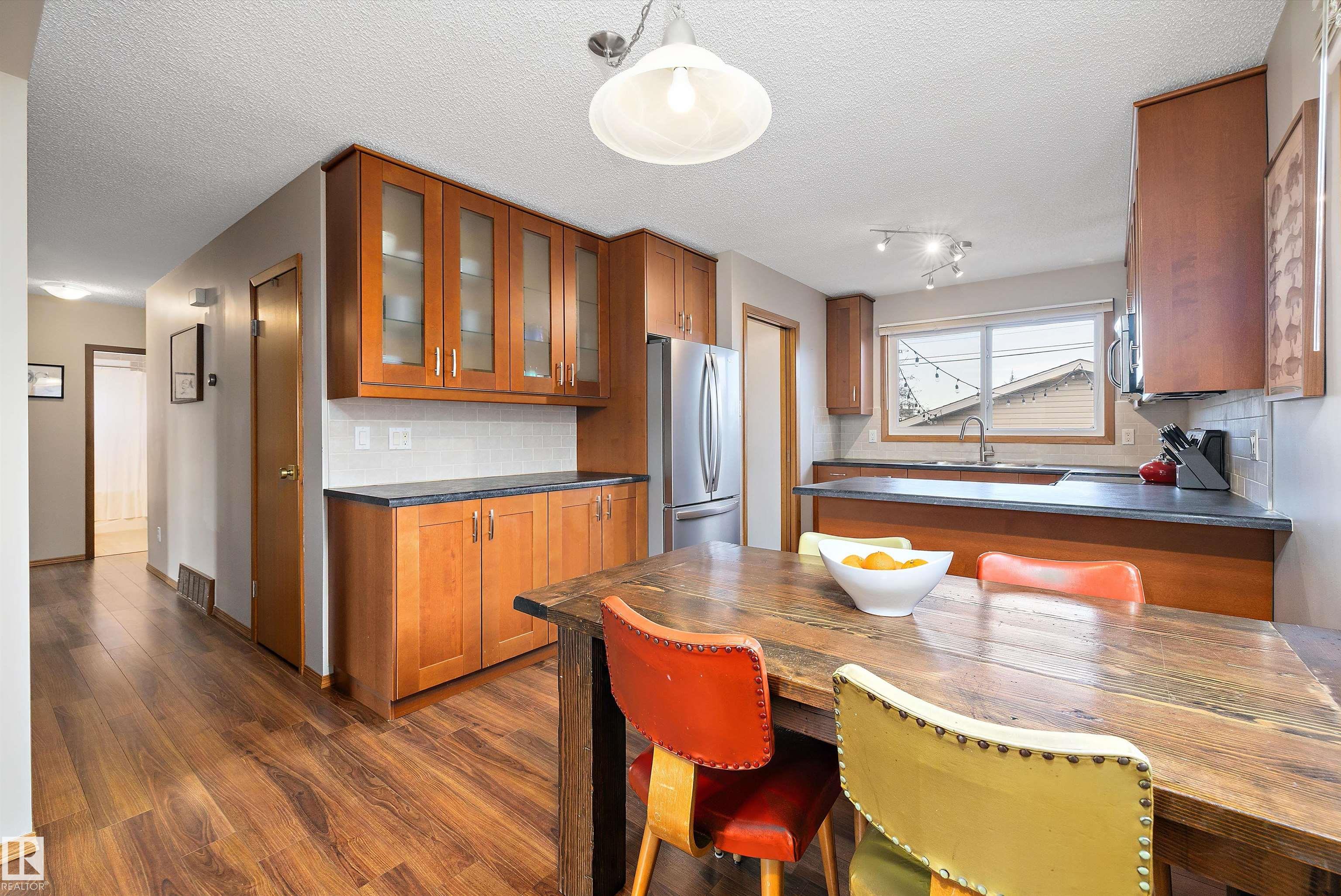 Welcome to Kenilworth. This beautifully renovated 3+2 bedroom home with a double garage offers a warm, inviting layout with modern finishes throughout. The main floor features a bright living room that flows into a stylish kitchen with tall cabinetry, recessed lighting, stainless steel appliances, and a contemporary tile backsplash. Three comfortable bedrooms on the main level, including a primary with a custom floor-to-ceiling glass closet. The updated main bath includes double sinks and fresh tile. The fully finished basement adds two additional bedrooms, a full bathroom, and a spacious family/rec room perfect for movie nights or play space. Upgraded windows and 100 amp electrical panel (house & garage).The garage is heated and insulated. Located in a desirable community close to schools, parks, and amenities--this move-in ready home checks all the boxes.