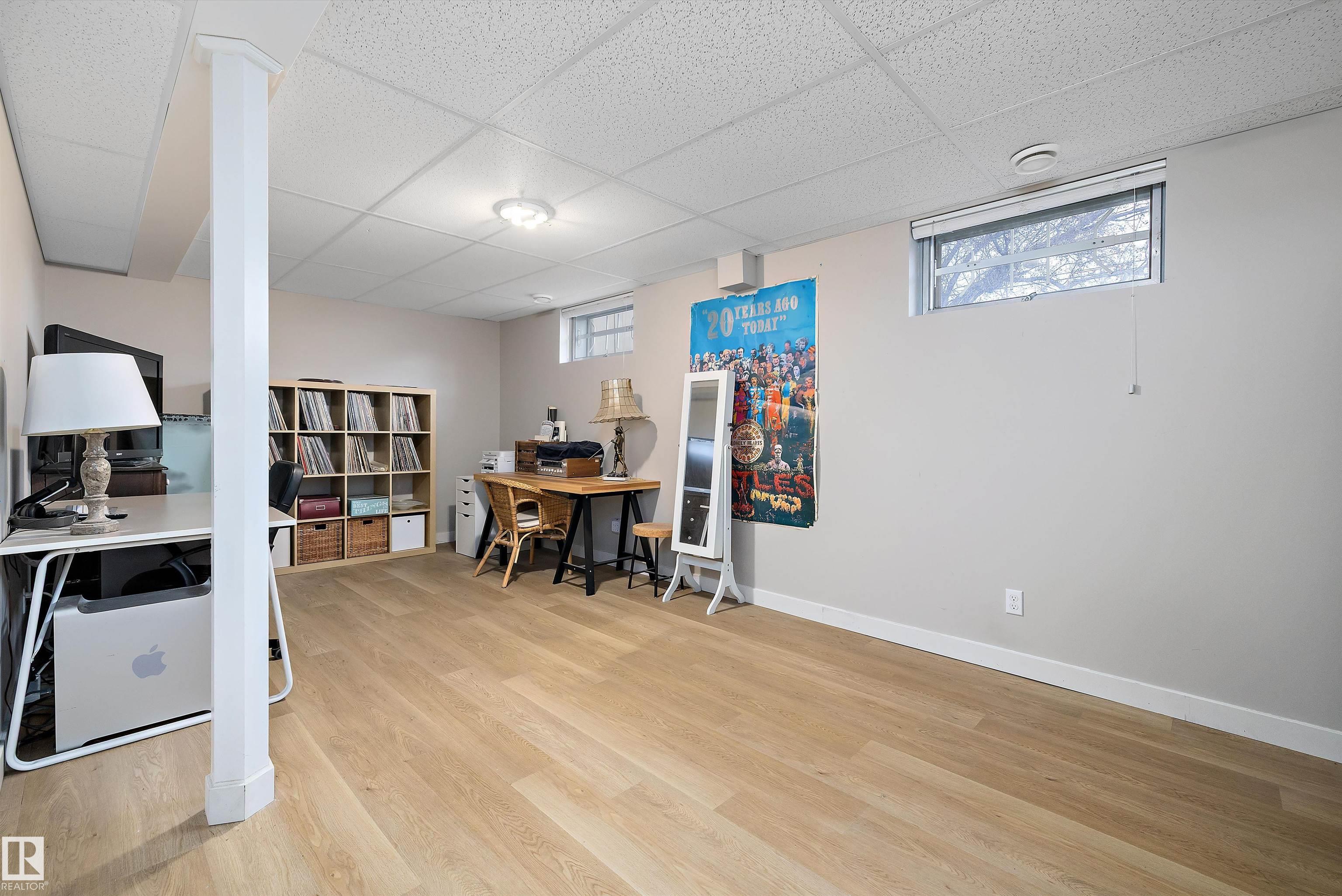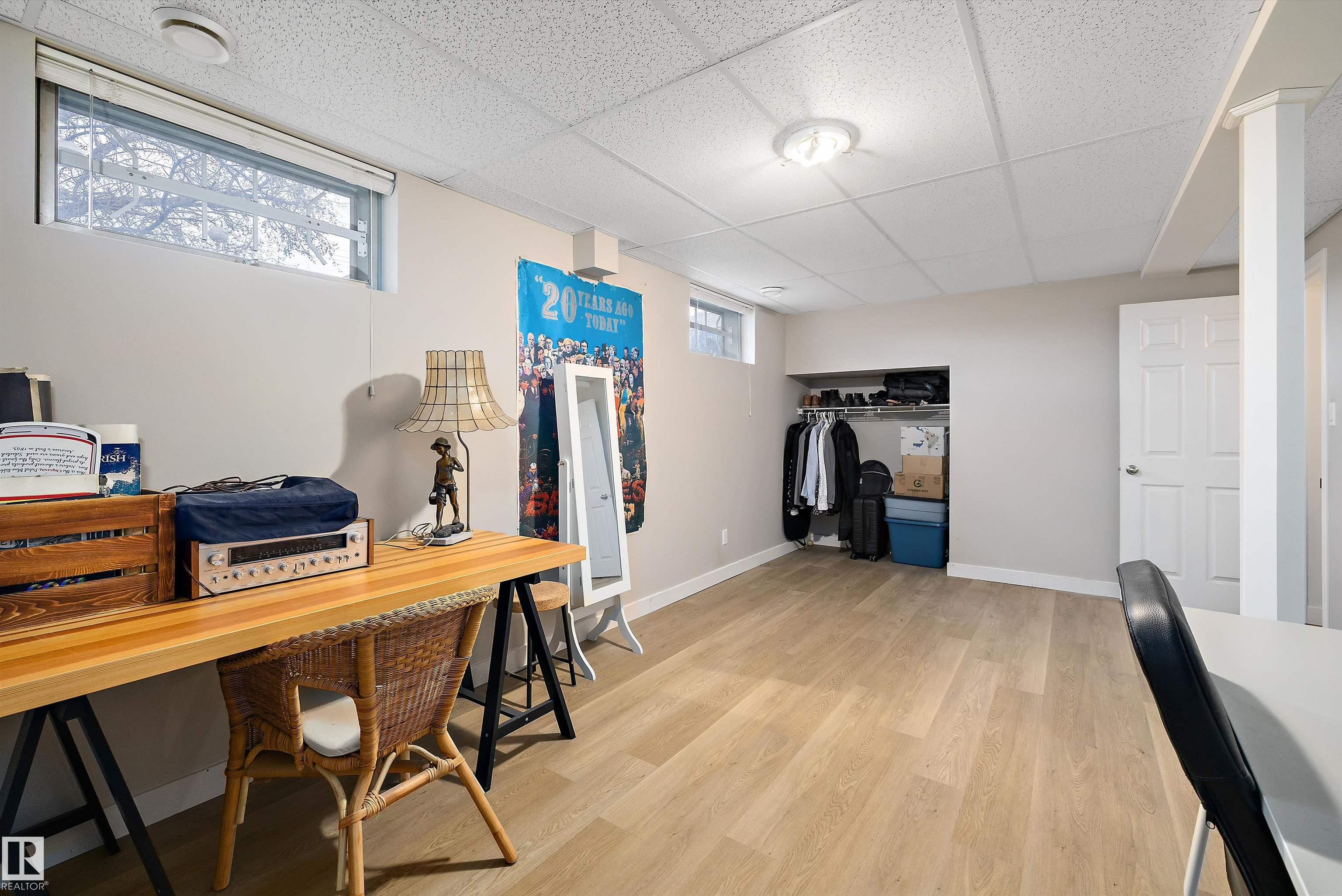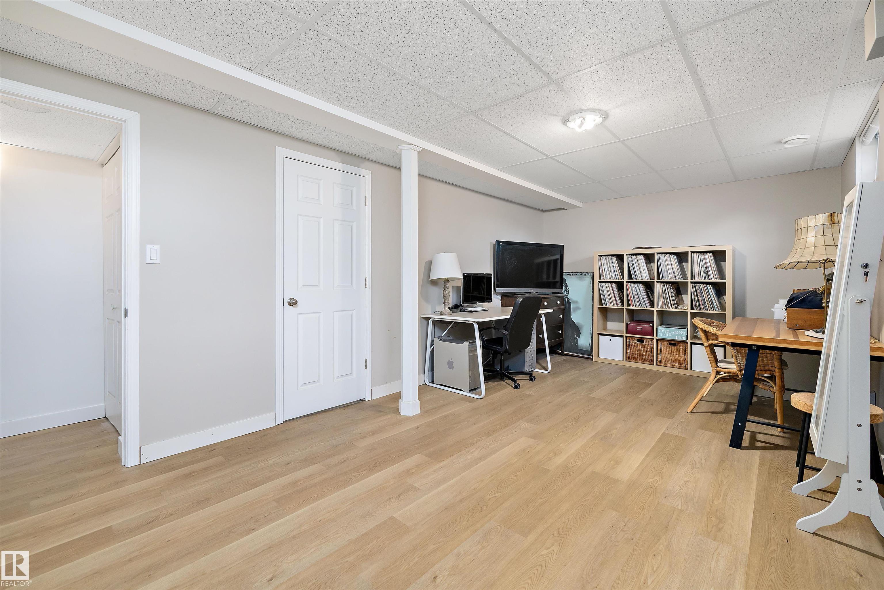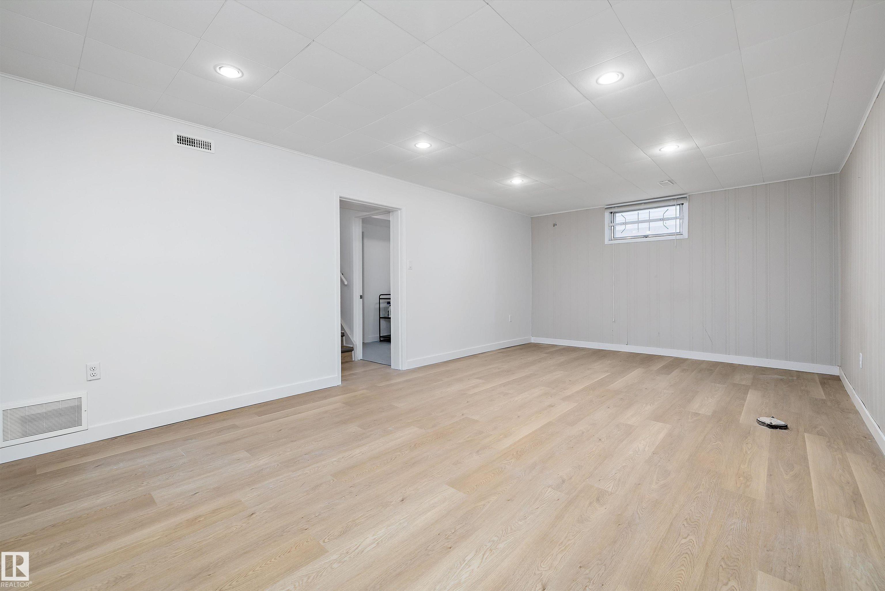 Welcome to Kenilworth. This beautifully renovated 3+2 bedroom home with a double garage offers a warm, inviting layout with modern finishes throughout. The main floor features a bright living room that flows into a stylish kitchen with tall cabinetry, recessed lighting, stainless steel appliances, and a contemporary tile backsplash. Three comfortable bedrooms on the main level, including a primary with a custom floor-to-ceiling glass closet. The updated main bath includes double sinks and fresh tile. The fully finished basement adds two additional bedrooms, a full bathroom, and a spacious family/rec room perfect for movie nights or play space. Upgraded windows and 100 amp electrical panel (house & garage).The garage is heated and insulated. Located in a desirable community close to schools, parks, and amenities--this move-in ready home checks all the boxes.