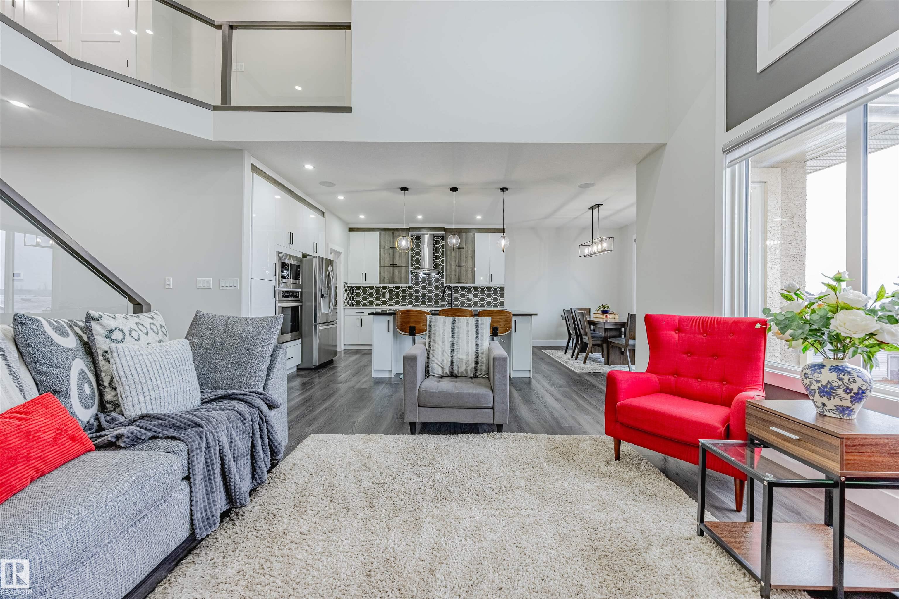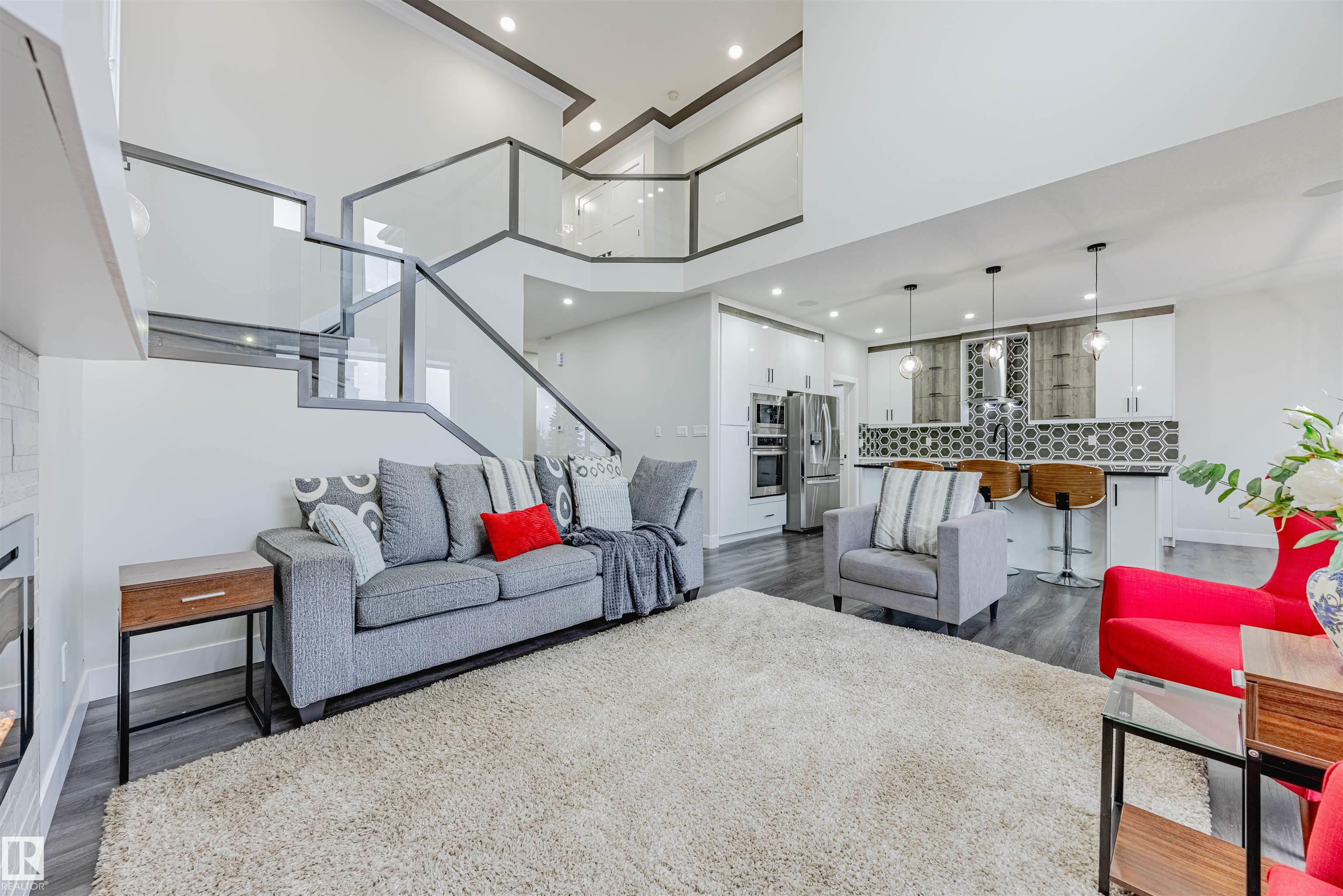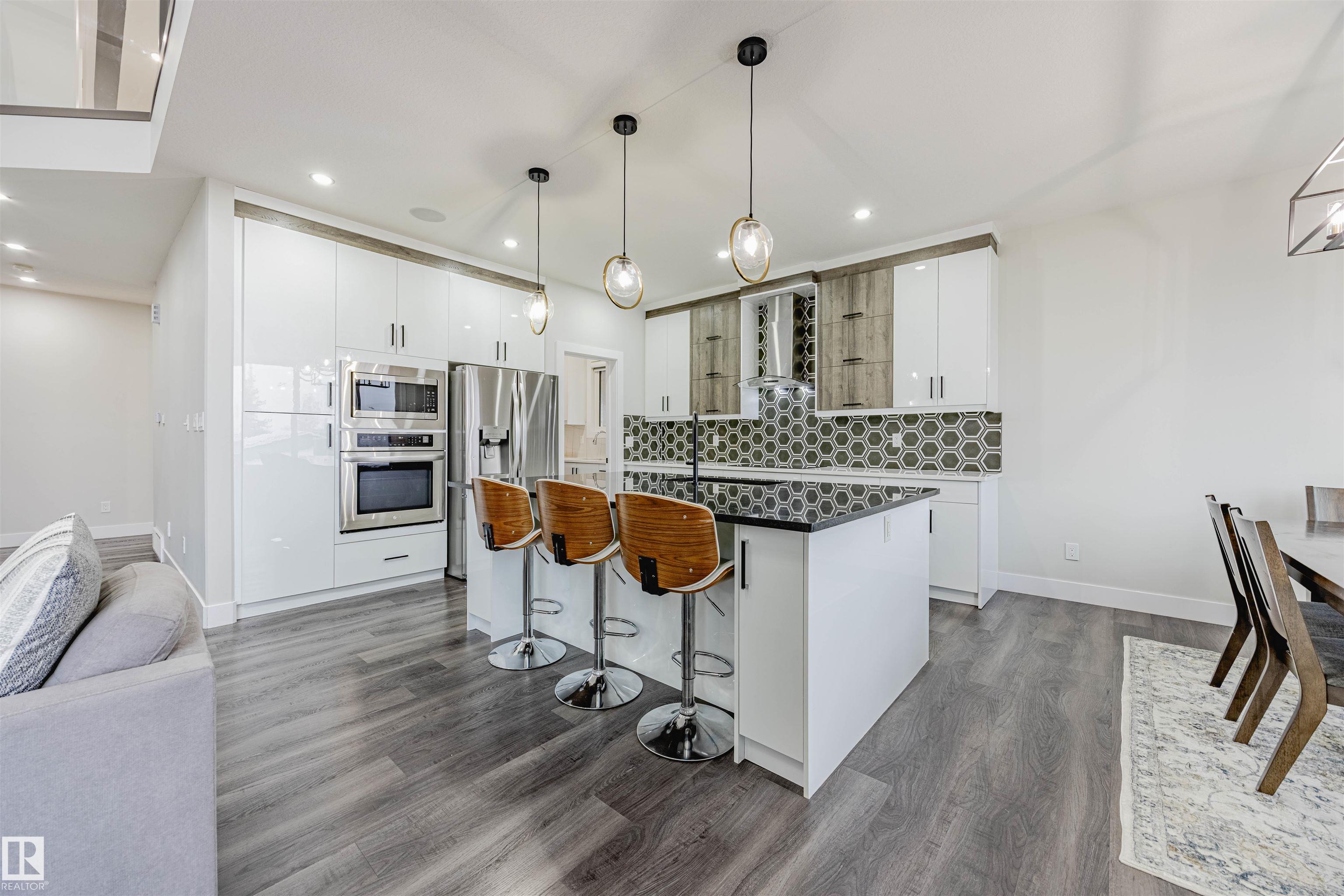 This breathtaking home truly feels like a showhome. Designed w/ elegance & functionality, offering 5 bdrms & 4 bths 2690sqft main home plus LEGAL 1109sqft 3bdrms, 2bth walk out basement suite! Stunning open-to-below living room featuring floor-to-ceiling tiled electric fireplace that makes striking focal point. The chef's kitchen is a dream w/ massive island, SS appliances to-the-ceiling cabinetry & plenty of storage. A spice kitchen w/ gas range adds the perfect touch for those who love to cook. The main floor bdrm & full 3pc bth make this home ideal for guests or multi-generational living. Upstairs, the primary suite impresses w/ coffered ceilings, spacious walk-in closet & luxurious 5pc ensuite. Plus second bdrm w/ its own 4pc ensuite, additional bedroom & bathroom & lg bonus room for family movie nights or a play area. The 3bed/2bth spacious walkout basement suite is an incredible bonus, complete w/ 9ft ceilings, lg windows for natural light & primary bedroom w/ walk-in closet & 4-piece ensuite.