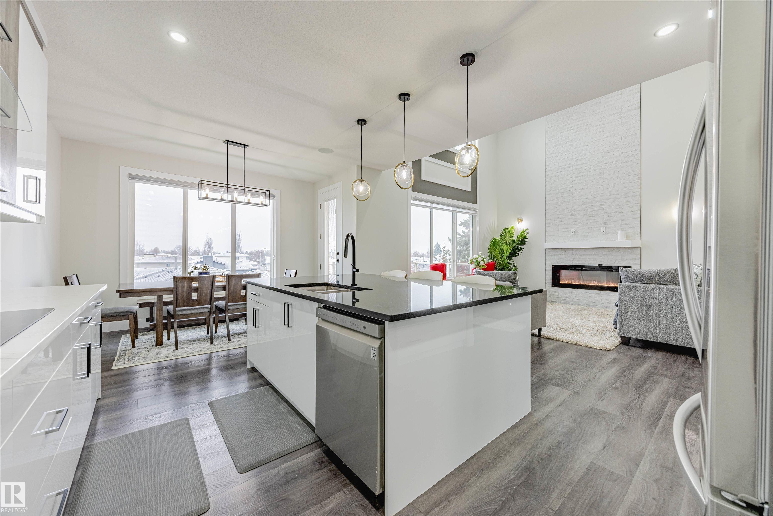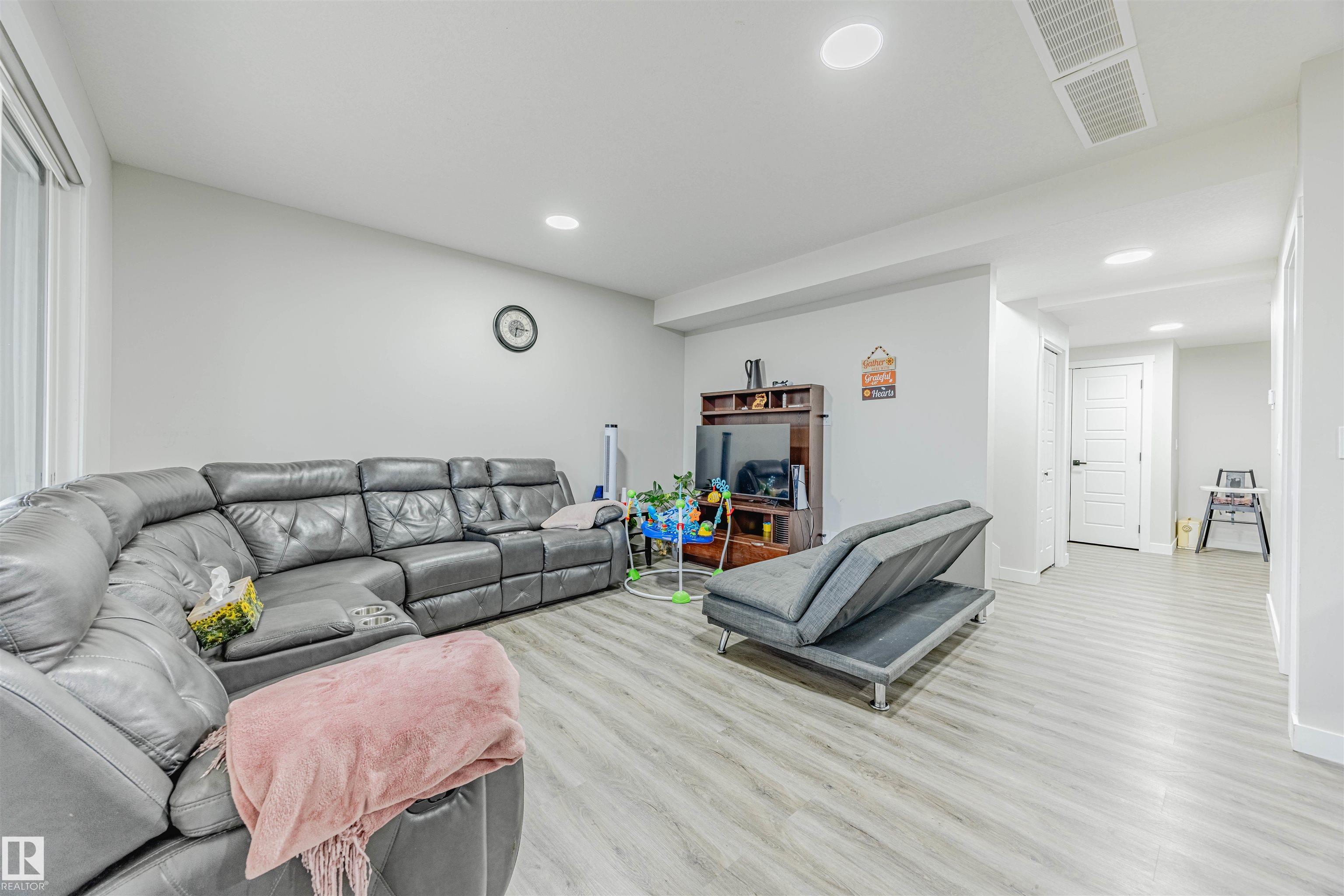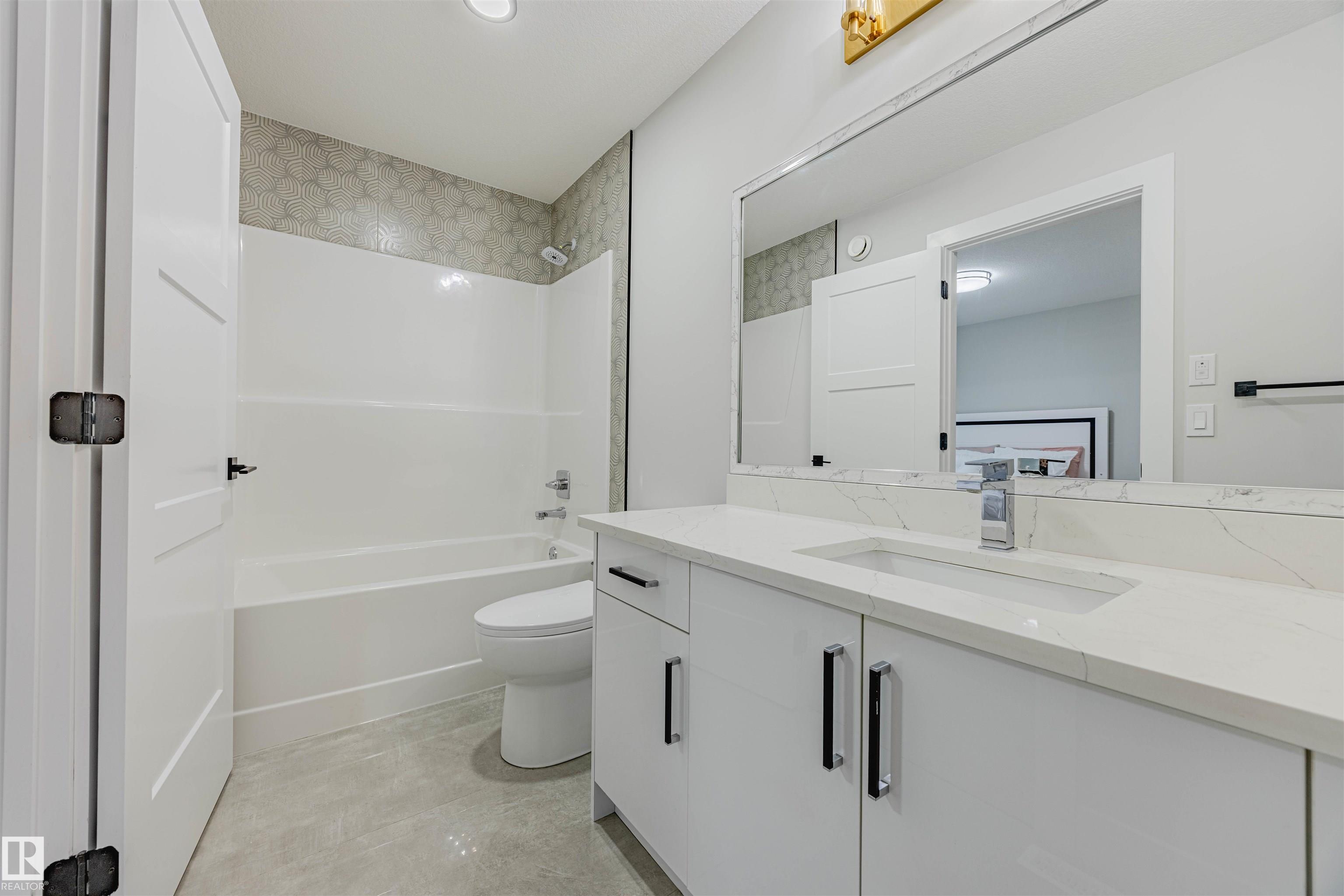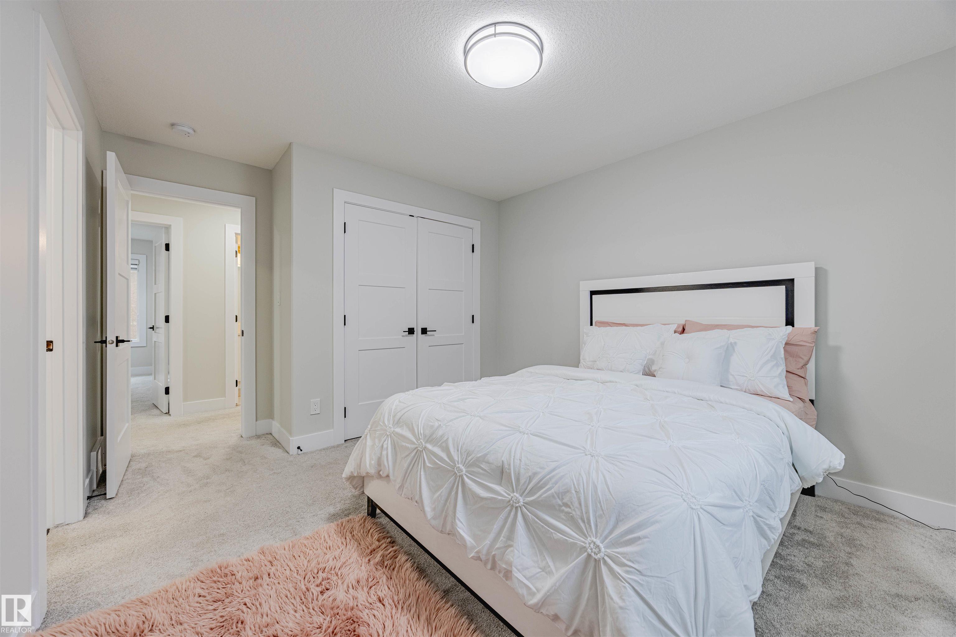 This breathtaking home truly feels like a showhome. Designed w/ elegance & functionality, offering 5 bdrms & 4 bths 2690sqft main home plus LEGAL 1109sqft 3bdrms, 2bth walk out basement suite! Stunning open-to-below living room featuring floor-to-ceiling tiled electric fireplace that makes striking focal point. The chef's kitchen is a dream w/ massive island, SS appliances to-the-ceiling cabinetry & plenty of storage. A spice kitchen w/ gas range adds the perfect touch for those who love to cook. The main floor bdrm & full 3pc bth make this home ideal for guests or multi-generational living. Upstairs, the primary suite impresses w/ coffered ceilings, spacious walk-in closet & luxurious 5pc ensuite. Plus second bdrm w/ its own 4pc ensuite, additional bedroom & bathroom & lg bonus room for family movie nights or a play area. The 3bed/2bth spacious walkout basement suite is an incredible bonus, complete w/ 9ft ceilings, lg windows for natural light & primary bedroom w/ walk-in closet & 4-piece ensuite.