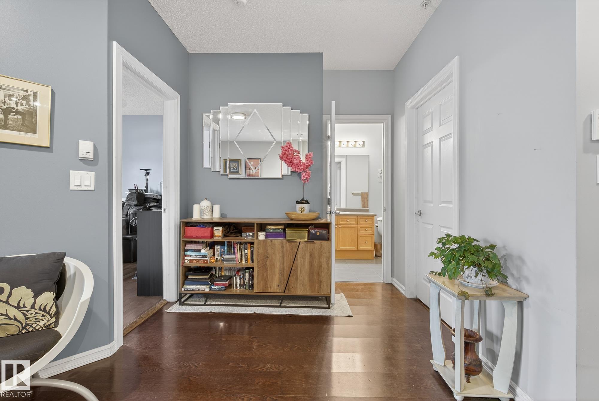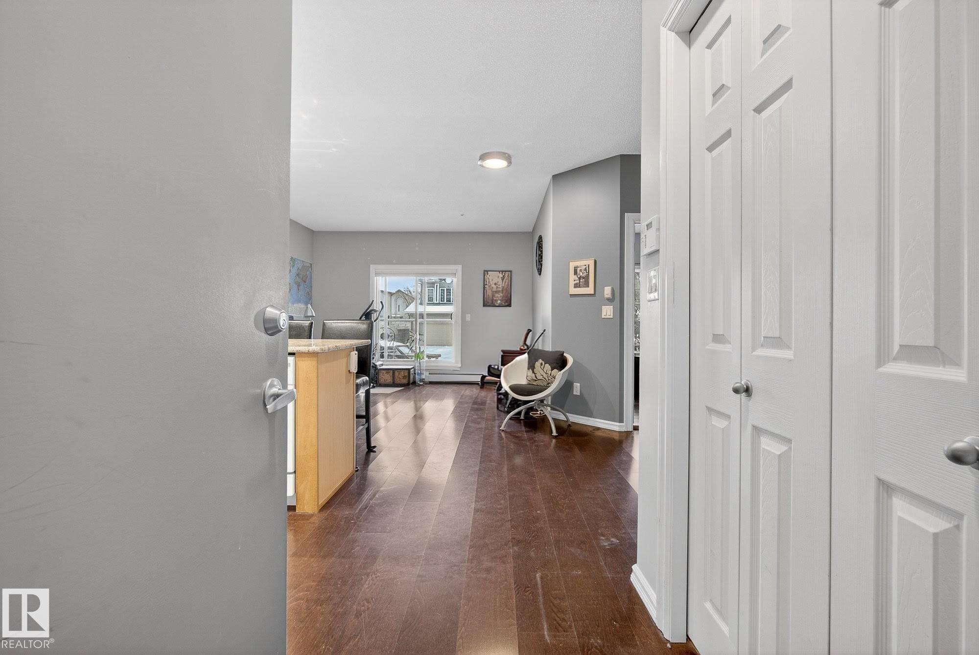 Picture your Tuesday morning: coffee in hand, stepping onto your private balcony as the sun rises through the privacy of the trees outside your unit. This main floor condo in Macewan Gardens lives bigger than its square footage suggests, with 9' ceilings that flood the space with south facing light. Your bedroom features hardwood floors and a convenient walk-through closet connecting directly to the bathroom (no more morning hallway shuffle). The kitchen's GRANITE counters will see plenty of meal prep, and IN-SUITE LAUNDRY means no more elevator rides with your hamper. UNDERGROUND PARKING keeps your car happy year-round, while the building's GYM takes the "should I work out?" debate off the table. ALL UTILITIES and amenities are bundled into your condo fees, simplifying budgets and life admin. The bus stops right outside when you need it, shops and services are minutes away, and that neighboring park? It's your backyard now. PETS WELCOME. Ready to move in and start your next chapter.