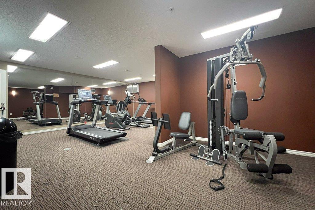 This well-maintained 2 bedroom, 2 full bathroom condo offers incredible value and convenience. Featuring an open-concept layout, vinyl plank flooring through-out, the kitchen is equipped with an island and includes stainless steal appliances -- perfect for easy entertaining. The bright central living room opens to a northeast-facing patio through sliding doors, providing a great space to relax. The spacious primary bedroom boasts a walk-in closet and a private 4-piece ensuite. A generous second bedroom is ideal for a home office or guest room, complemented by an additional 4-piece bathroom. Enjoy the convenience of in-suite laundry with a stacking washer and dryer. Situated on the main floor -- no stairs or elevators needed -- this unit also comes with a heated, titled underground parking stall. Building amenities include an exercise room and a social room. Why rent when you can own this fantastic home.