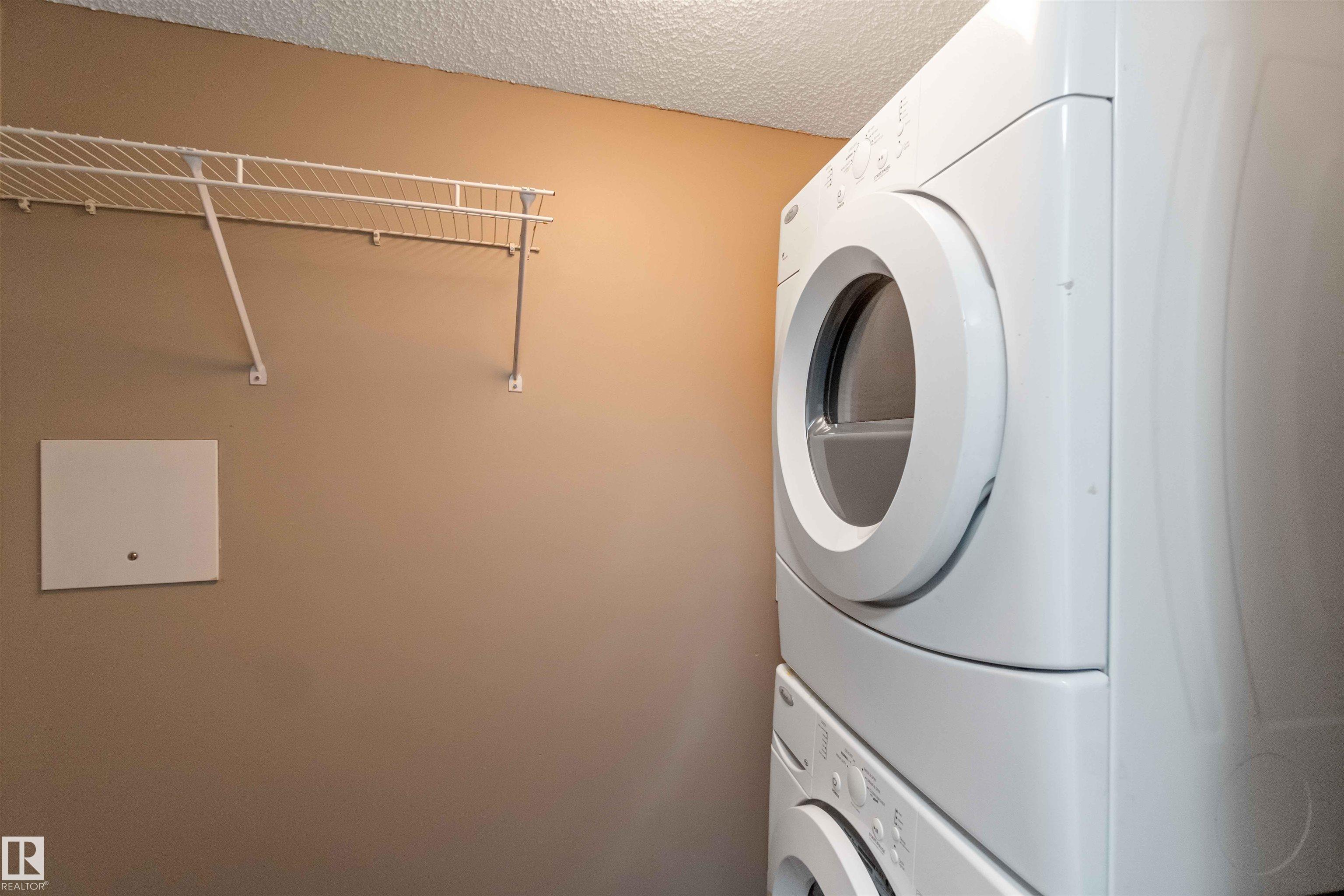 Welcome to McConachie! This impressive corner unit condo offers 2 bedrooms, 2 bathrooms, and a versatile den/flex space. Designed with privacy in mind, this modern floor plan features only one shared wall and a spacious primary suite complete with a walk-in closet and private ensuite. Enjoy the convenience of in-suite laundry, granite countertops, stainless steel appliances, and air conditioning--a rare find. For those long Edmonton winters, take advantage of heated underground parking for added comfort and peace of mind. The open-concept living area flows seamlessly into a well-appointed kitchen with espresso, soft-close cabinetry and a cozy breakfast nook. Both bedrooms are generously sized, offering plenty of space and functionality. Enjoy your morning coffee on the large balcony! This home is an excellent opportunity for first-time buyers, downsizers, or investors.