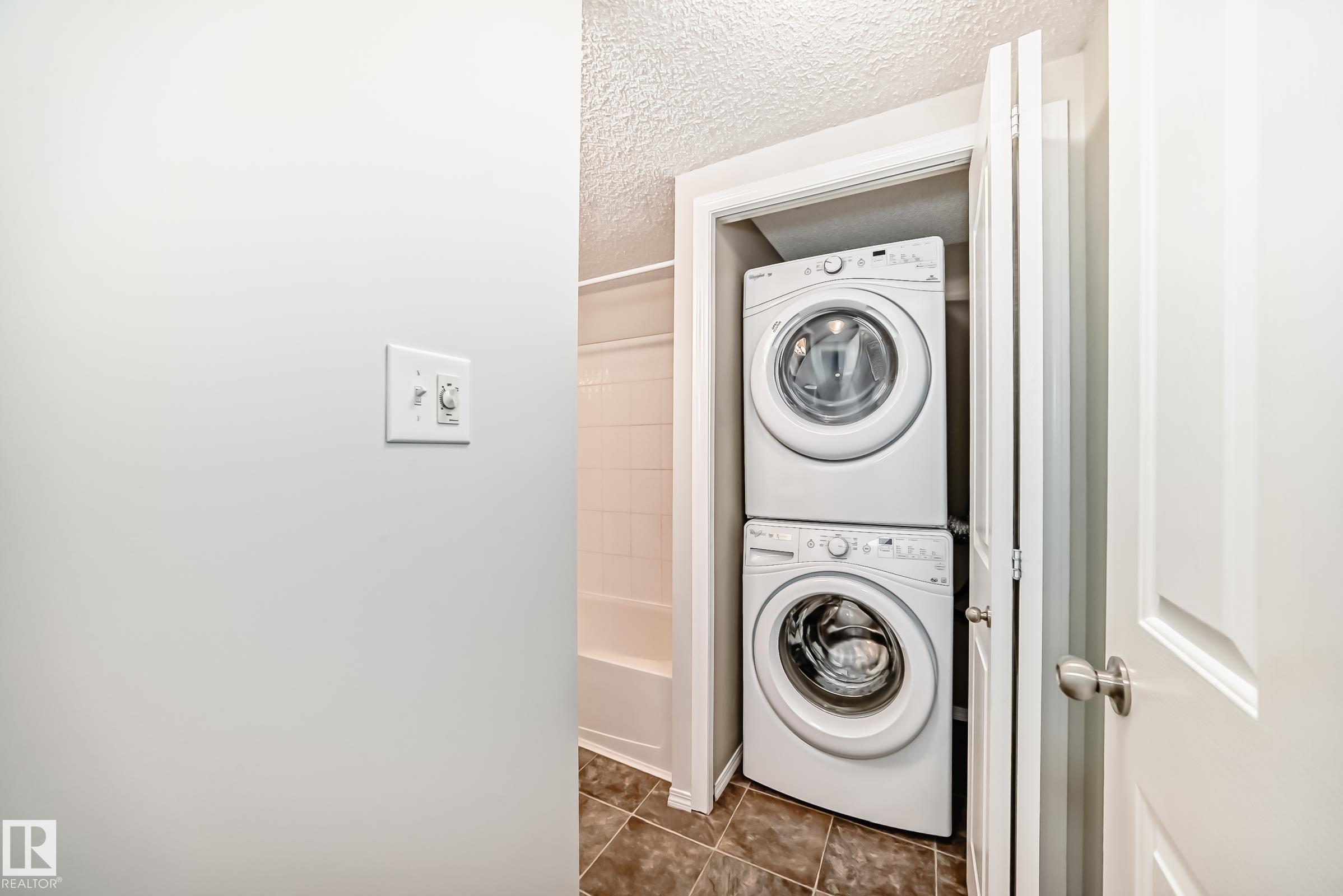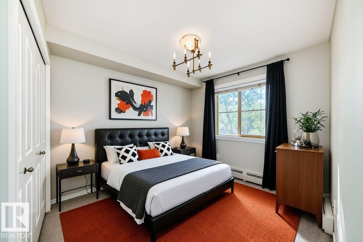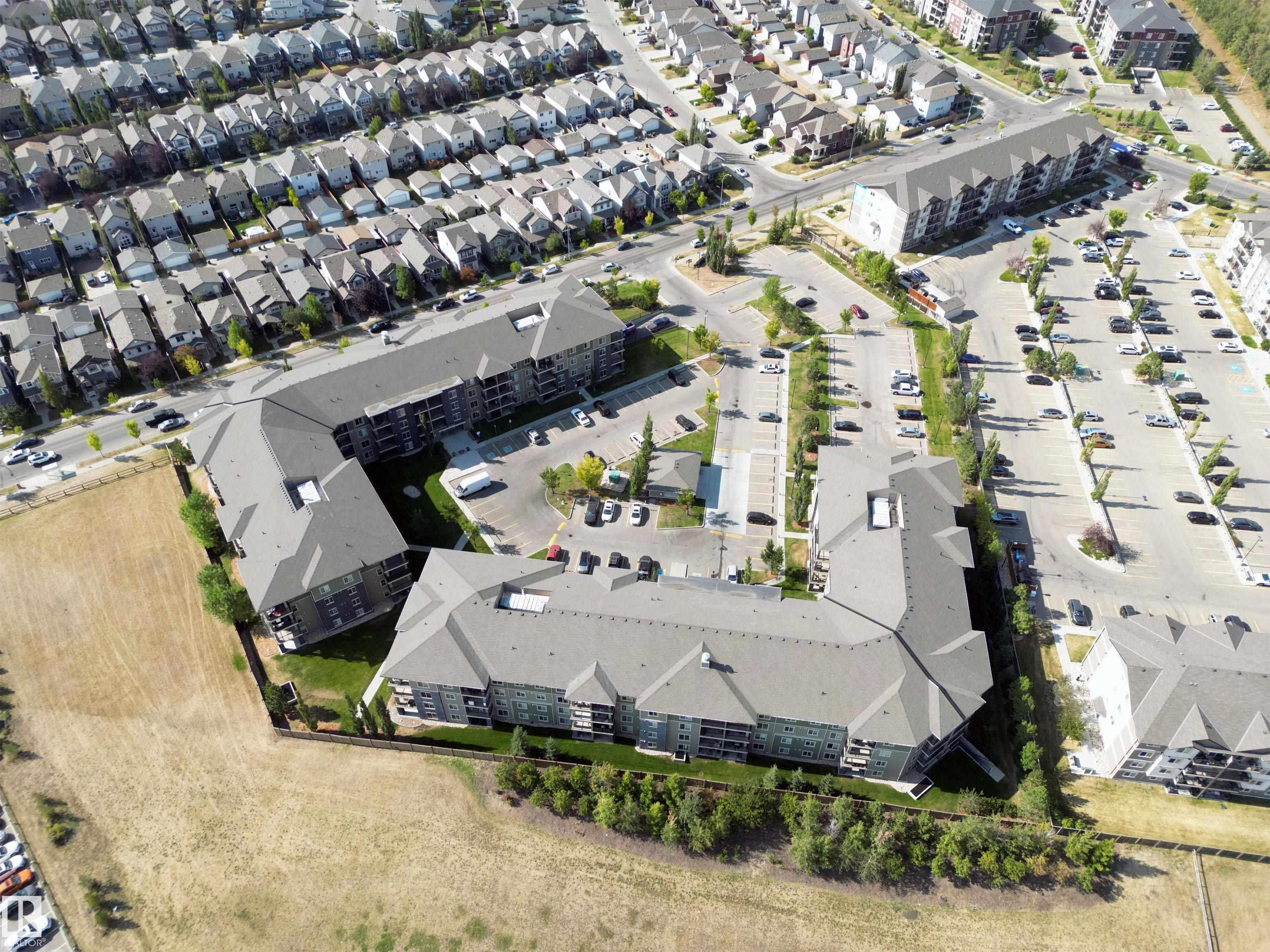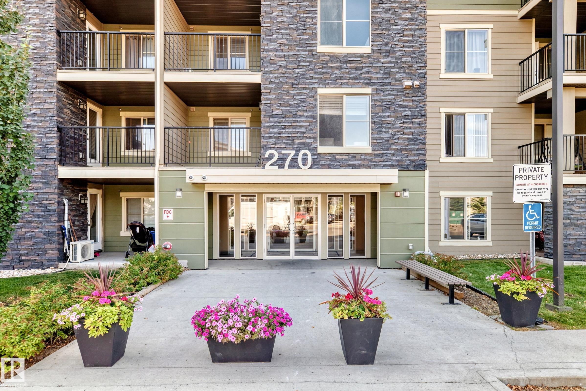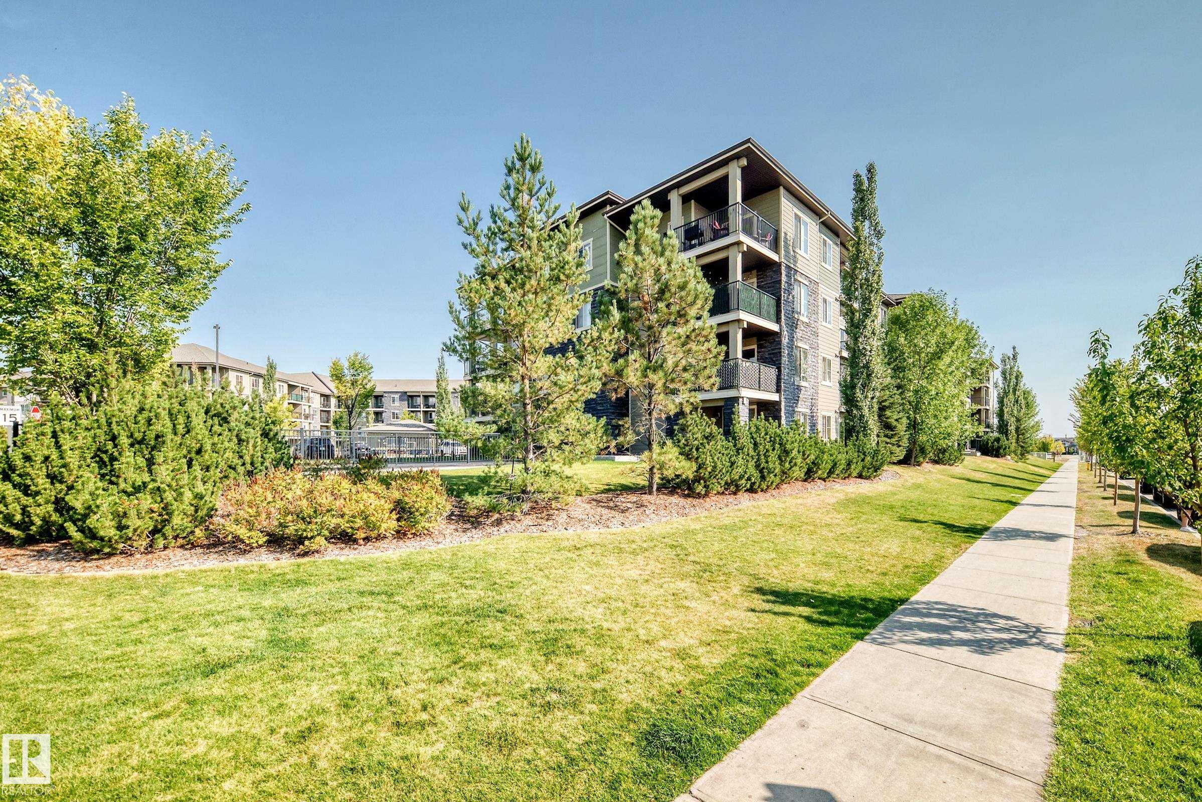 Welcome to McConachie - this is the one! Spacious 763 sq.ft main floor unit with 2 bedrooms, 2 bathrooms, den, 2 parking stalls, in-suite laundry and A/C, all in one stylish package! Enter this well-maintained unit and you are greeted with an open and bright floor plan, new flooring, and window view of mature trees. The kitchen boasts a peninsula style island with s/s appliances. The living and dining areas blend seamlessly together offering easy access to the south-facing covered patio. This unit faces McConachie Dr., providing the added benefit of convenient street parking and direct access to the unit perfect for you and your guests. The primary bedroom has a walk-through closet and private 4-piece ensuite with tiled shower. The second bedroom is also a good size able to fit a queen size bed. Complete the package with the heated underground and surface parking stalls. The complex is pet-friendly and within walking distance of schools, bus stops, & more amenities by vehicle including the Anthony Henday.