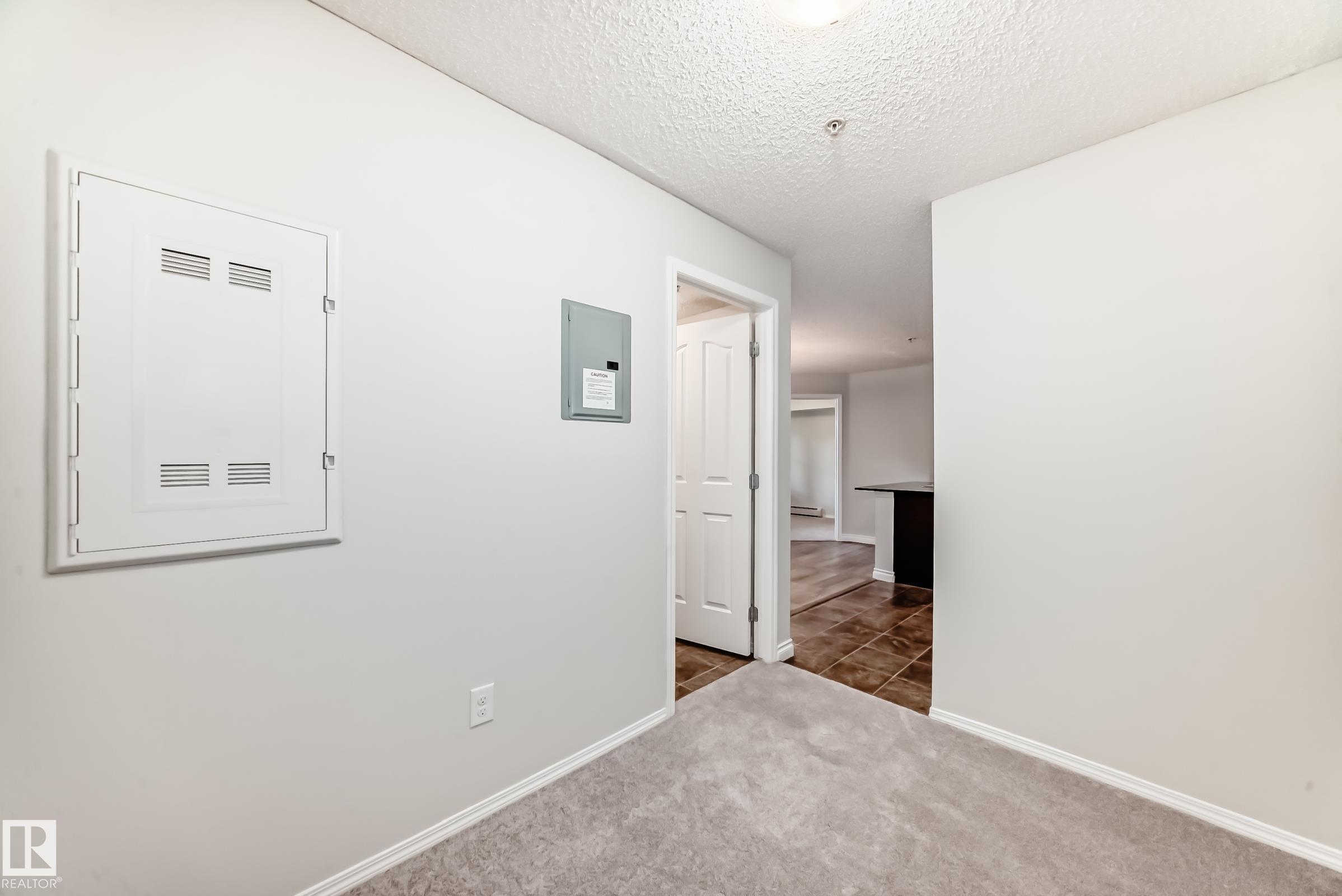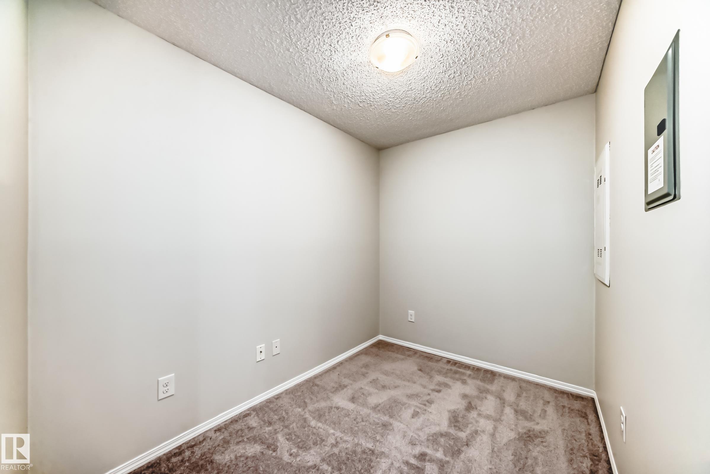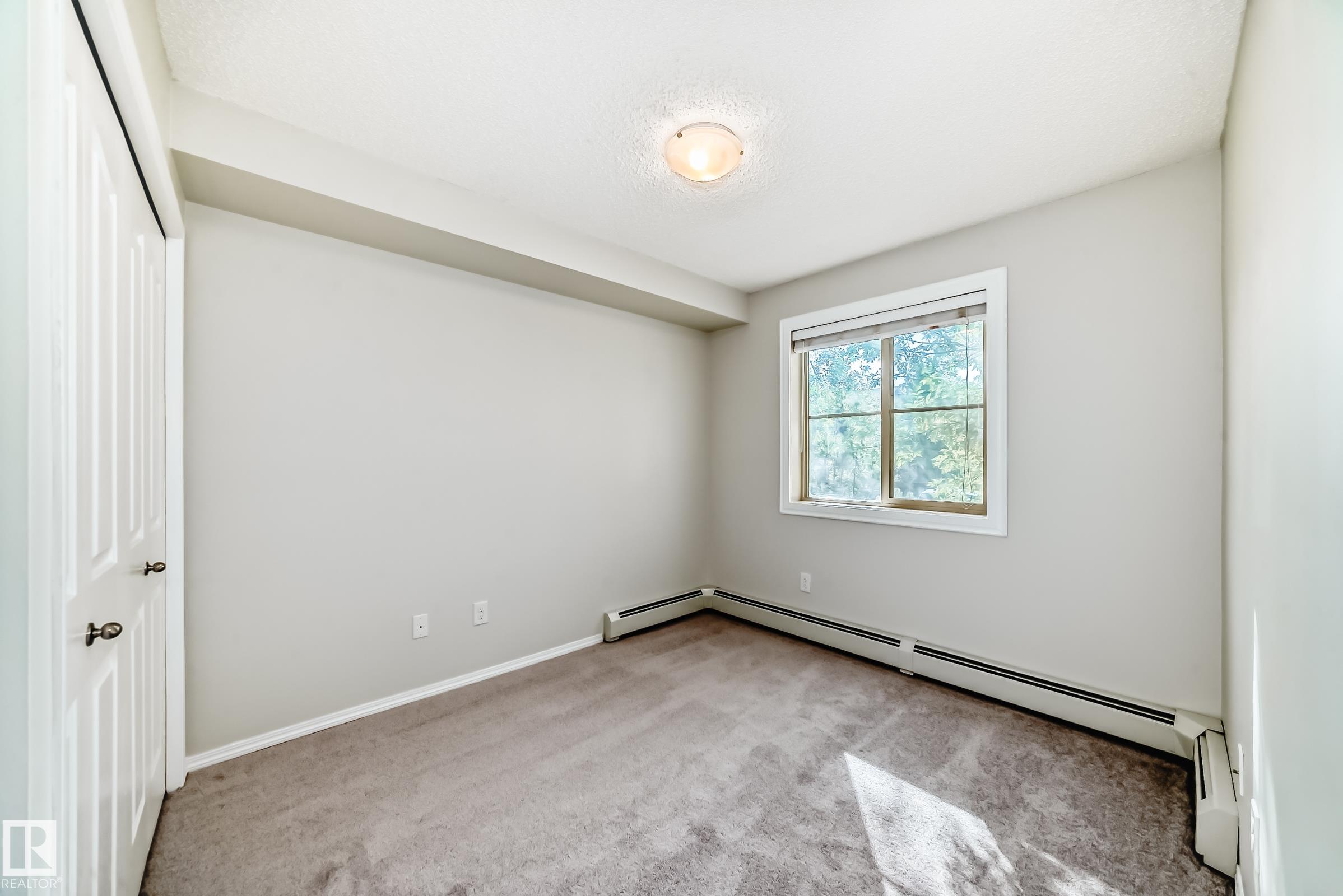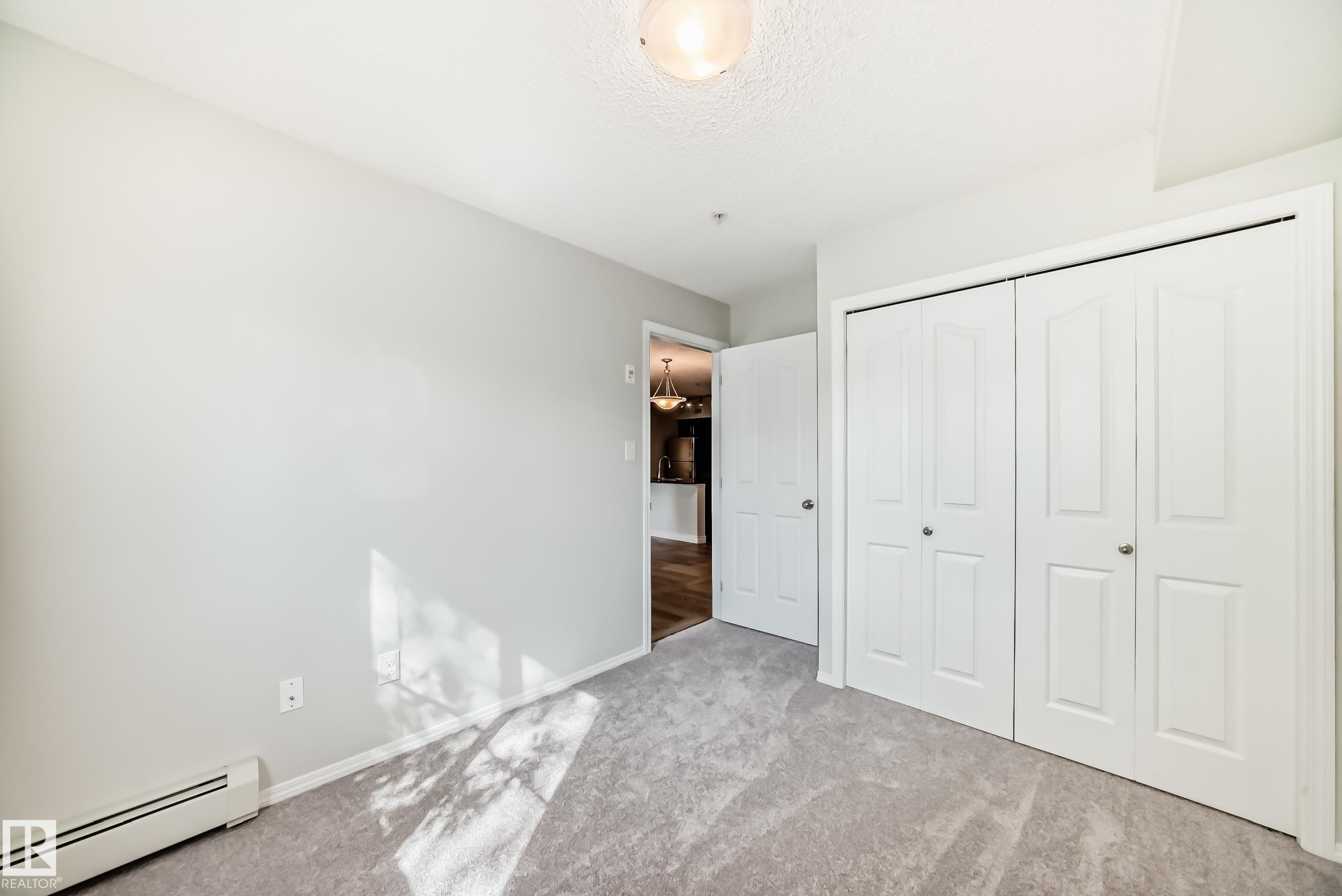 Welcome to McConachie - this is the one! Spacious 763 sq.ft main floor unit with 2 bedrooms, 2 bathrooms, den, 2 parking stalls, in-suite laundry and A/C, all in one stylish package! Enter this well-maintained unit and you are greeted with an open and bright floor plan, new flooring, and window view of mature trees. The kitchen boasts a peninsula style island with s/s appliances. The living and dining areas blend seamlessly together offering easy access to the south-facing covered patio. This unit faces McConachie Dr., providing the added benefit of convenient street parking and direct access to the unit perfect for you and your guests. The primary bedroom has a walk-through closet and private 4-piece ensuite with tiled shower. The second bedroom is also a good size able to fit a queen size bed. Complete the package with the heated underground and surface parking stalls. The complex is pet-friendly and within walking distance of schools, bus stops, & more amenities by vehicle including the Anthony Henday.