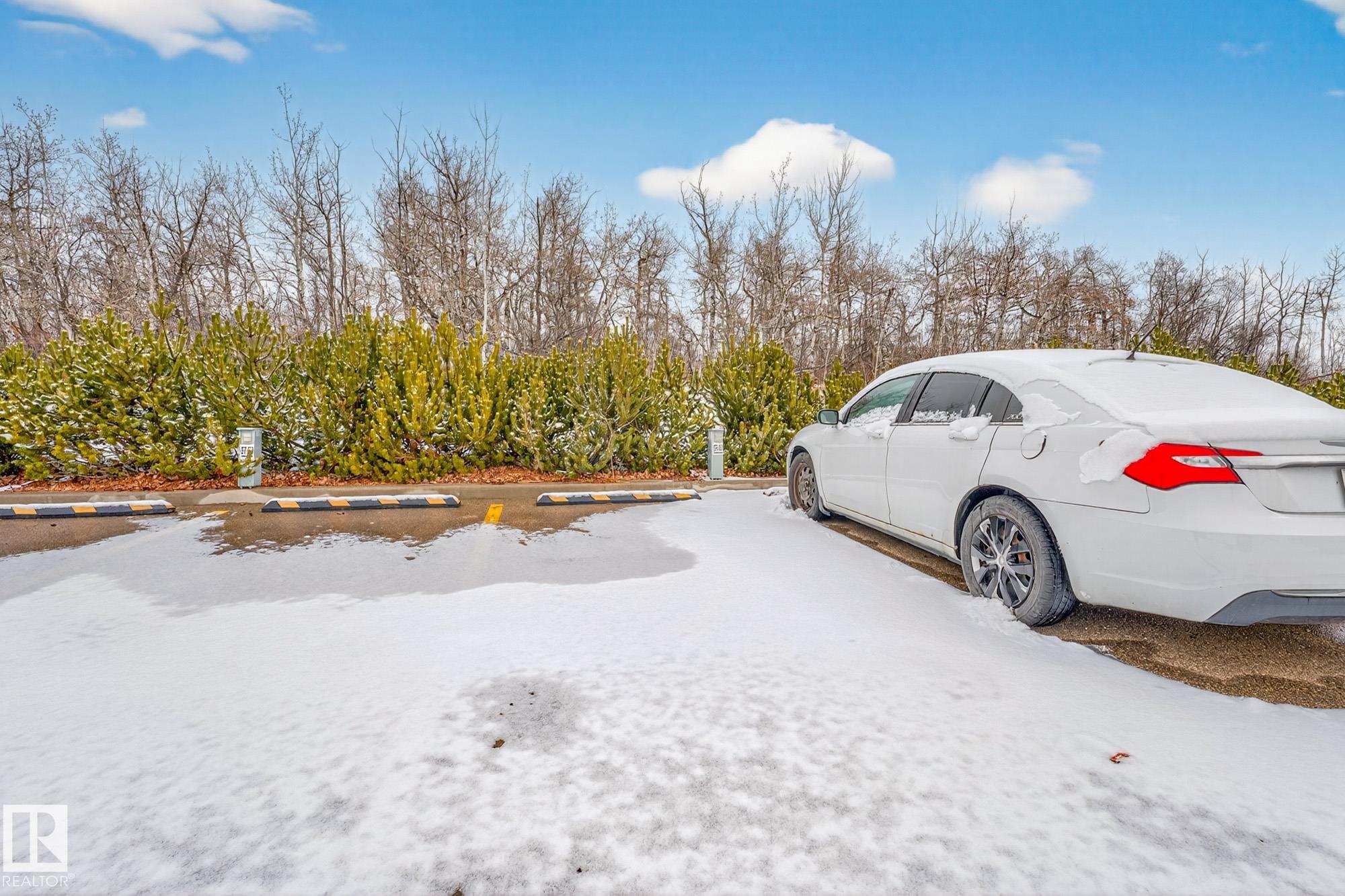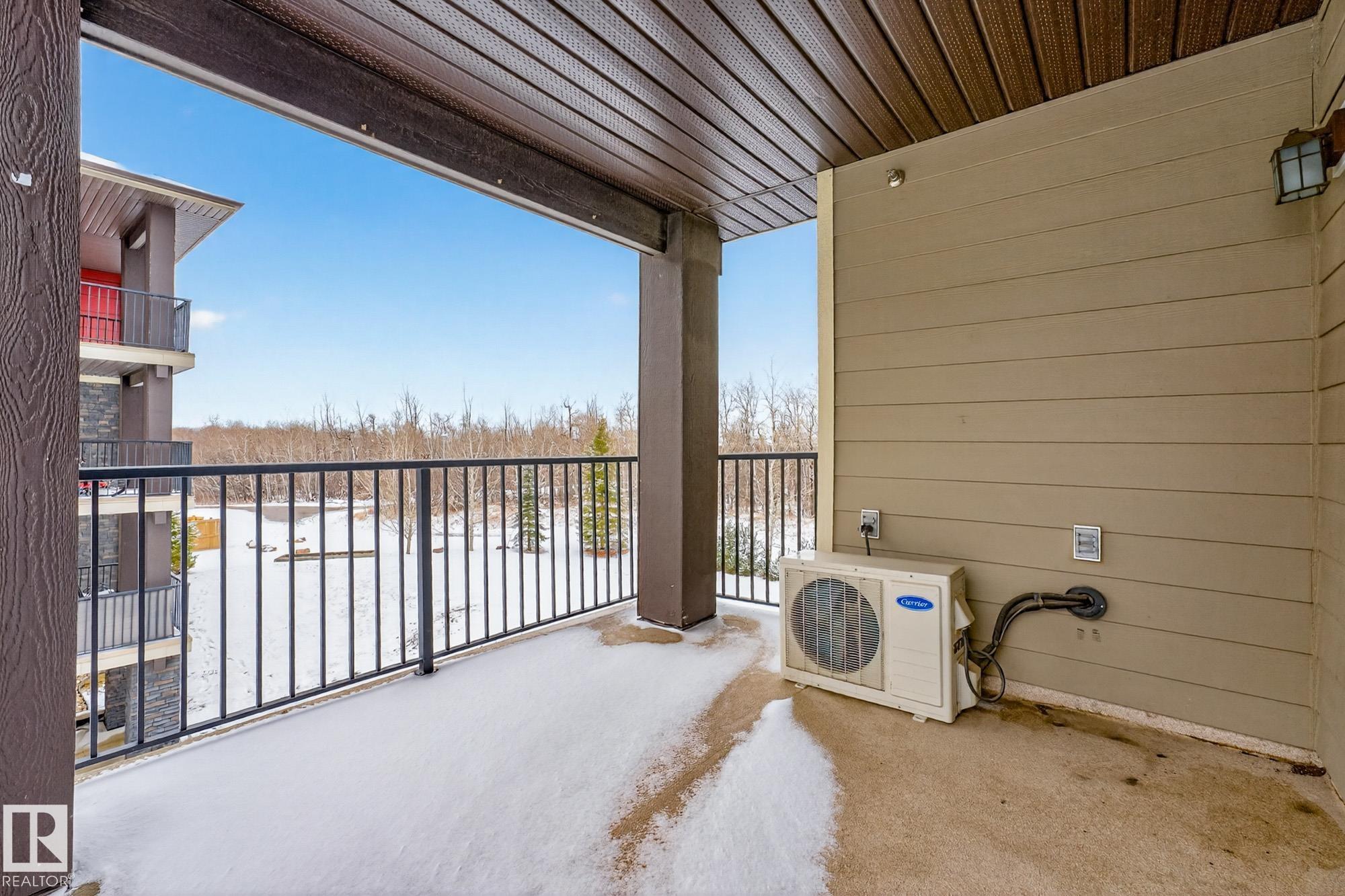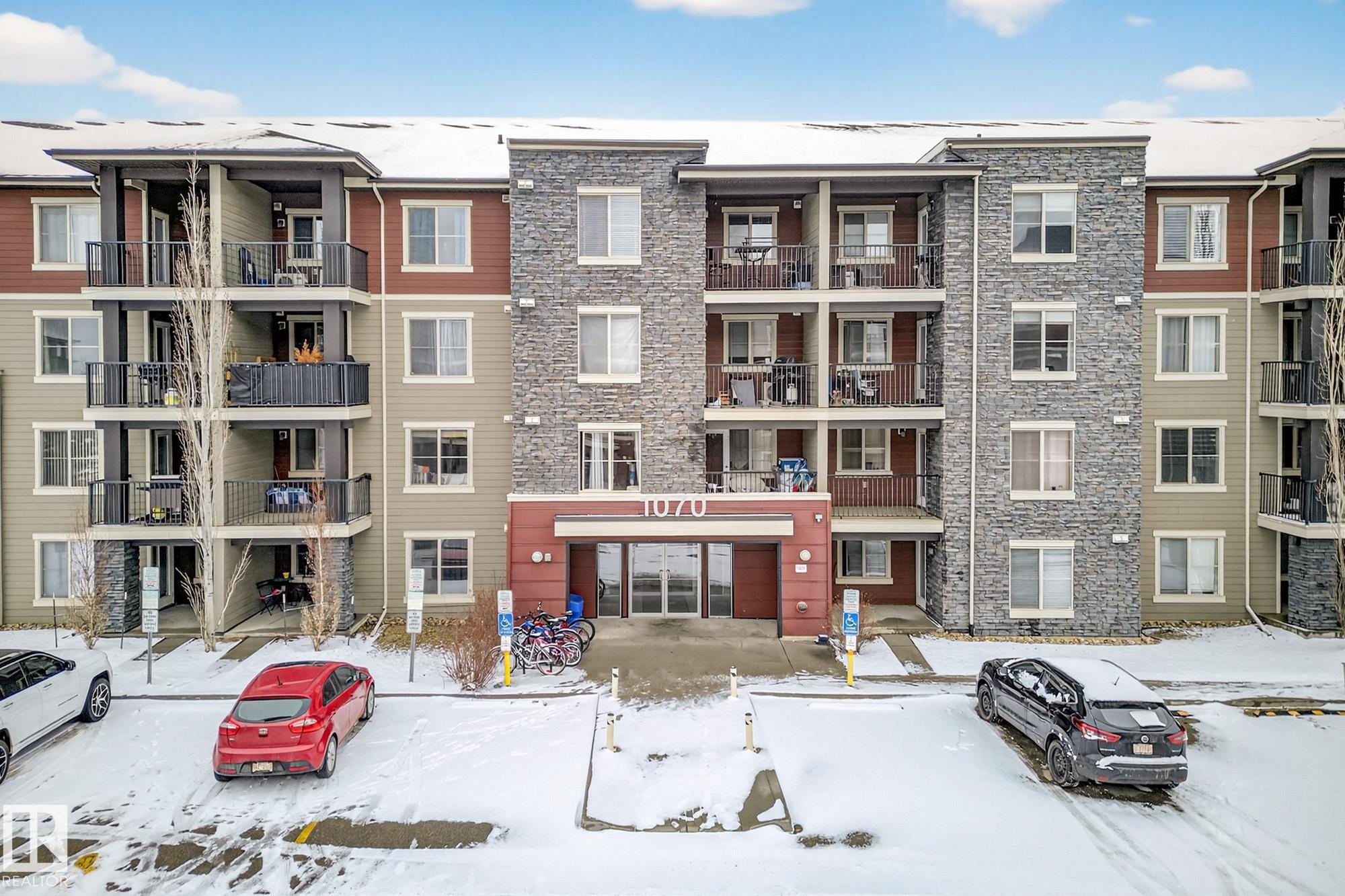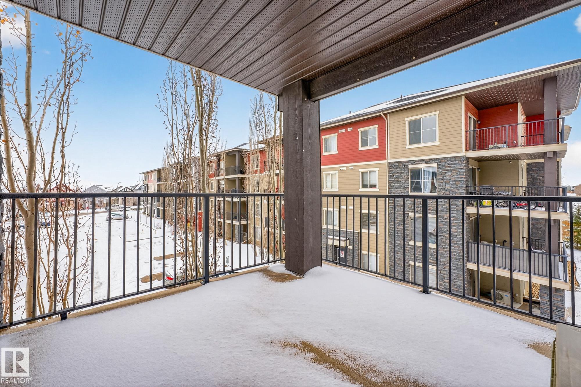 Welcome to Elements of McConachie! Meticulously maintained, this corner unit offers over 961 SQFT of living space, featuring 2 bedrooms + a den, 2 bathrooms and 2 parking stalls (1 underground #168 & 1 surface #59). The freshly painted, open-concept corner layout is filled with natural light and enhanced by added privacy. The stylish kitchen features granite countertops, maple cabinetry, and energy-efficient appliances. Step out onto the SW facing balcony to enjoy all day sunshine, or stay comfortable year-round with air-conditioning. Ideal for first time home buyers, young professionals or property investors, this modern unit also includes in-suite laundry, visitor parking for your guests & ample storage with a storage cage- perfect for storing bikes, tires and seasonal items. Located in a well managed complex with monthly condo fees that include heat & water you are just minutes from all amenities with quick access to the Anthony Henday & all major arteries. This property is turn key ready for you!
