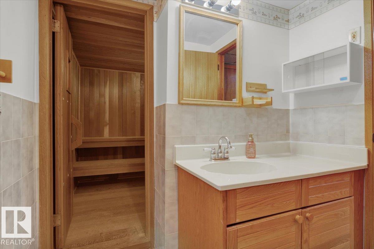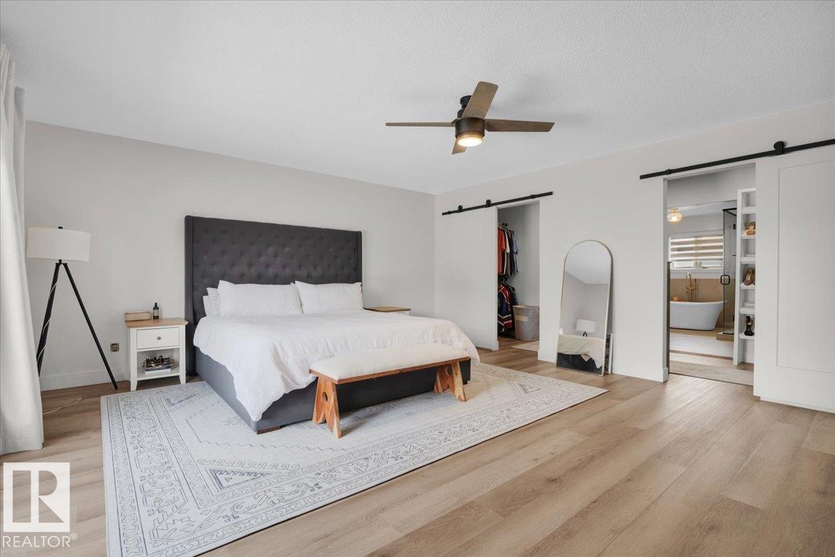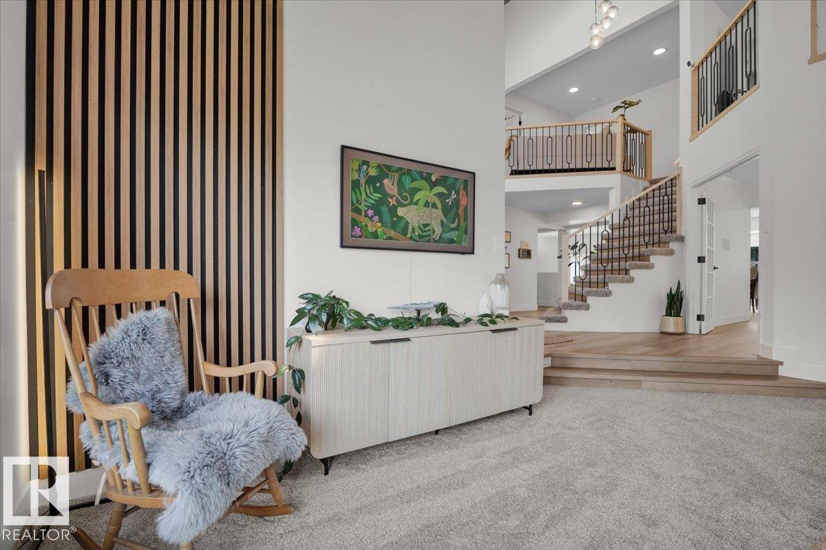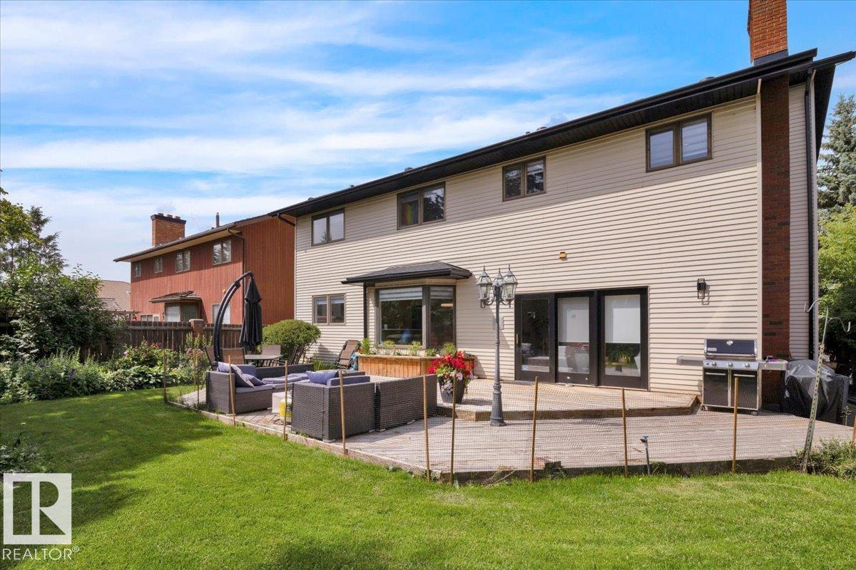 This 3150 sq ft AIR CONDITIONED luxury home sits on a beautiful landscaped lot in the quiet & desirable community of Ramsay Heights. The breathtaking grand foyer welcomes you with a 2 storey vaulted ceiling with skylights that bathe the entrance with natural light. The gourmet kitchen has loads of warm & modern cabinets, quartz counters & new black stainless appliances. A stylish wet bar is next to the great room with a wood burning fireplace and looks out to the perfectly manicured back yard. A huge formal dining room, guest bedroom, full bath & mud/laundry room complete the main. The master bedroom is enormous with its own rooftop veranda. The walk-in closet & incredible 5 pc ensuite with full glass shower & free standing tub are exquisite. 2 large bedrooms, another stunning 5 pc bath & a loft that looks over the whole home finish the upper. The basement has a 5th bedroom, wet bar, massive living room & full bath with a working sauna. New roof (2024), exterior LED Xmas lights (2025), Irrigation system.