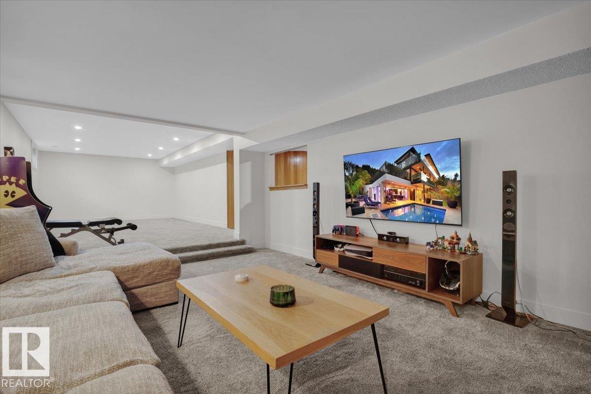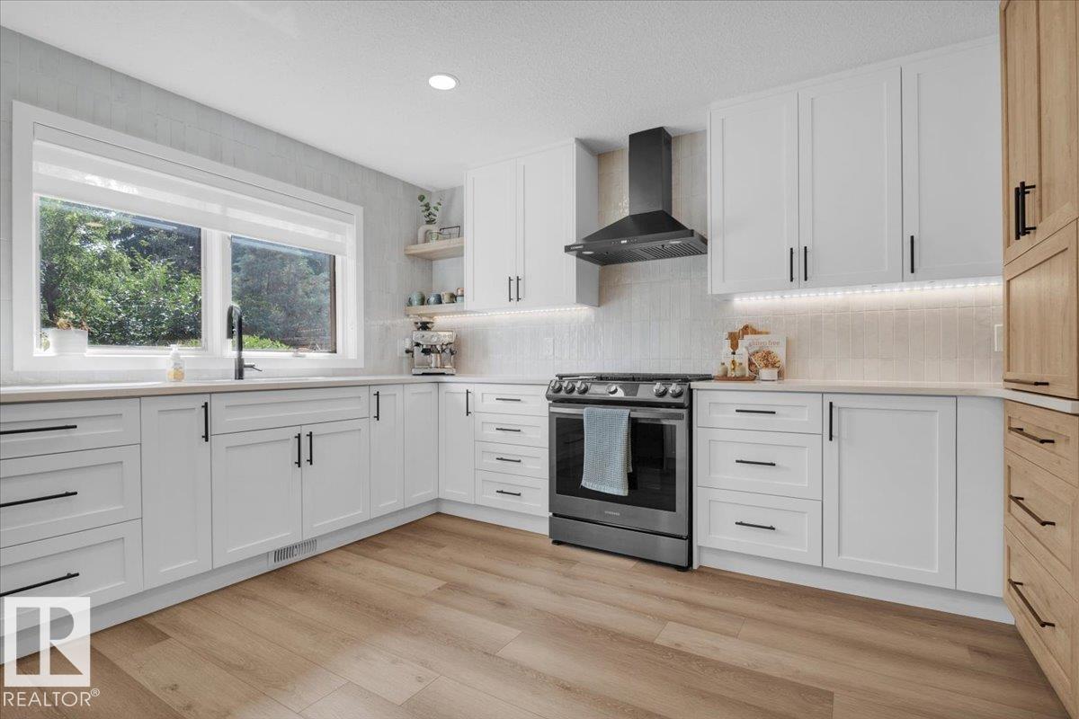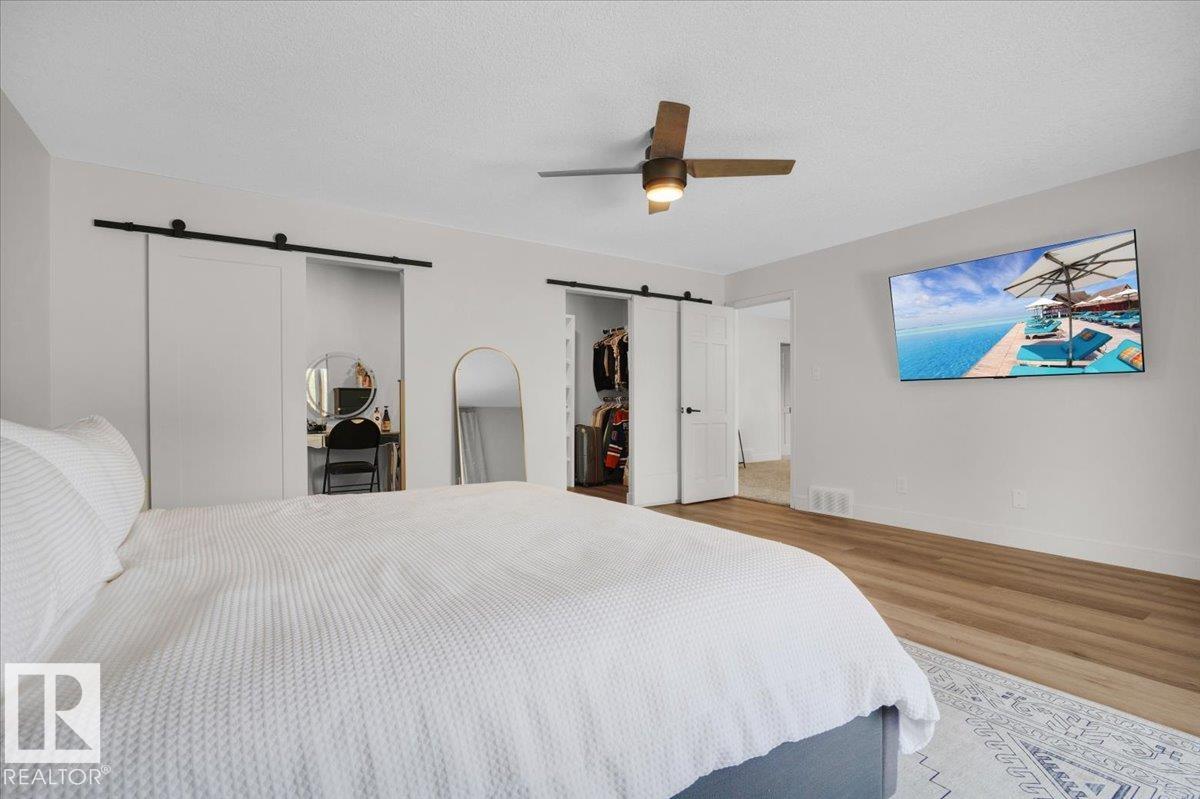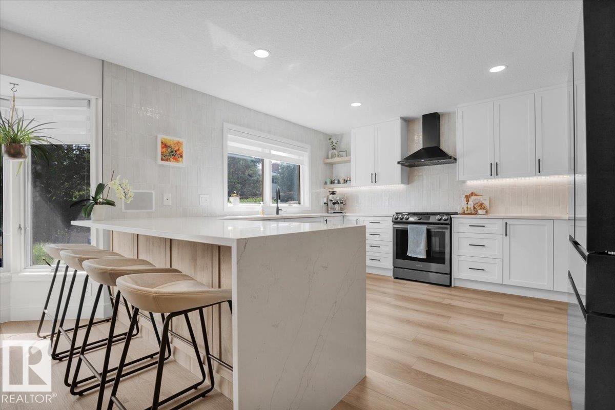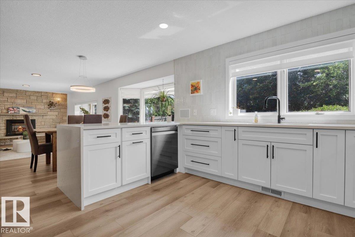 This 3150 sq ft AIR CONDITIONED luxury home sits on a beautiful landscaped lot in the quiet & desirable community of Ramsay Heights. The breathtaking grand foyer welcomes you with a 2 storey vaulted ceiling with skylights that bathe the entrance with natural light. The gourmet kitchen has loads of warm & modern cabinets, quartz counters & new black stainless appliances. A stylish wet bar is next to the great room with a wood burning fireplace and looks out to the perfectly manicured back yard. A huge formal dining room, guest bedroom, full bath & mud/laundry room complete the main. The master bedroom is enormous with its own rooftop veranda. The walk-in closet & incredible 5 pc ensuite with full glass shower & free standing tub are exquisite. 2 large bedrooms, another stunning 5 pc bath & a loft that looks over the whole home finish the upper. The basement has a 5th bedroom, wet bar, massive living room & full bath with a working sauna. New roof (2024), exterior LED Xmas lights (2025), Irrigation system.