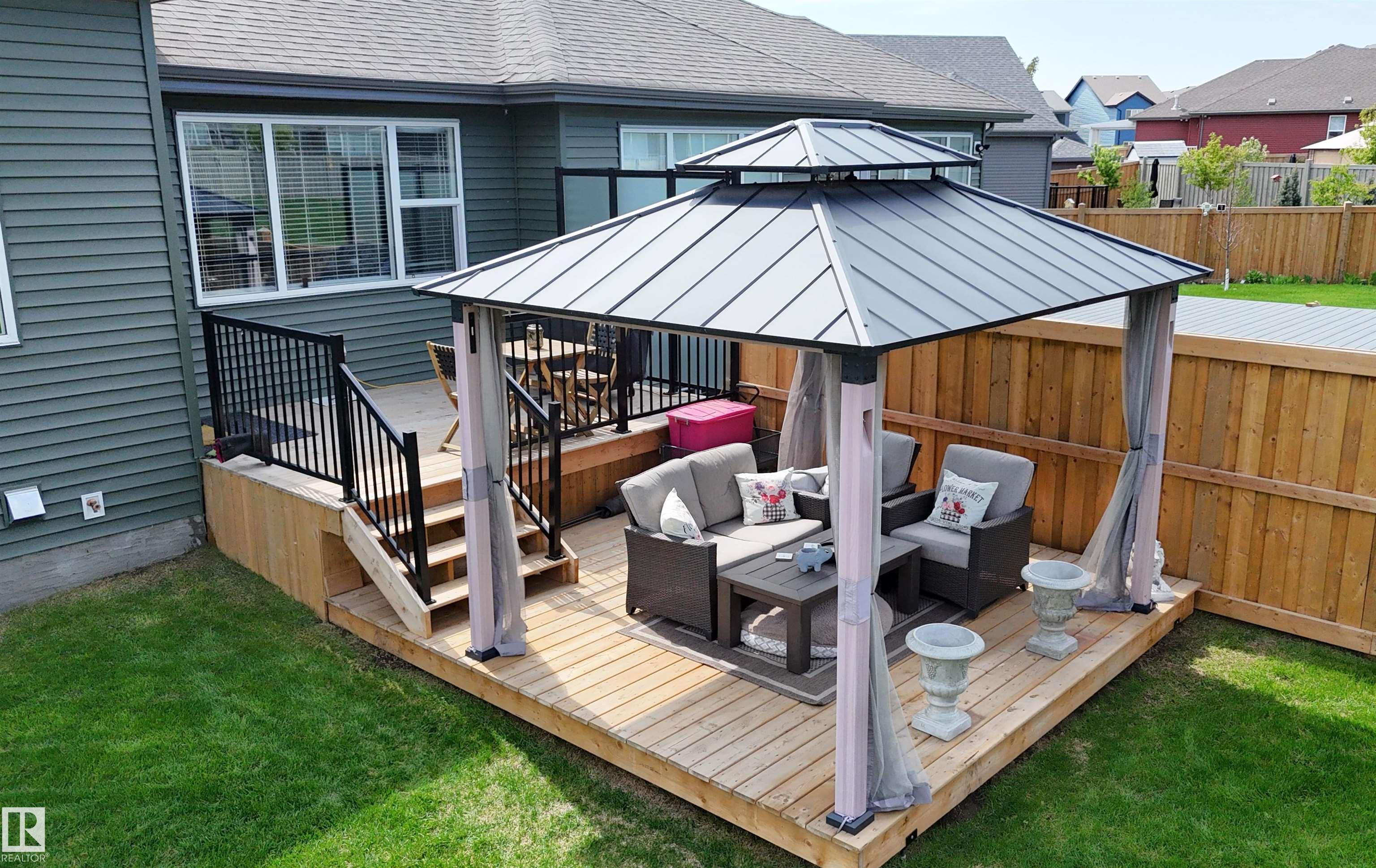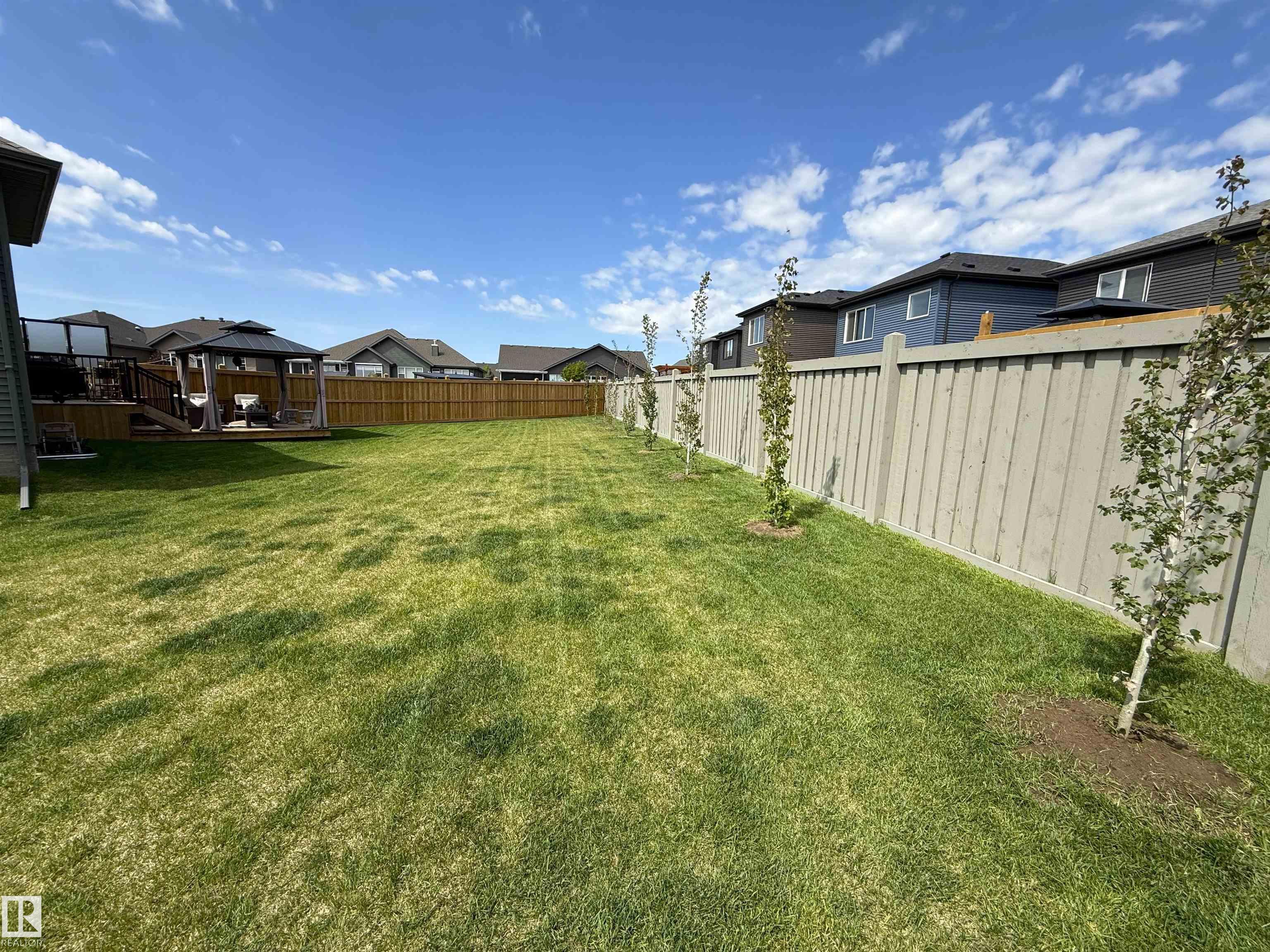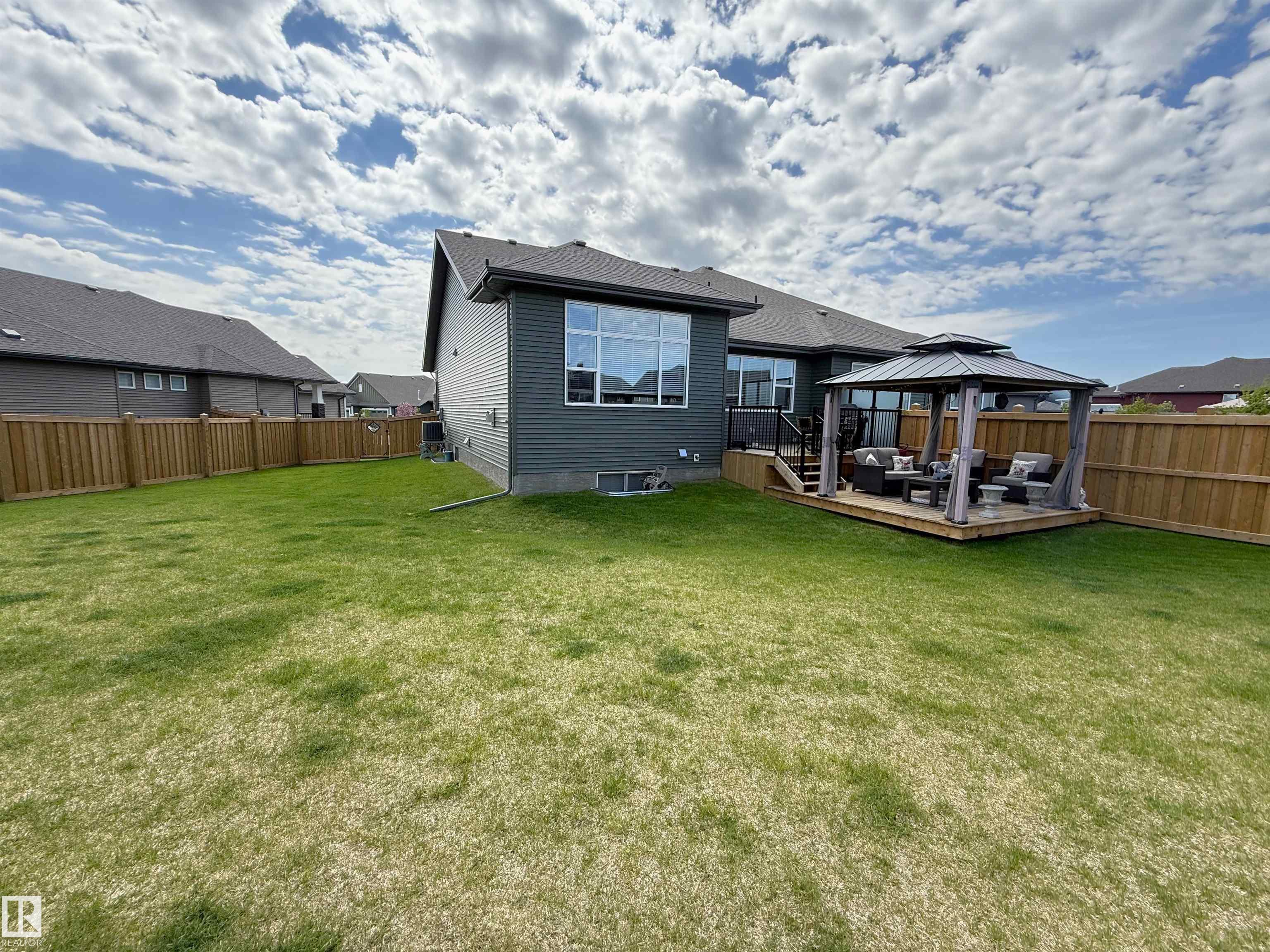 Beautiful 2022-built half-duplex bungalow with attached double garage (19Wx22L, heated, insulated) in Rosenthal. This 1,390 sq ft (plus full basement) home features central air conditioning, Chameleon built-in vacuum system, vinyl plank flooring and 11' ceilings. On the main: gas fireplace in the living room, bright dining area and gourmet kitchen with eat-up island, quartz countertops and corner pantry. The owner's suite offers a 4-pc ensuite and walk-through closet that connects to the main floor laundry room. Also on the main: 2-pc powder room off the mudroom. The fully finished basement offers a spacious family room with wet bar, one bedroom, 4-pc bathroom and a large storage room. Outside: HUGE landscaped pie-shaped lot with a two-tier deck and gazebo. Located near walking trails and ponds, 5 minutes to Costco, 10 to WEM, and with easy access to Whitemud Drive & Anthony Henday. A fantastic opportunity!