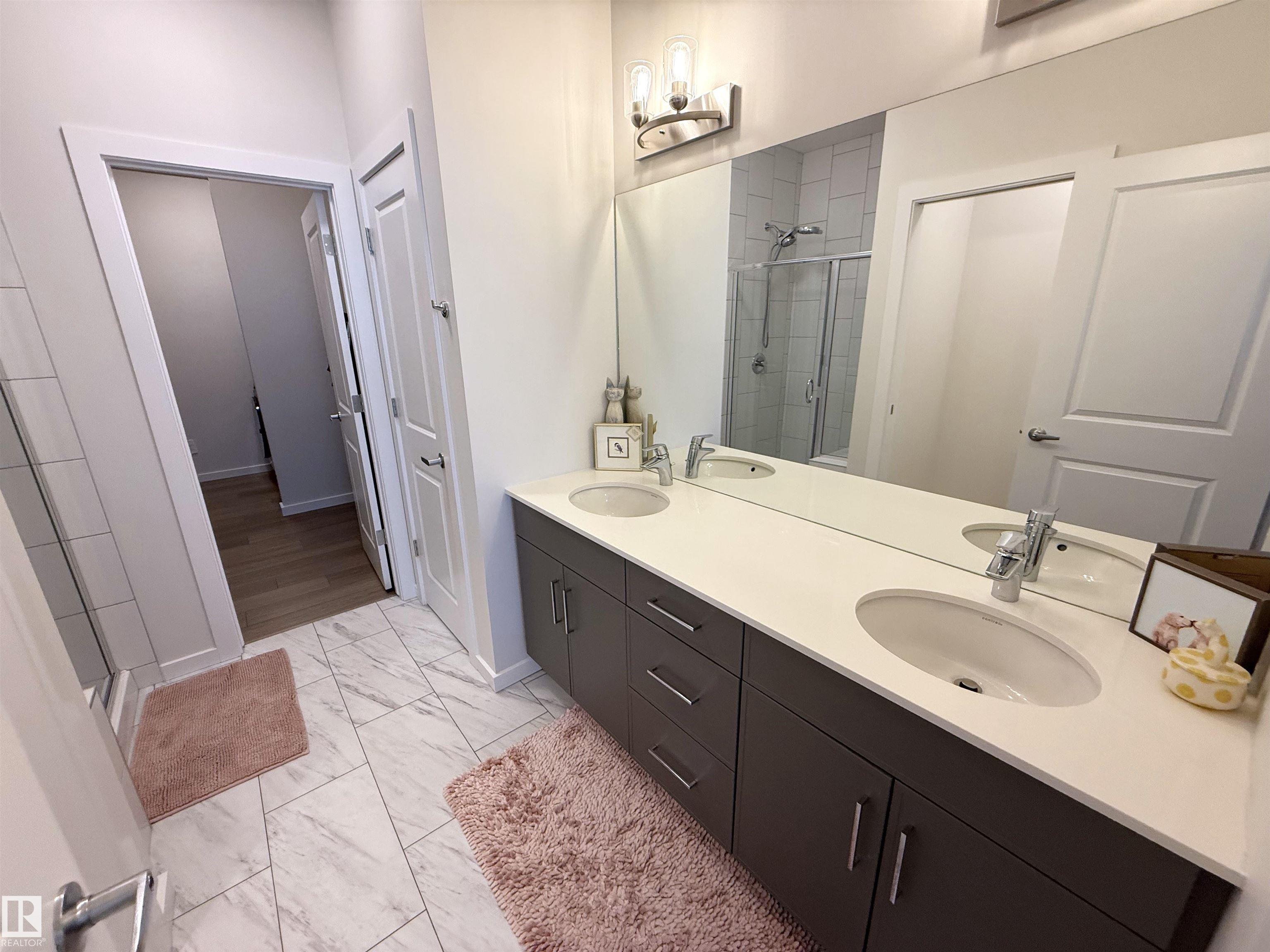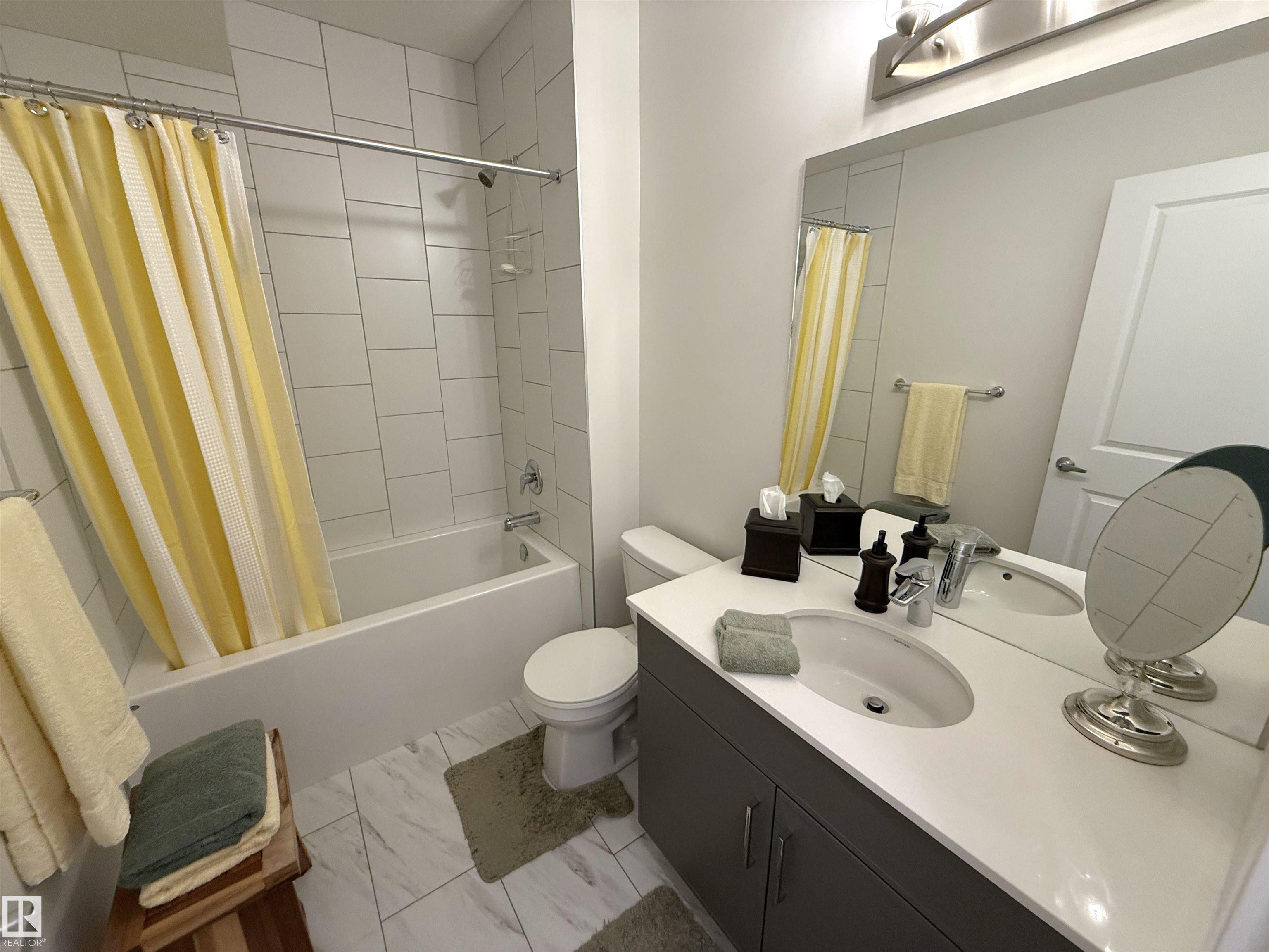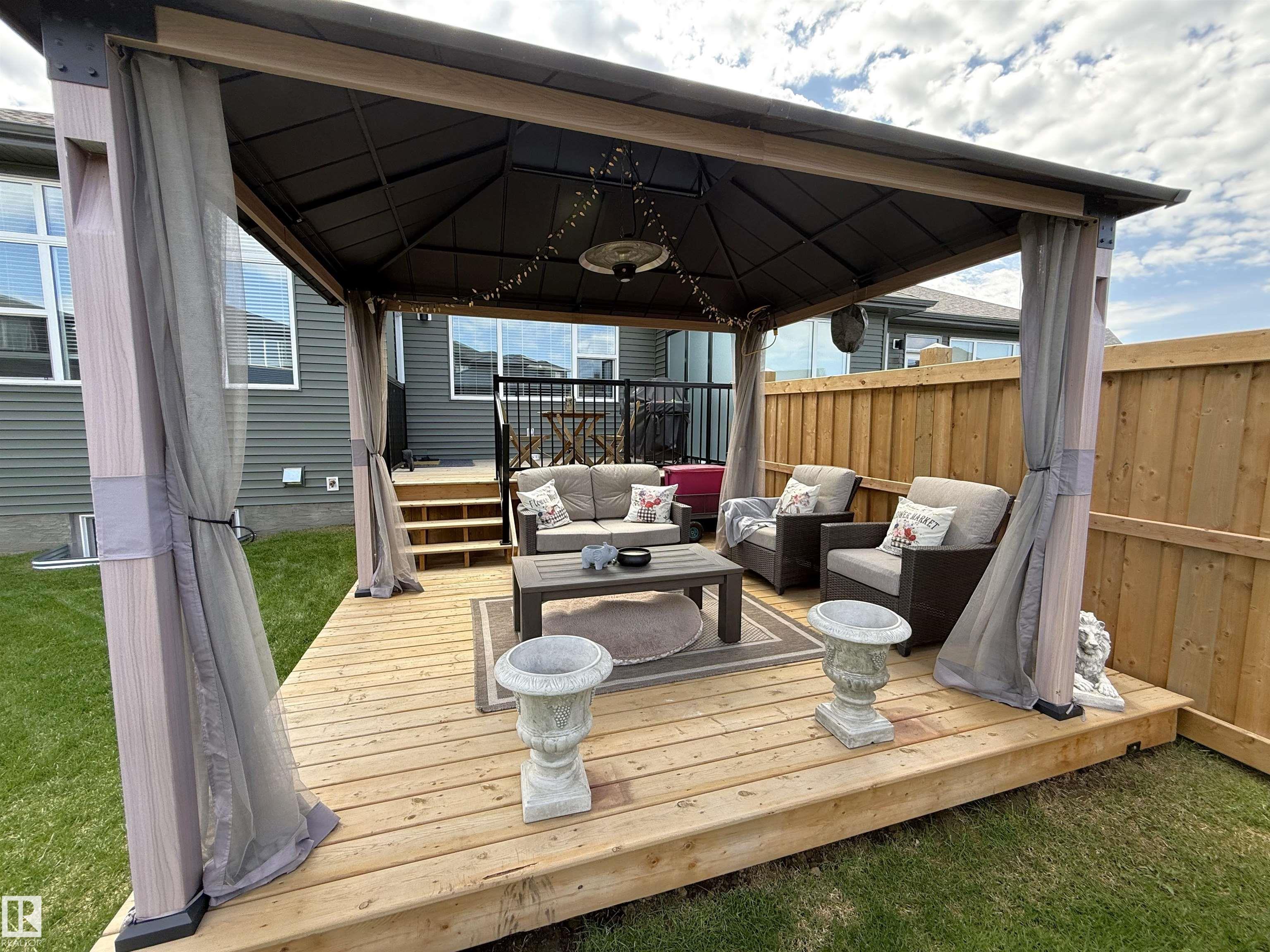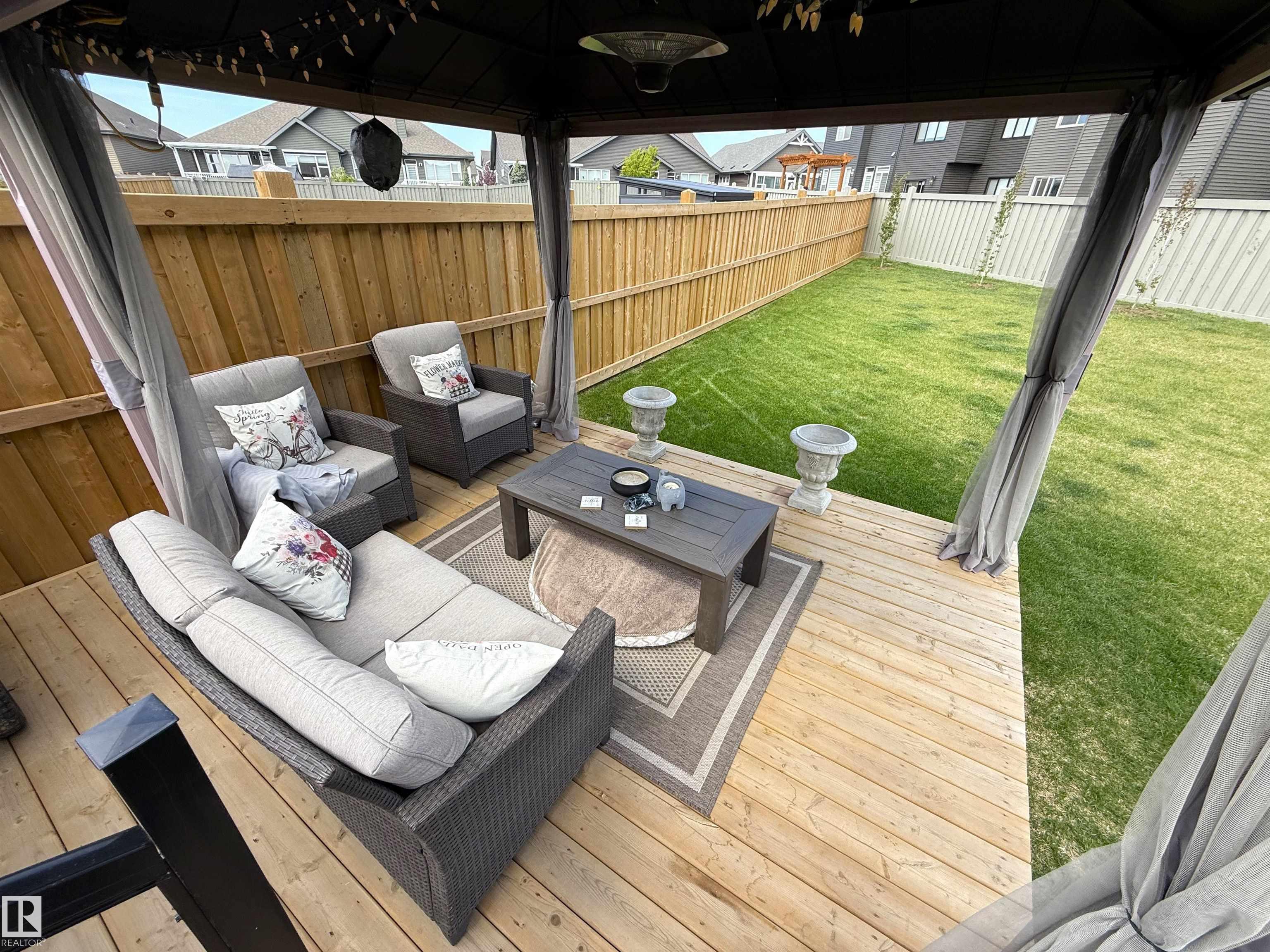 Beautiful 2022-built half-duplex bungalow with attached double garage (19Wx22L, heated, insulated) in Rosenthal. This 1,390 sq ft (plus full basement) home features central air conditioning, Chameleon built-in vacuum system, vinyl plank flooring and 11' ceilings. On the main: gas fireplace in the living room, bright dining area and gourmet kitchen with eat-up island, quartz countertops and corner pantry. The owner's suite offers a 4-pc ensuite and walk-through closet that connects to the main floor laundry room. Also on the main: 2-pc powder room off the mudroom. The fully finished basement offers a spacious family room with wet bar, one bedroom, 4-pc bathroom and a large storage room. Outside: HUGE landscaped pie-shaped lot with a two-tier deck and gazebo. Located near walking trails and ponds, 5 minutes to Costco, 10 to WEM, and with easy access to Whitemud Drive & Anthony Henday. A fantastic opportunity!