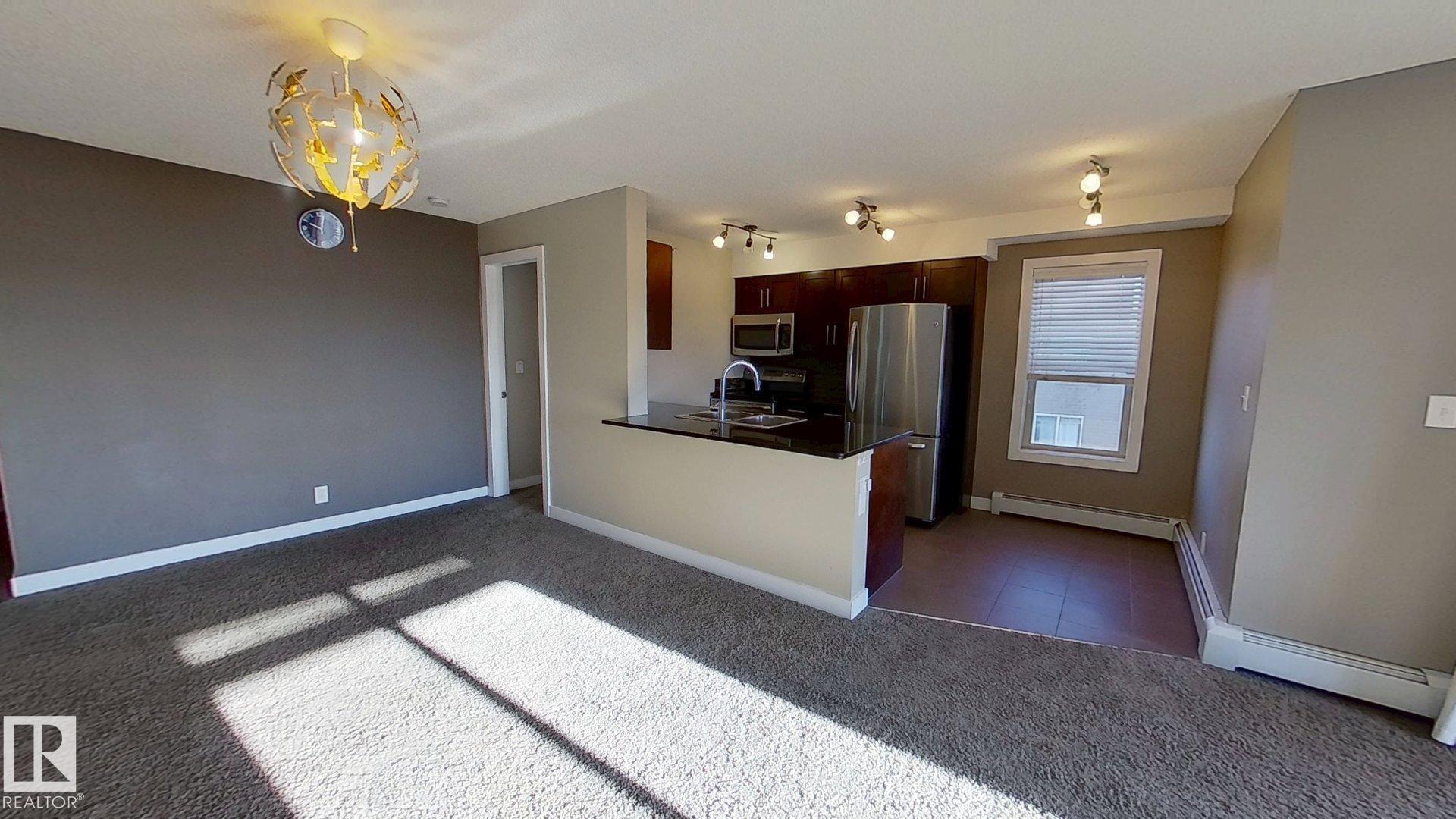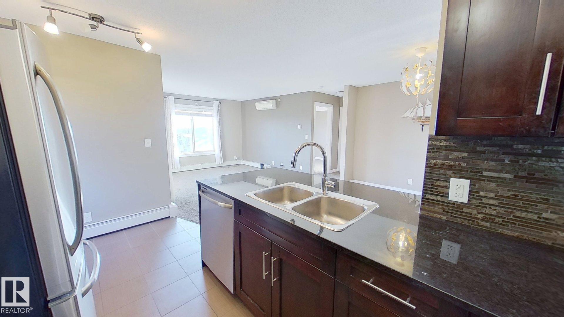 Make yourself at home in this beautiful open-concept TOP FLOOR CORNER UNIT conveniently located in the highly desirable Rutherford NBHD! Large Primary BR incl 3pc EN-SUITE and a his & her walk through closet. 2nd BR is located across the dining area for privacy. 2nd 4pc bath incl an UPGRADED SOAKER TUB. All CHROME fittings & QUARTZ countertops. Kitchen boasts espresso soft-close cupboards, GE STAINLESS STEEL appliances and a spacious breakfast bar. Den perfect for an OFFICE SPACE. Spacious utility room w/ IN-SUITE HIGH-EFFICIENCY washer & dryer. Bright Living Room w/ over-sized windows & AIR CONDITIONING. Large COVERED BALCONY for relaxing or entertaining. HEATED TITLED UNDERGROUND PARKING with sealed & secured STORAGE ROOM. Energized TITLED SURFACE PARKING by main entrance. ELEVATOR and easy STAIR access. Ample visitor parking. Well managed and maintained condo with a HEALTHY RESERVE FUND. Walking distance to shopping, schools, and other amenities. Quick access to AHD & HWY 2.