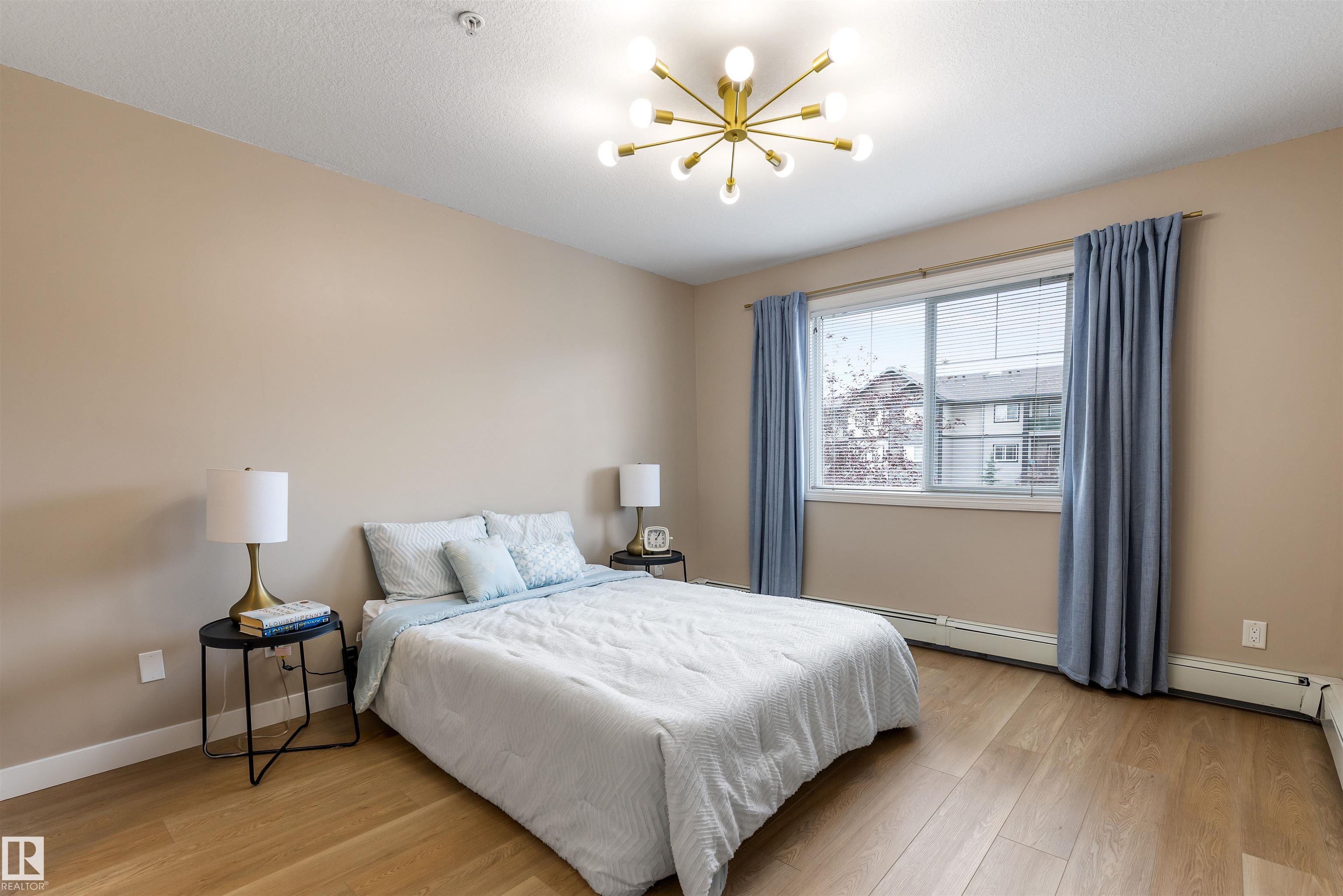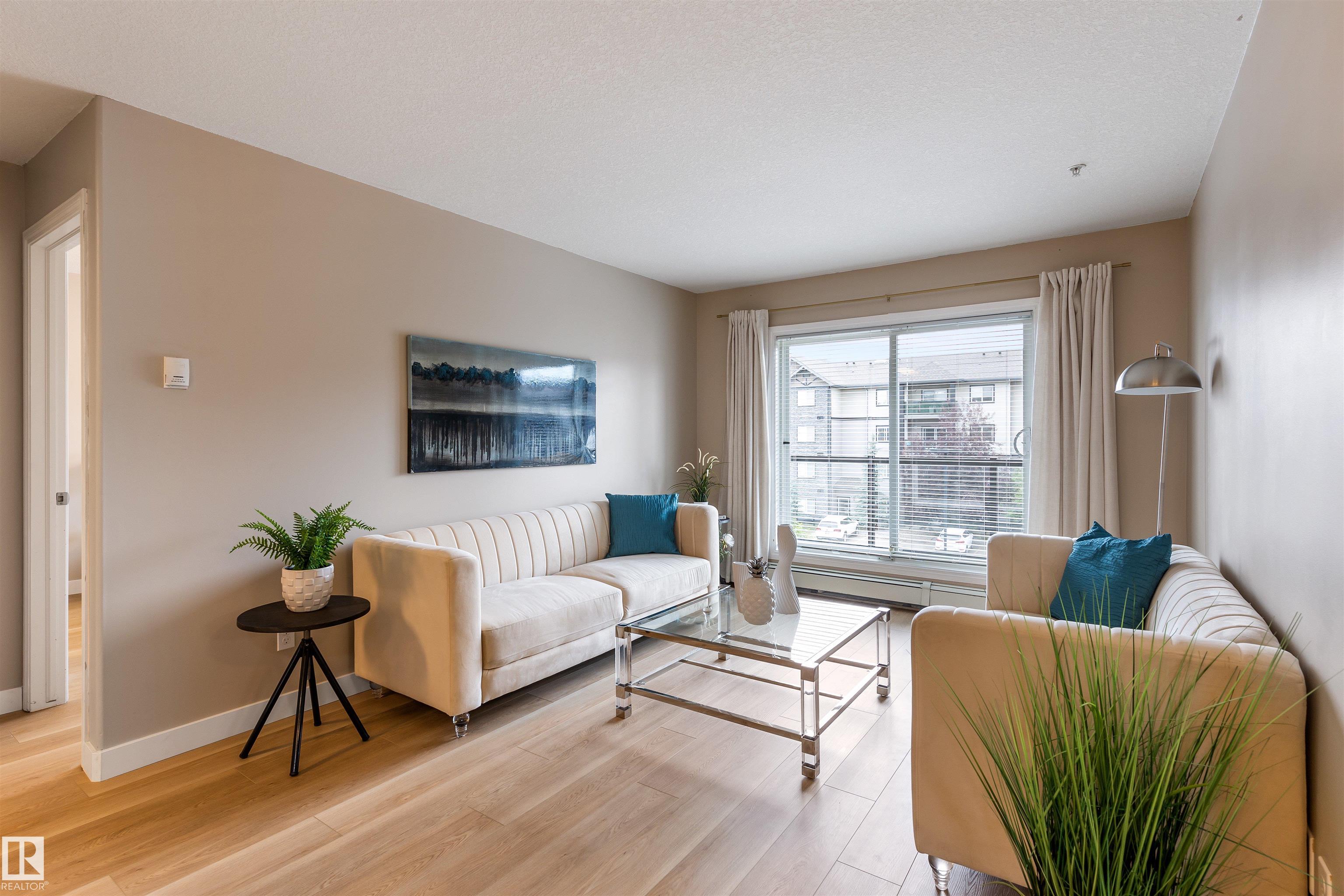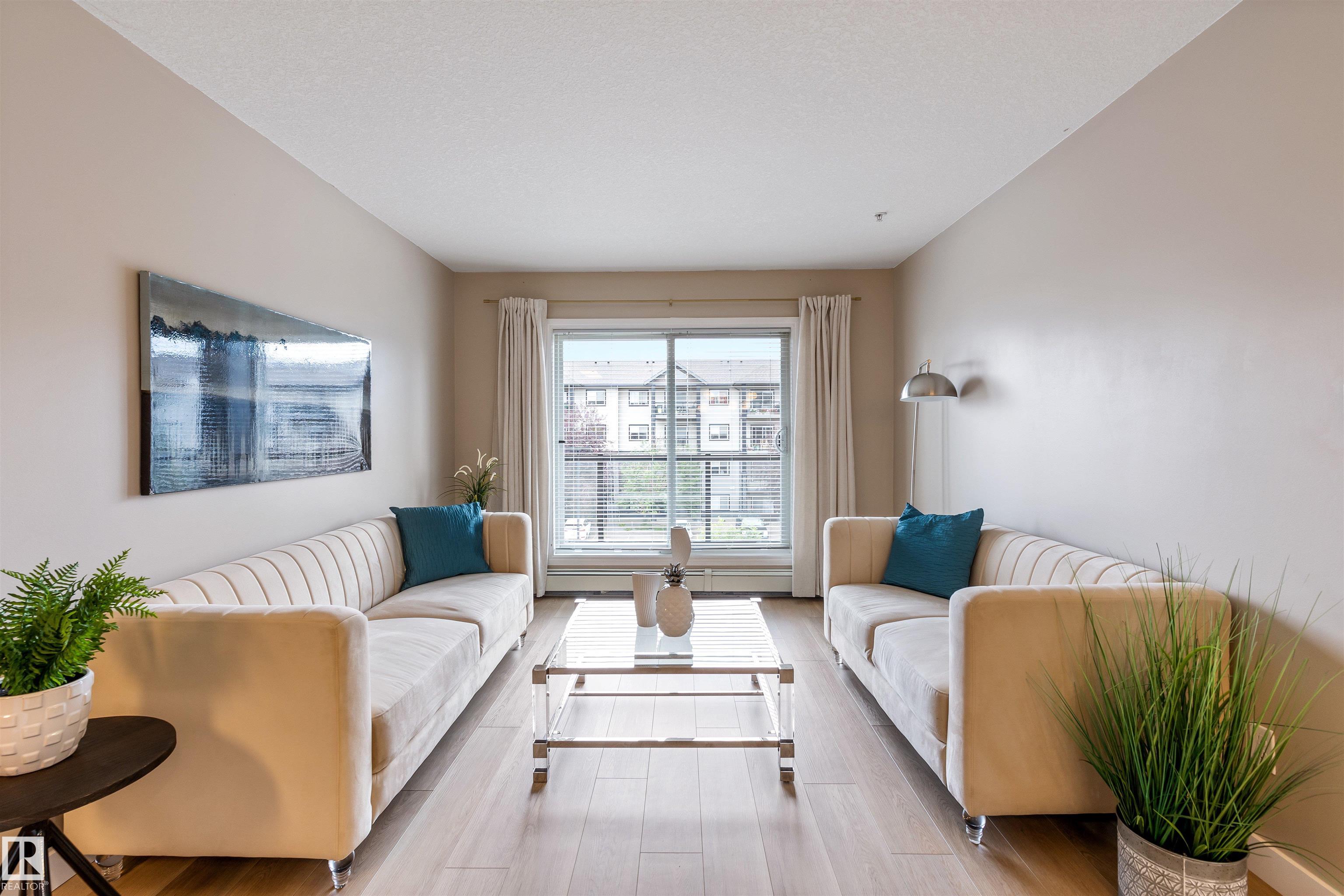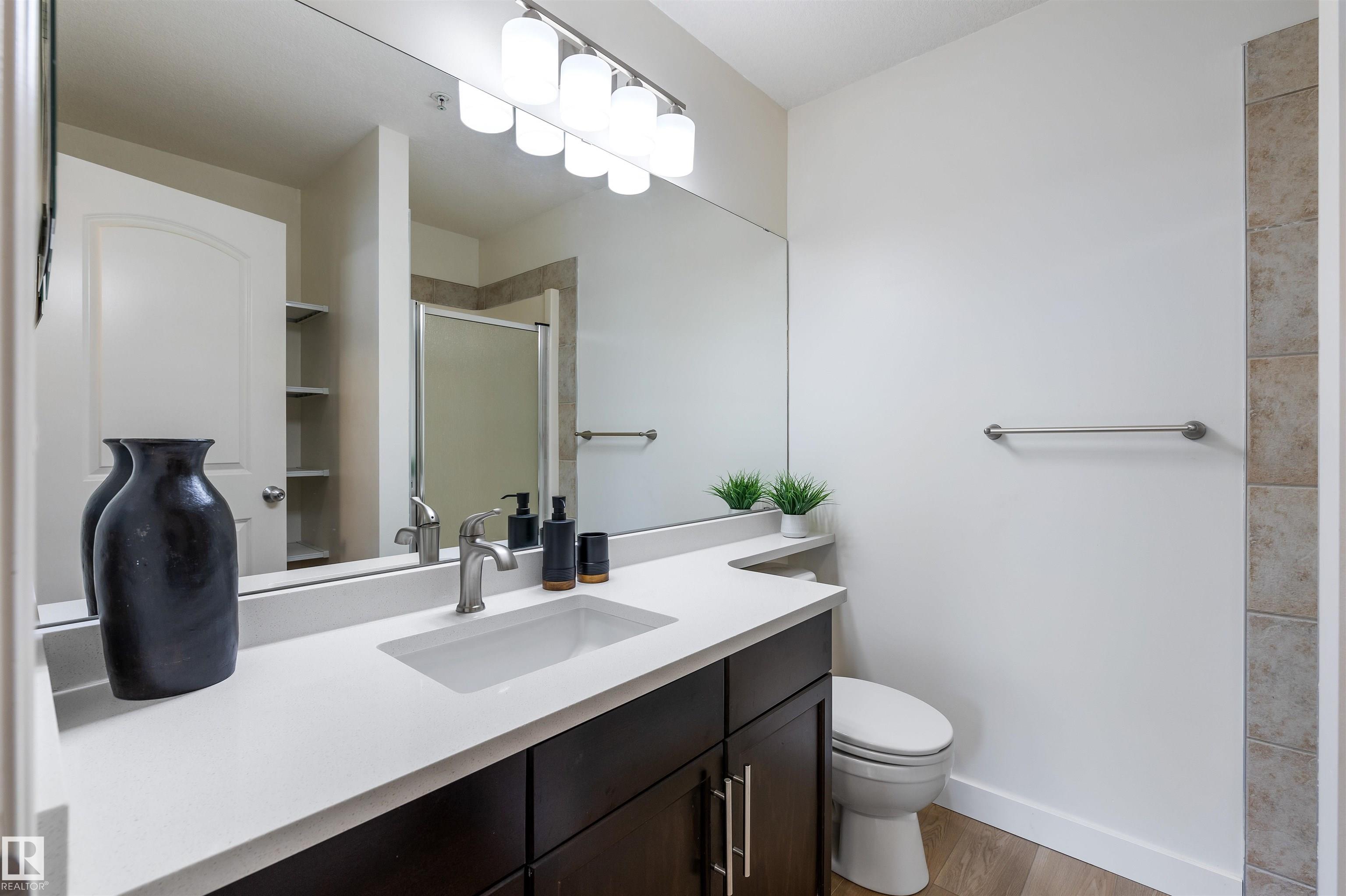 Welcome to this RENOVATED condo in the highly sought after community of South Terwillegar. This delightful 2 bedroom/2 bathroom unit offers 854sqft in an incredible location close to all amenities. The kitchen features a pass through to the dining space, full height cabinetry with ample storage space and gleaming new QUARTZ counters/undermount sink. The living space features new VINYL PLANK FLOORING that flows throughout. There is a large balcony complete with gas hook up for a bbq! The primary bedroom has a three piece ENSUITE, built in linen closet and a walk through closet. The spacious second bedroom offers a good amount of closet space as well. This home has an assigned UNDERGROUND PARKING STALL and a titled storage unit for your convenience! Freshly painted, new flooring, lighting, quartz and so much more. Quick possession!